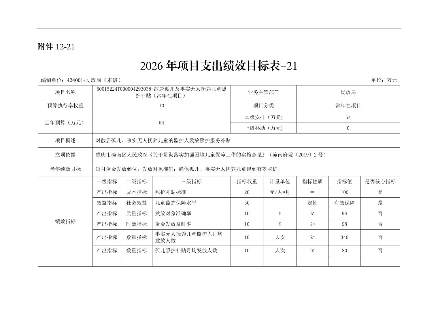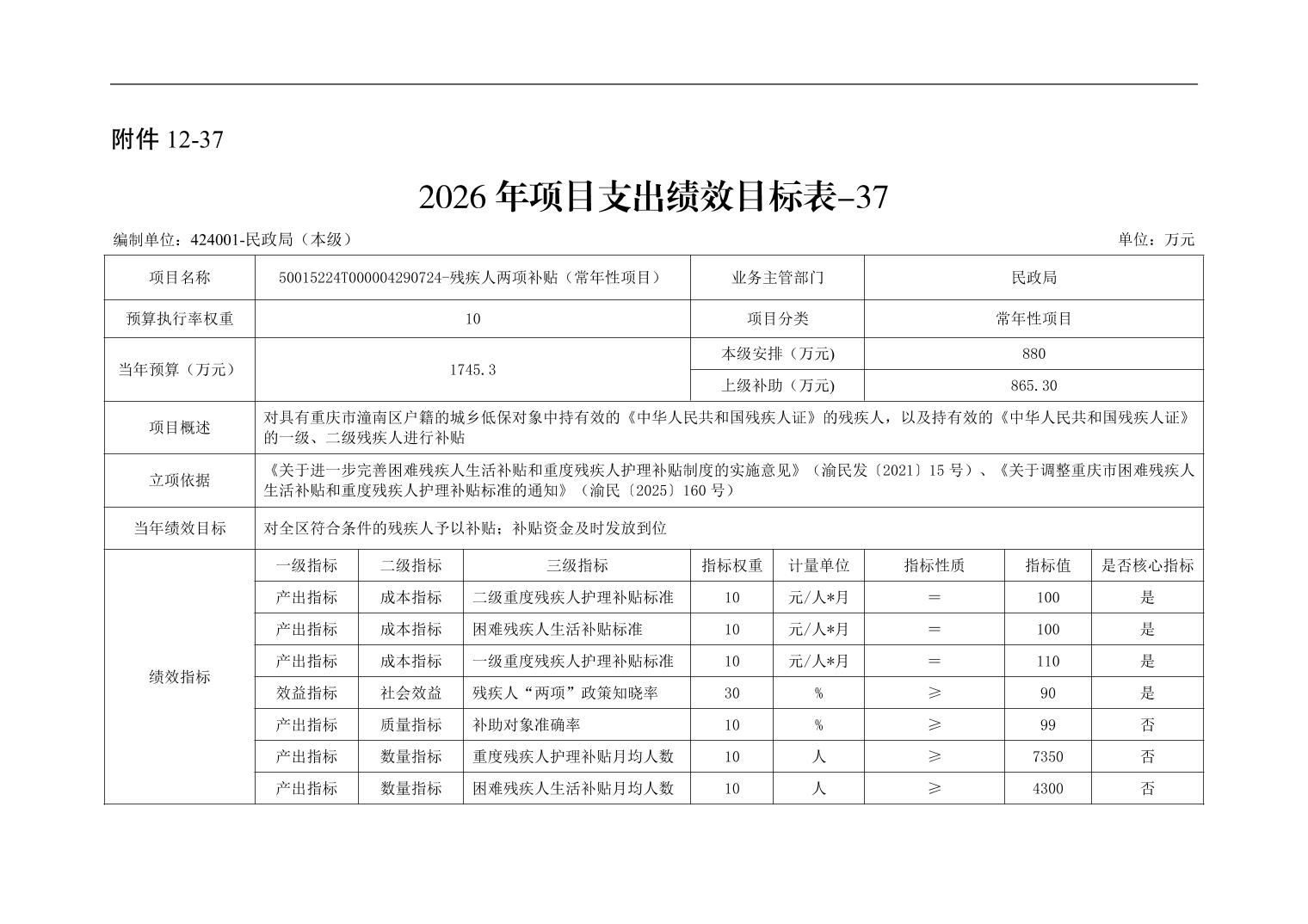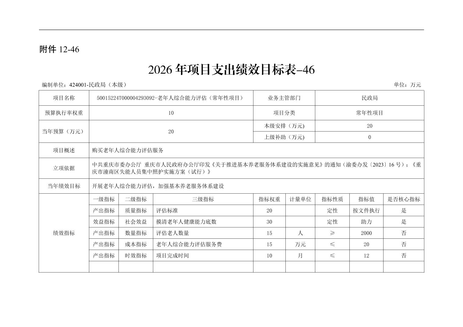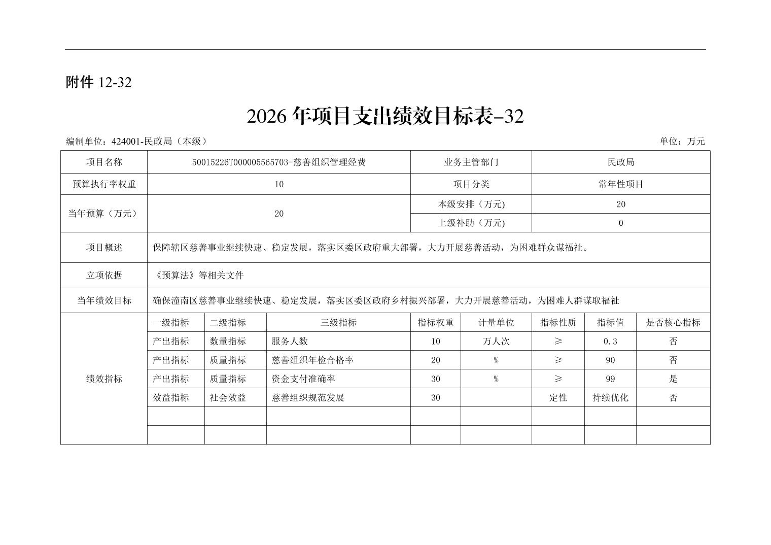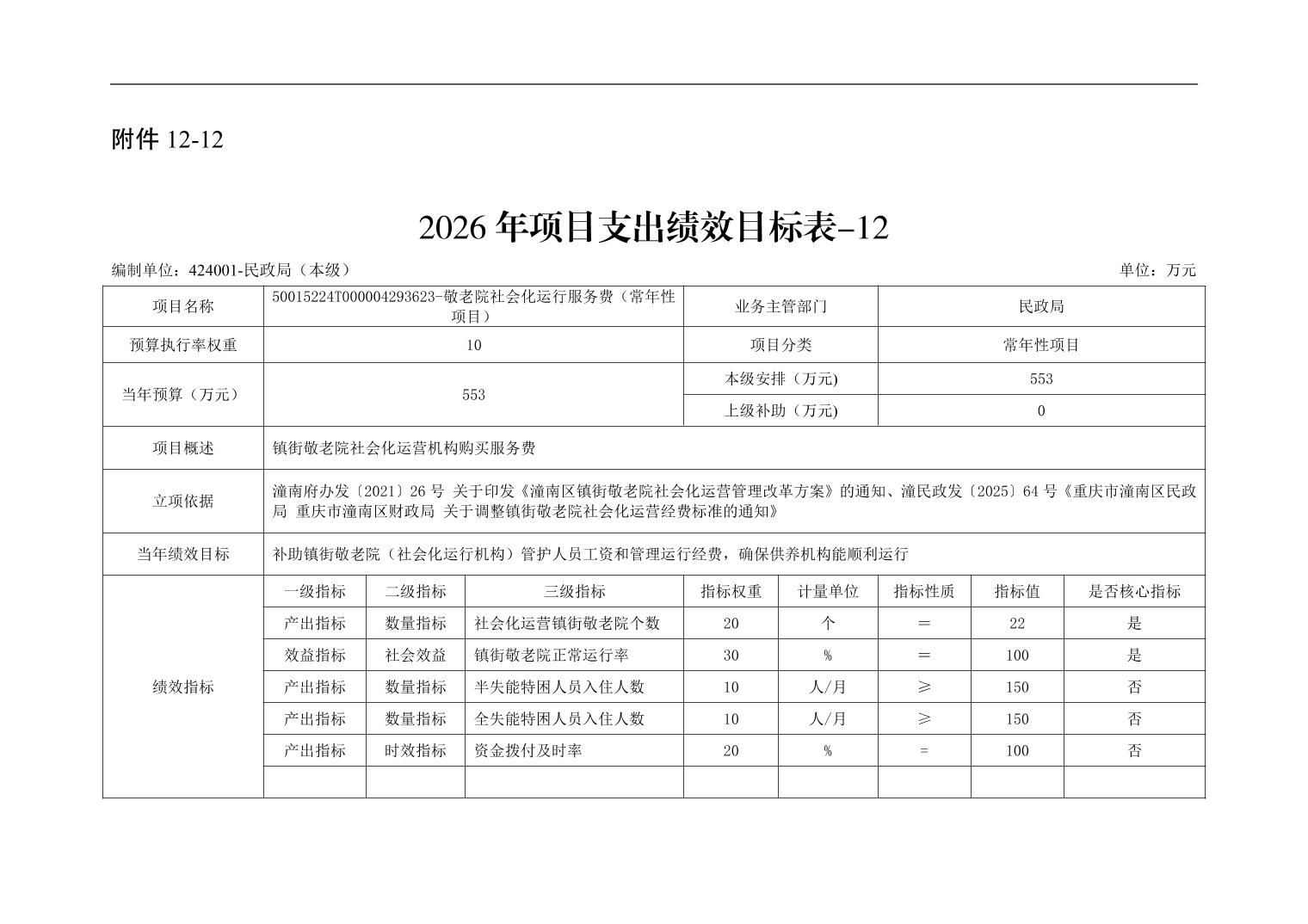 重庆市潼南区民政局本级2026年单位预算情况说明