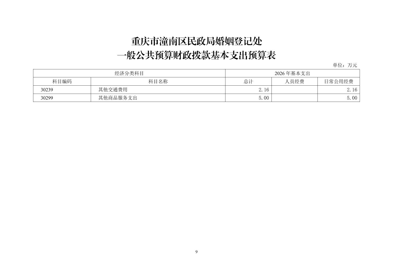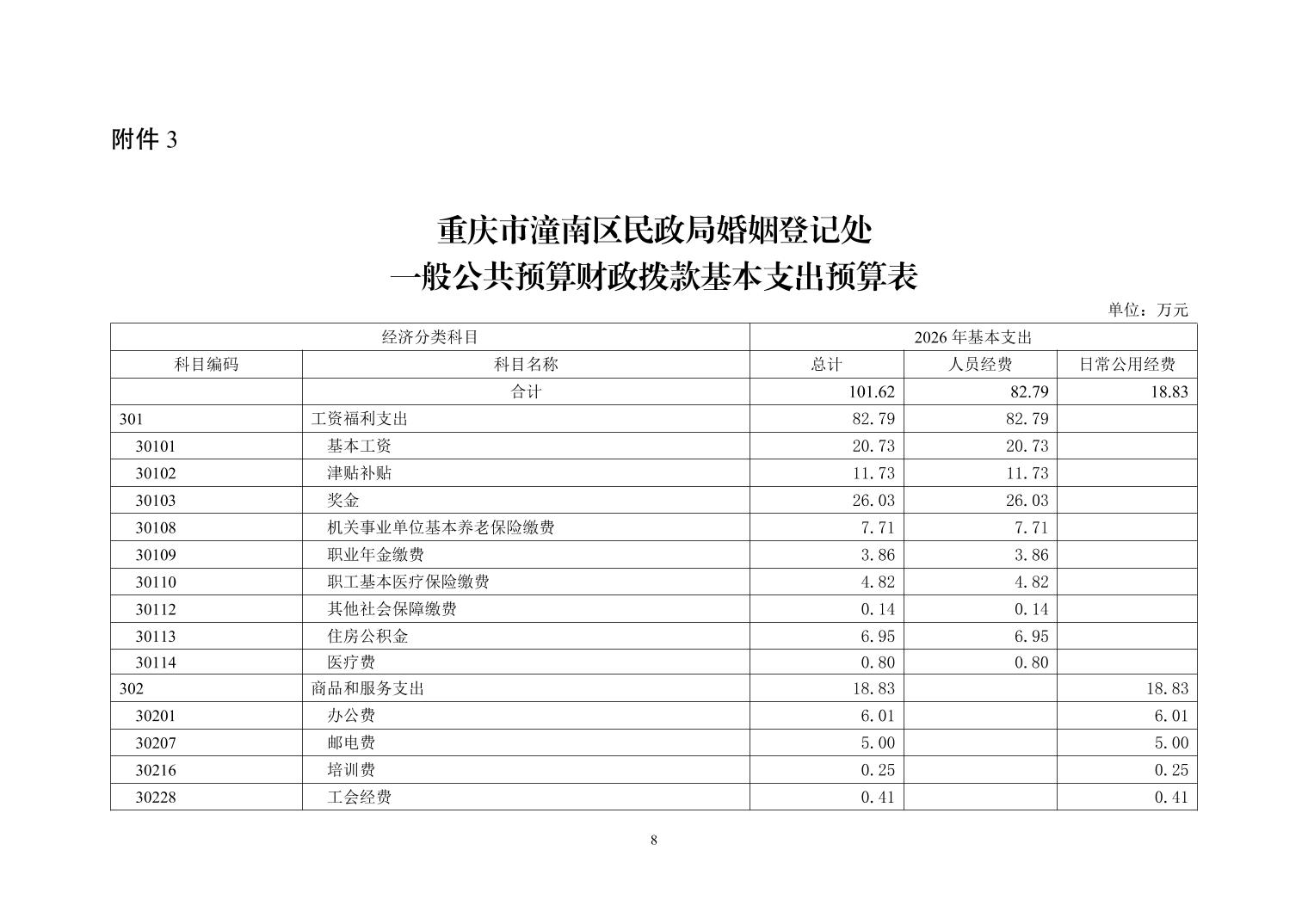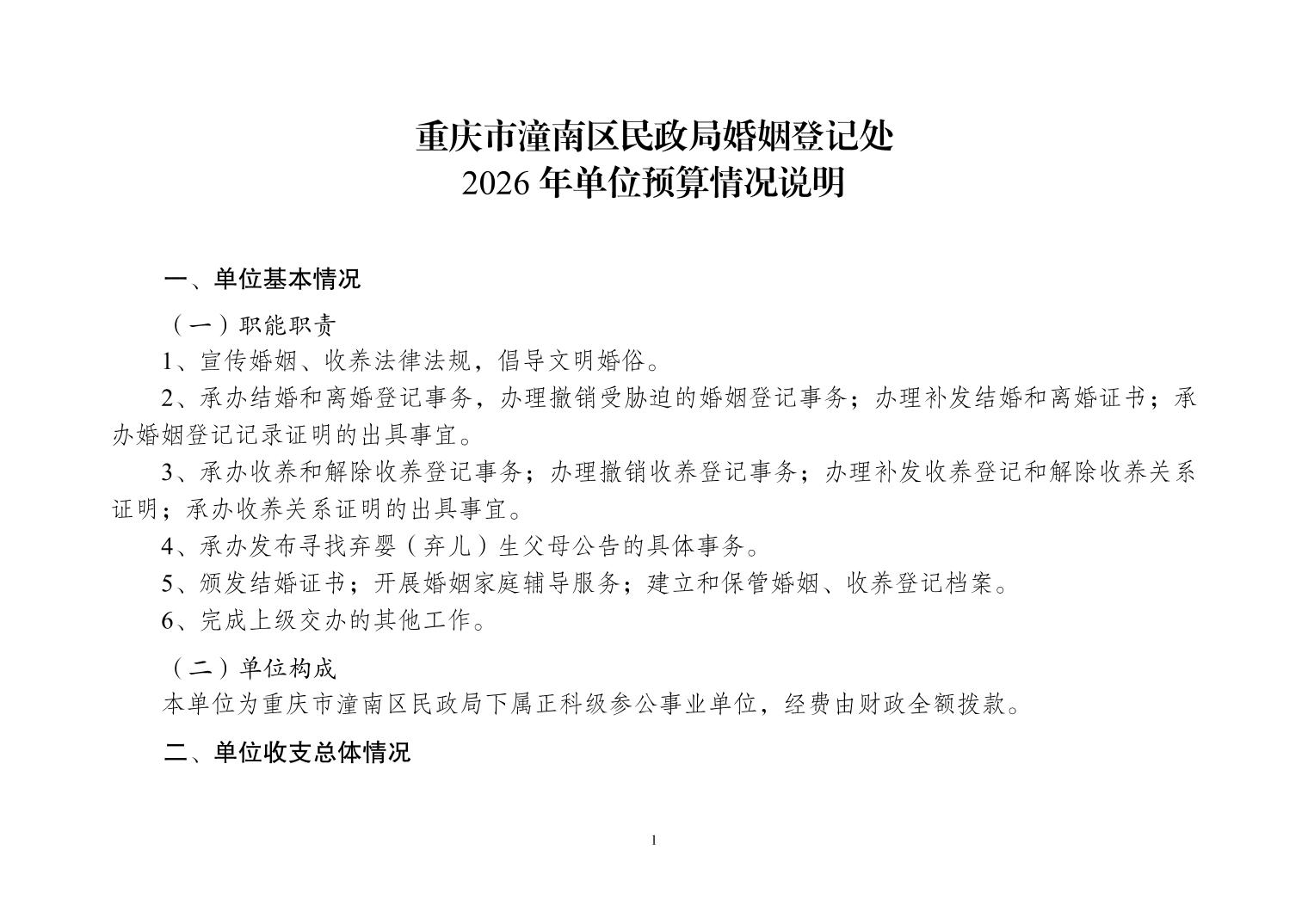 重庆市潼南区民政局婚姻登记处2026年单位预算情况说明