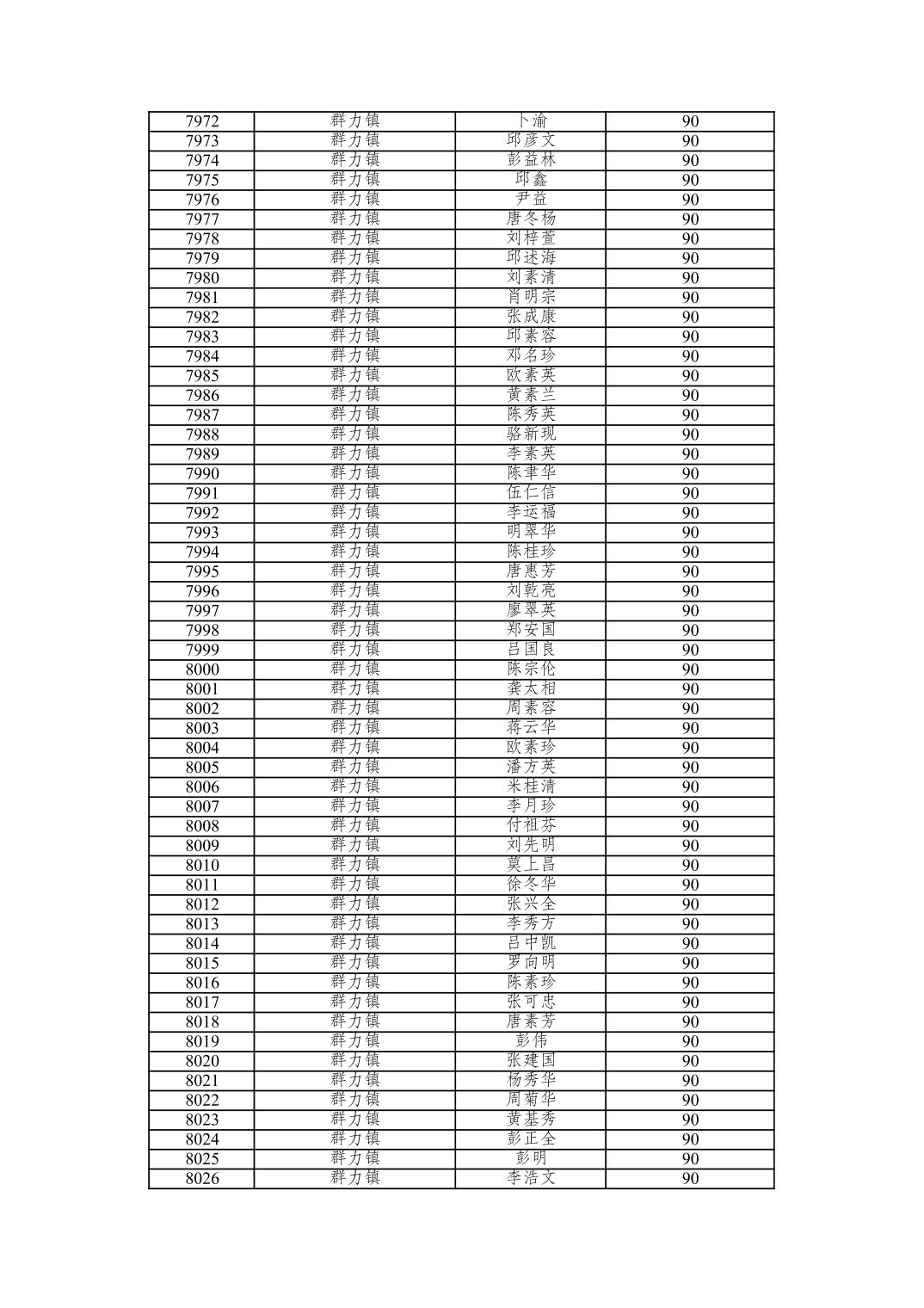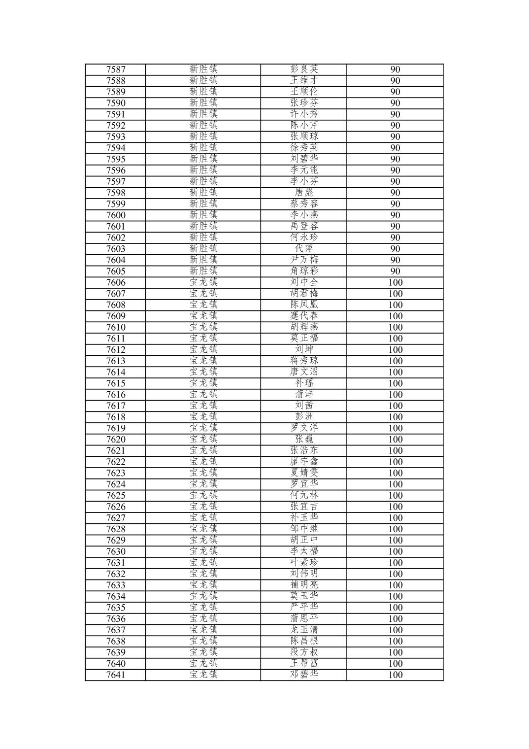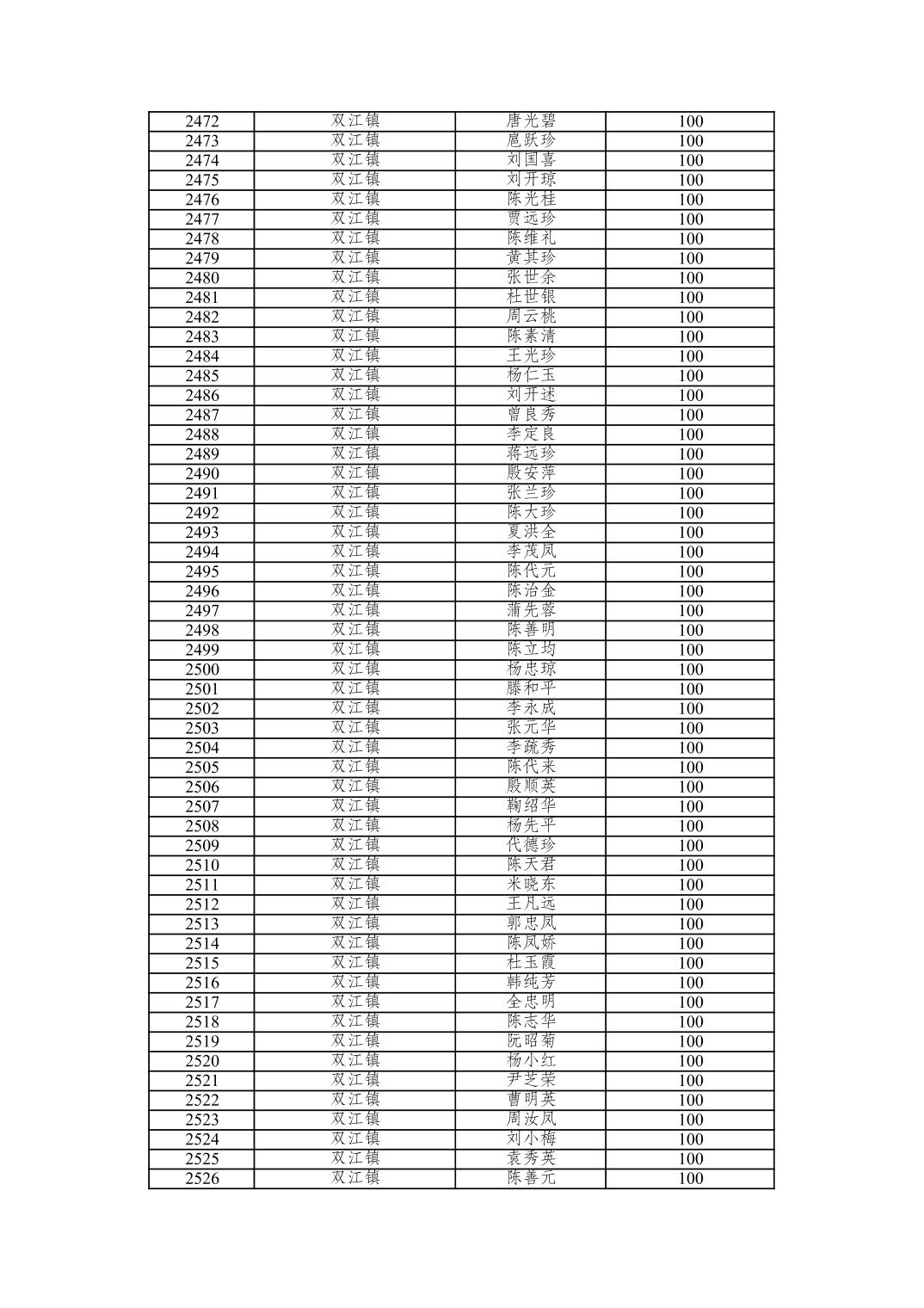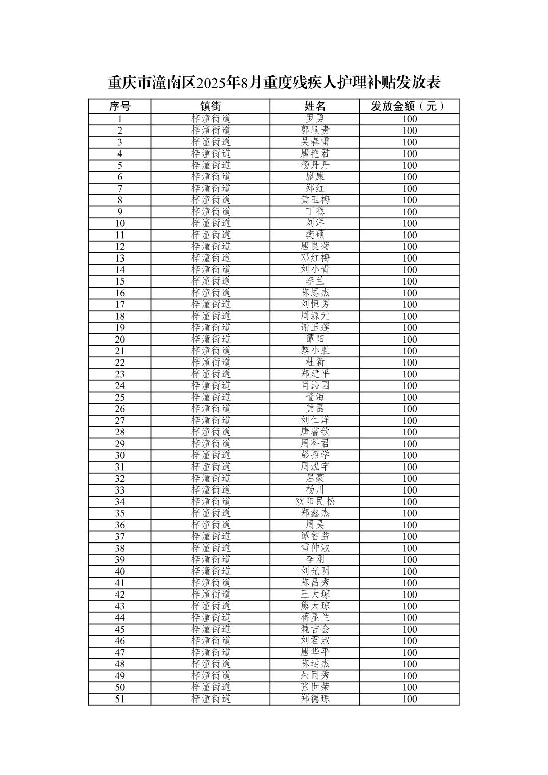 重庆市潼南区2025年8月重度残疾人护理补贴发放表