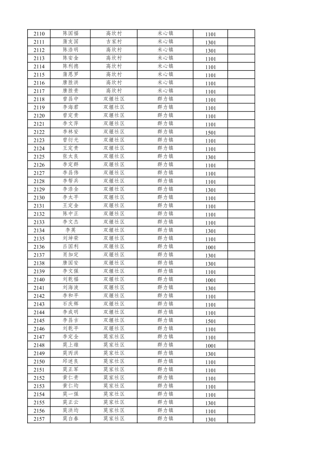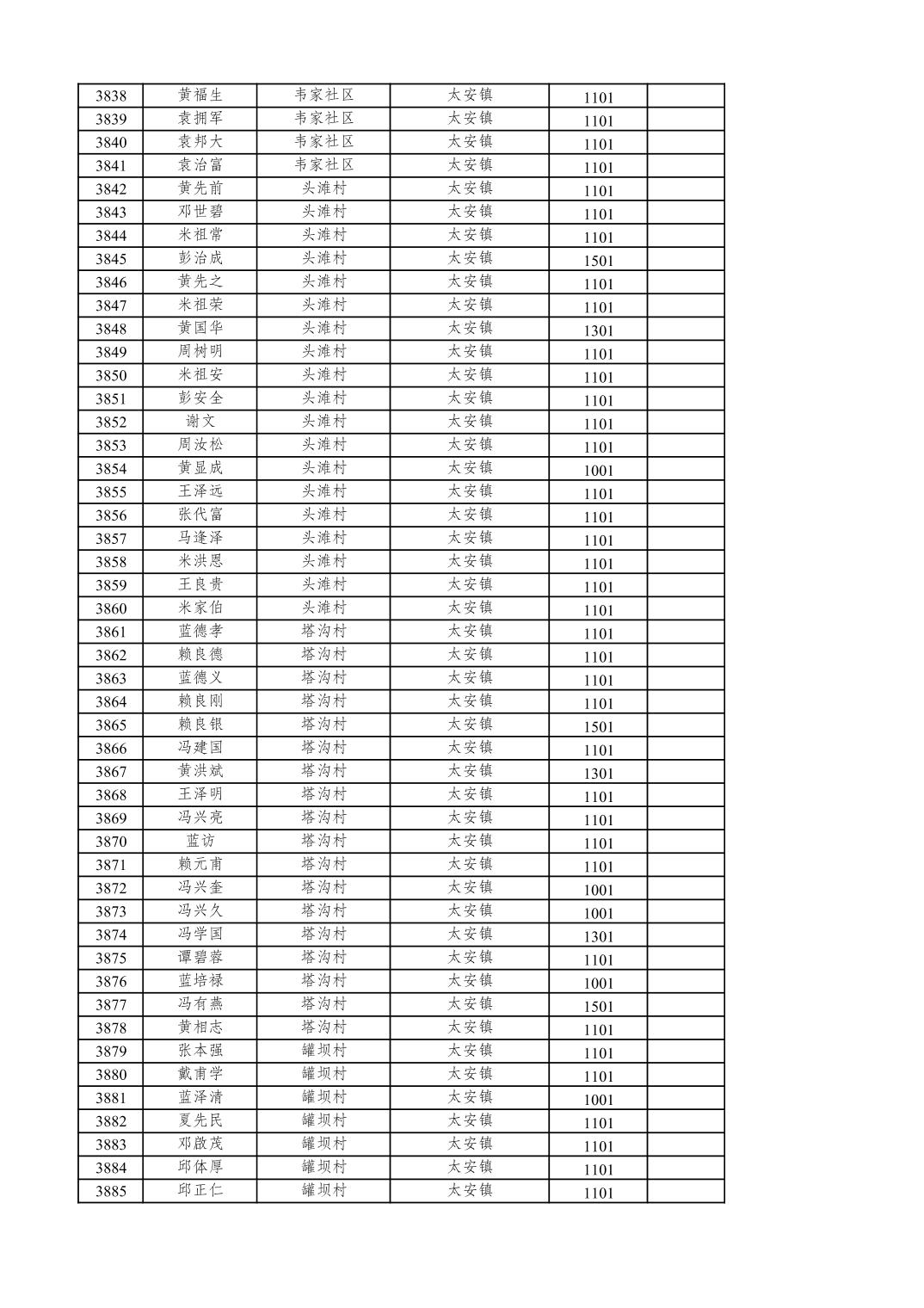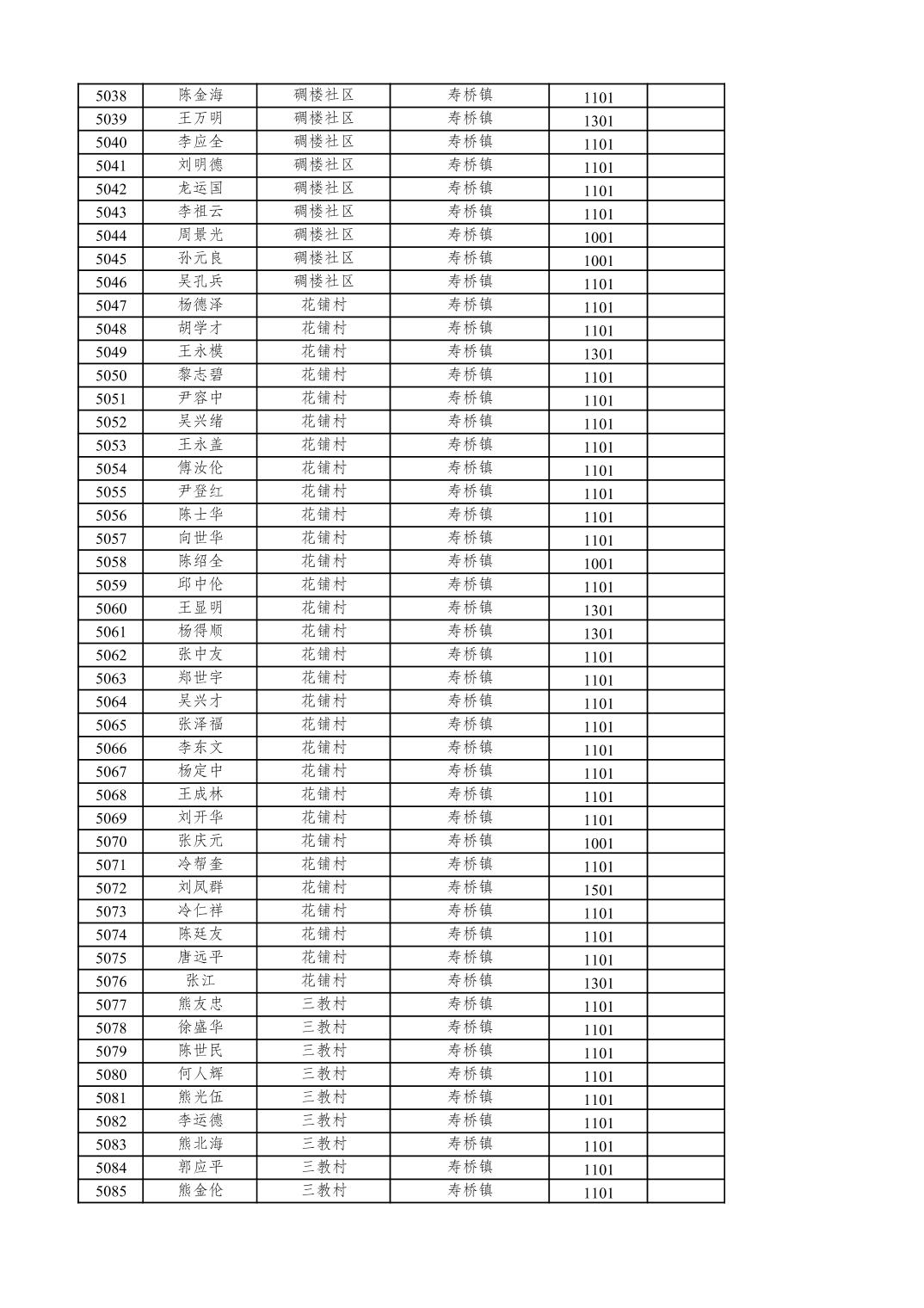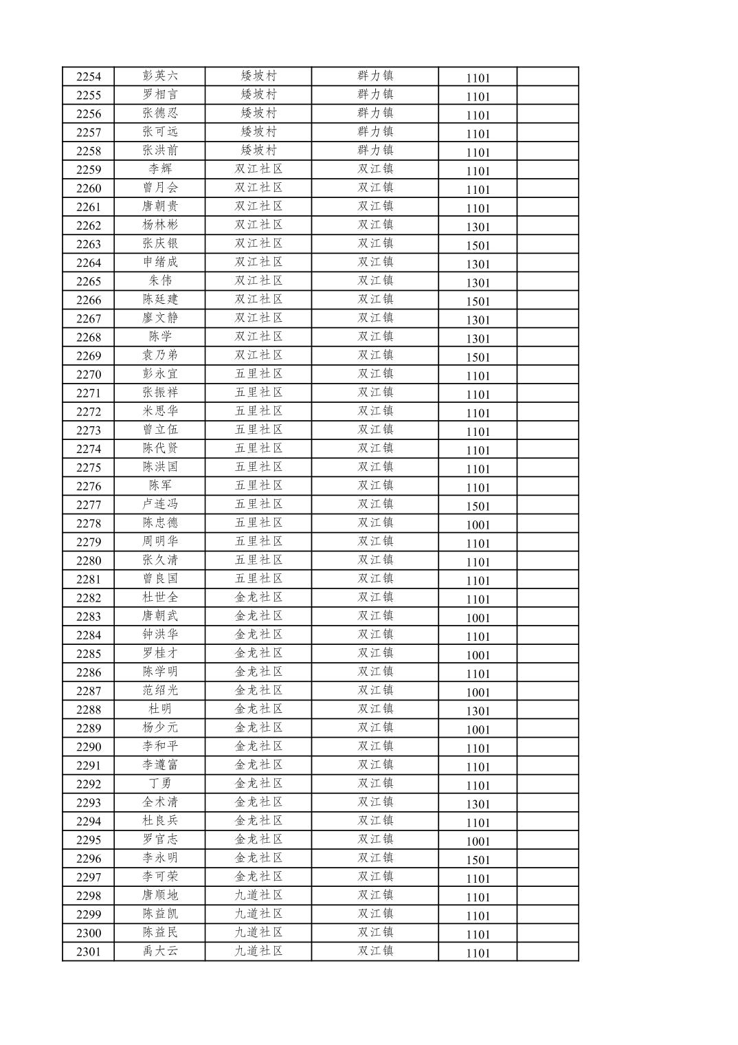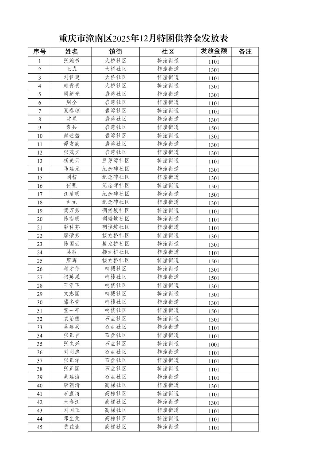 重庆市潼南区2025年12月特困供养金发放表