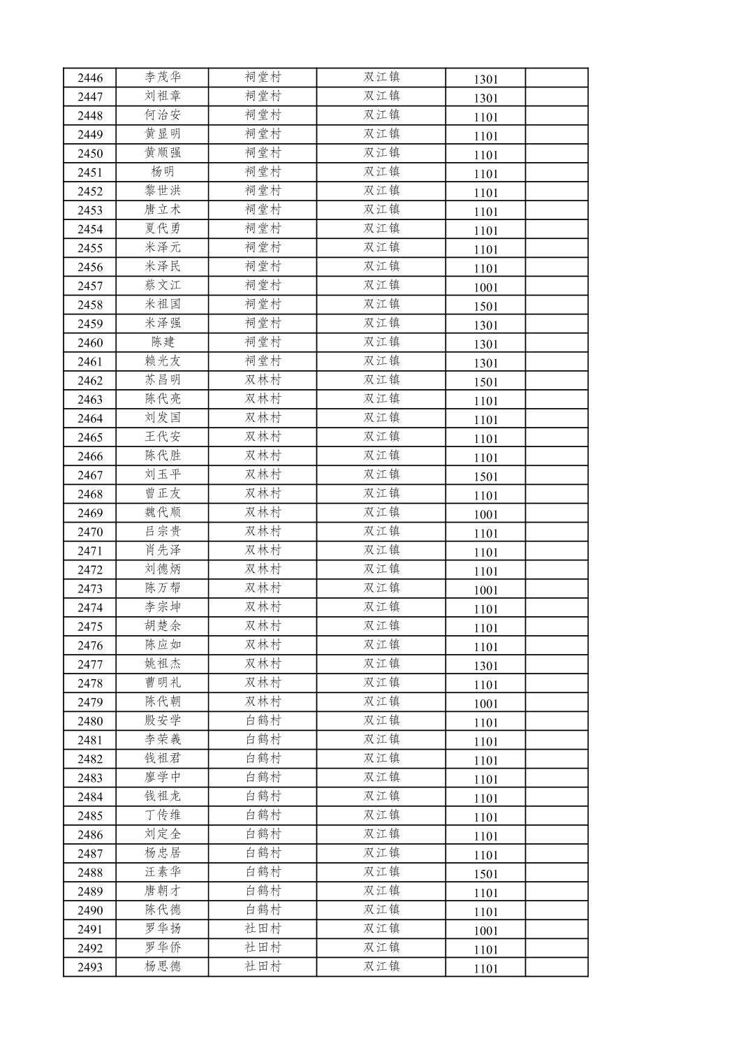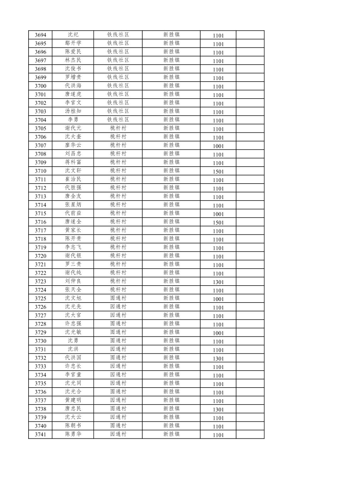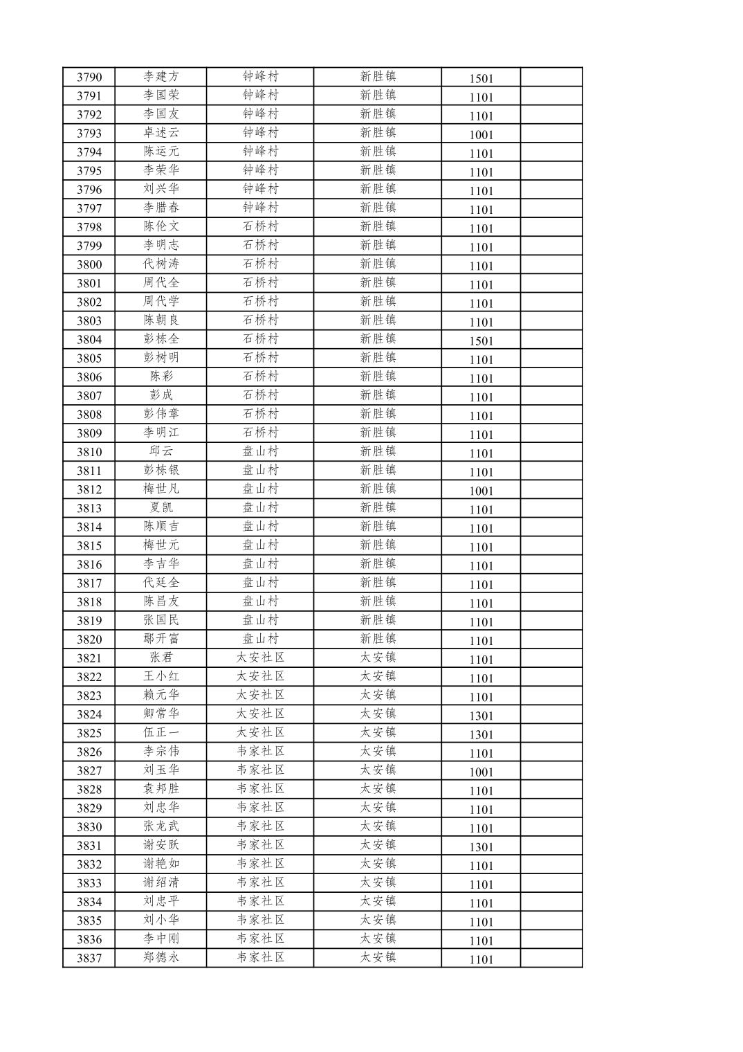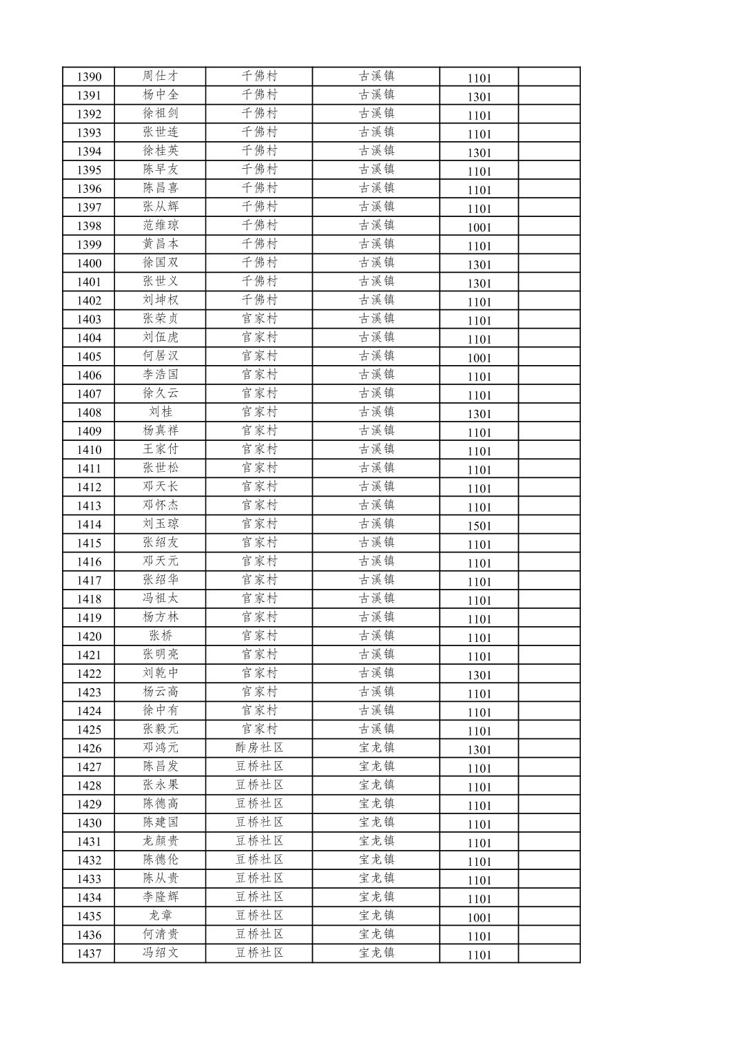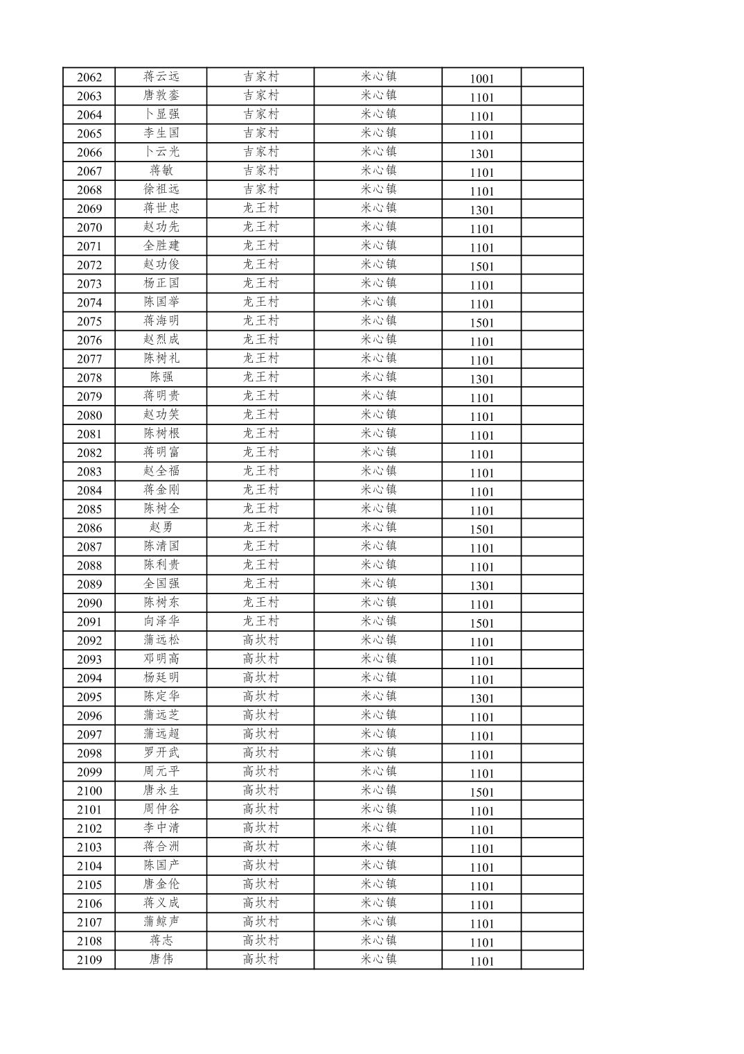 重庆市潼南区2025年12月特困供养金发放表