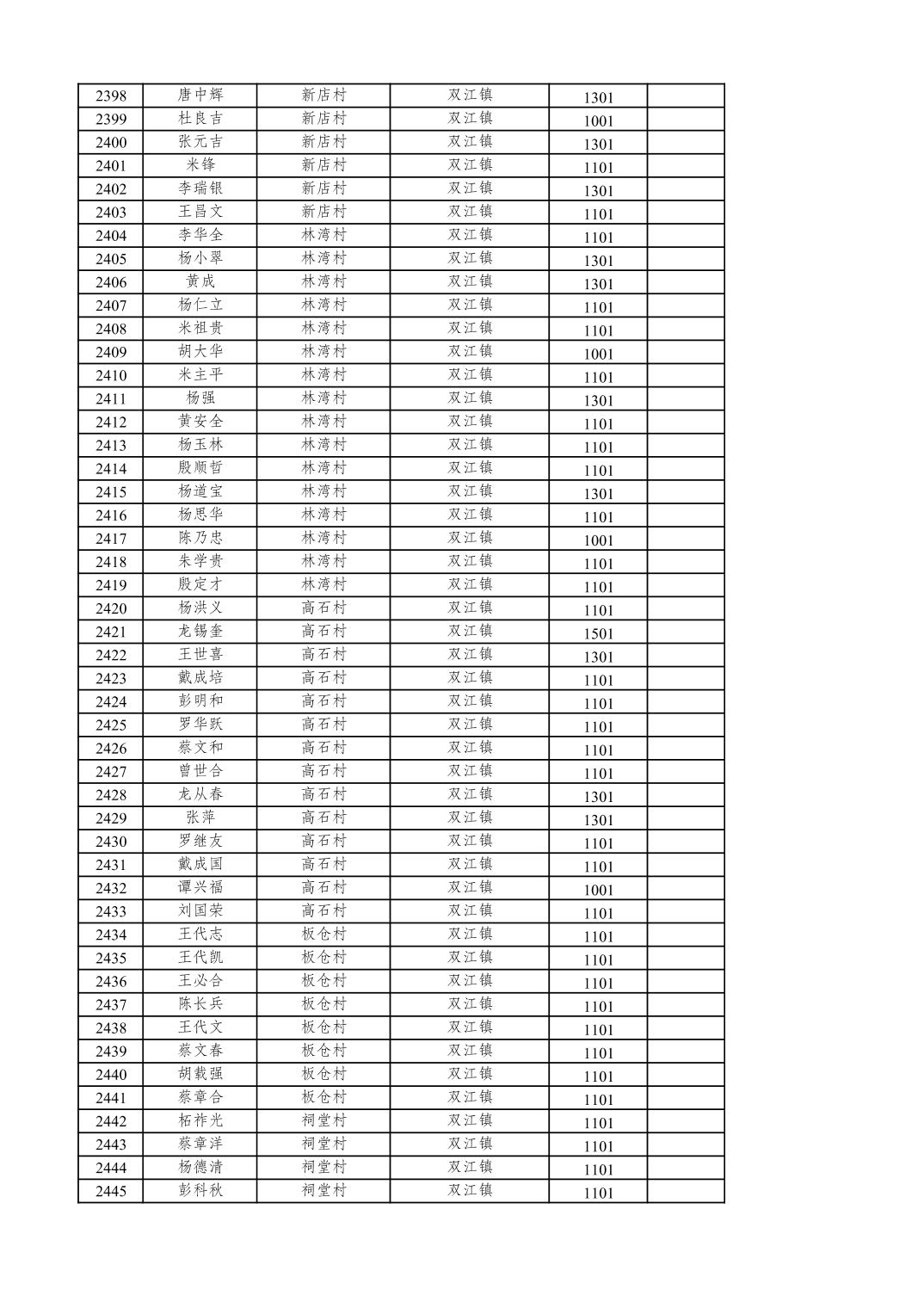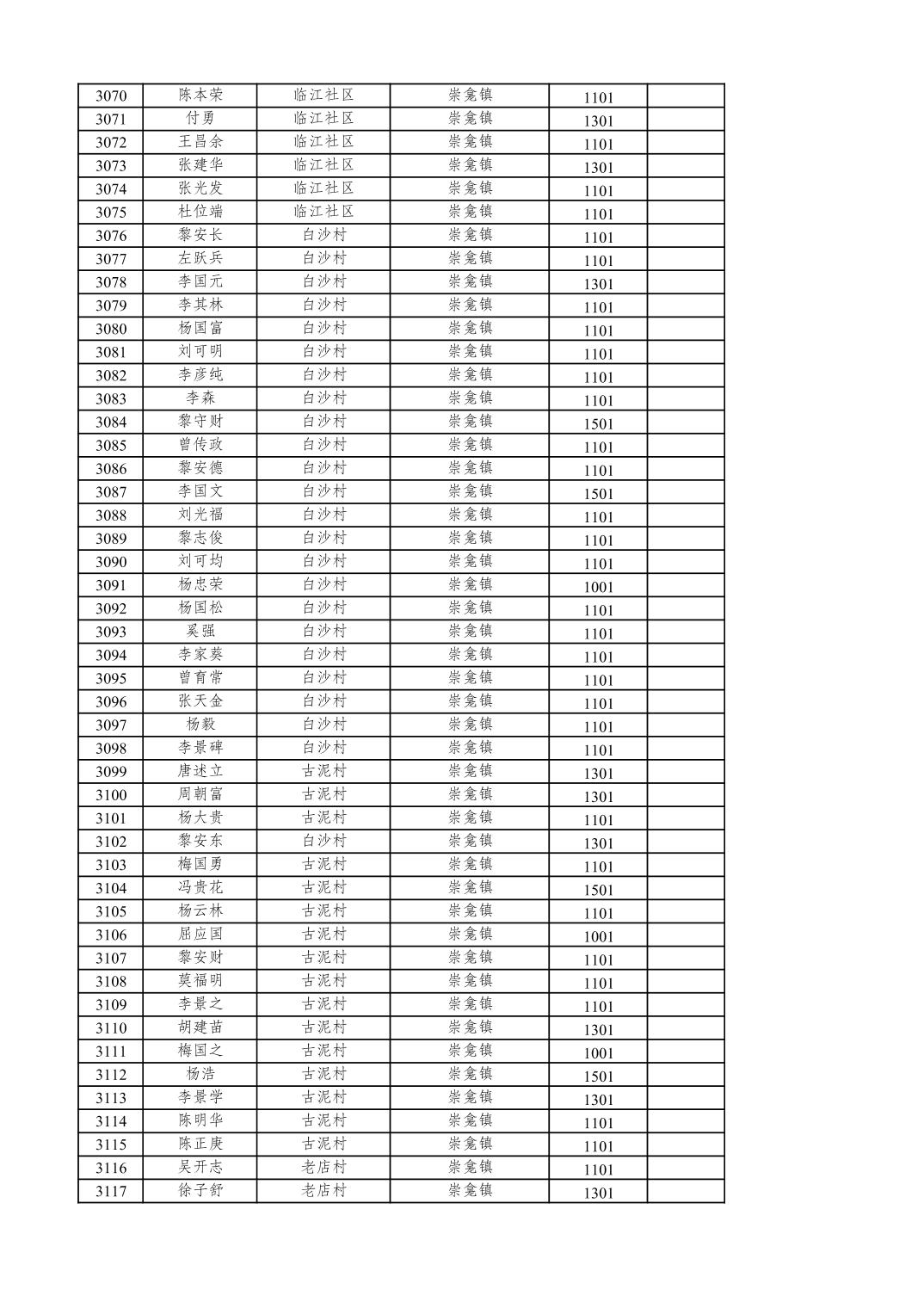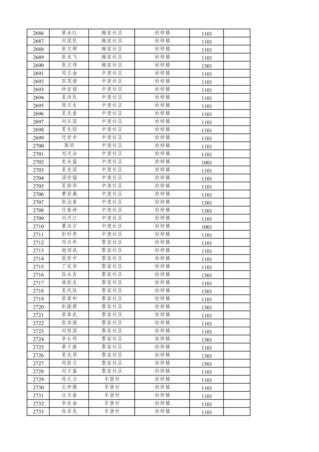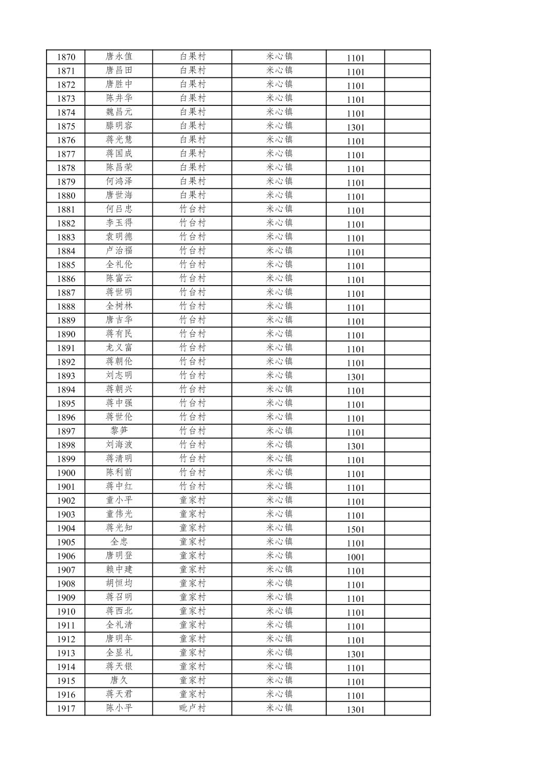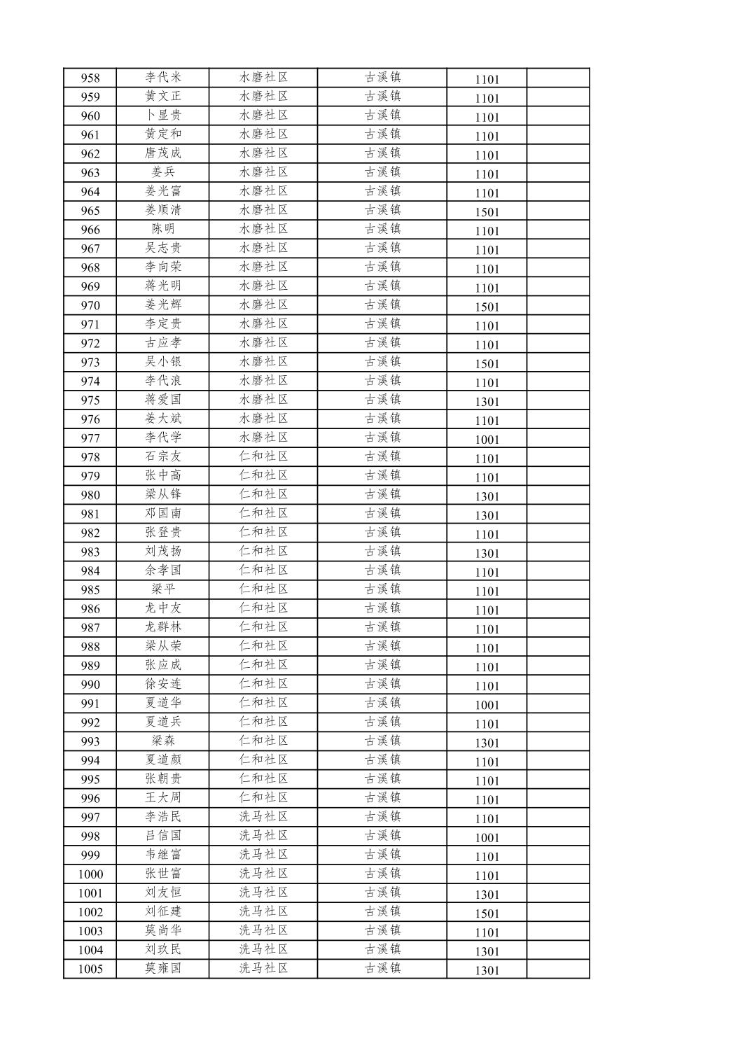 重庆市潼南区2025年12月特困供养金发放表