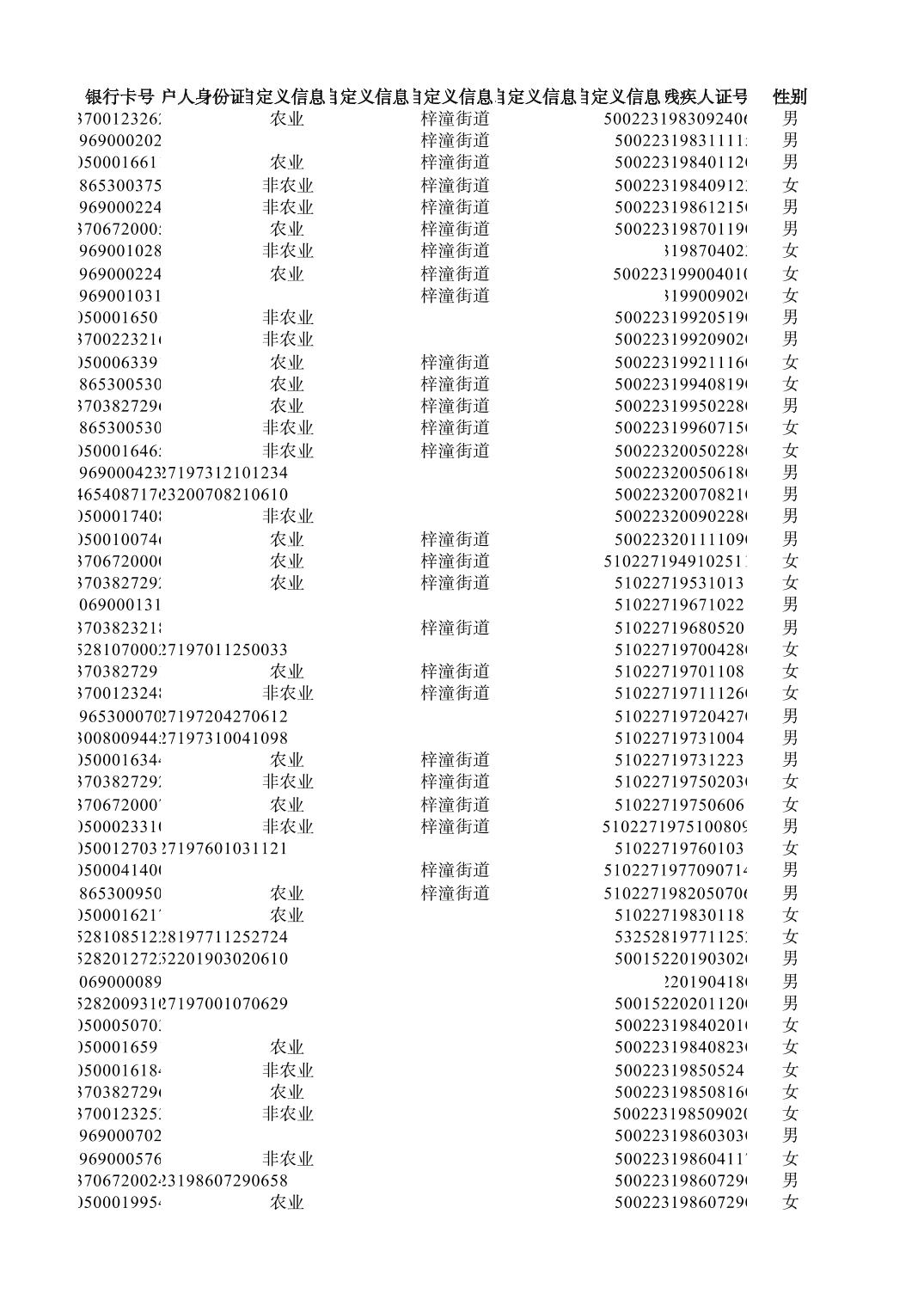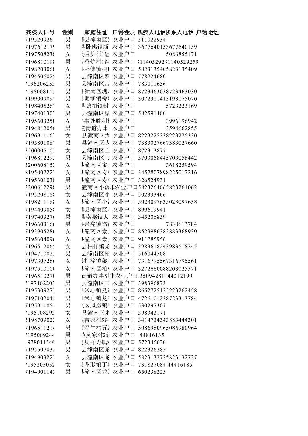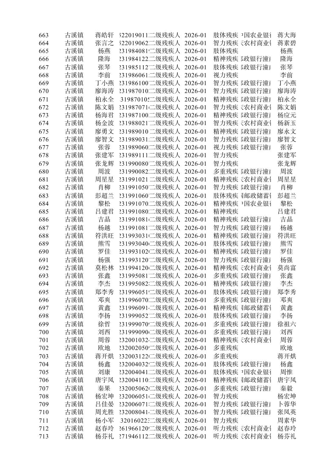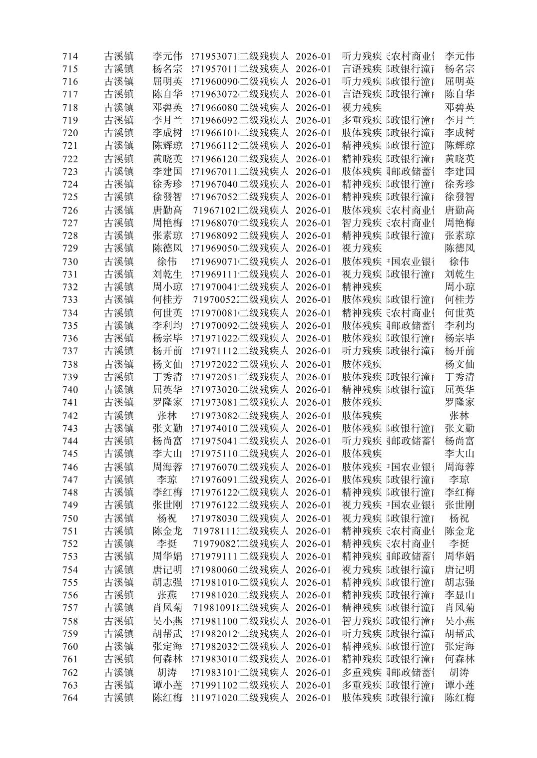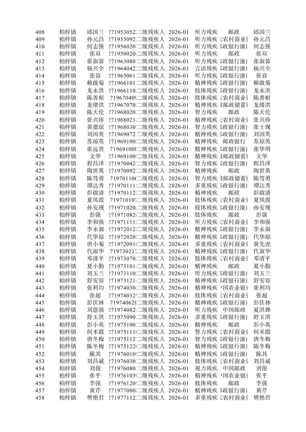 重庆市潼南区2026年1月困难残疾人生活补贴发放表
