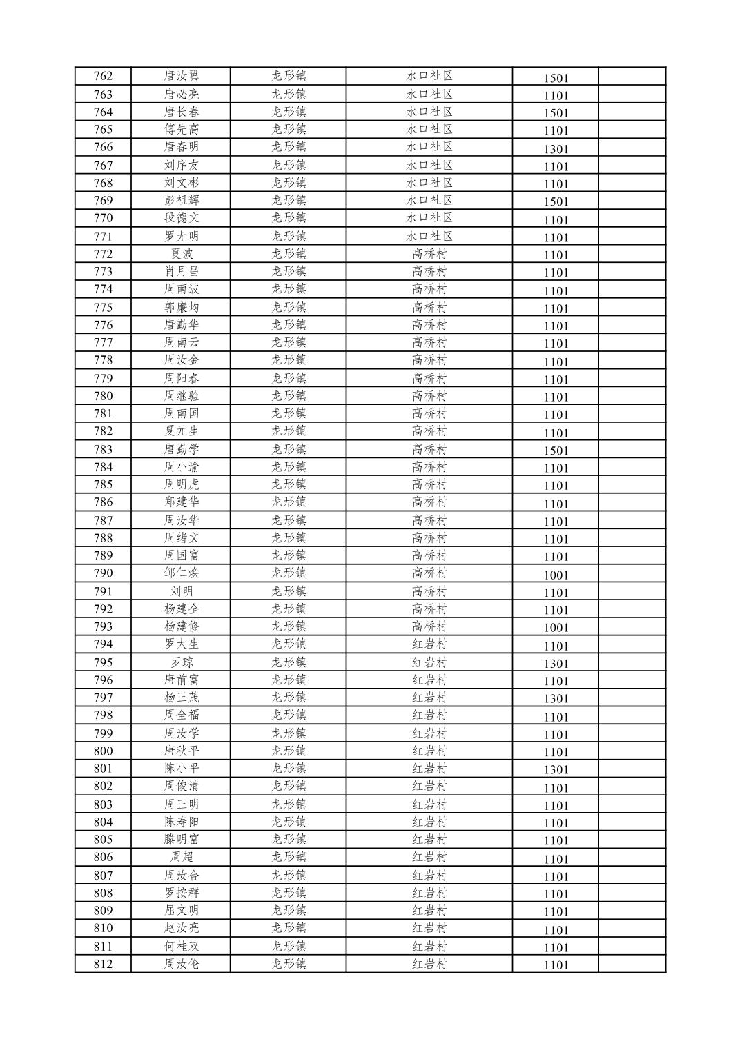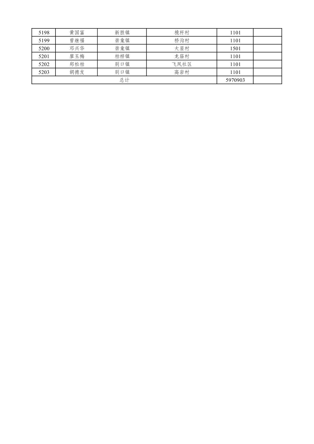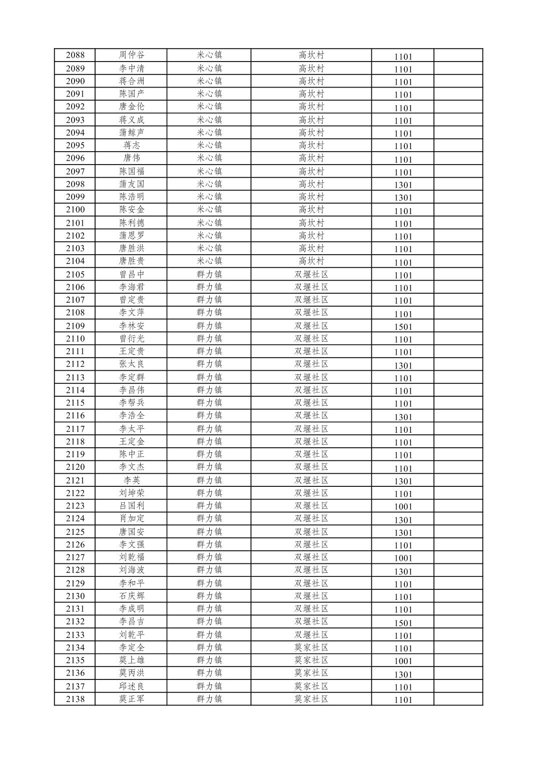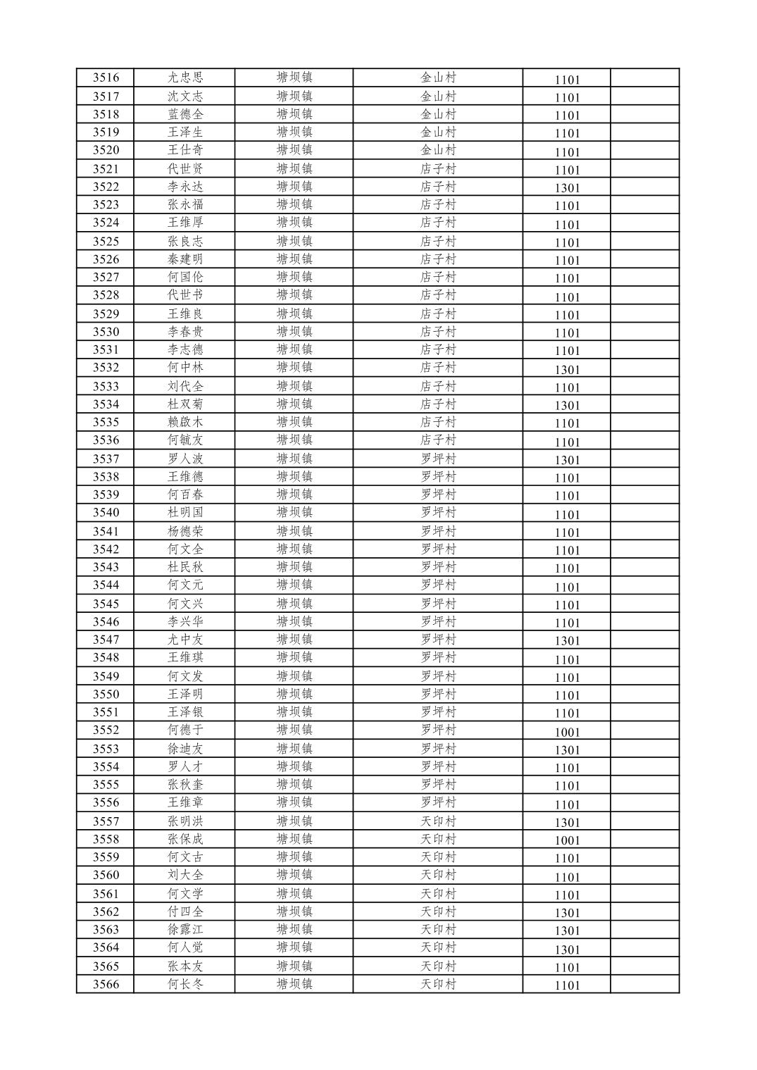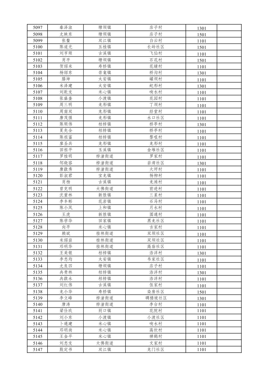 重庆市潼南区2026年1月特困供养金发放表
