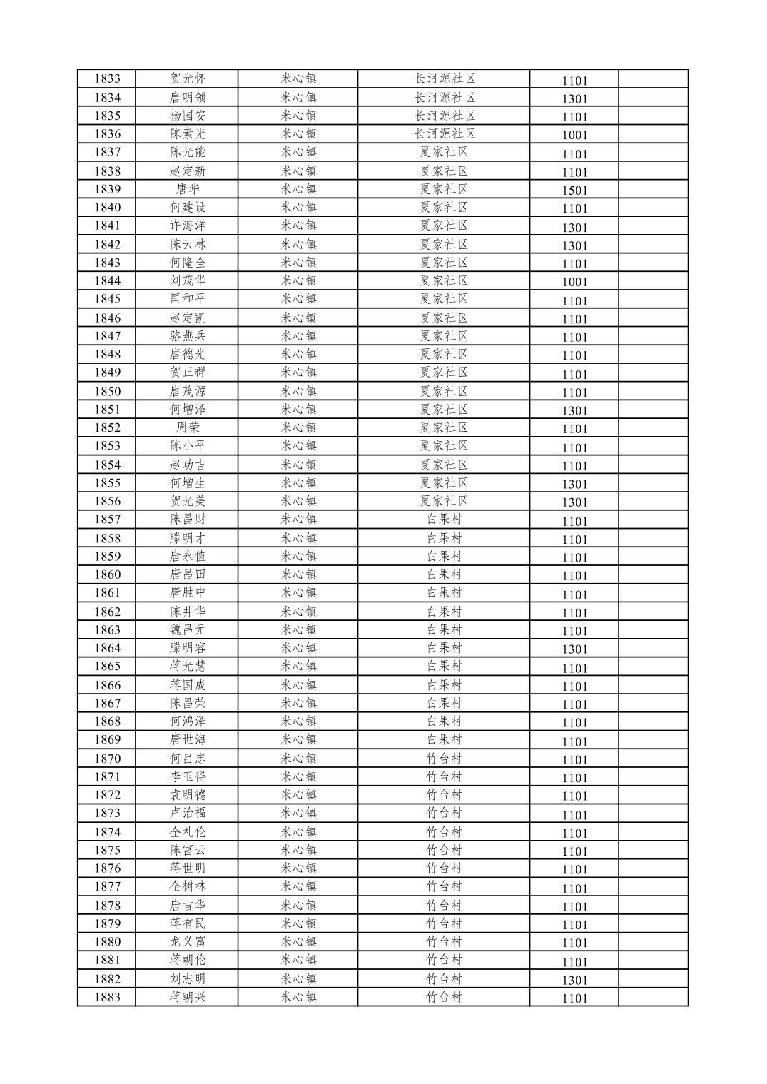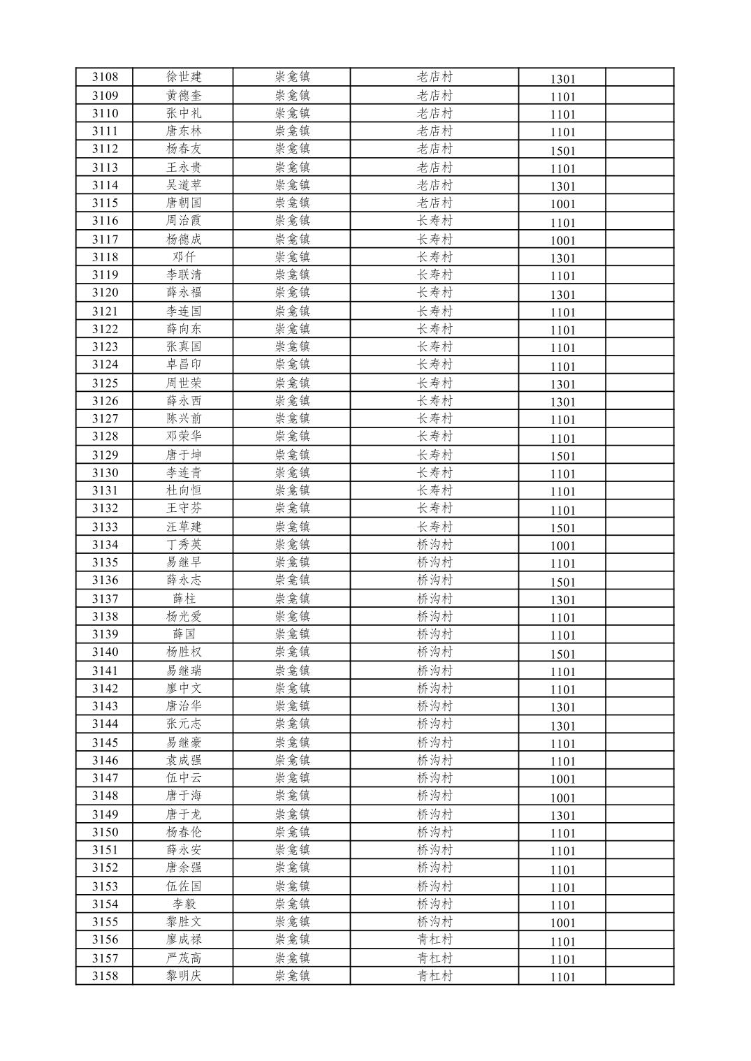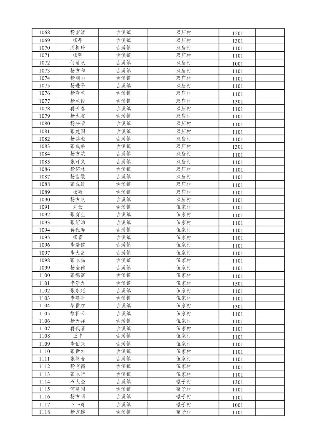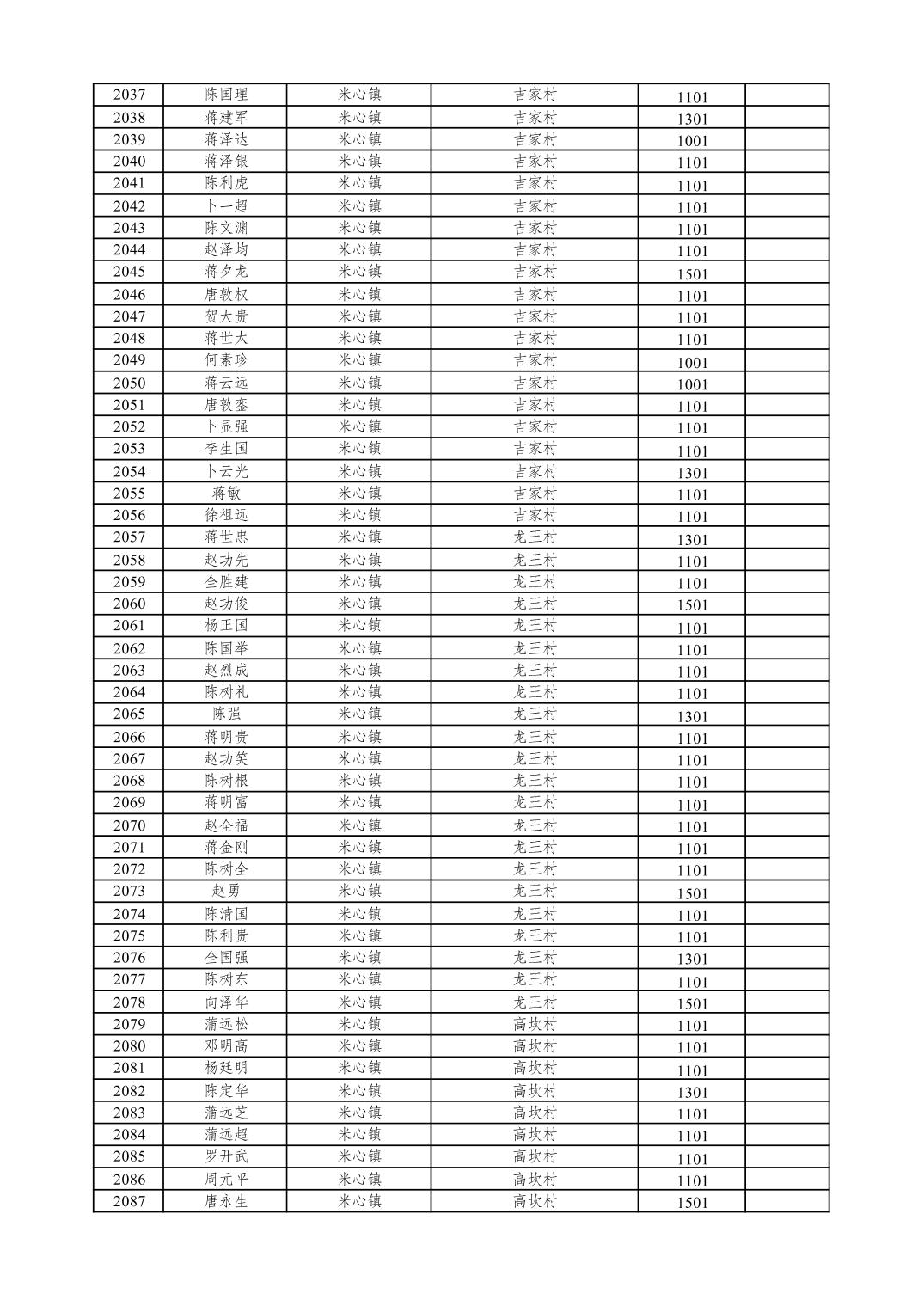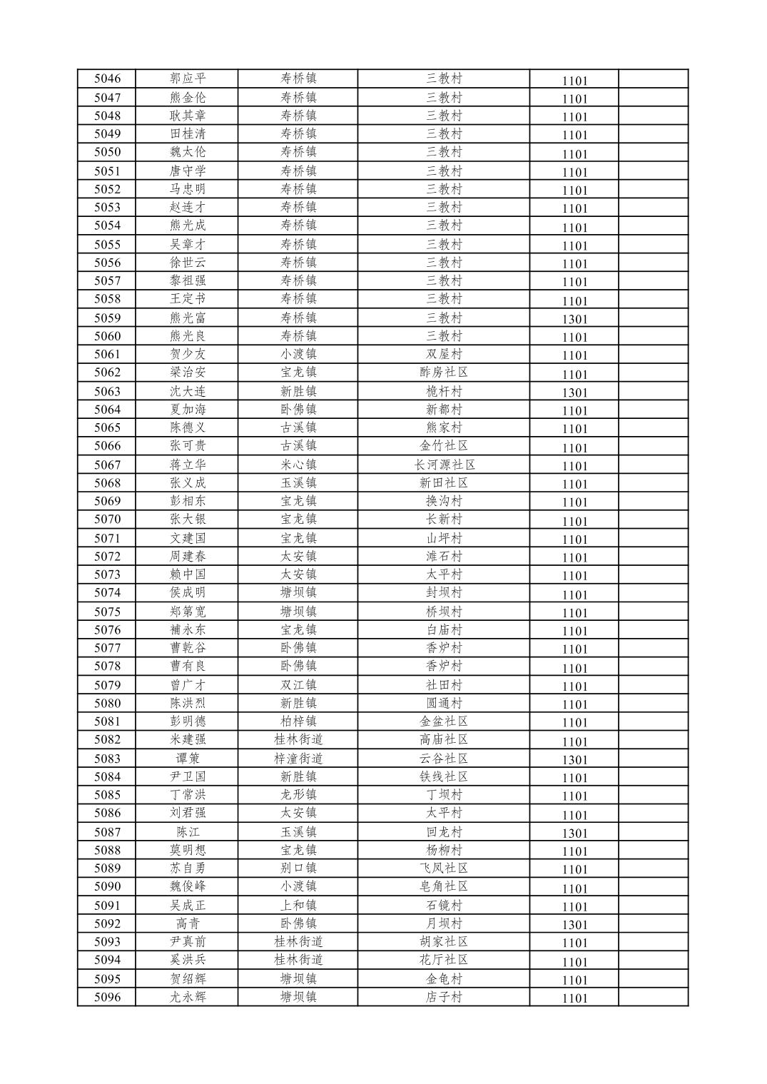 重庆市潼南区2026年1月特困供养金发放表