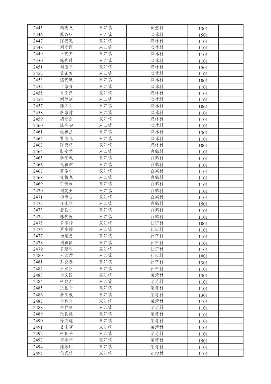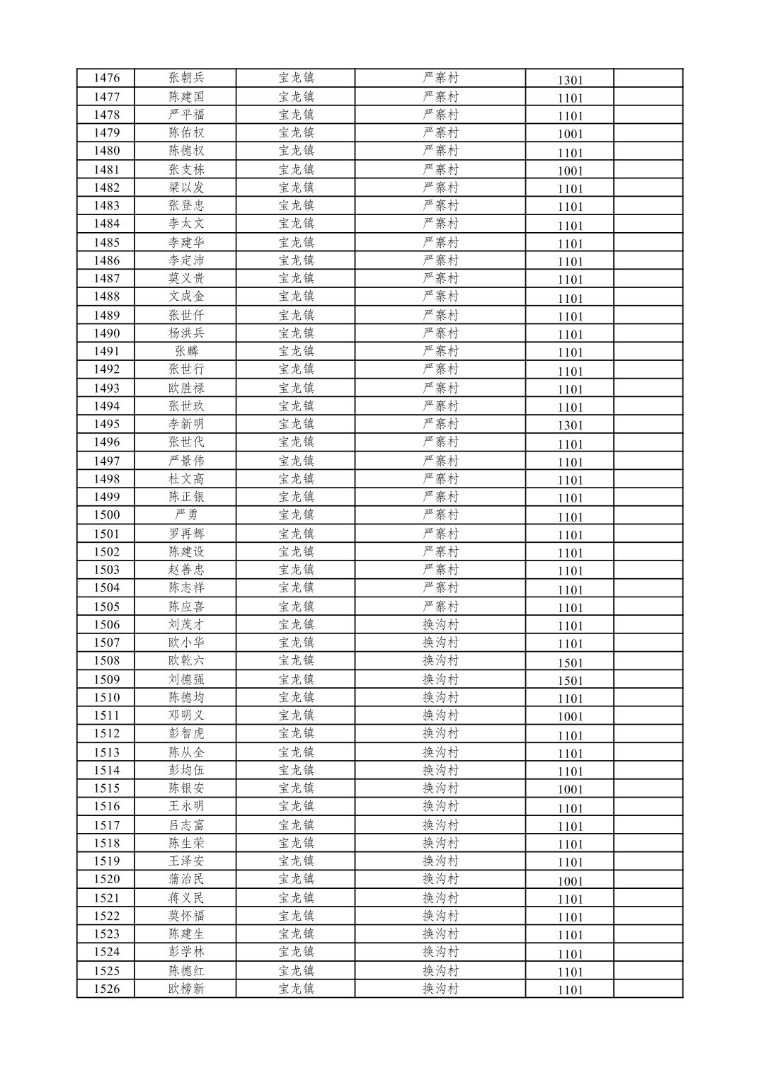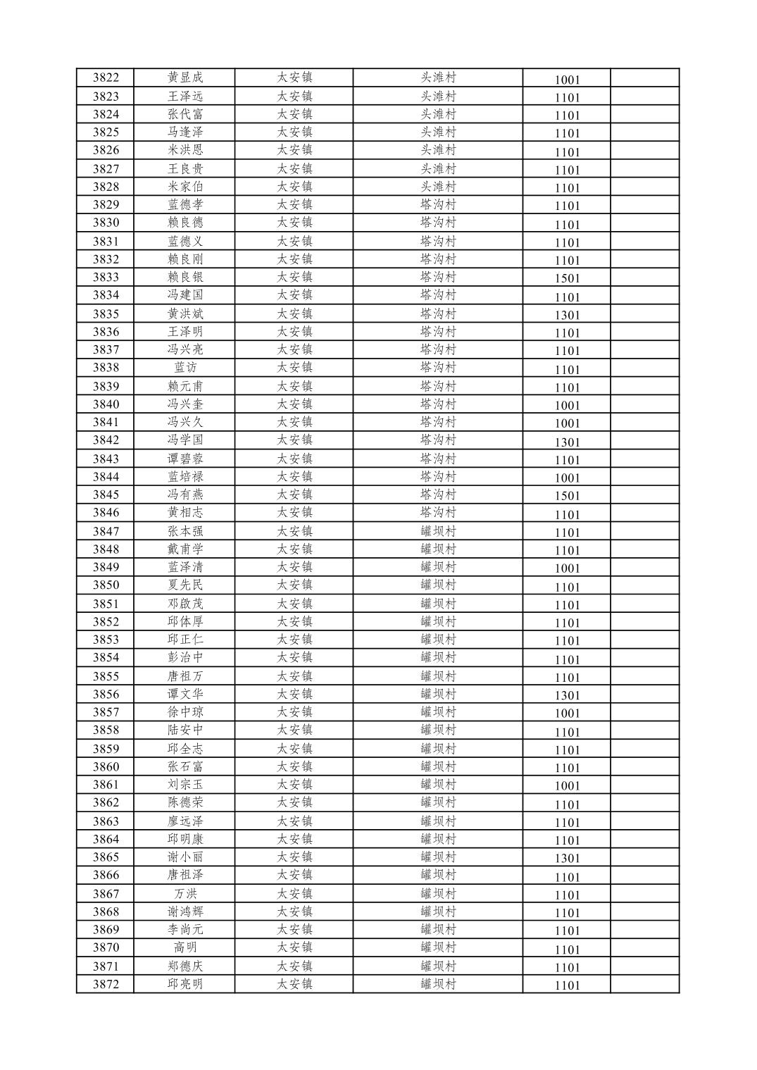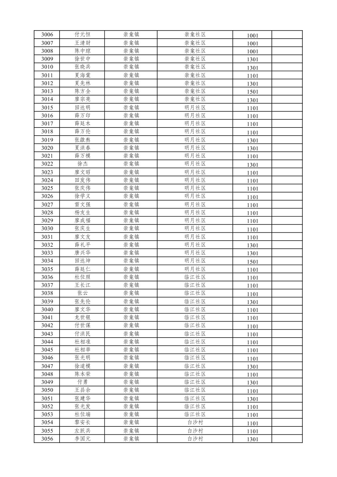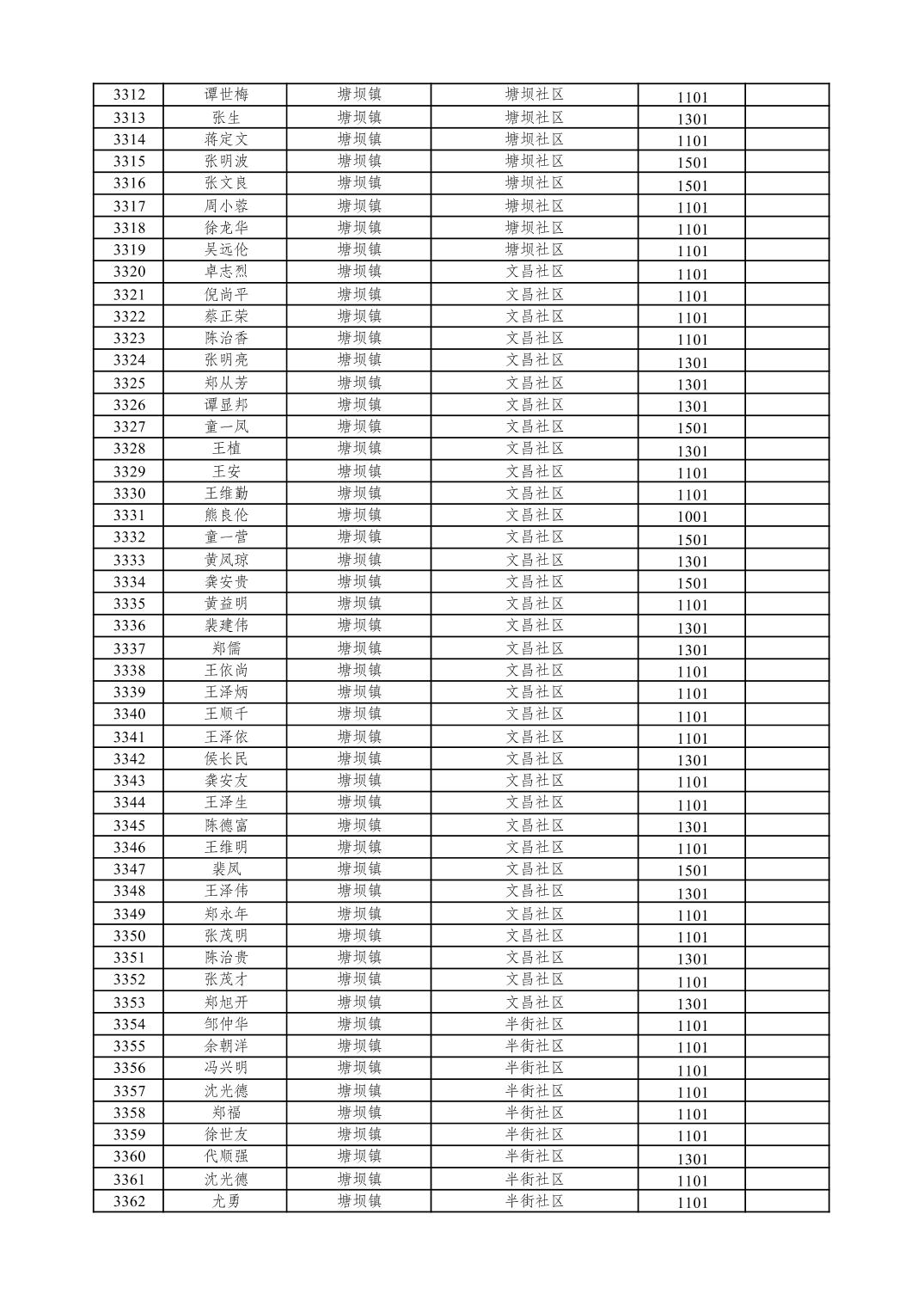 重庆市潼南区2026年1月特困供养金发放表