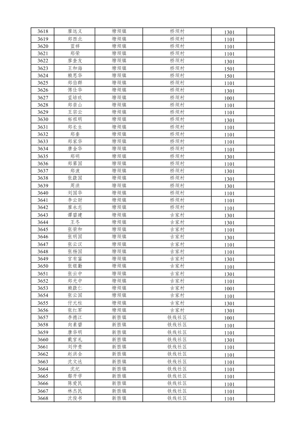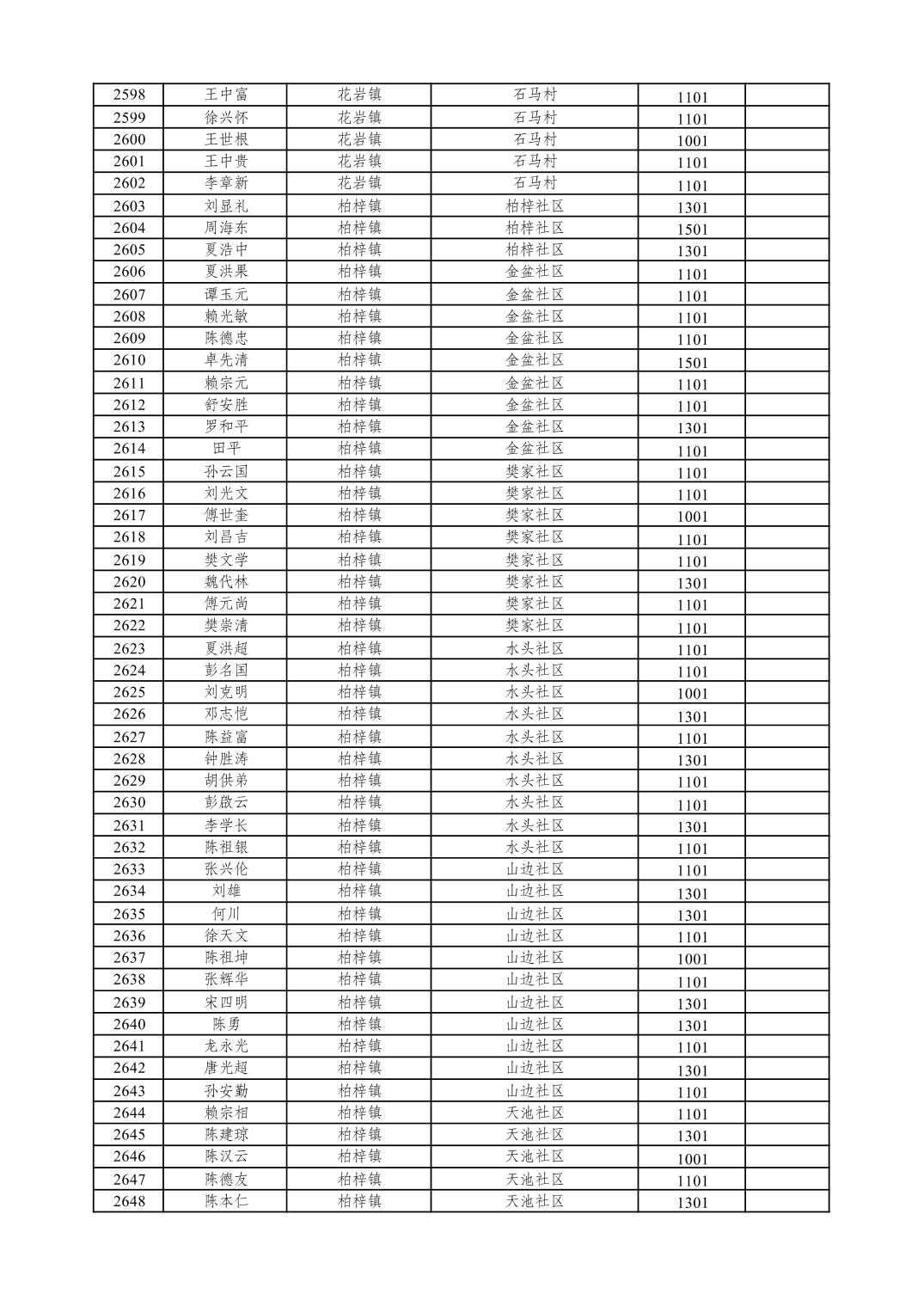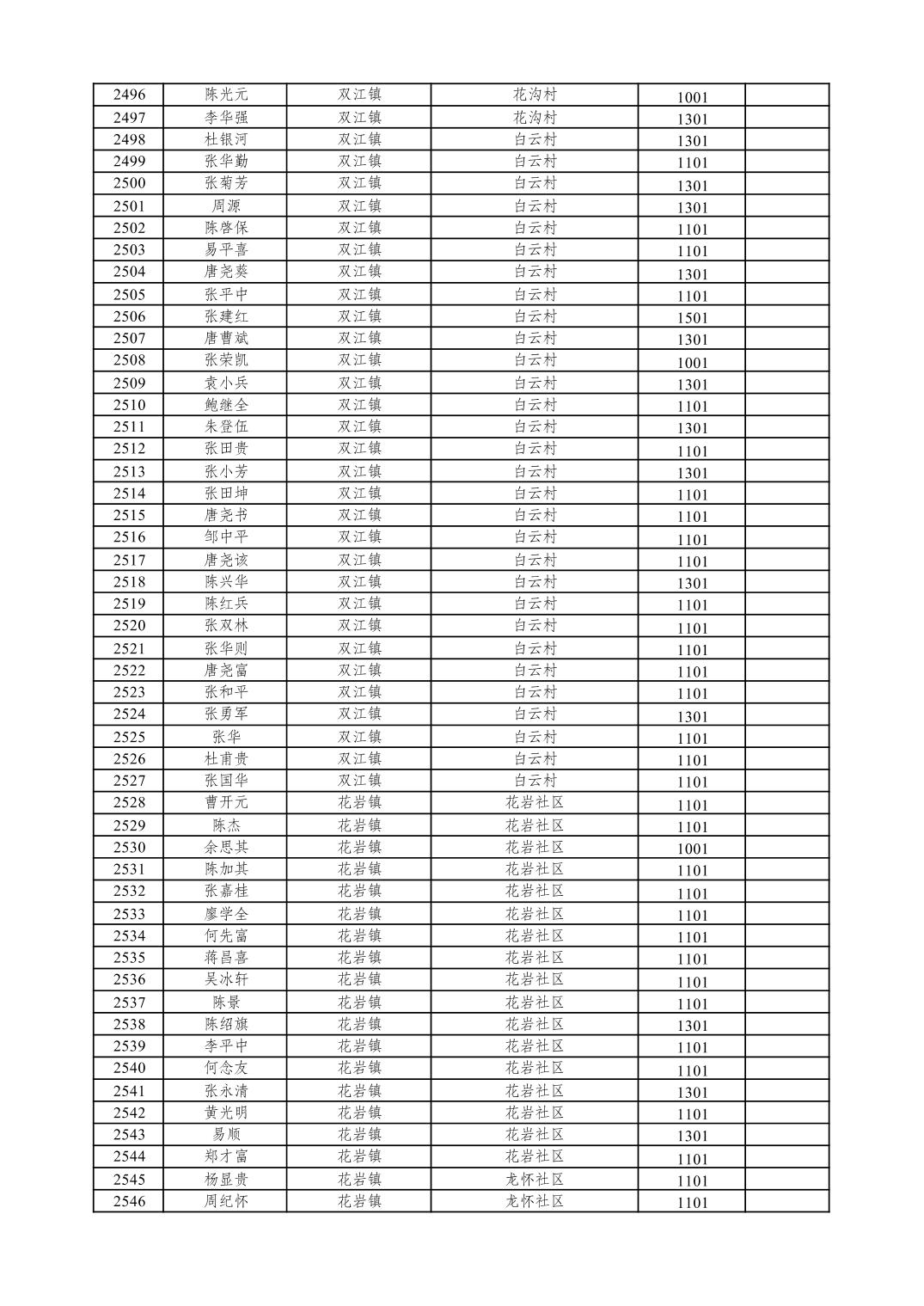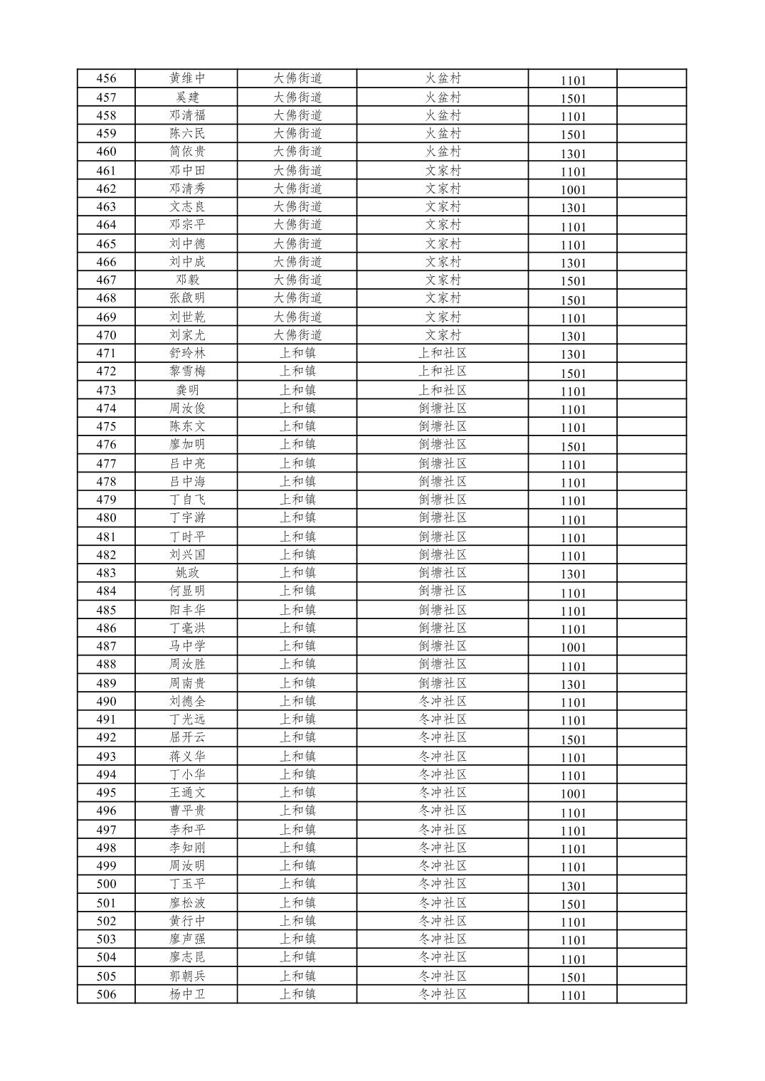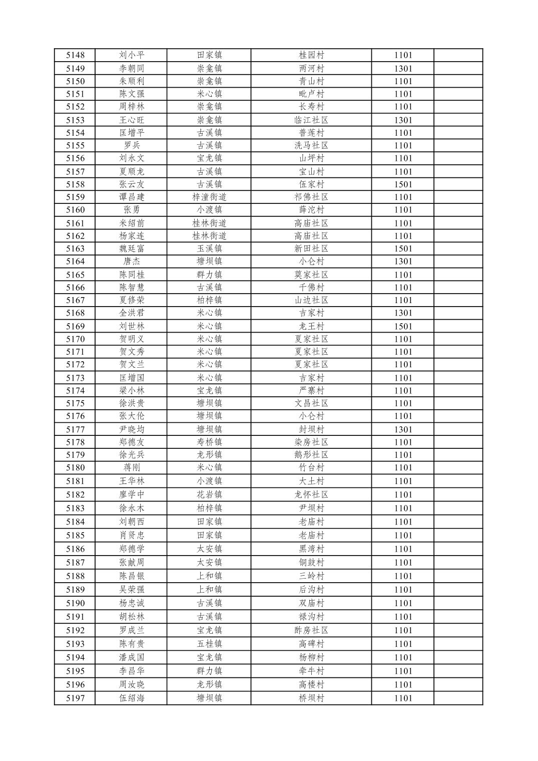 重庆市潼南区2026年1月特困供养金发放表
