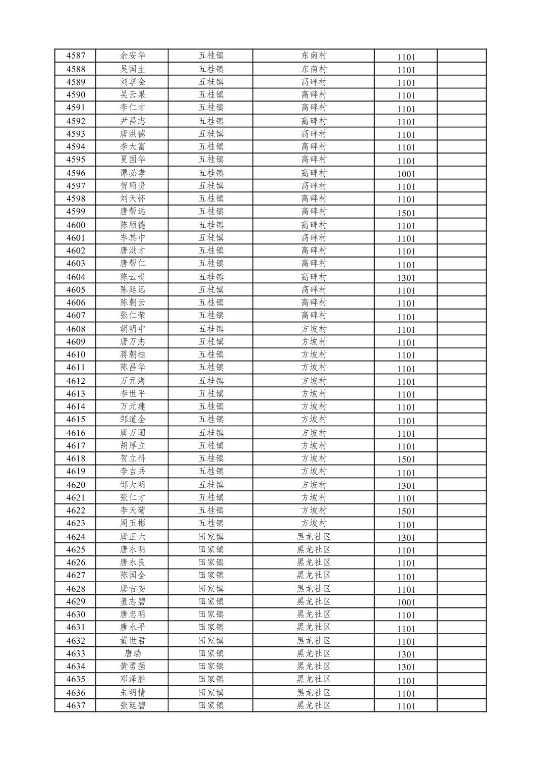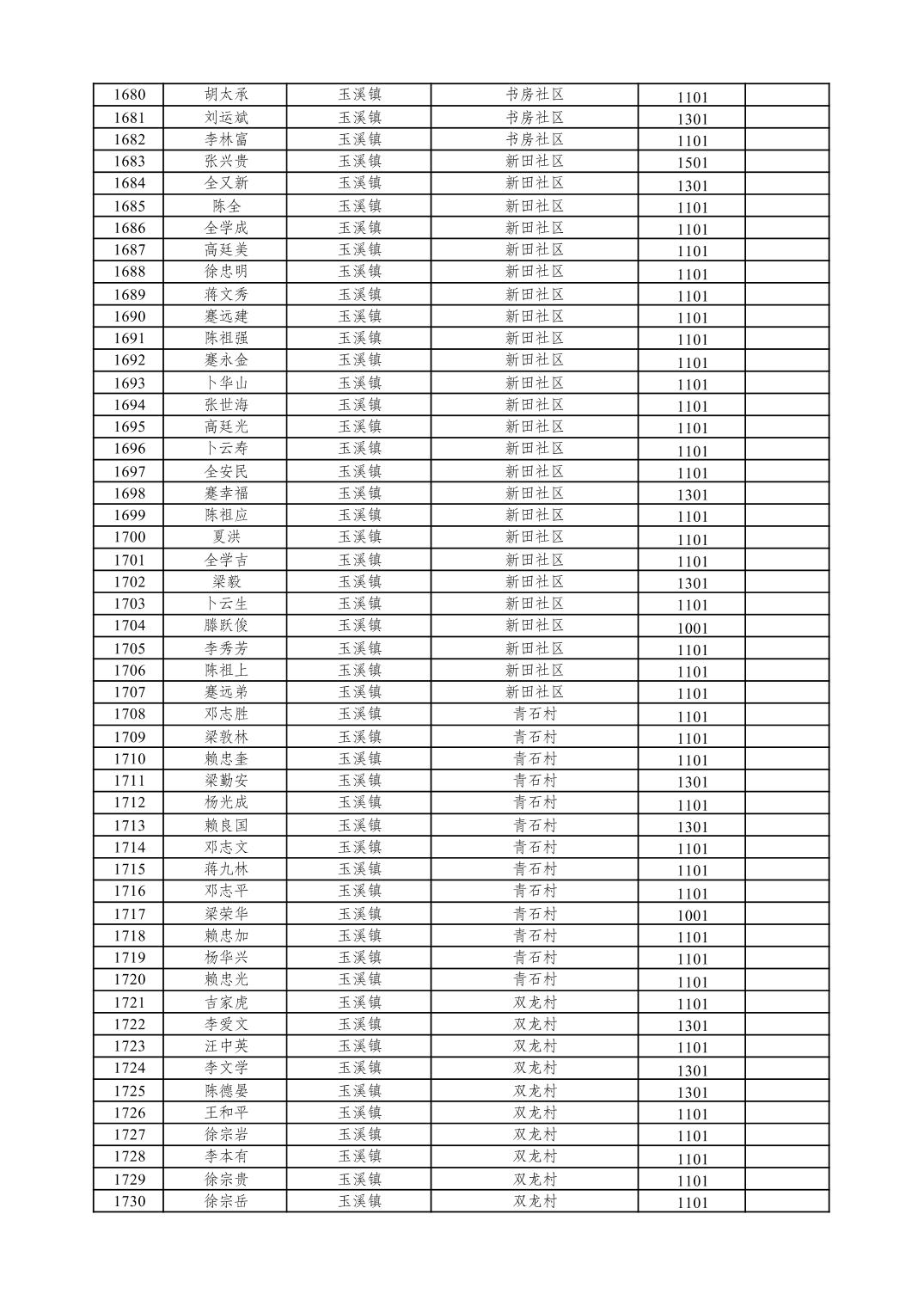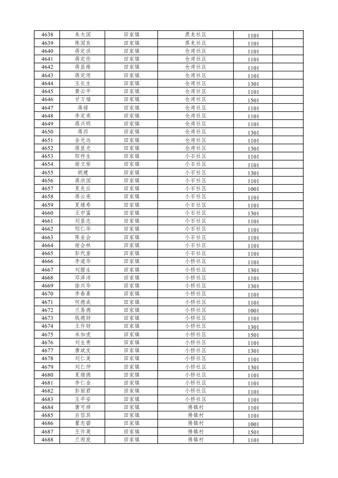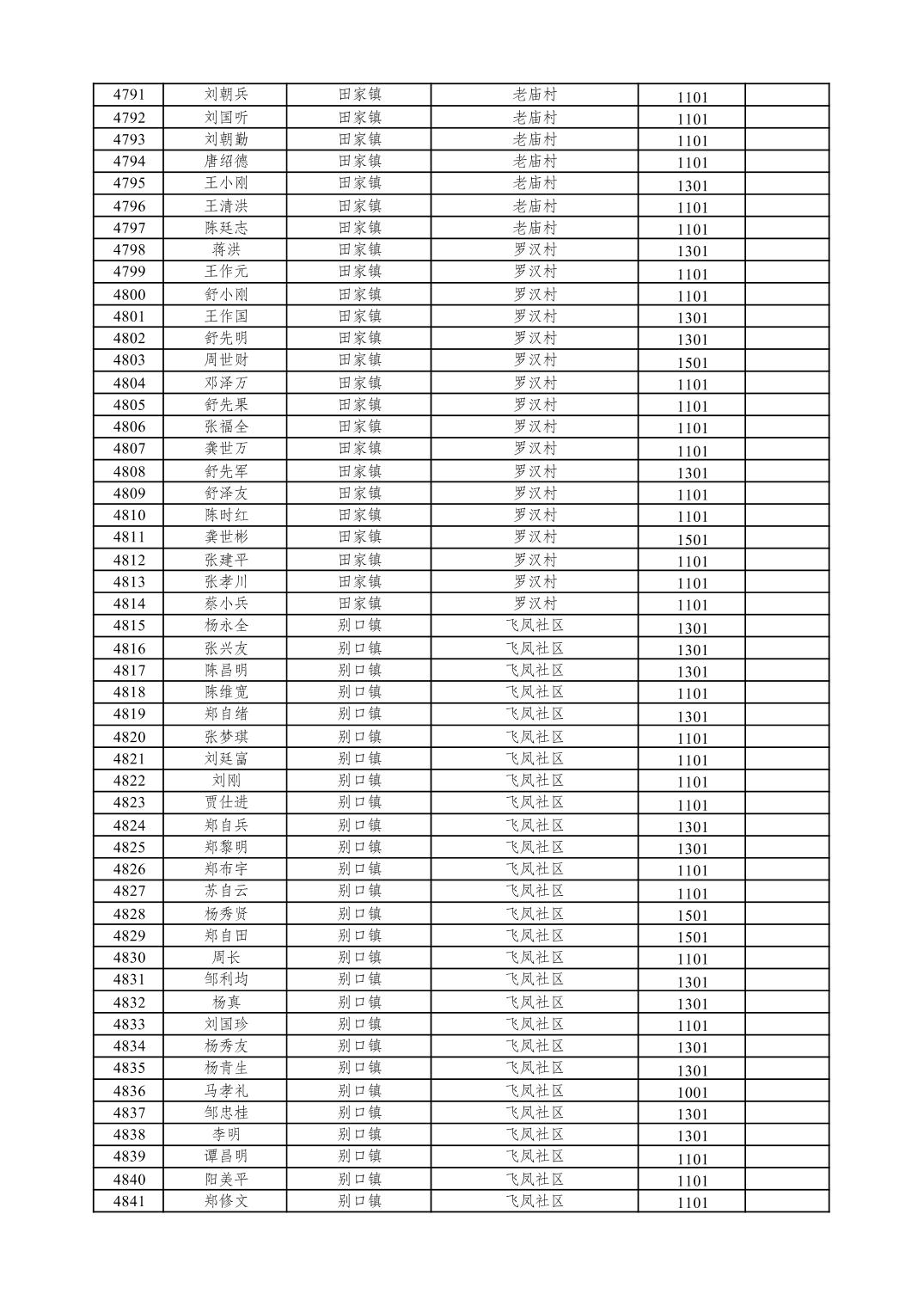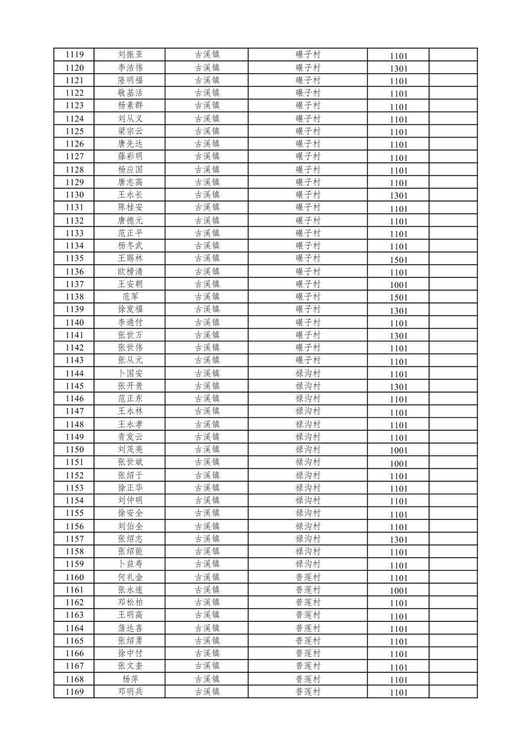 重庆市潼南区2026年1月特困供养金发放表