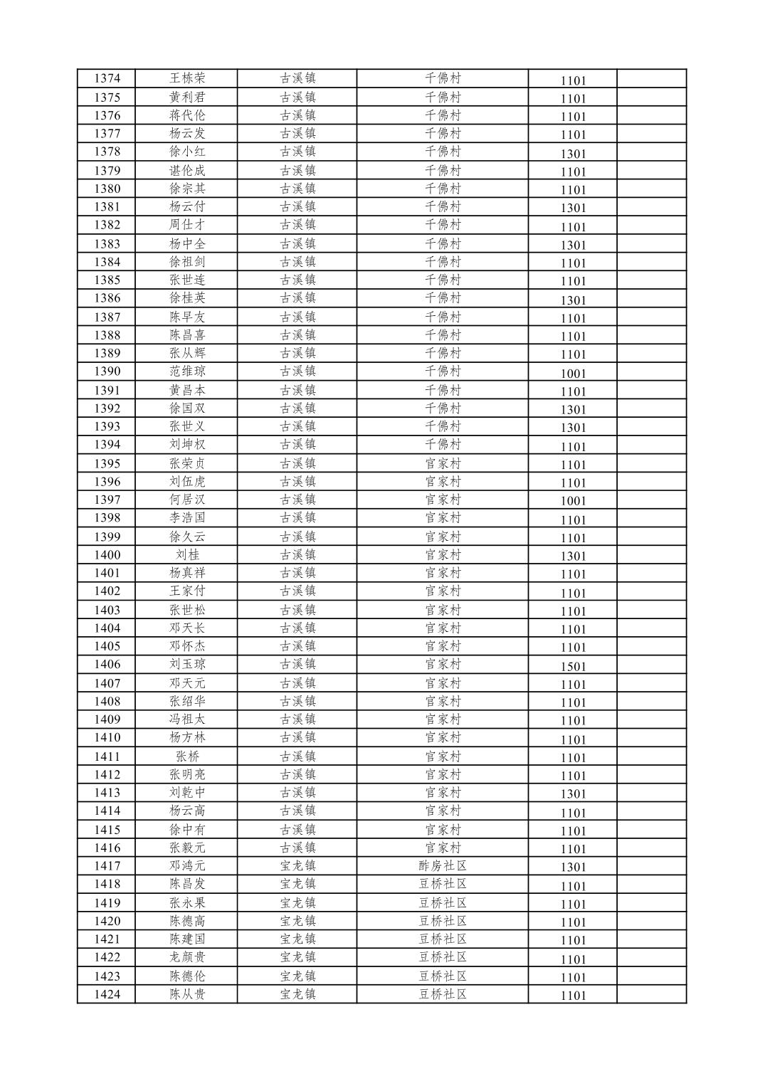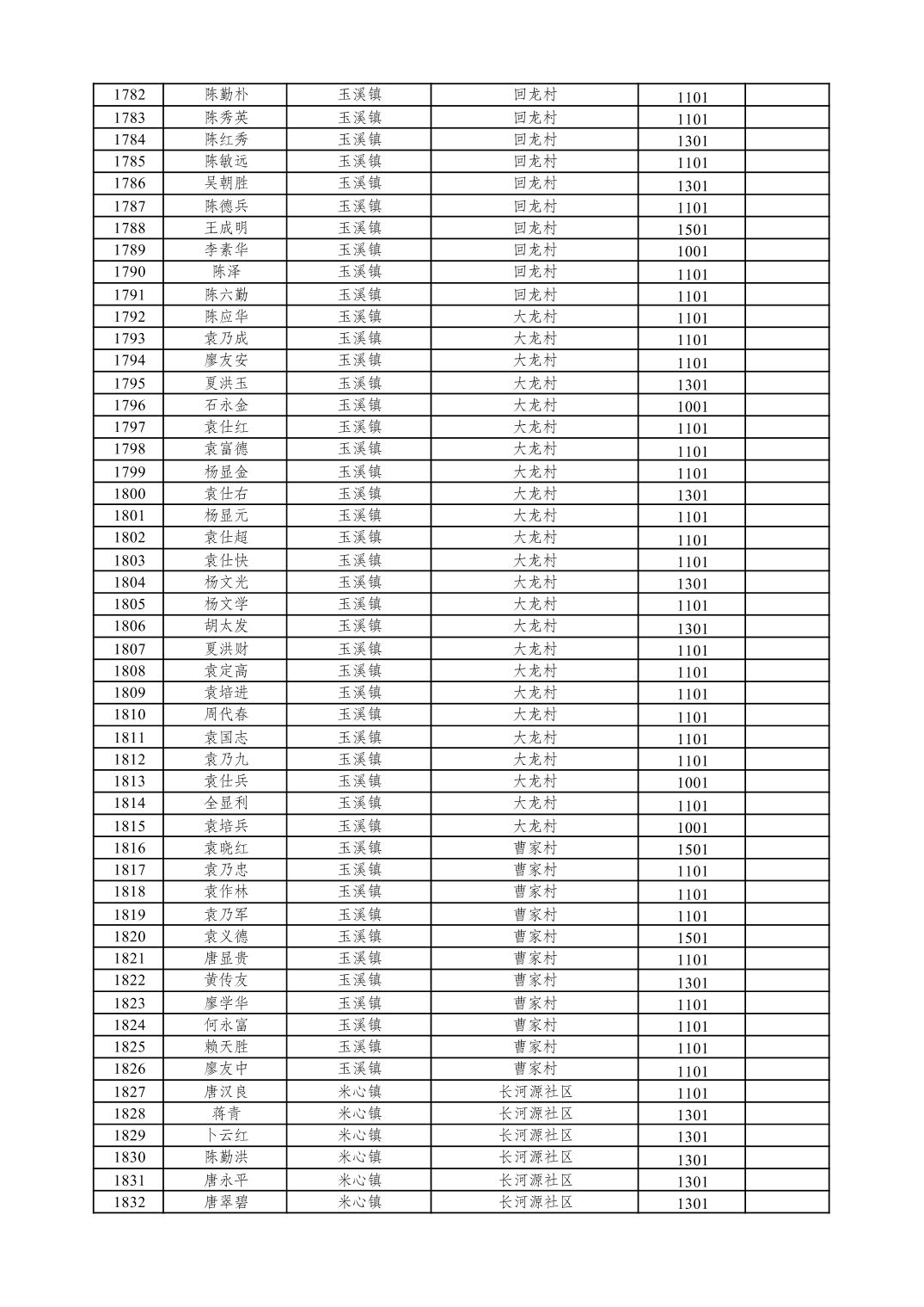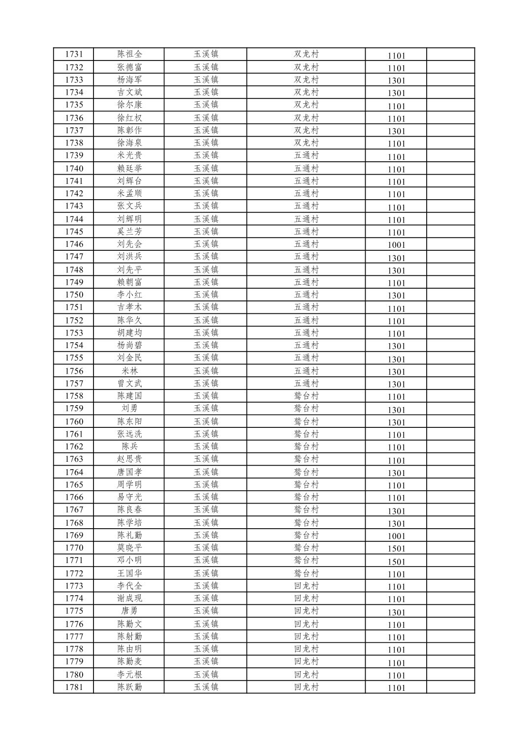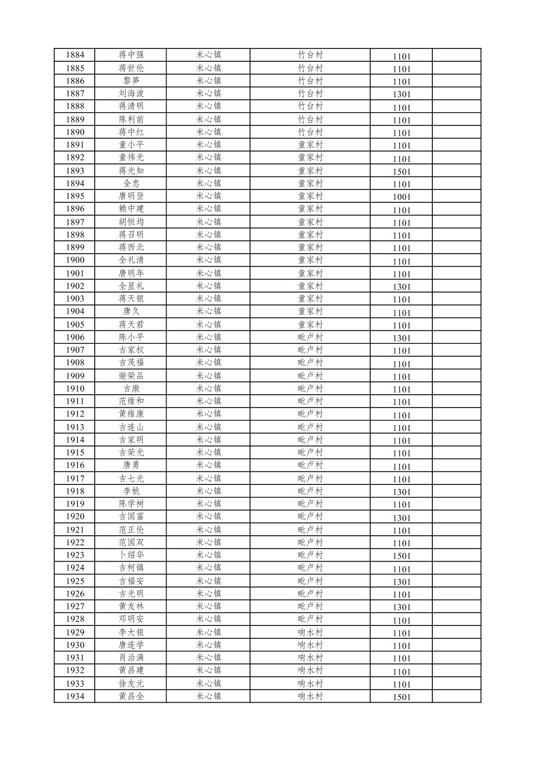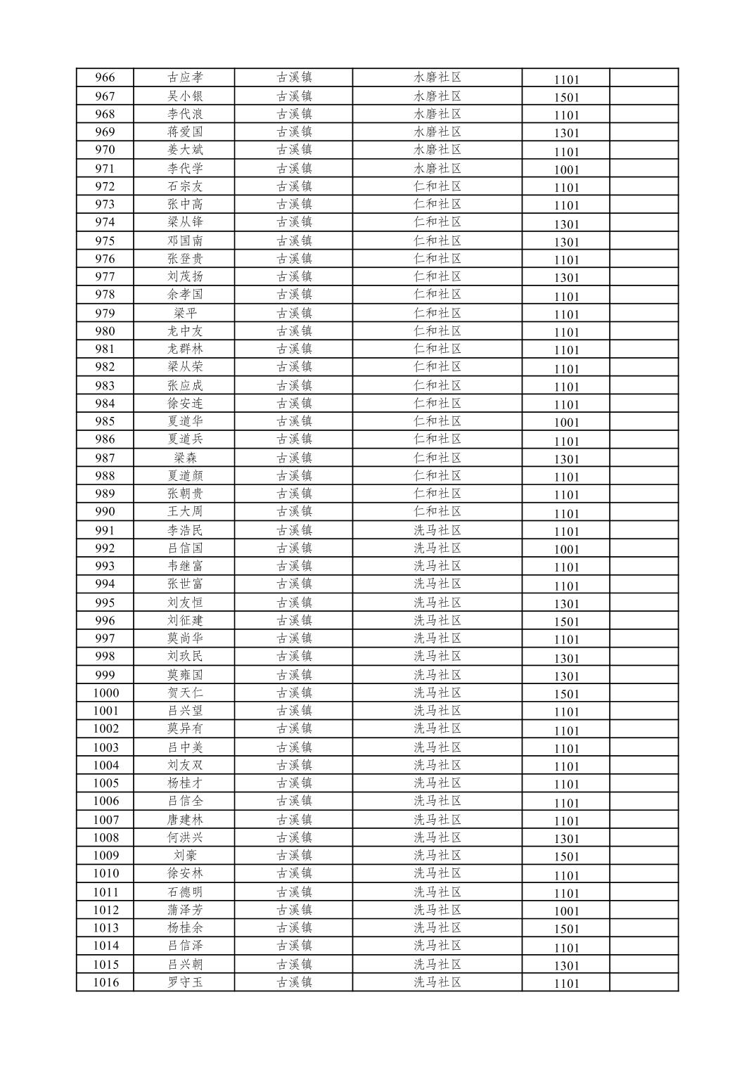 重庆市潼南区2026年1月特困供养金发放表