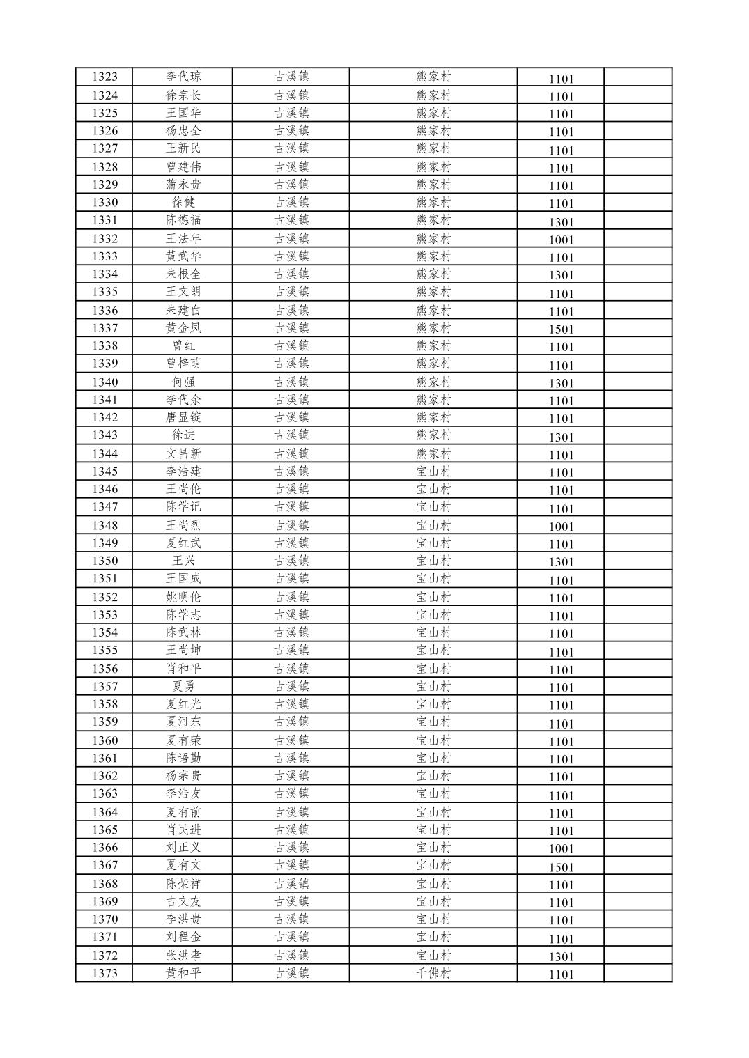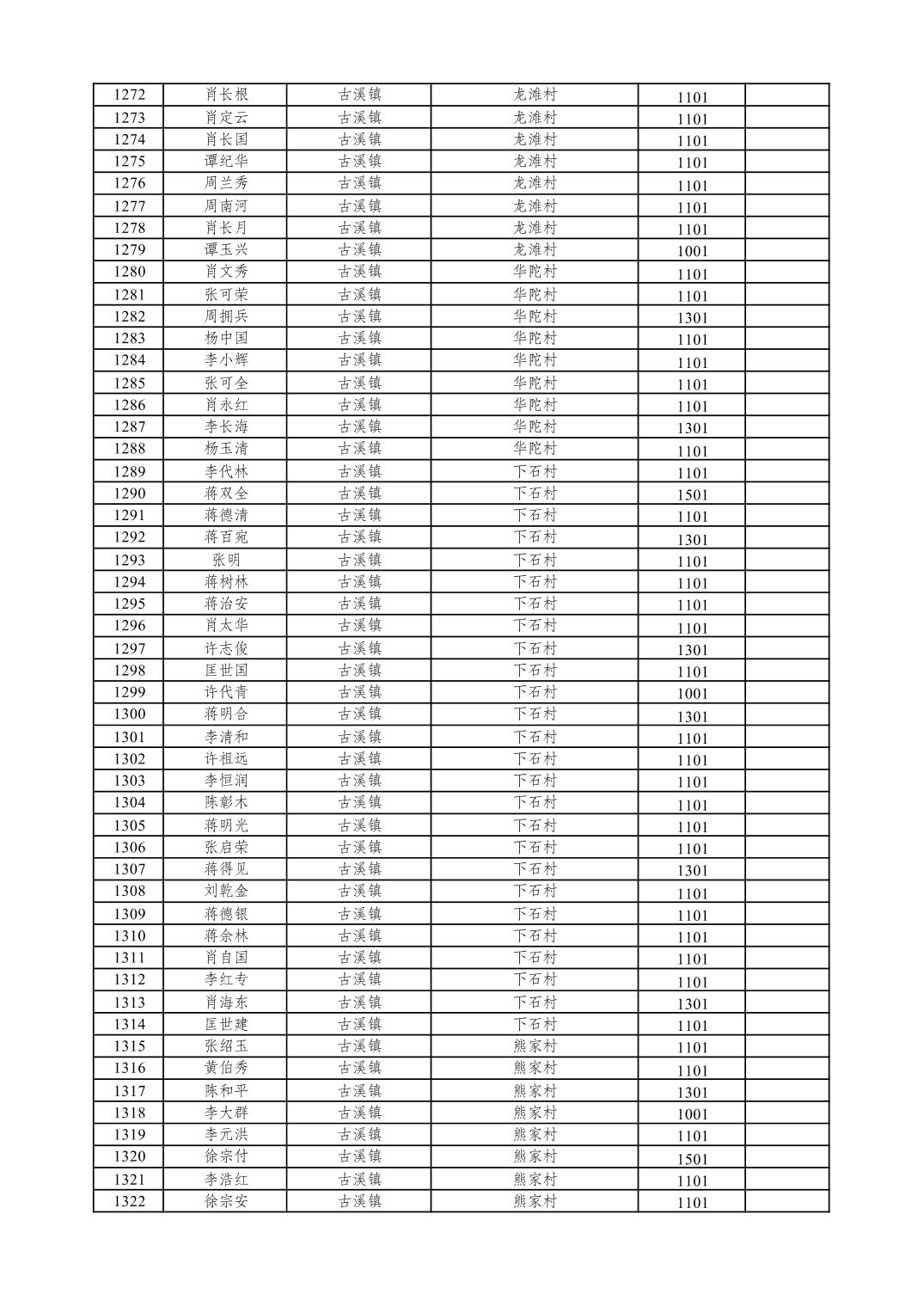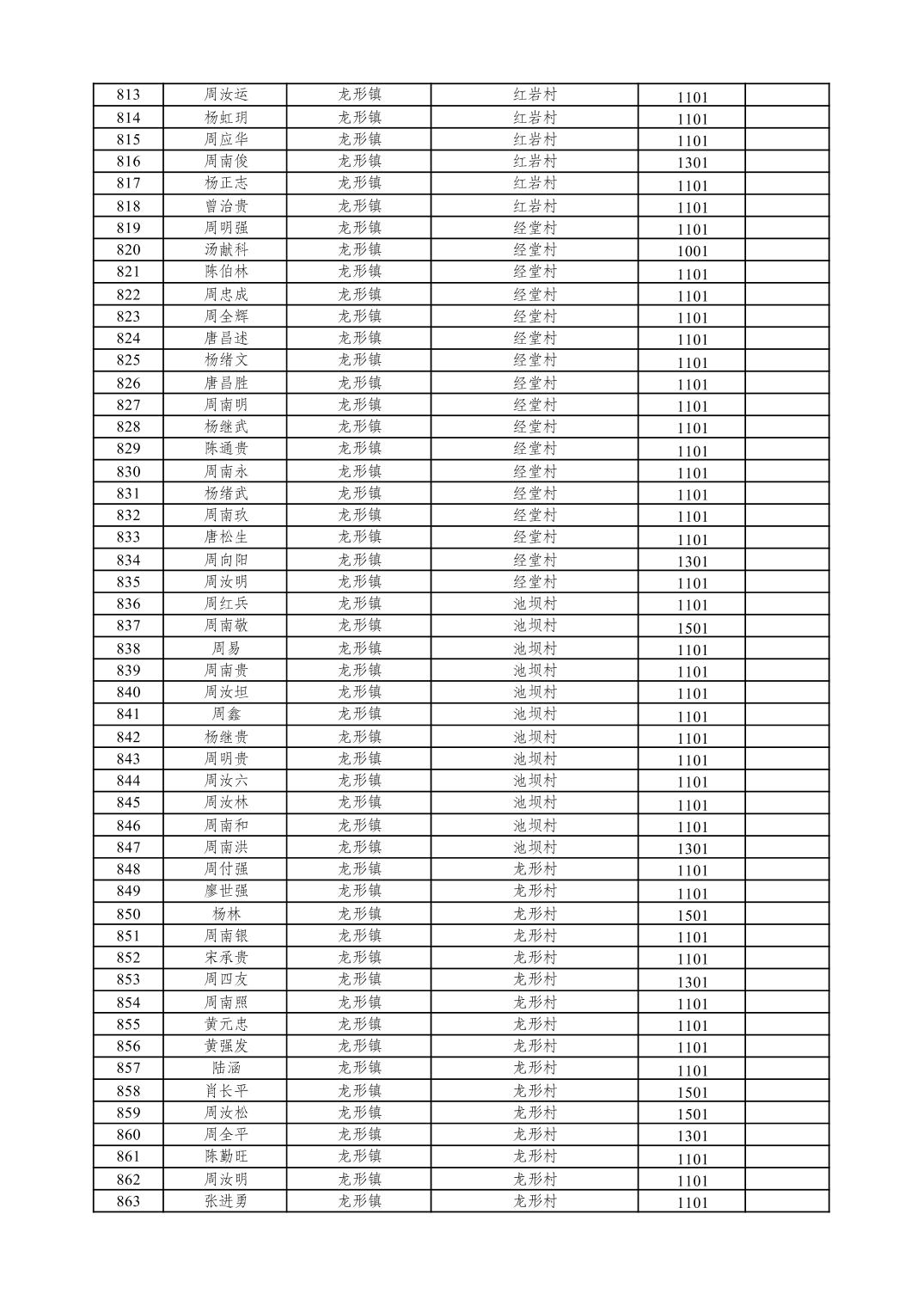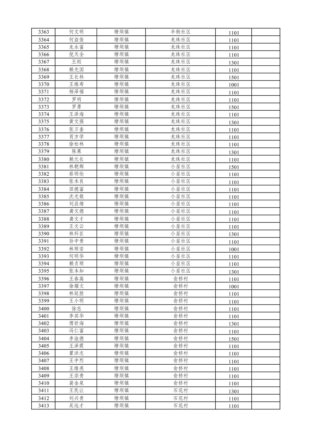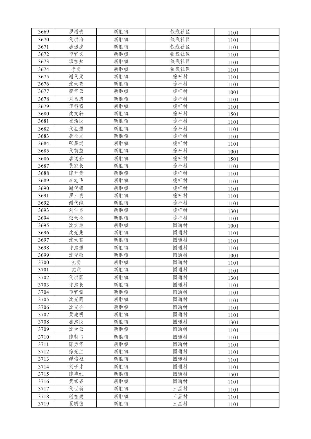重庆市潼南区2026年1月特困供养金发放表