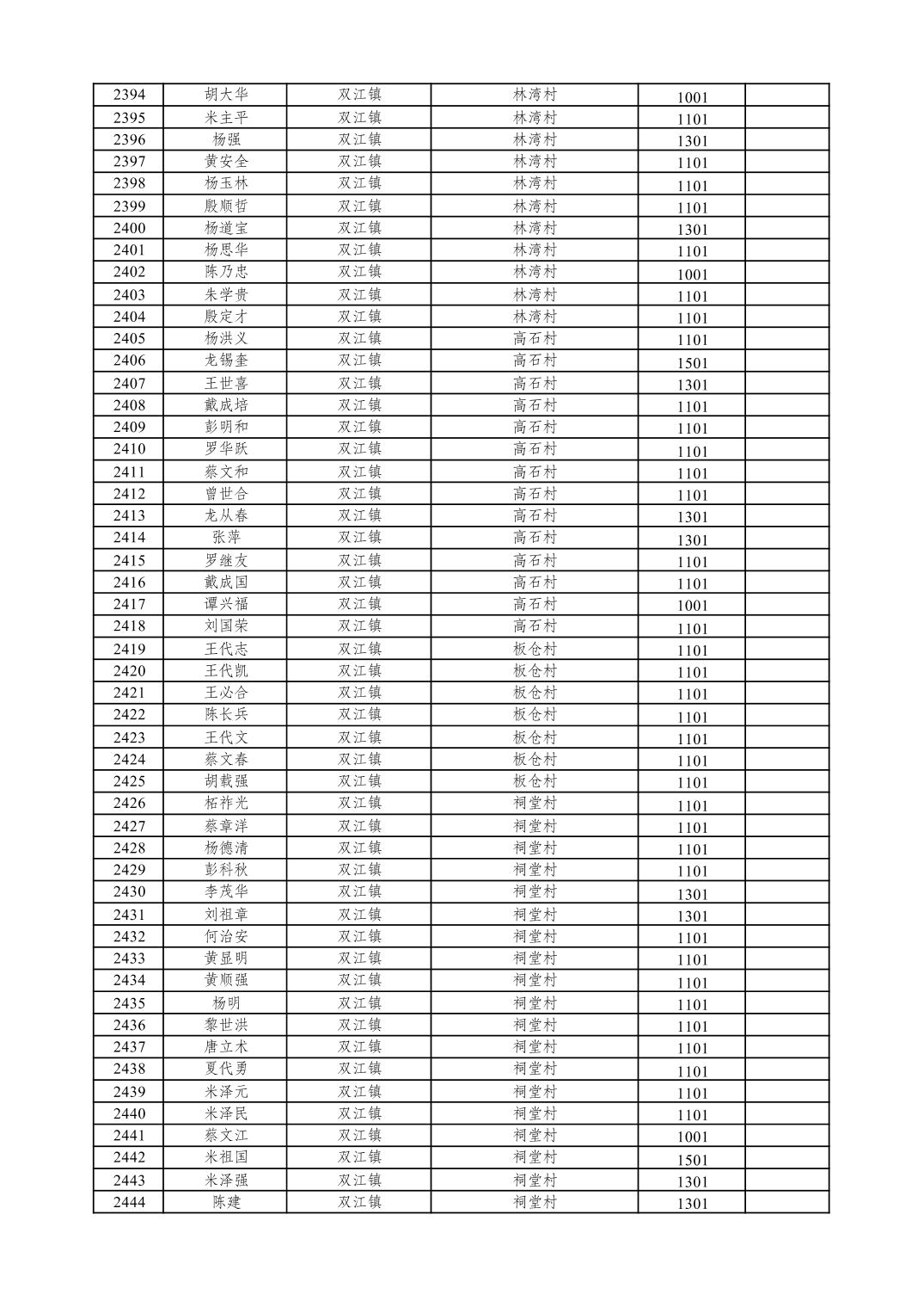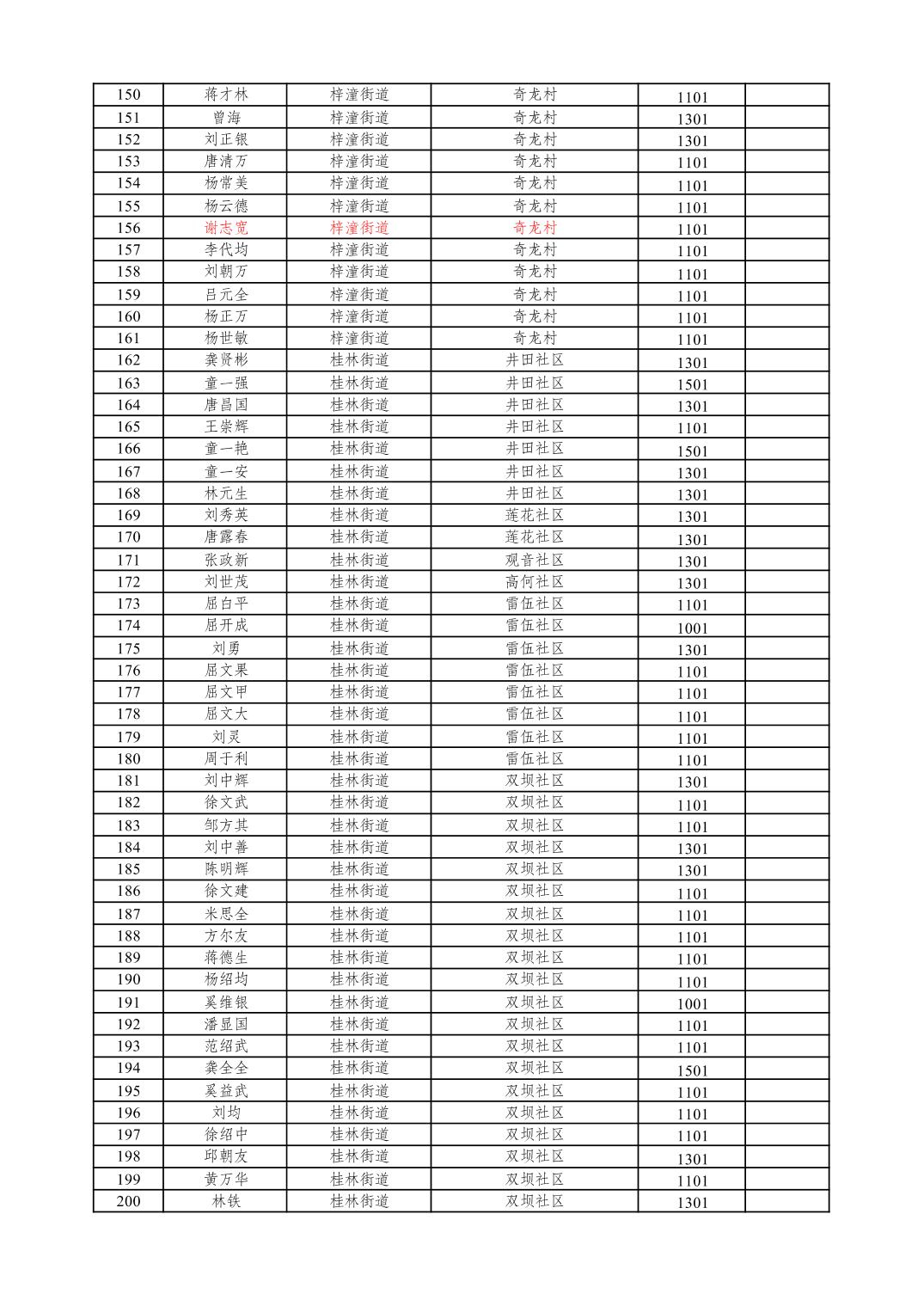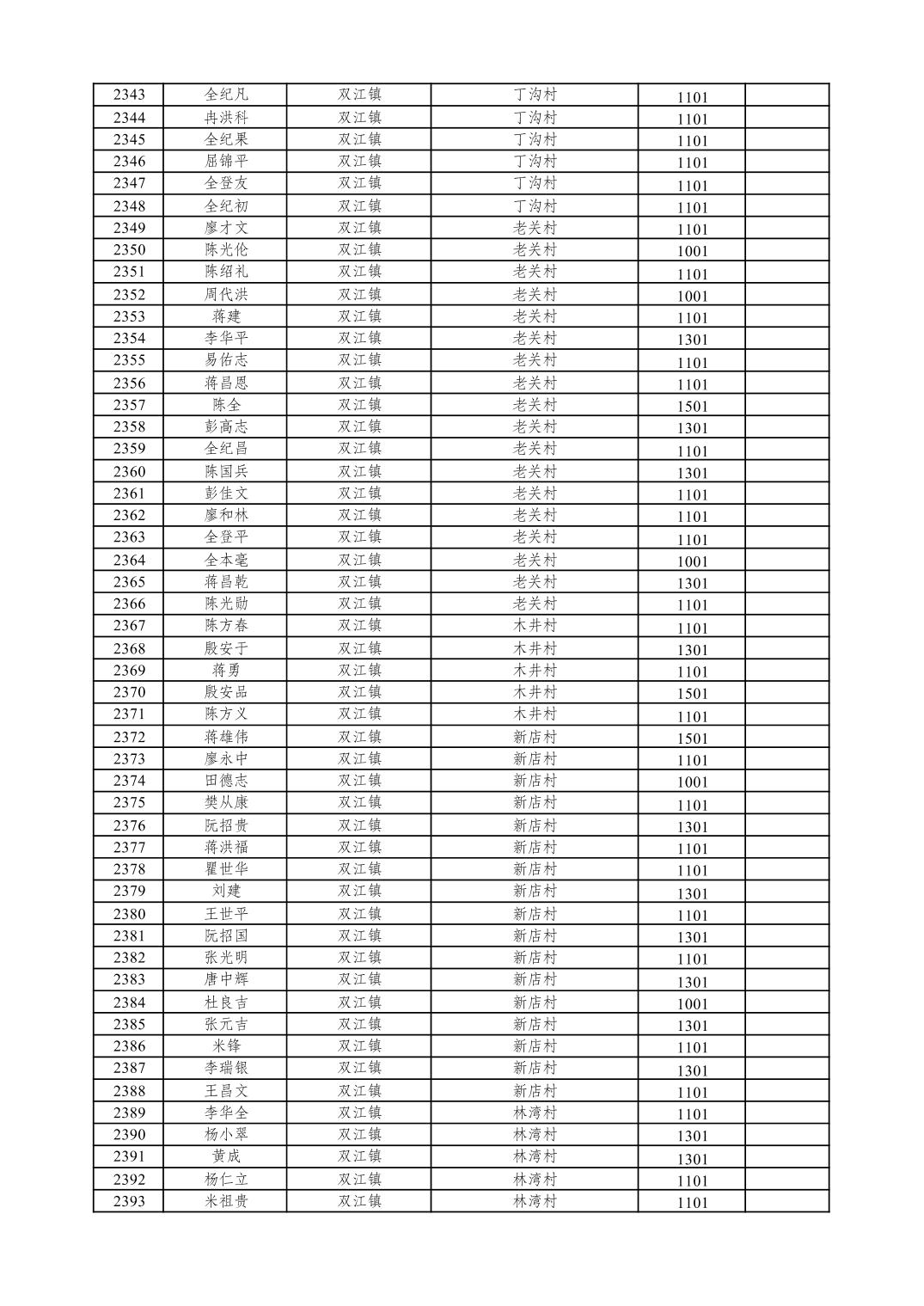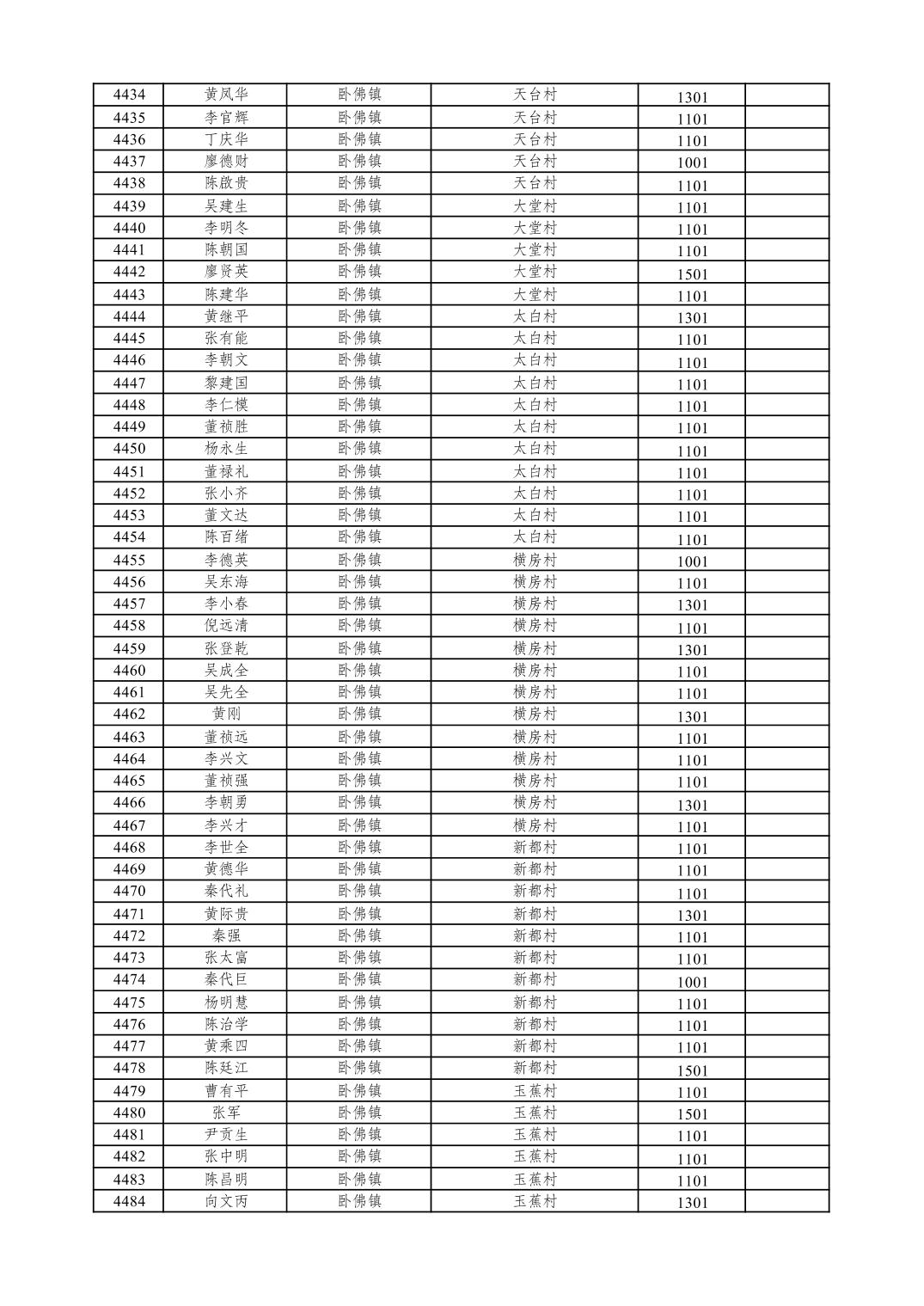 重庆市潼南区2026年1月特困供养金发放表