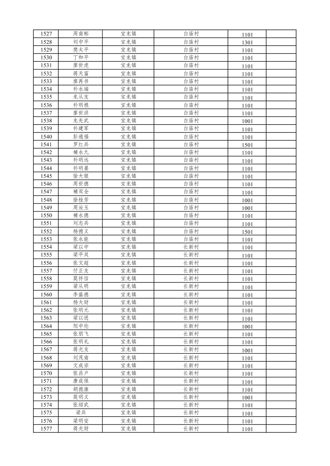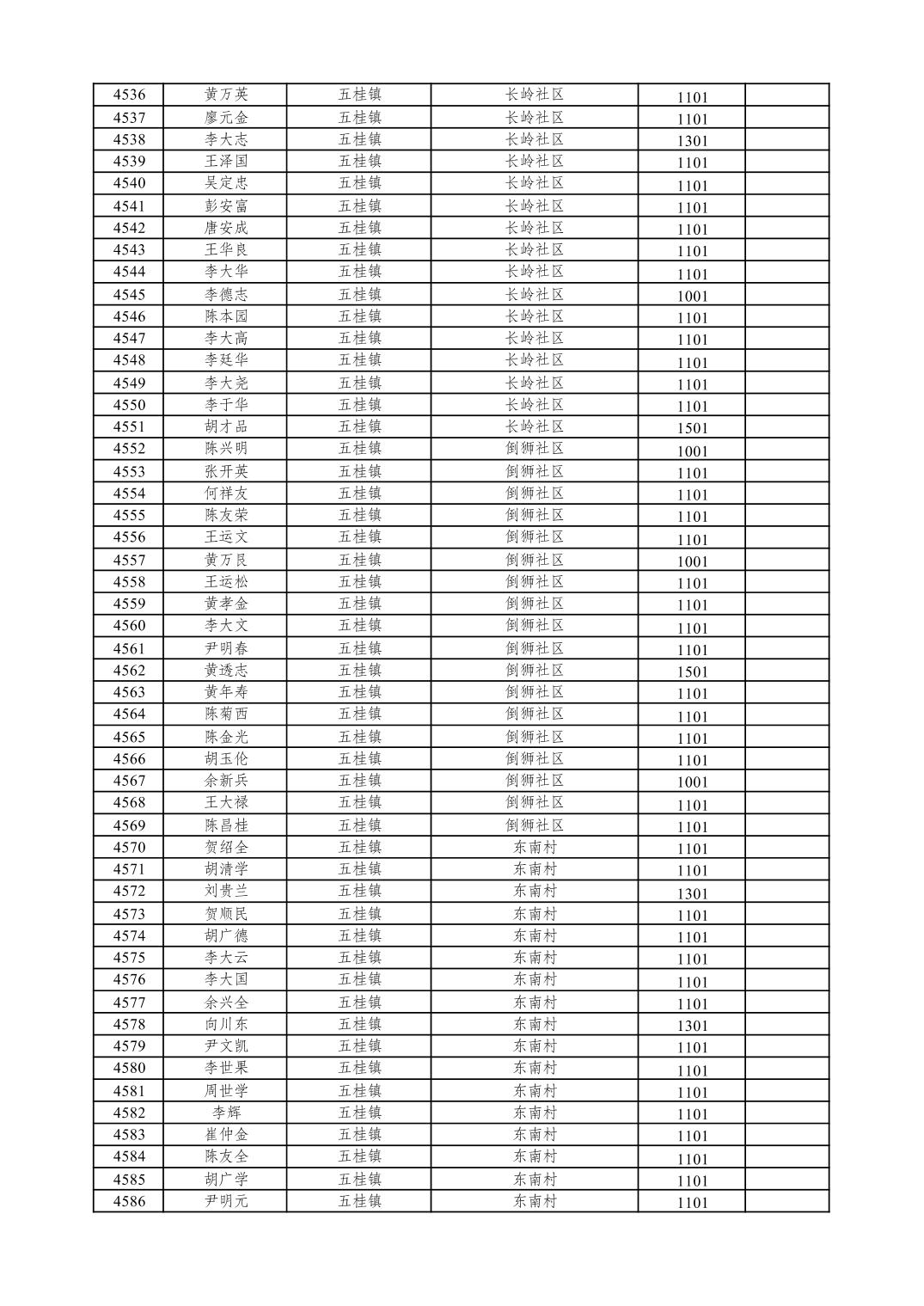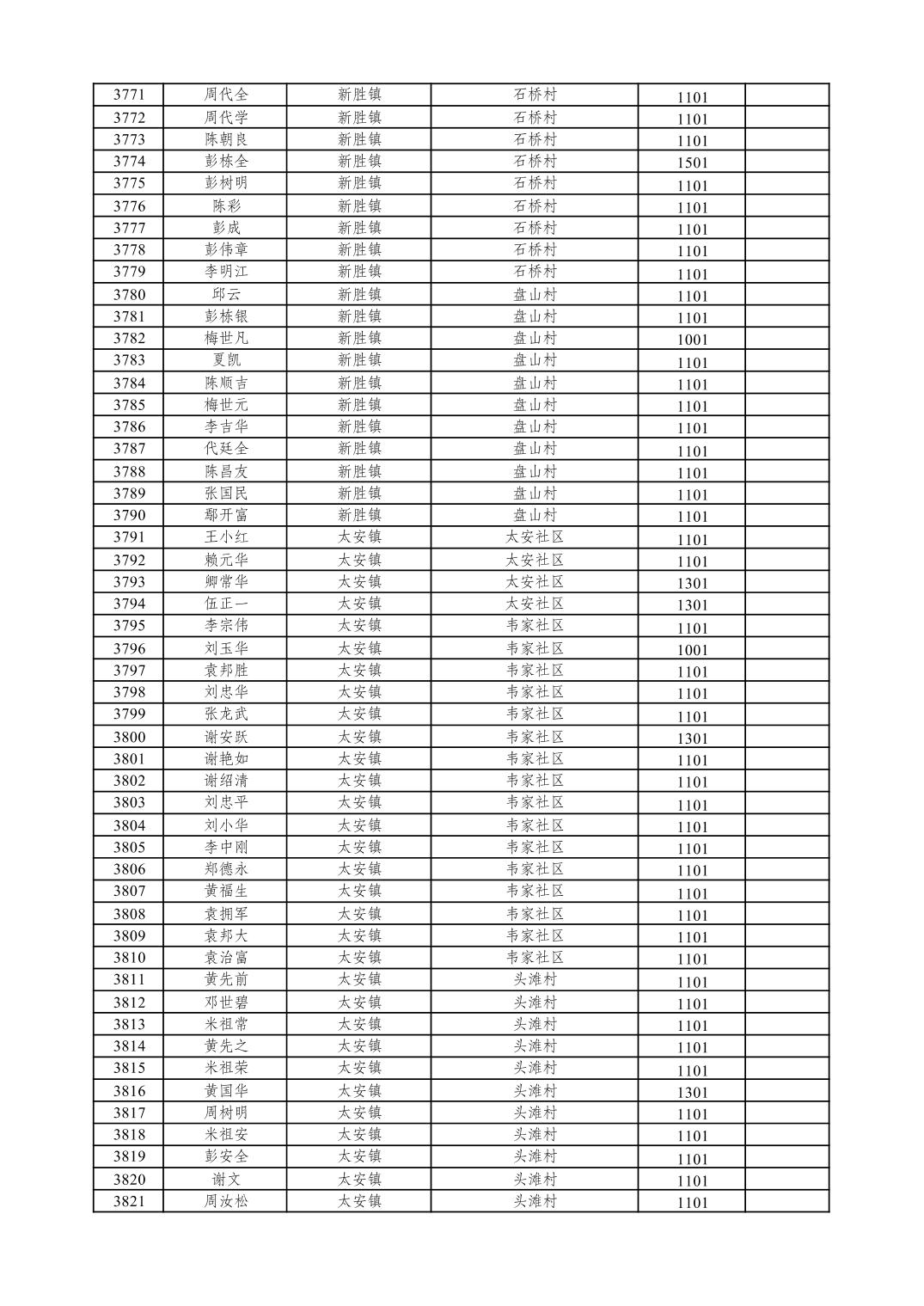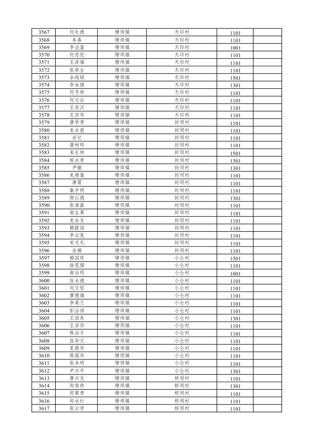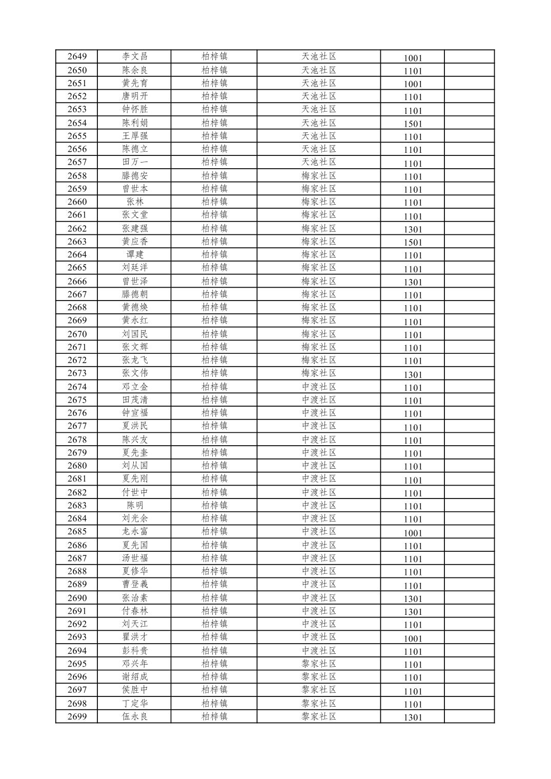 重庆市潼南区2026年1月特困供养金发放表