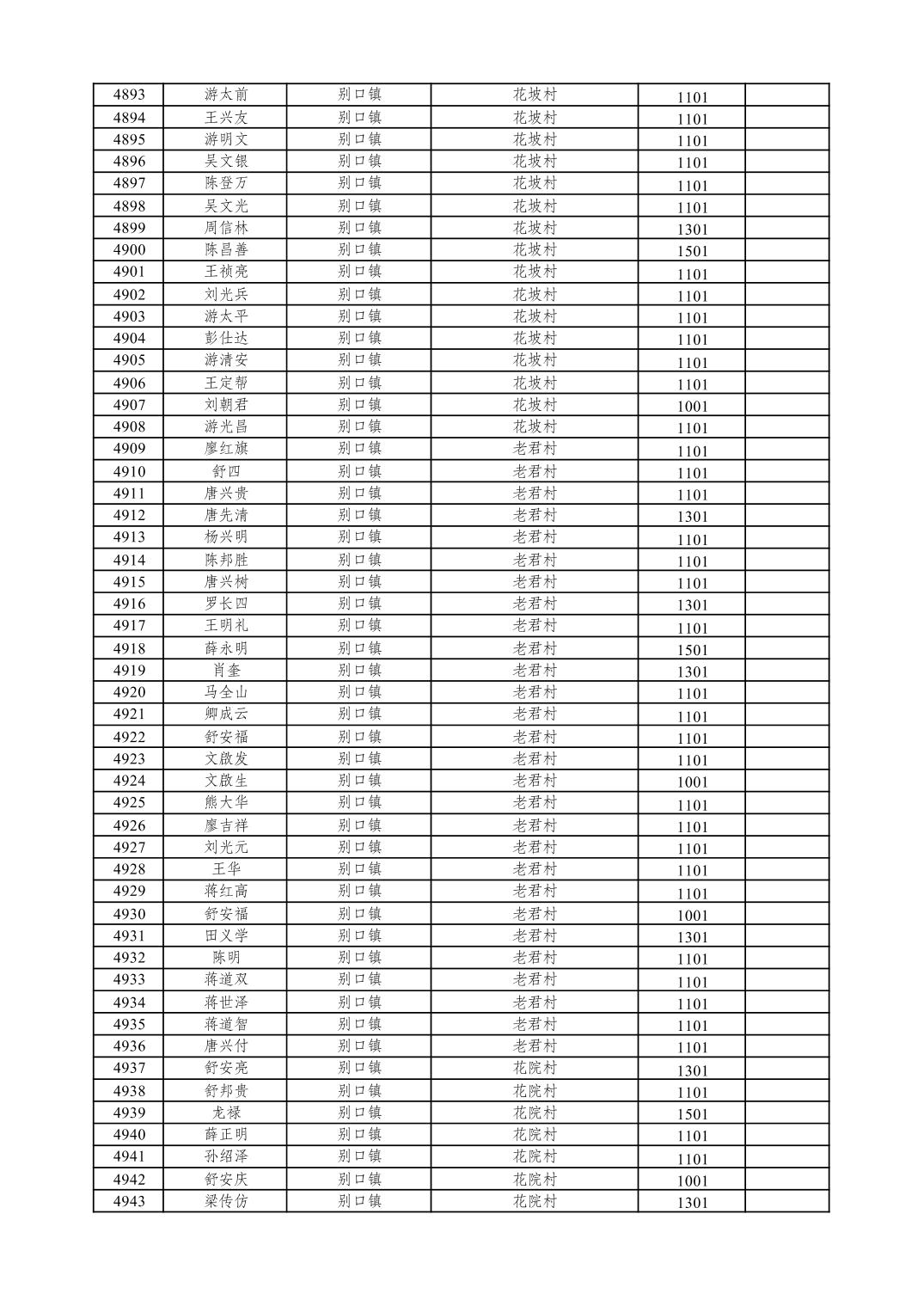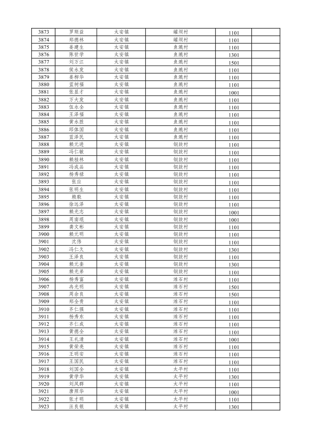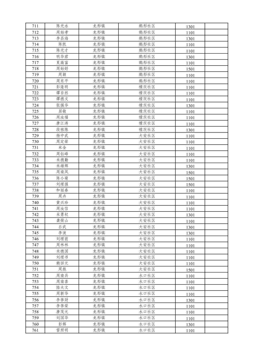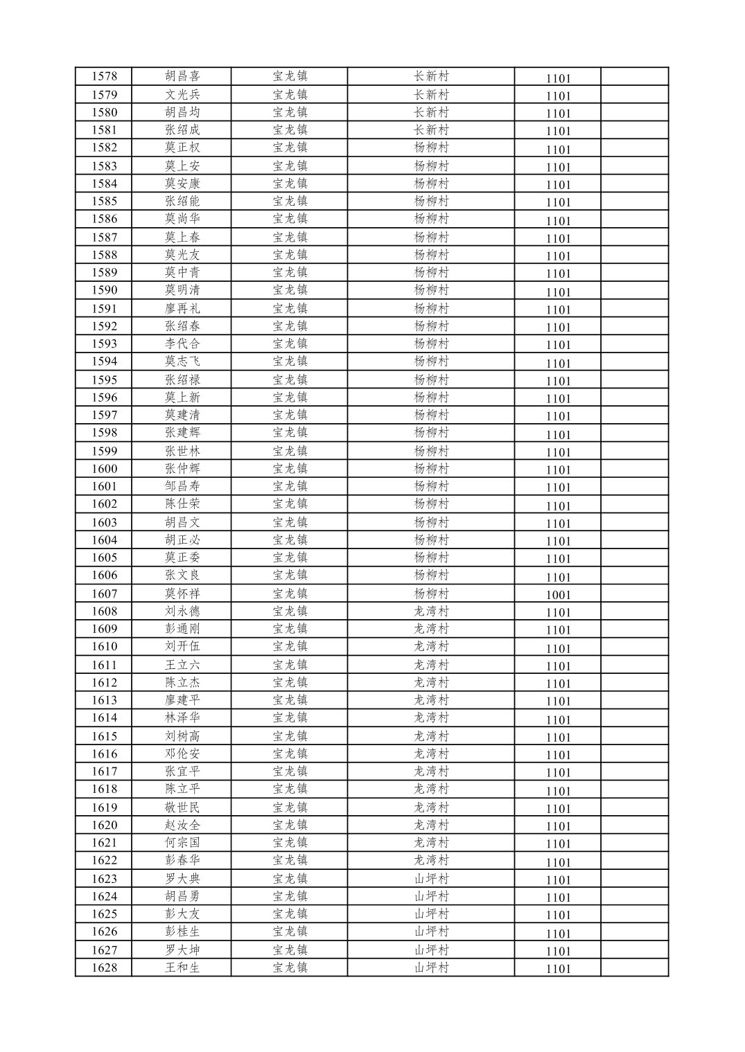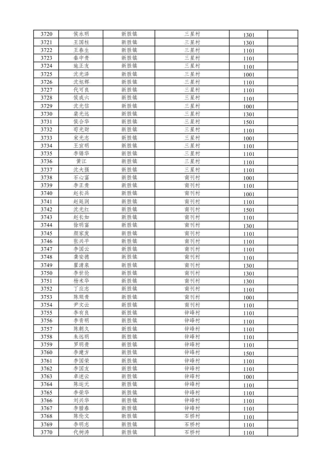 重庆市潼南区2026年1月特困供养金发放表