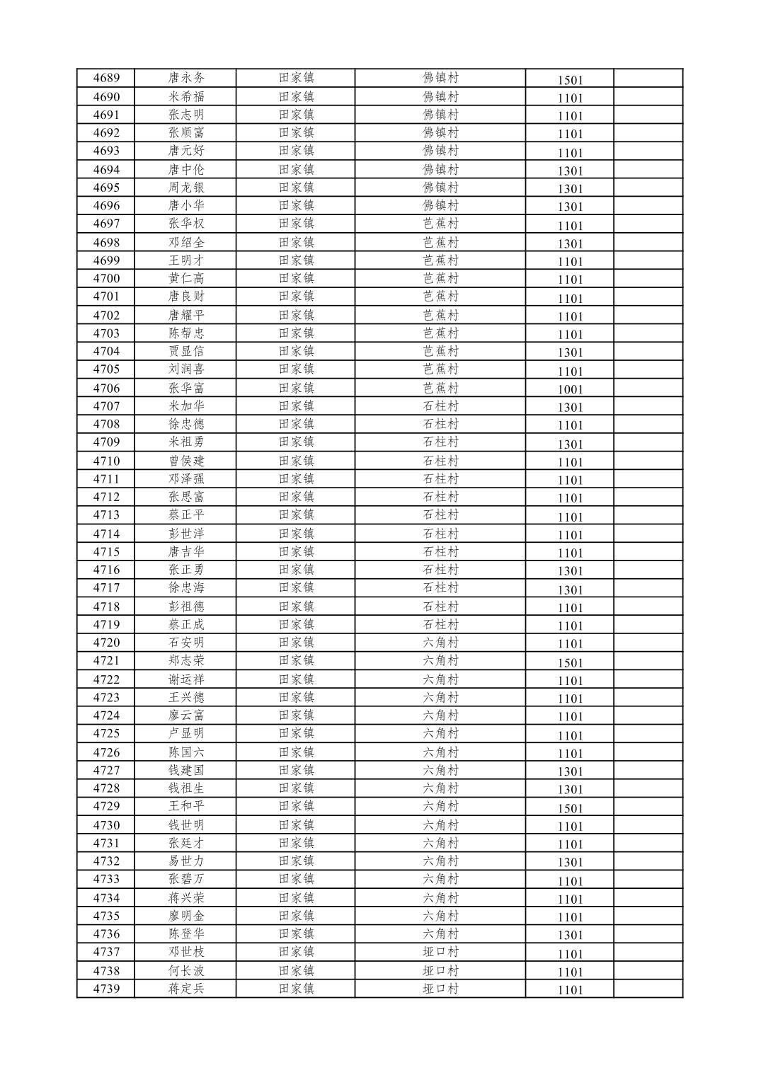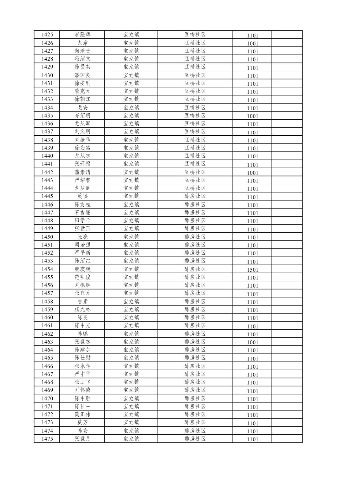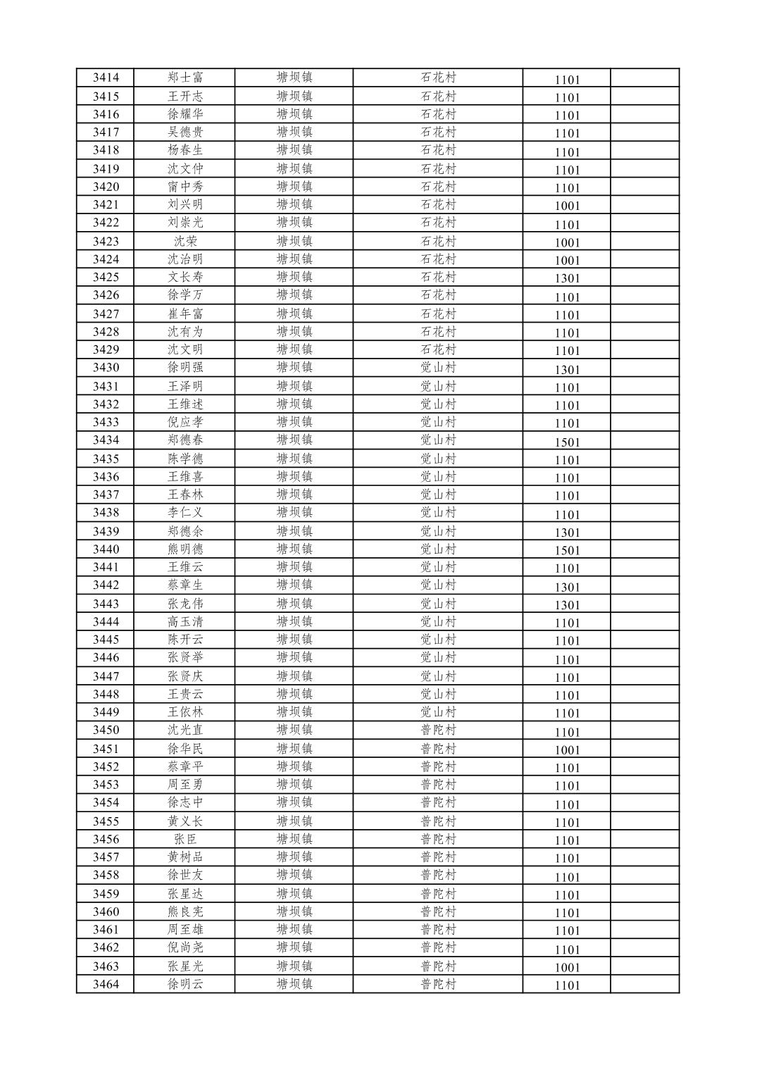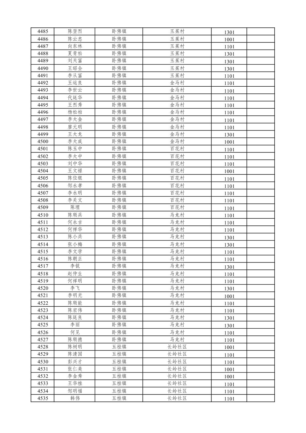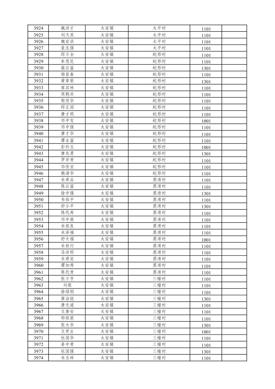 重庆市潼南区2026年1月特困供养金发放表