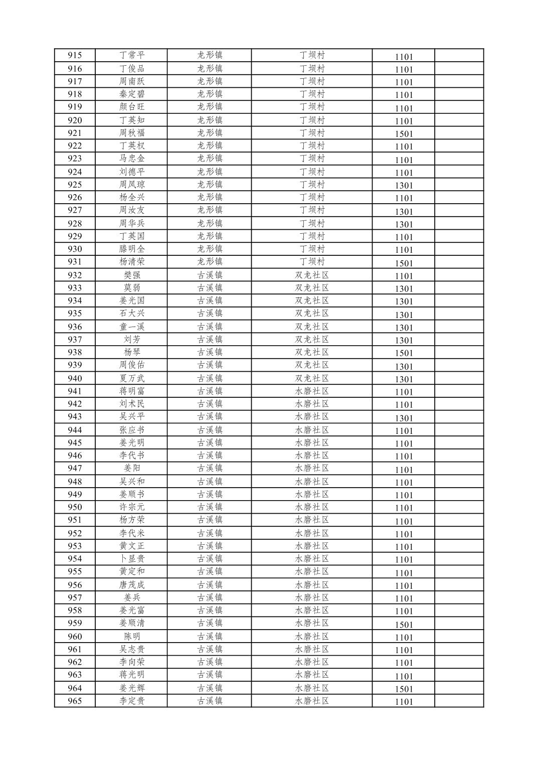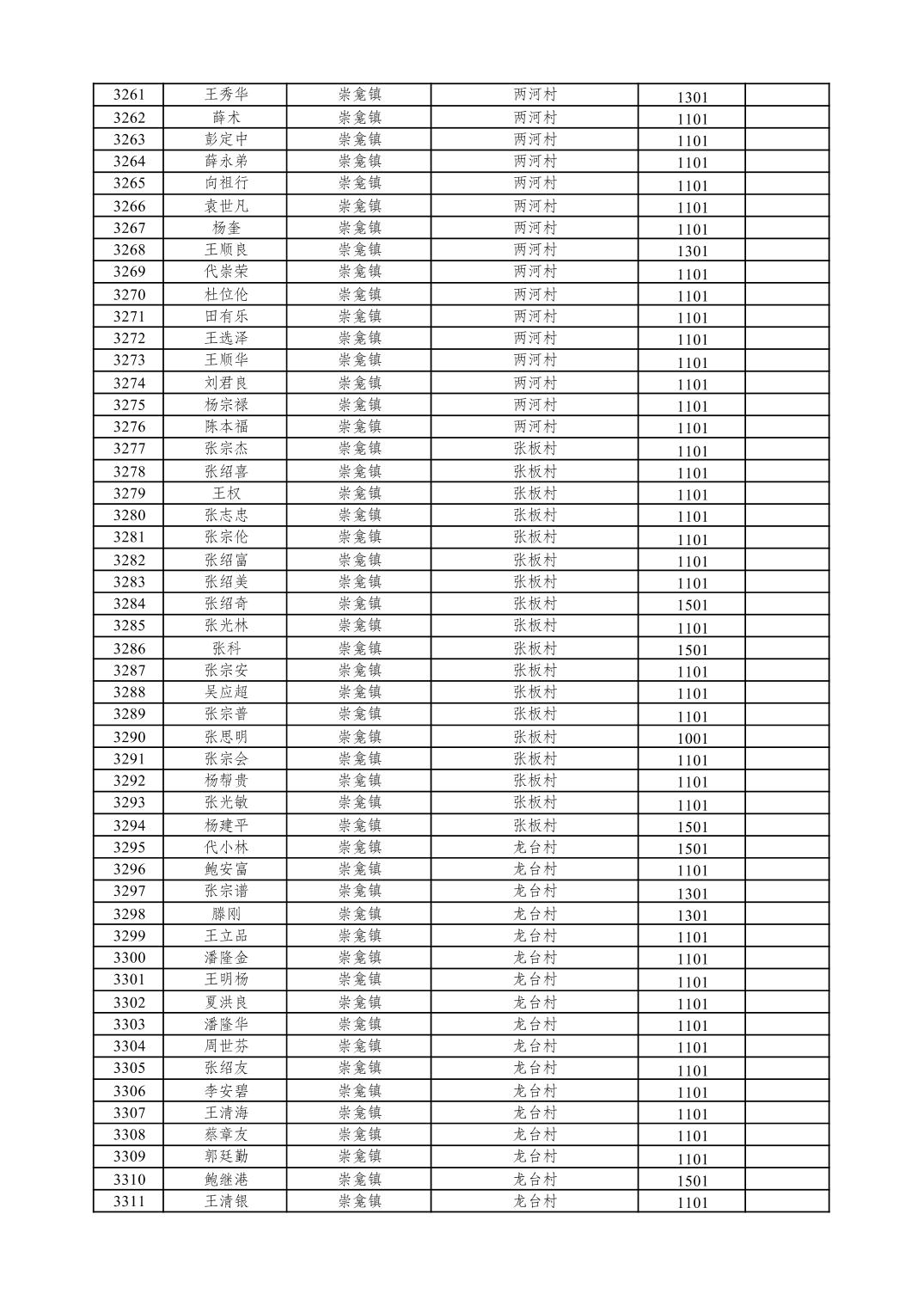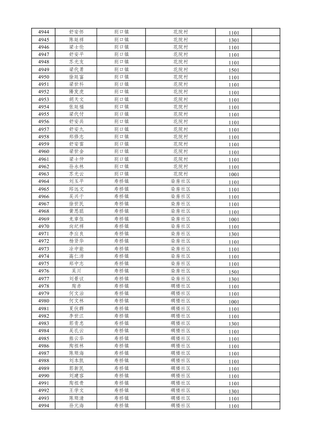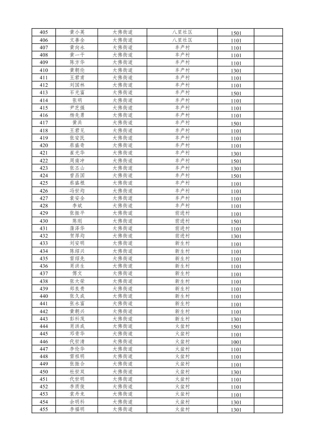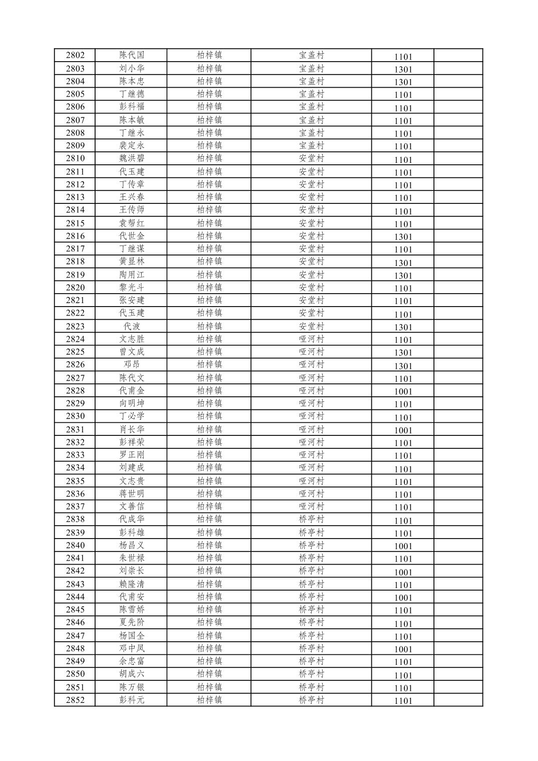 重庆市潼南区2026年1月特困供养金发放表