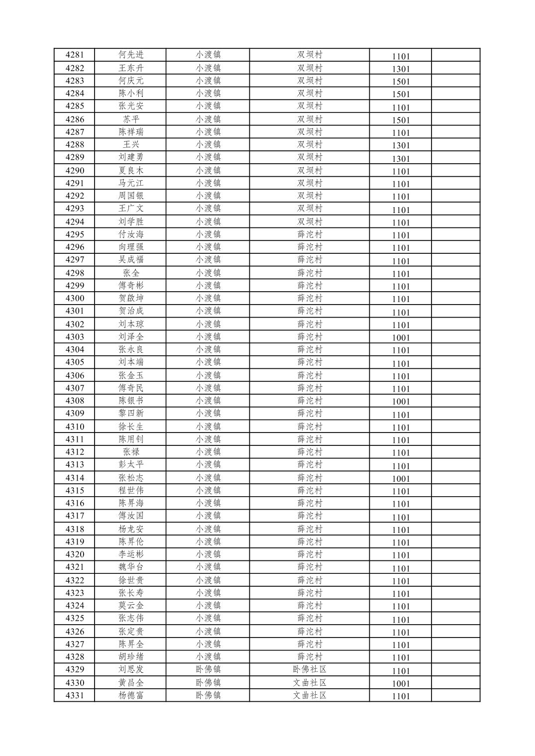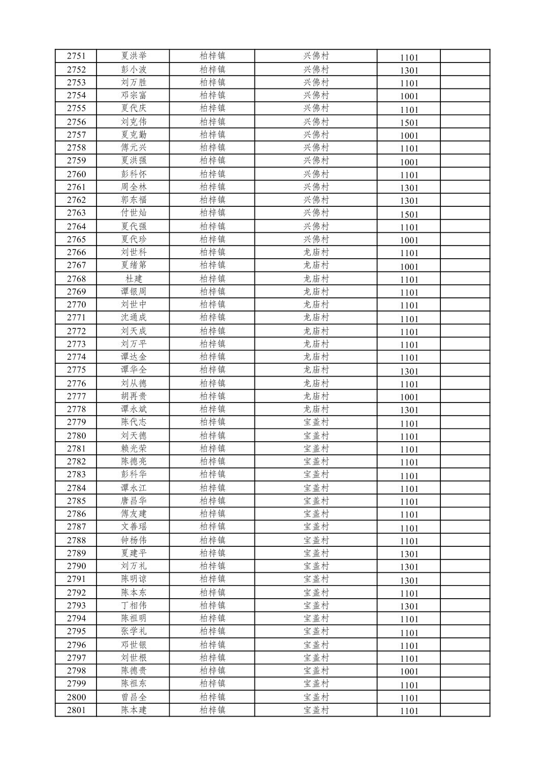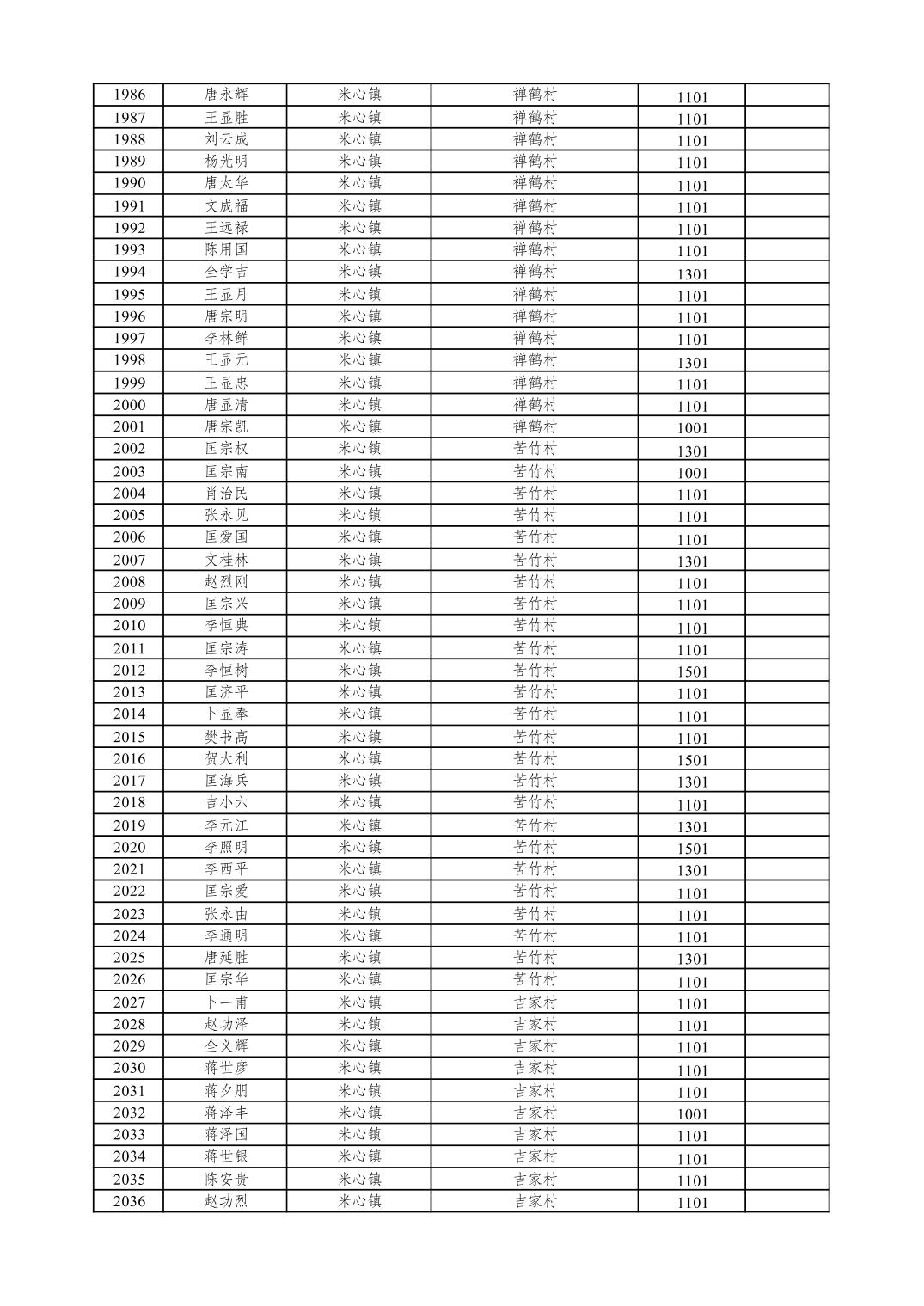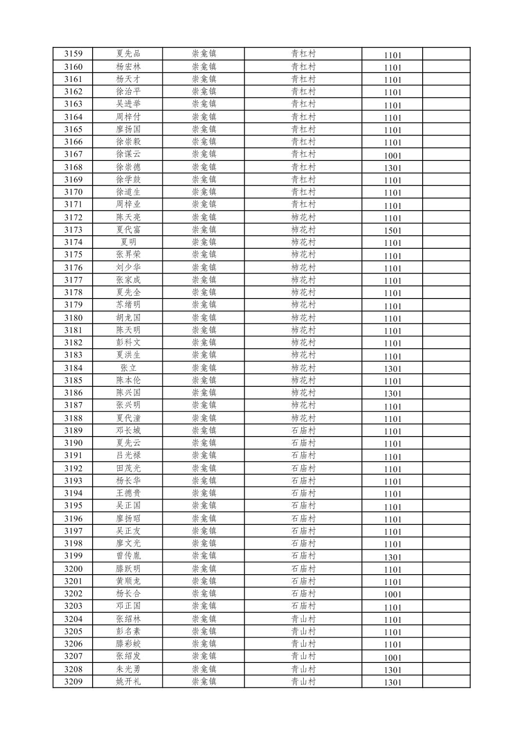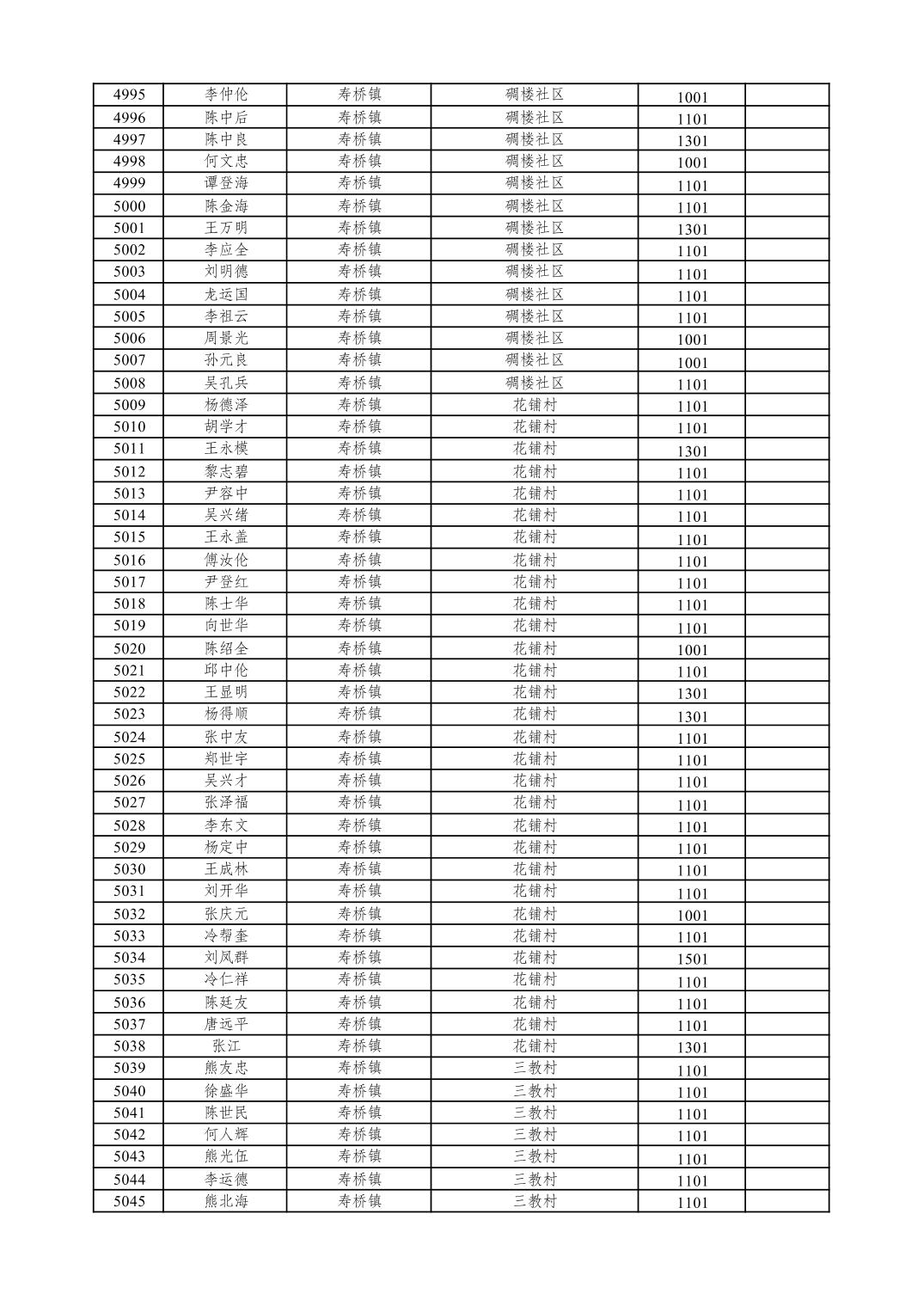 重庆市潼南区2026年1月特困供养金发放表