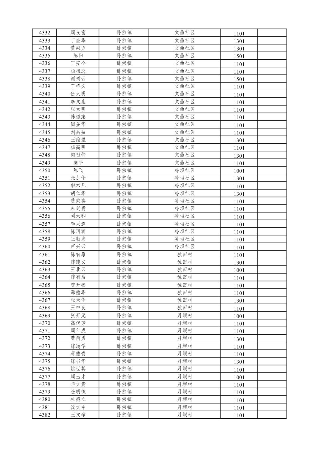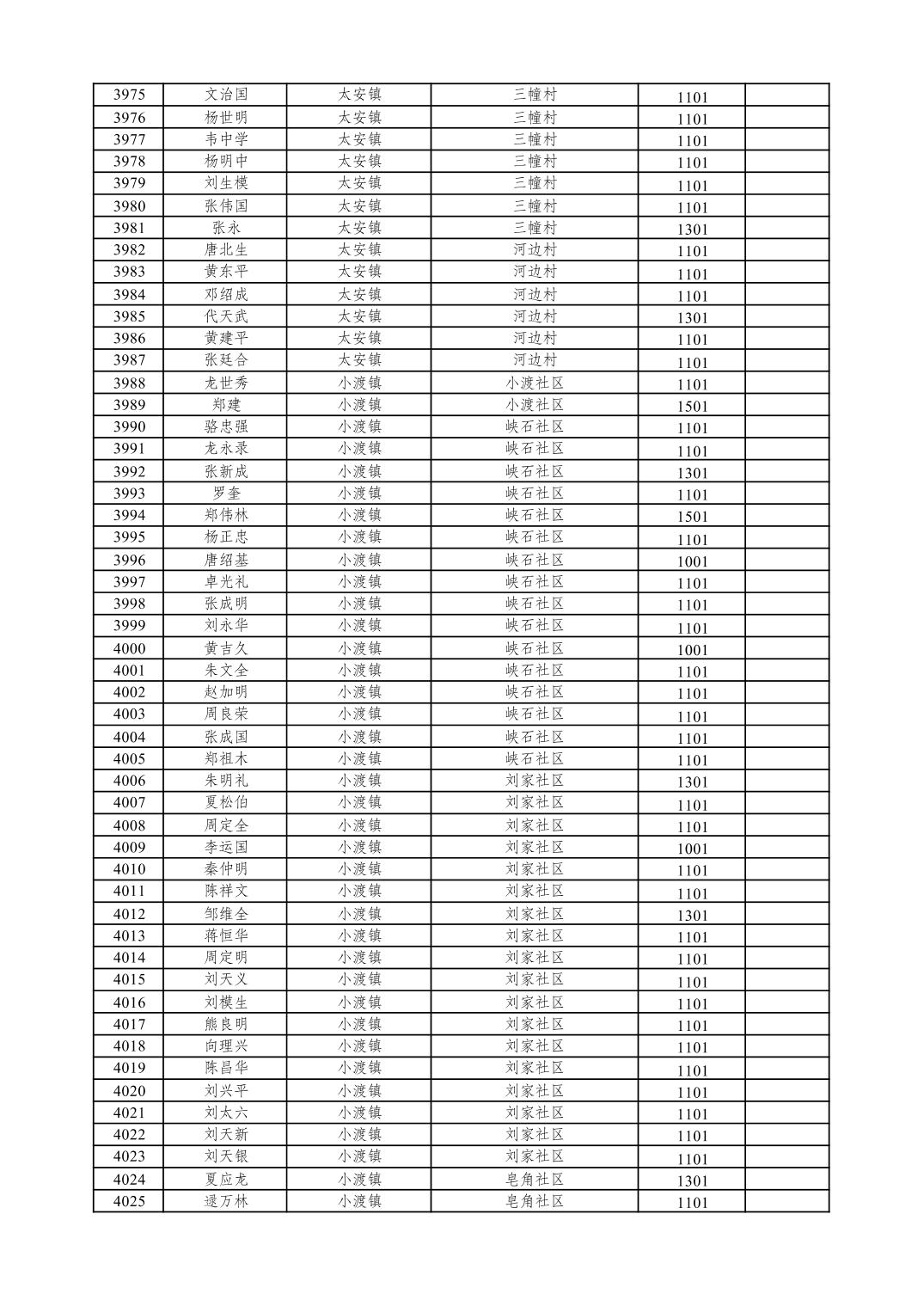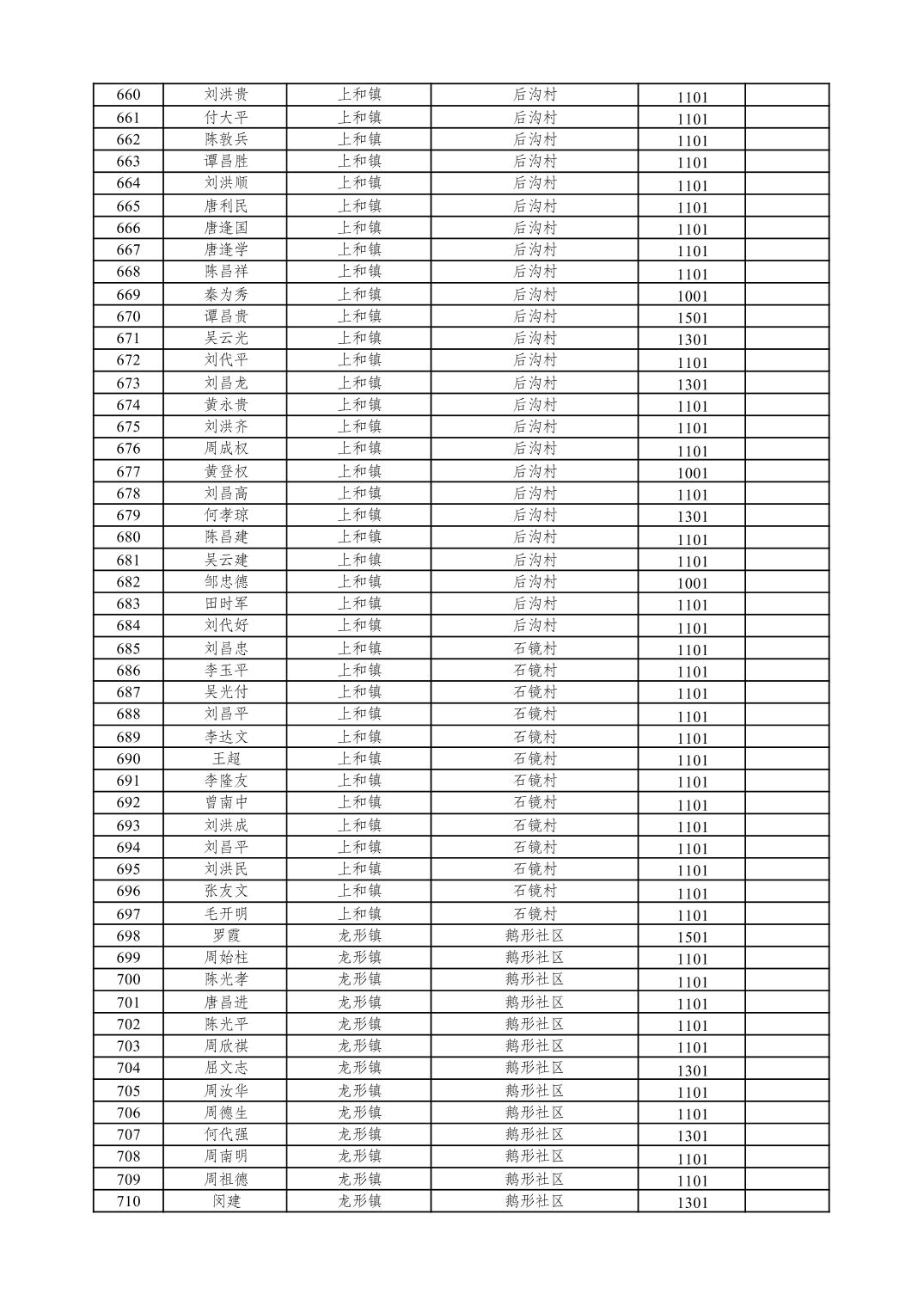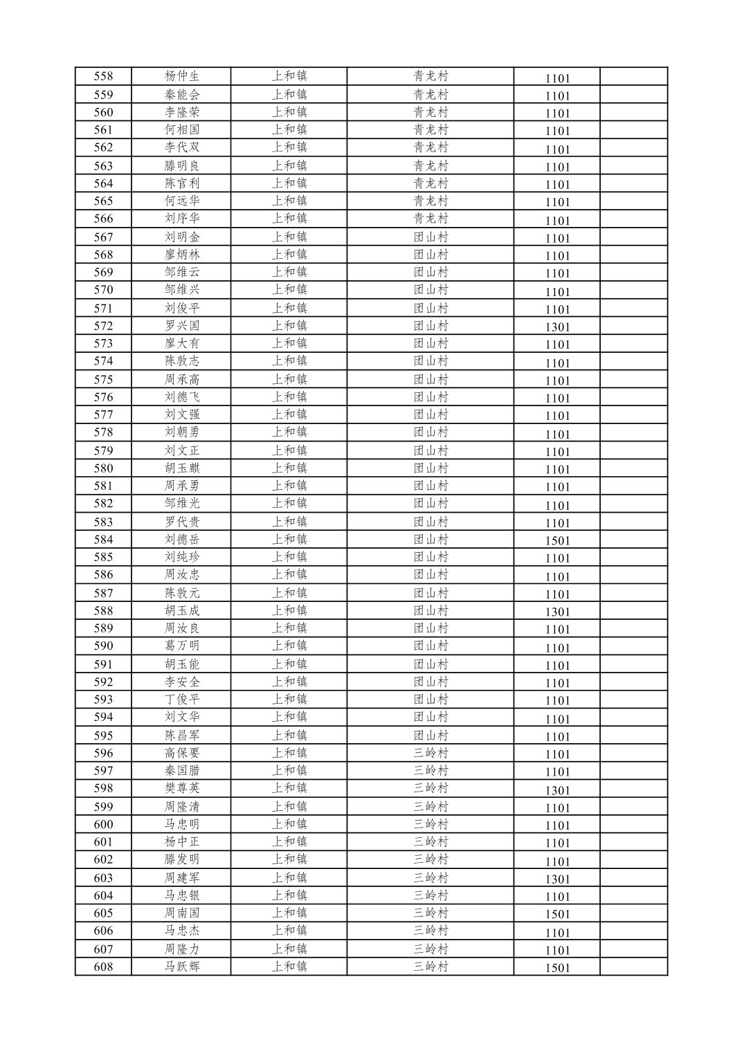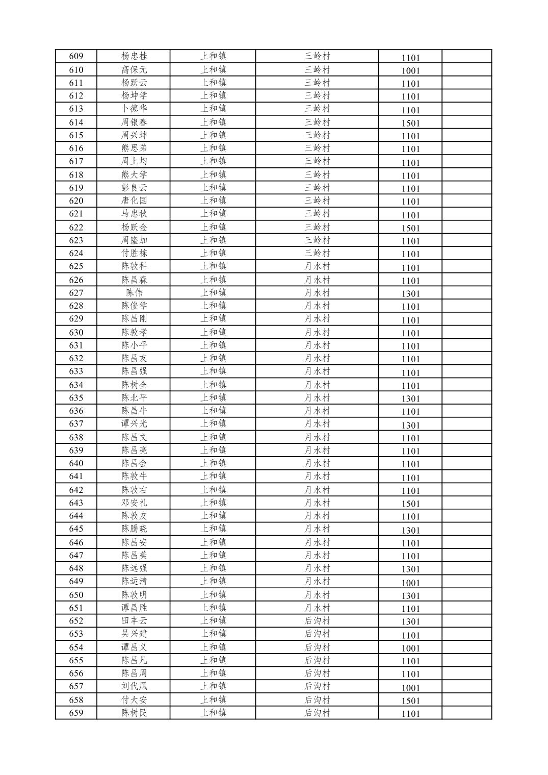 重庆市潼南区2026年1月特困供养金发放表