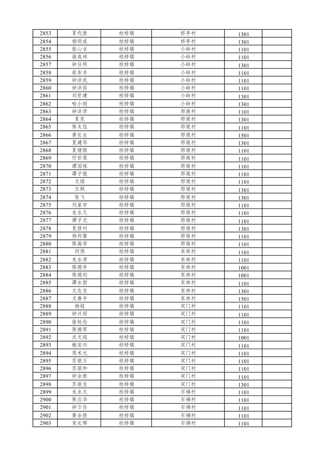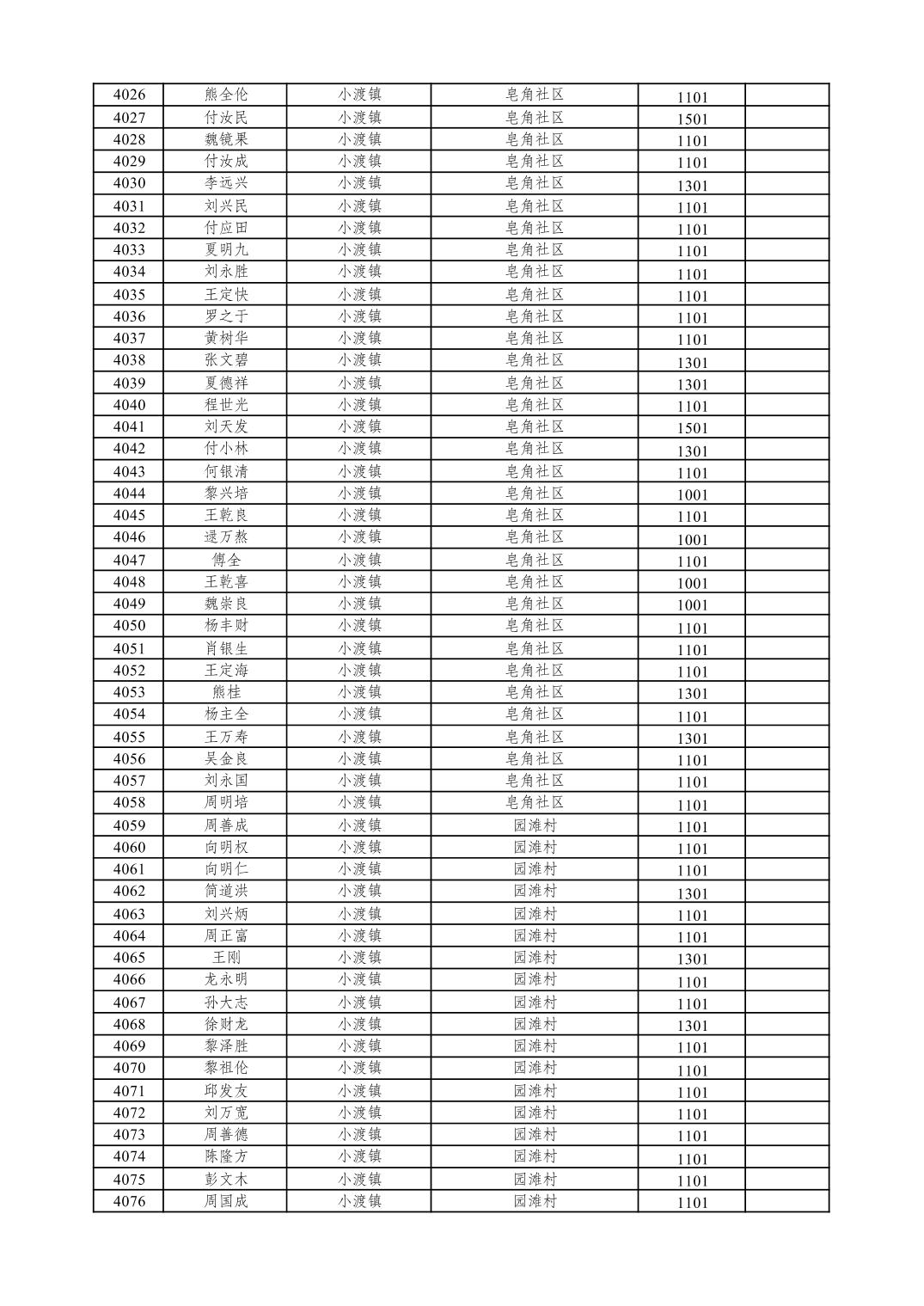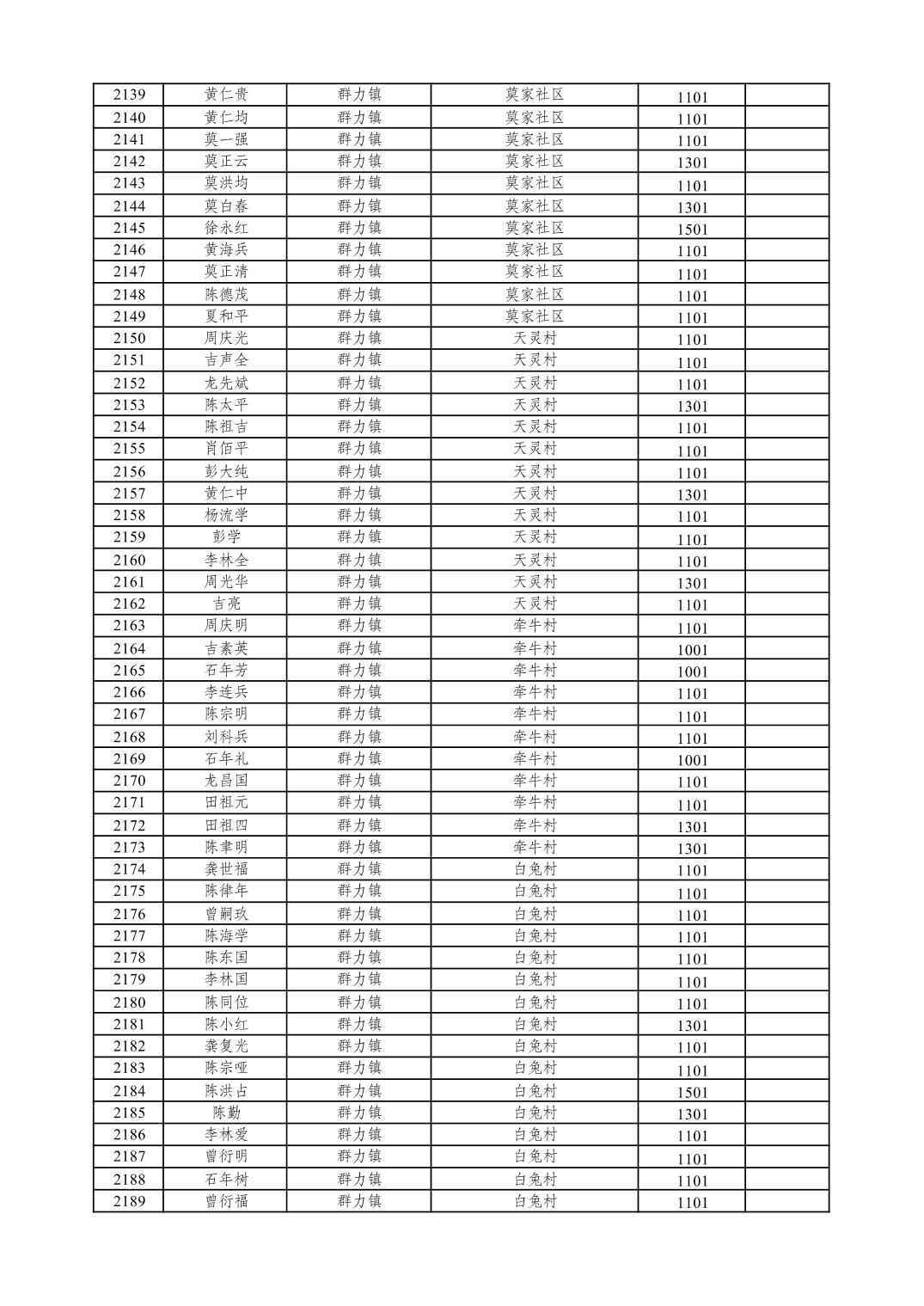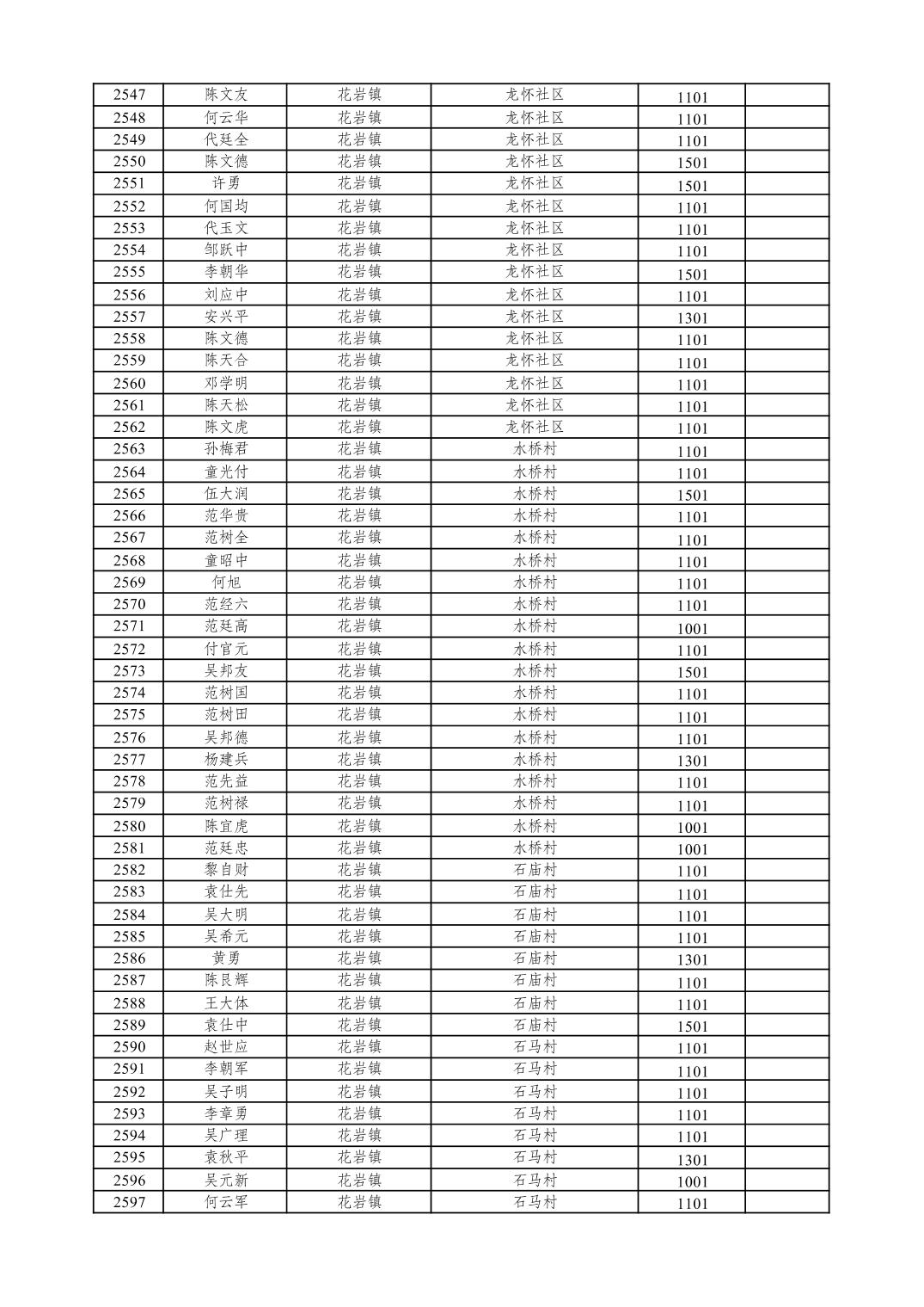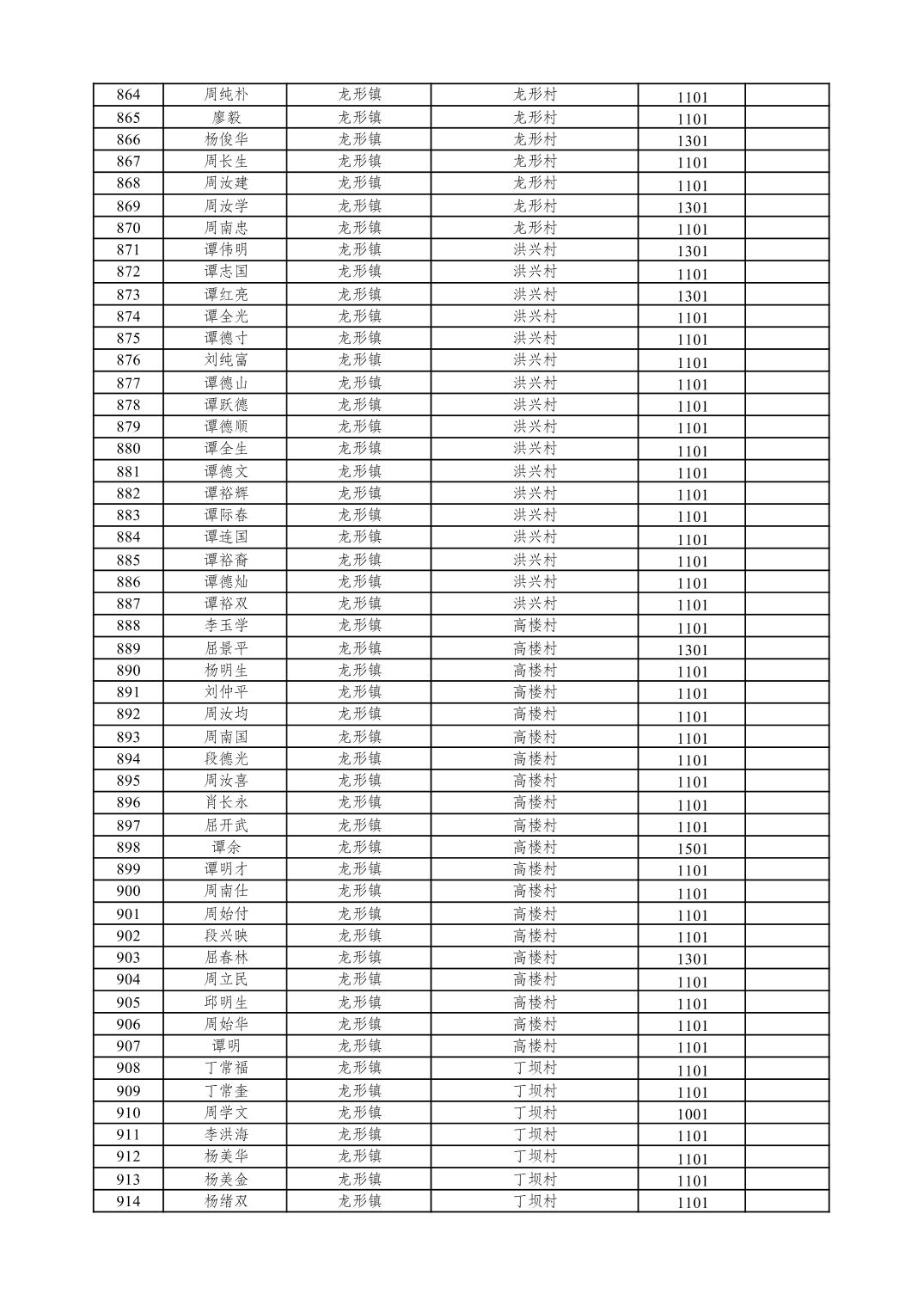 重庆市潼南区2026年1月特困供养金发放表