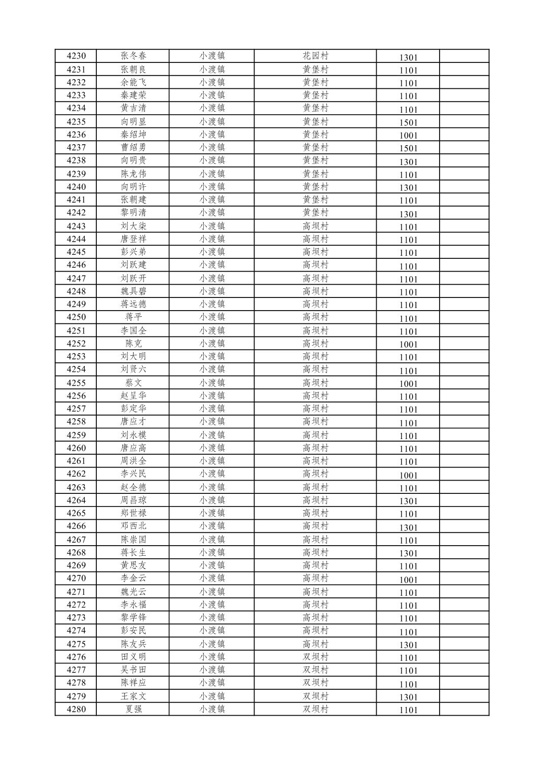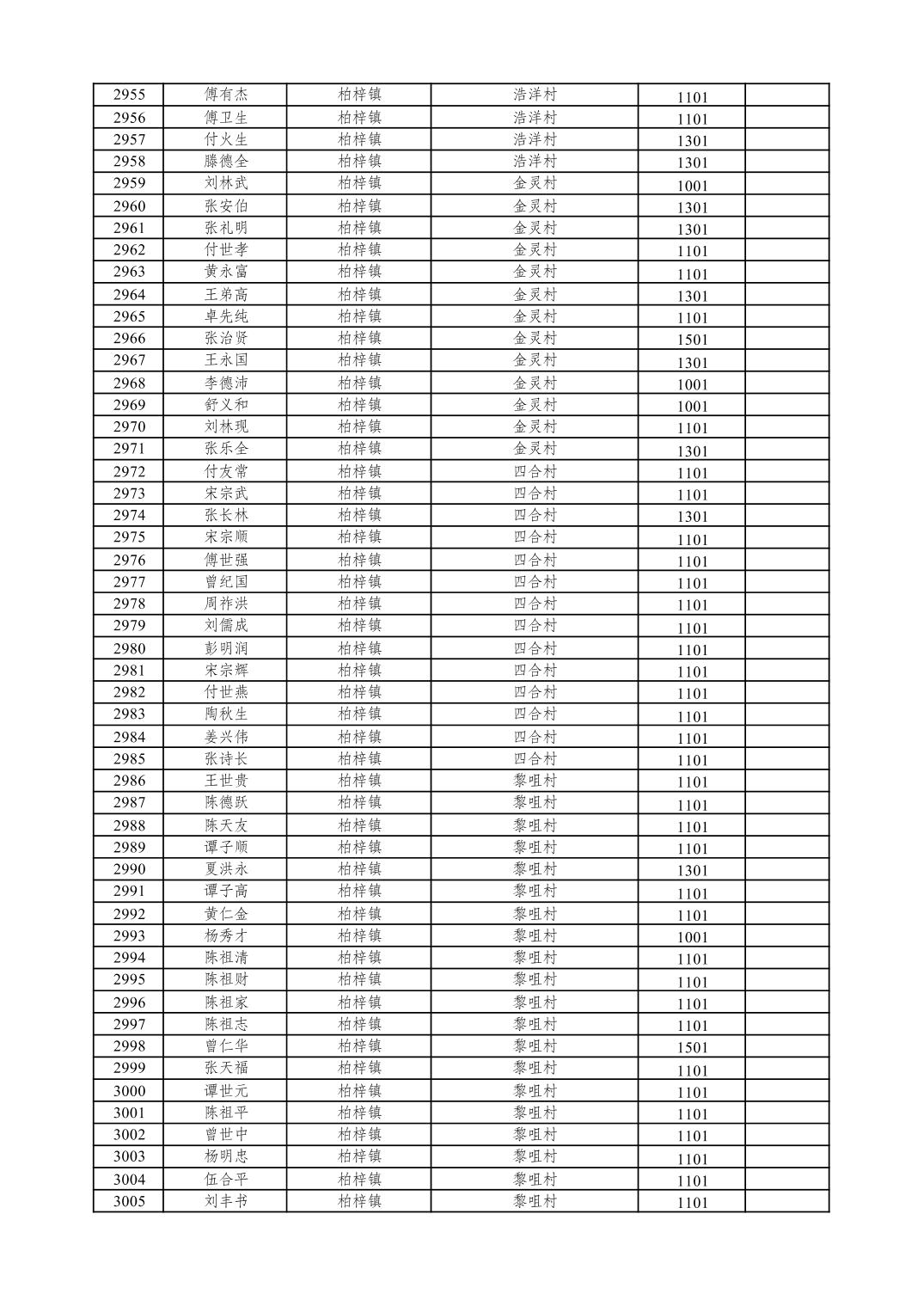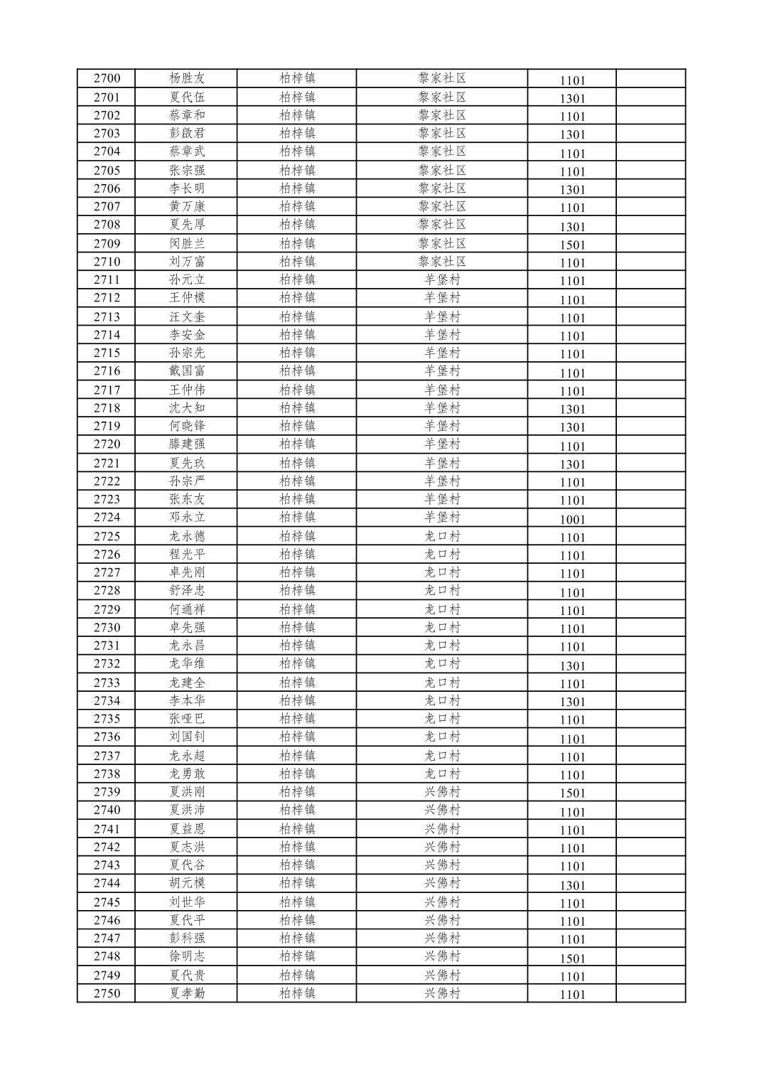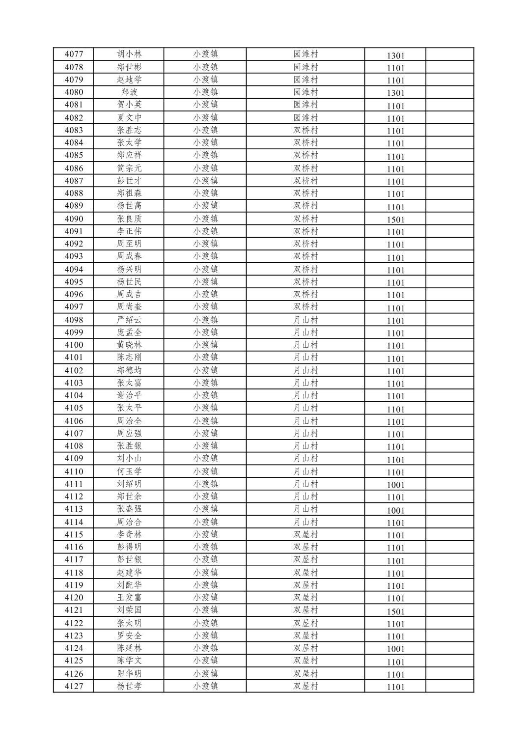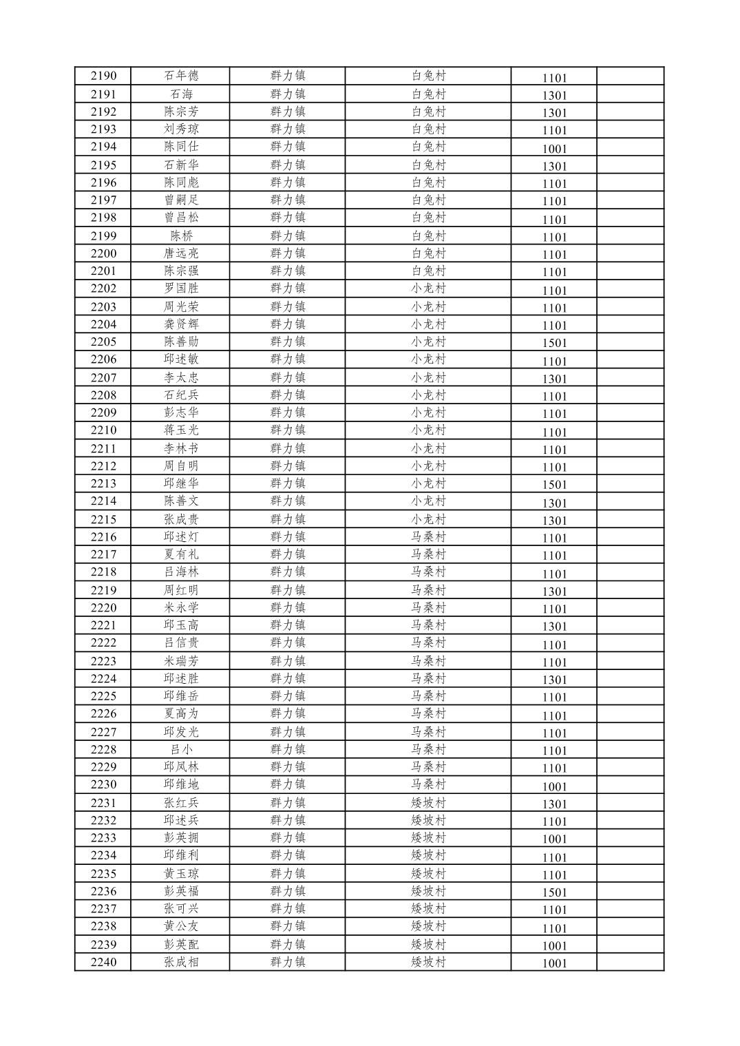 重庆市潼南区2026年1月特困供养金发放表