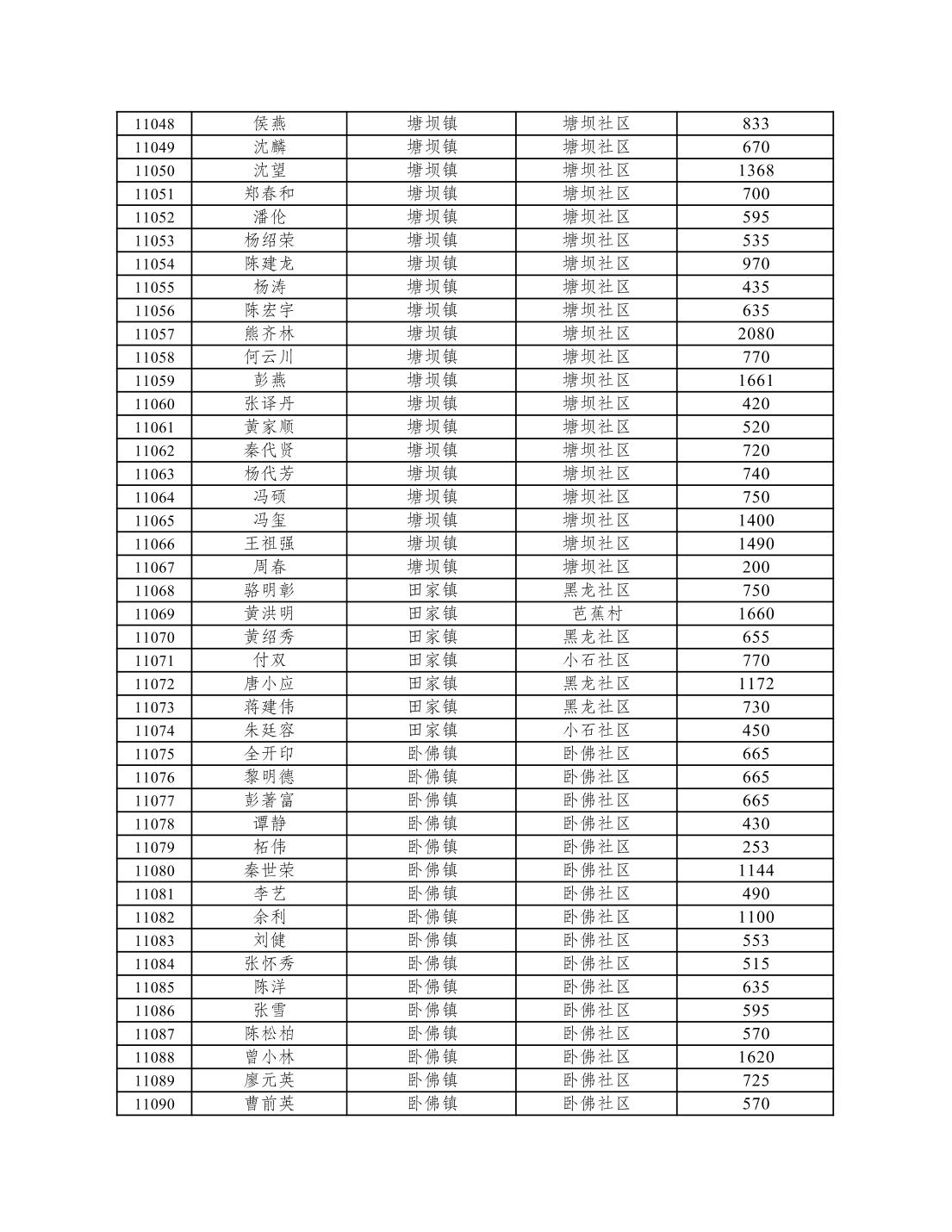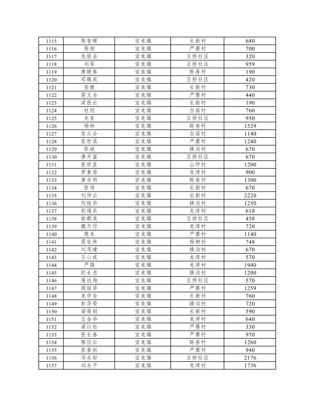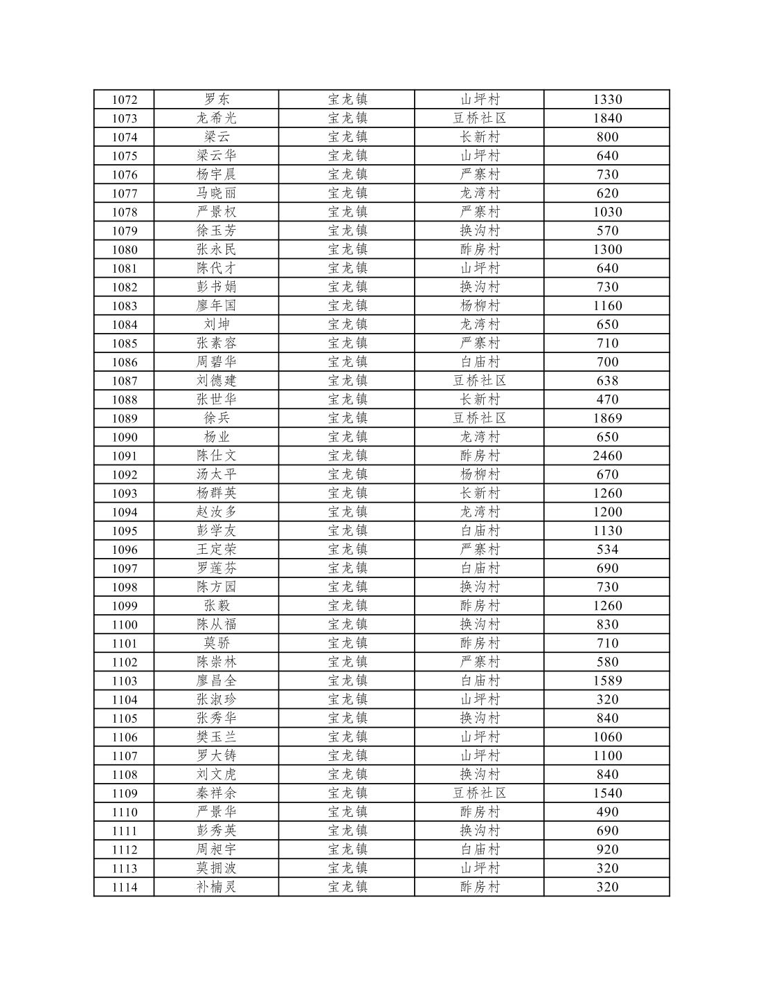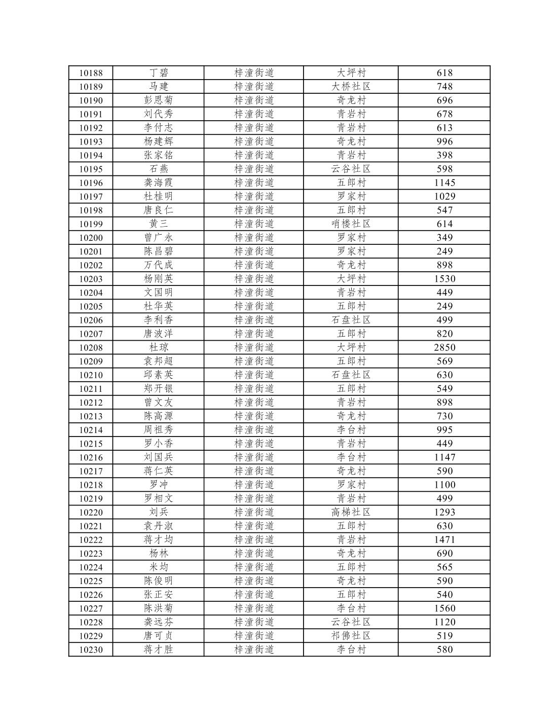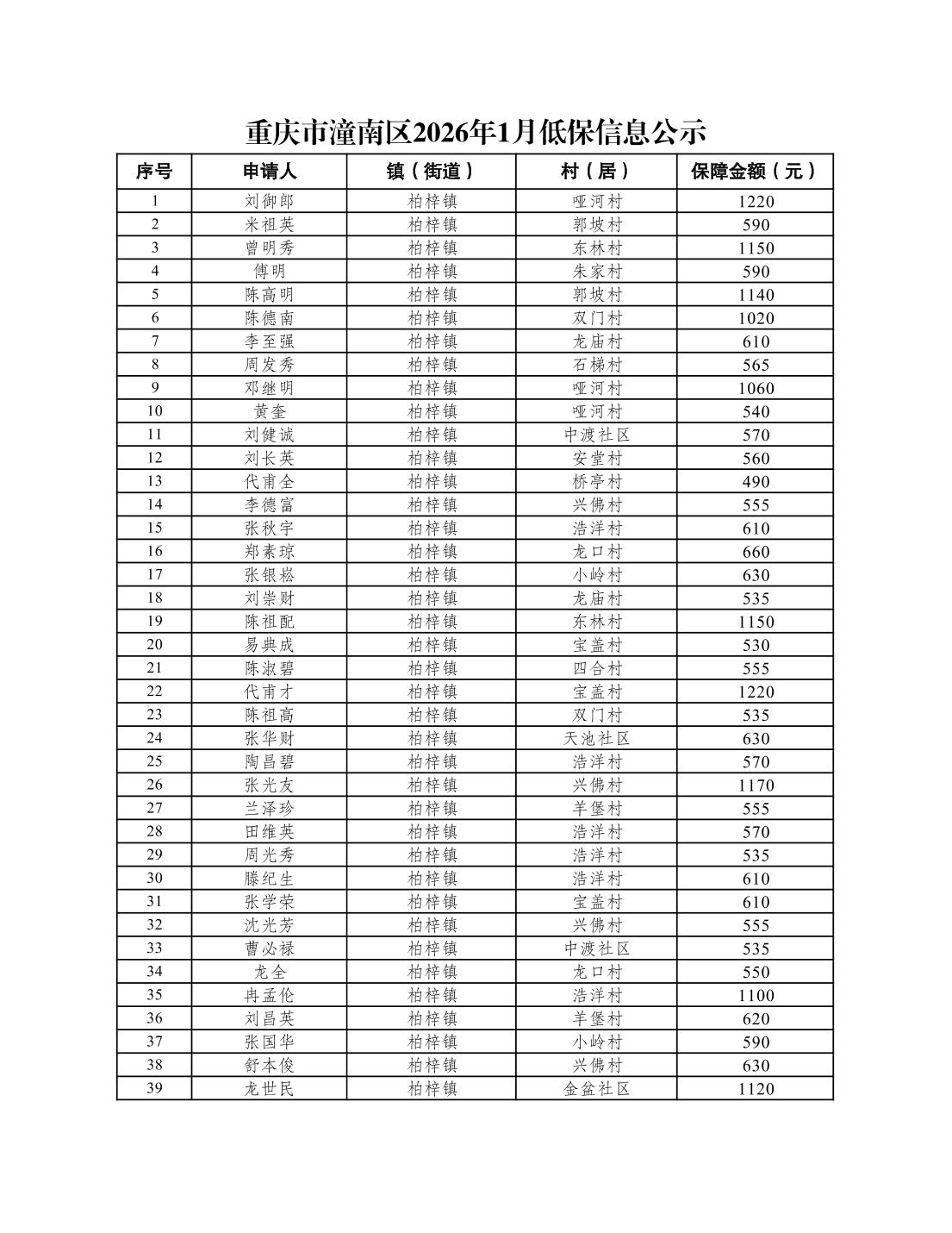 重庆市潼南区2026年1月低保信息公示