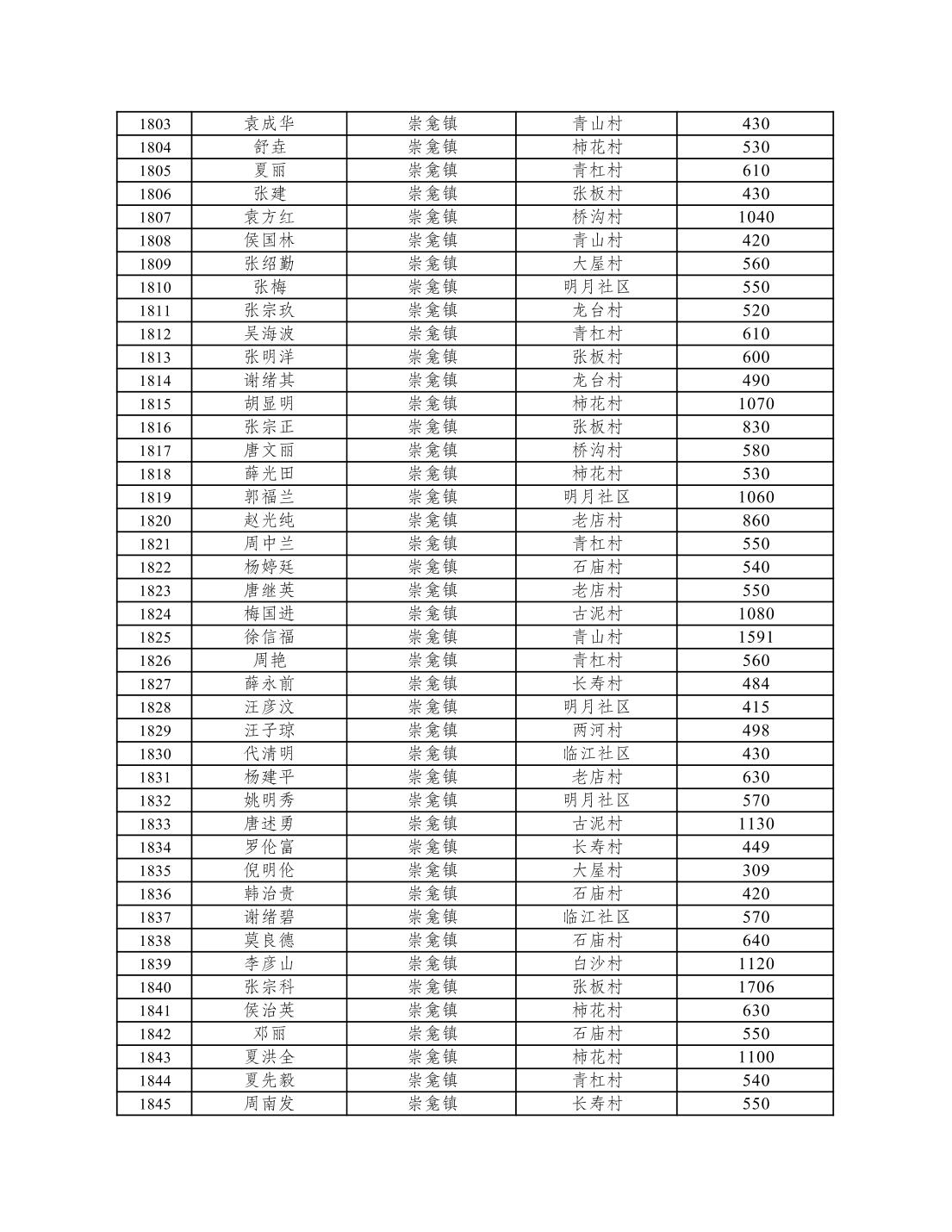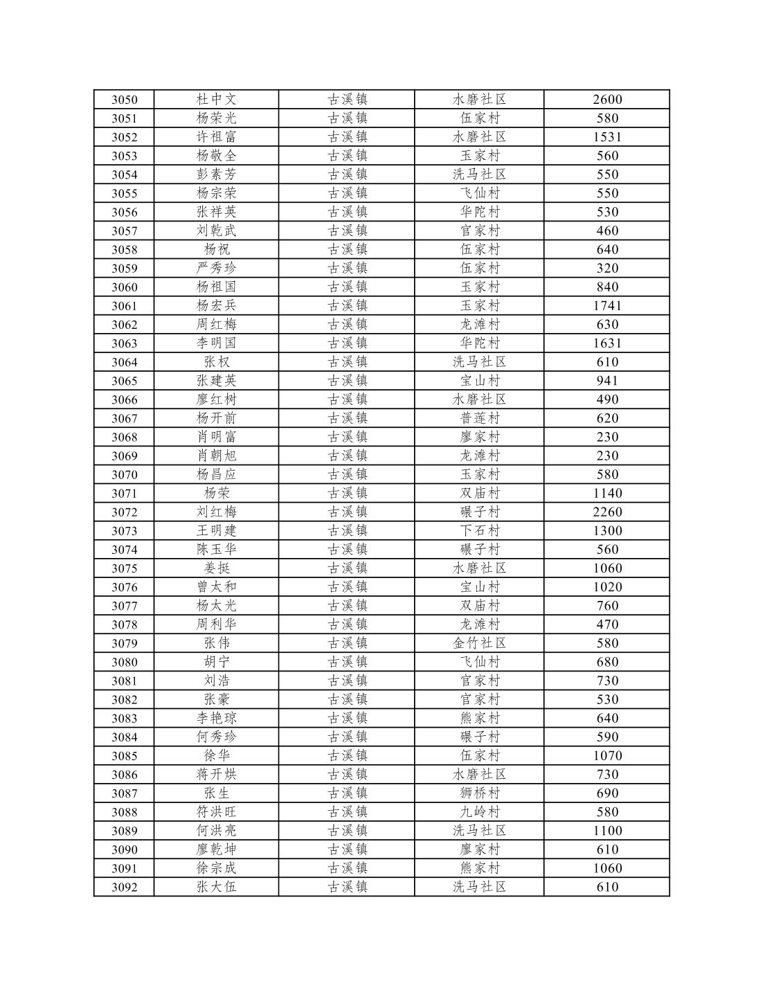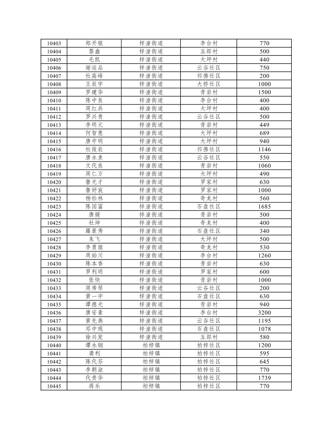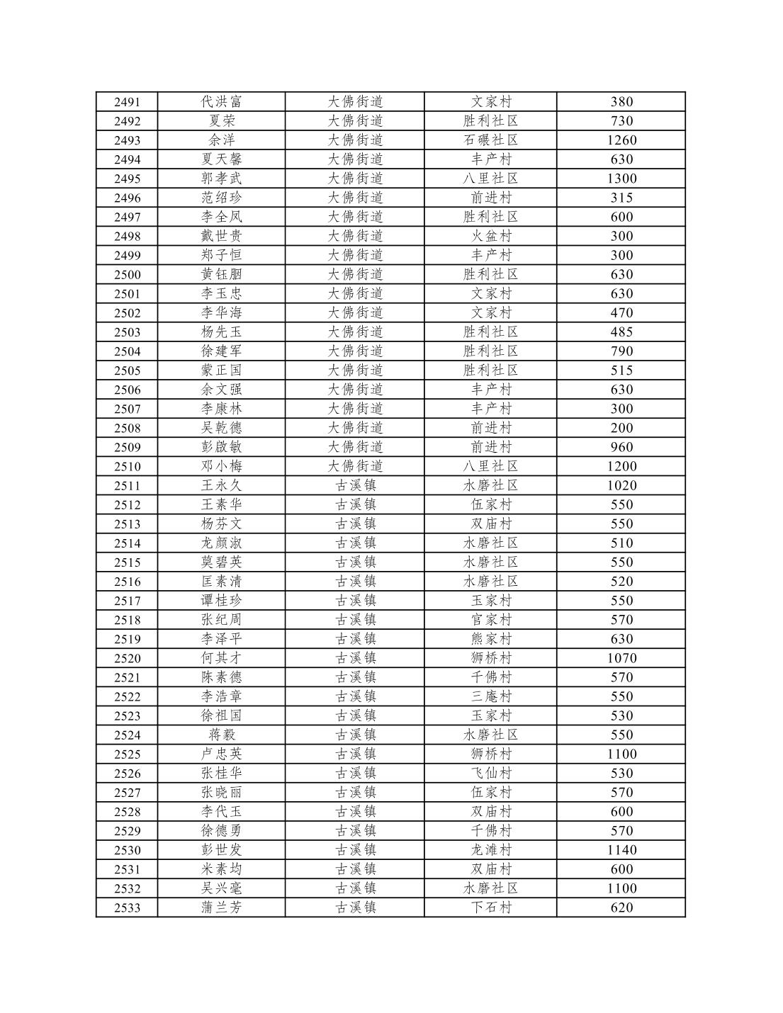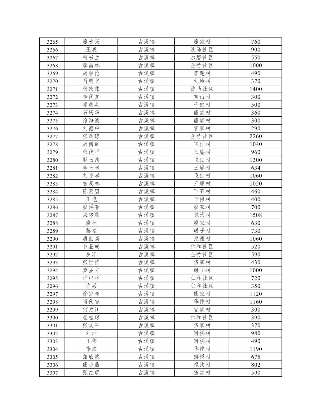 重庆市潼南区2026年1月低保信息公示