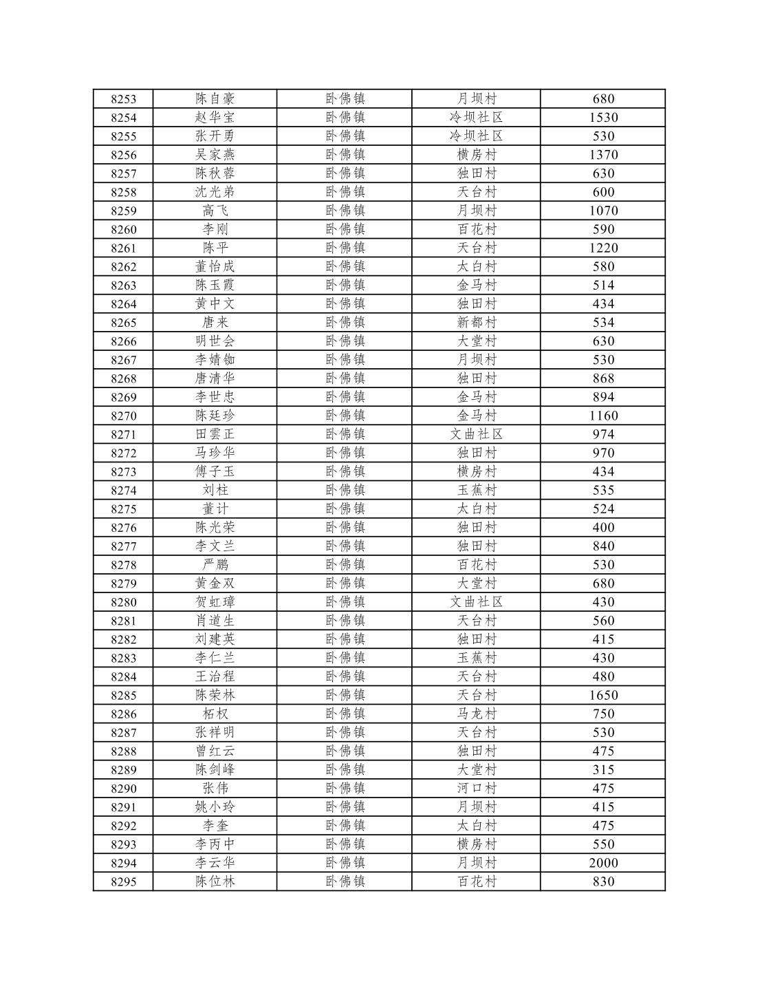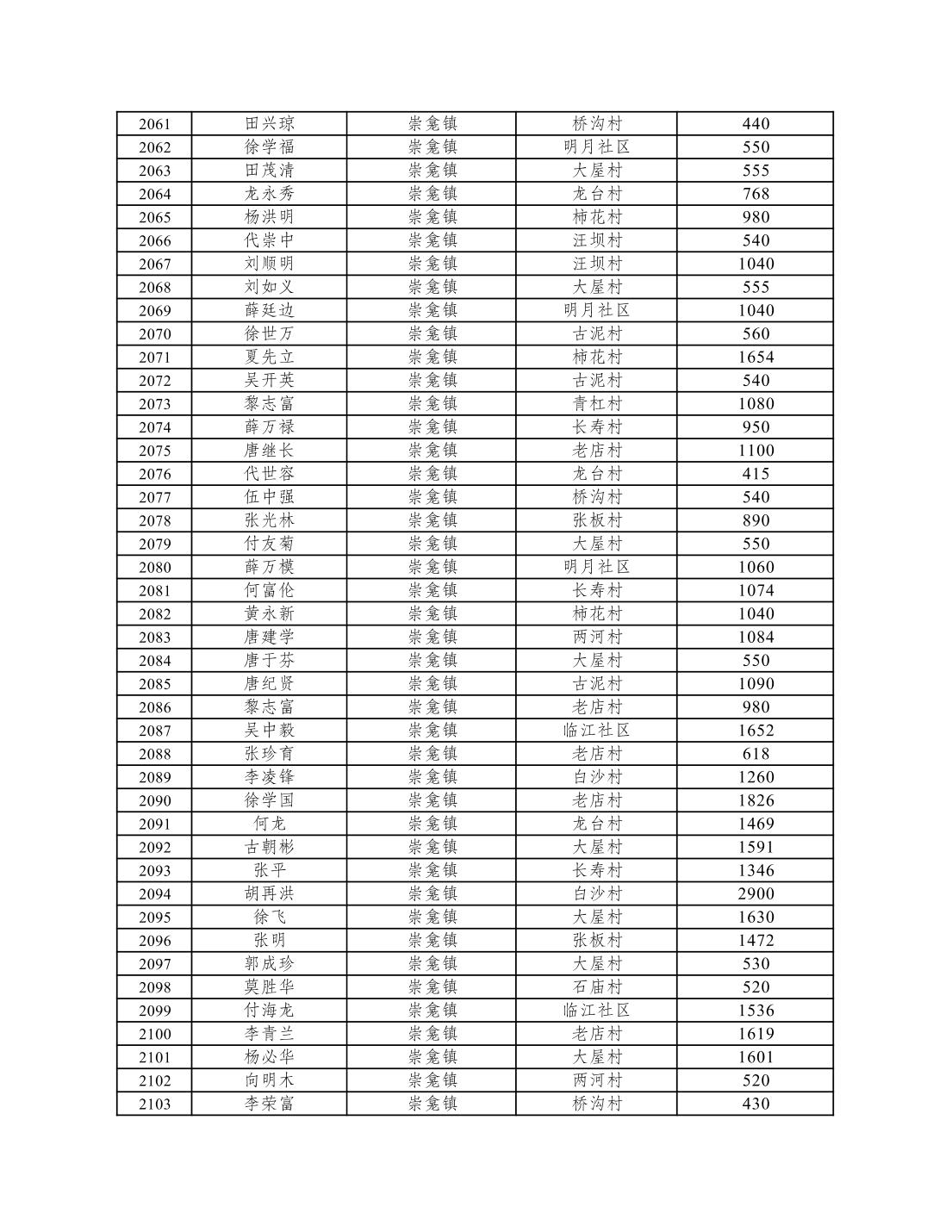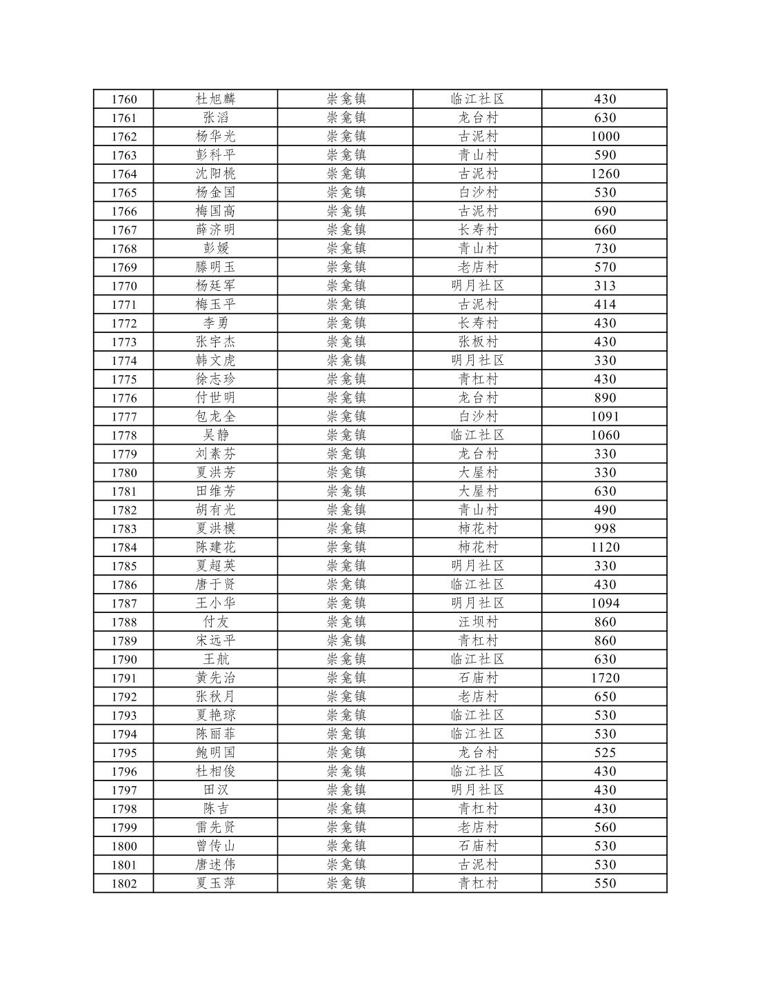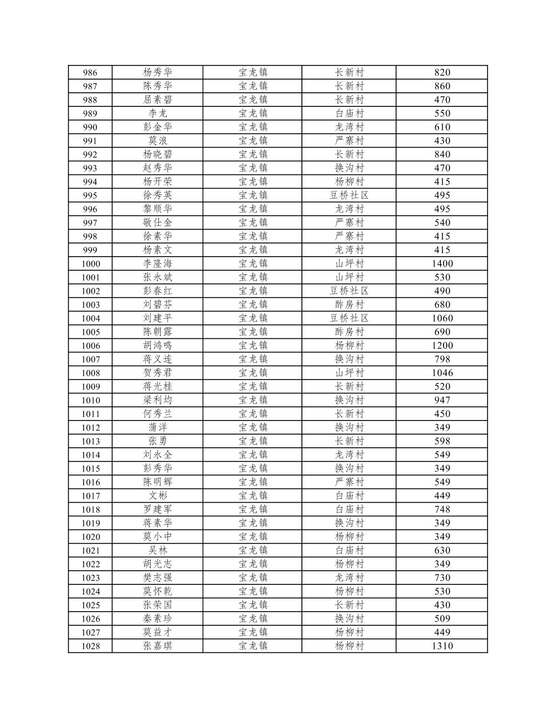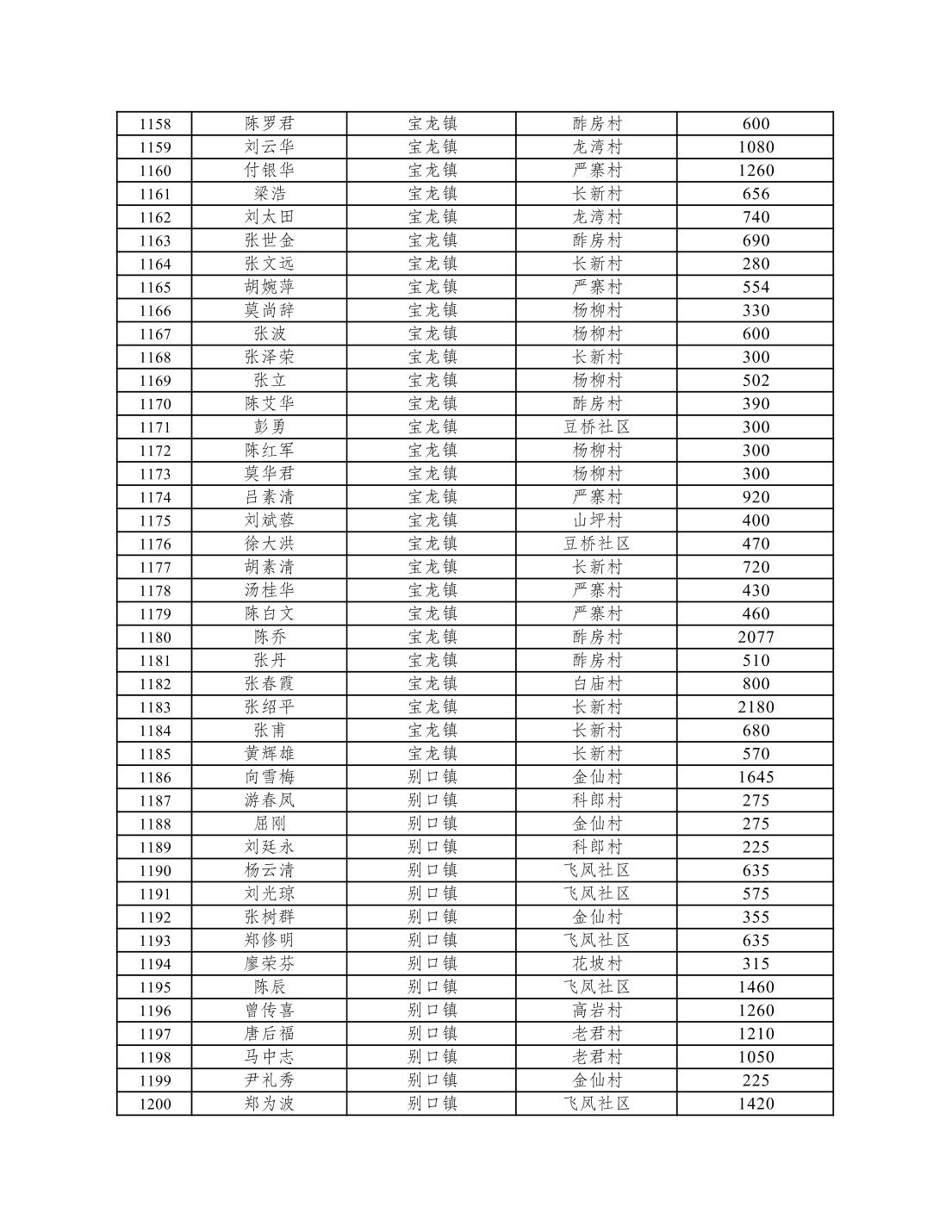 重庆市潼南区2026年1月低保信息公示
