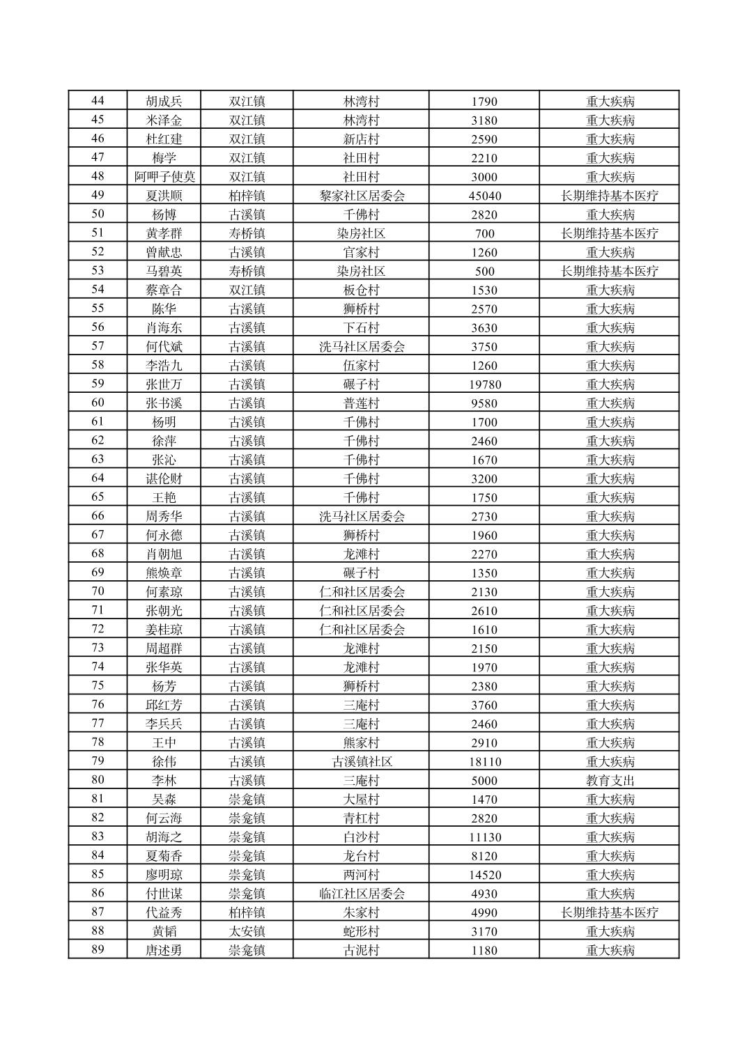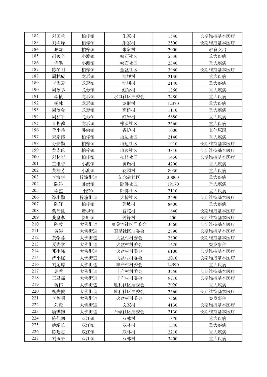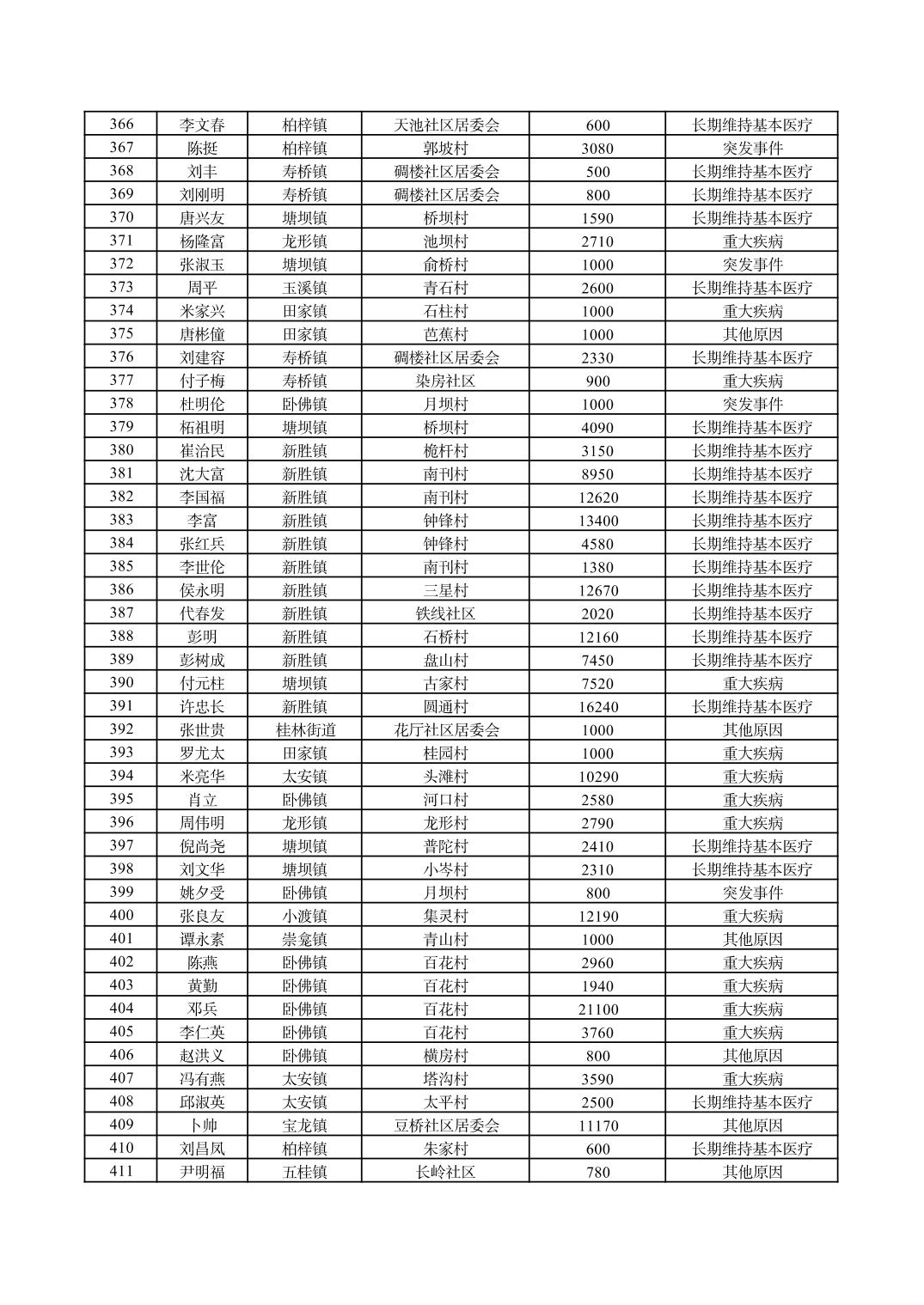 重庆市潼南区2026年1月临时救助信息公示