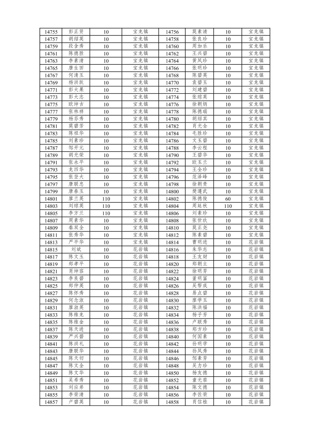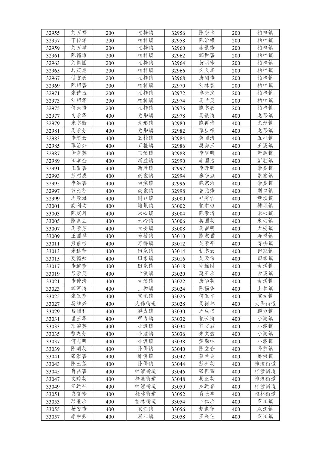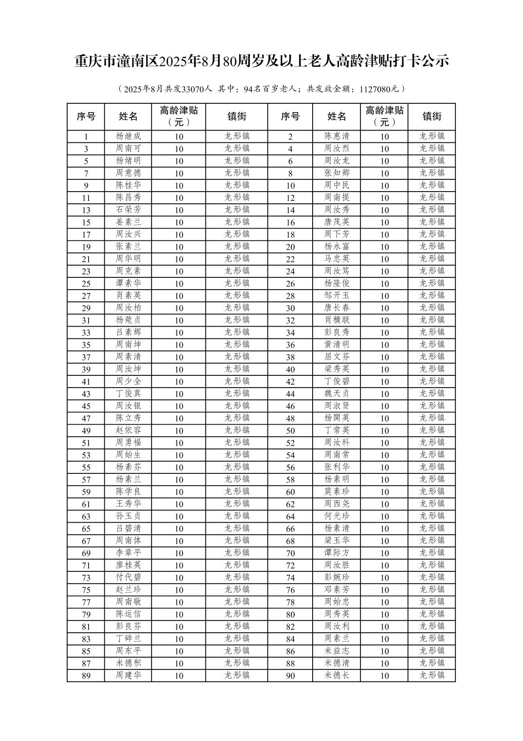 重庆市潼南区2025年8月80周岁及以上老人高龄津贴打卡公示