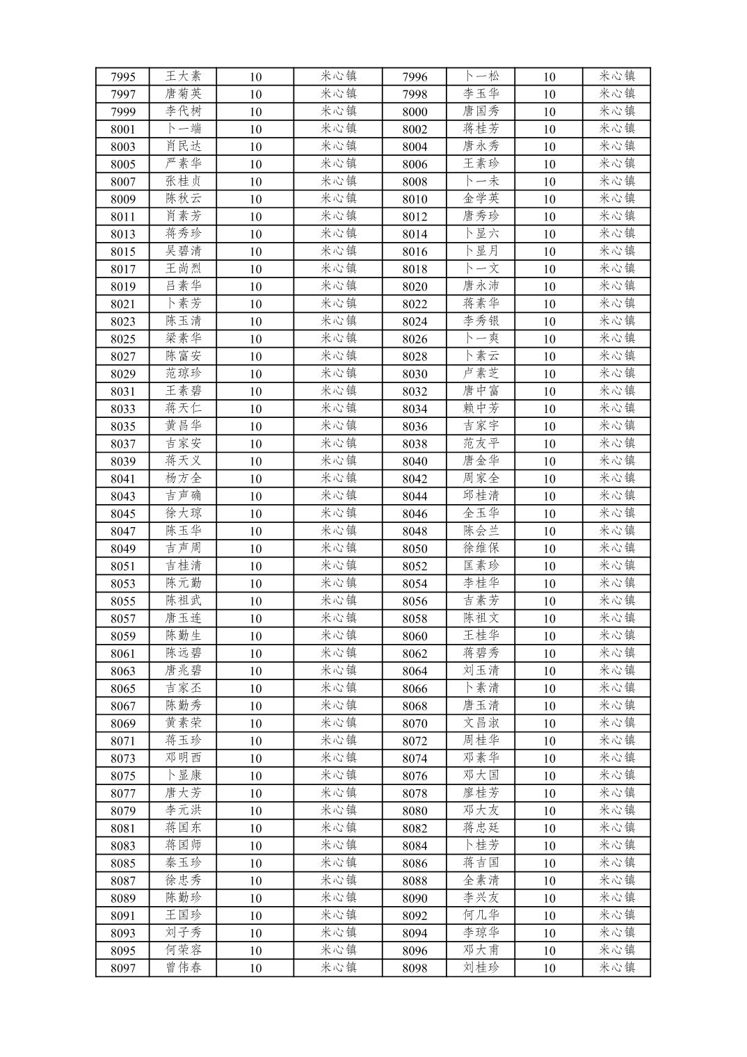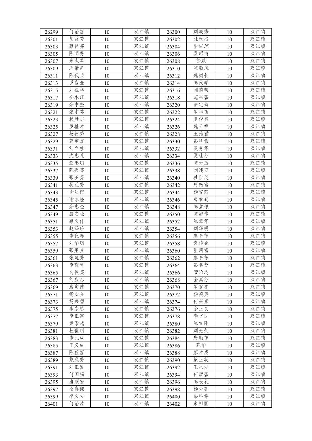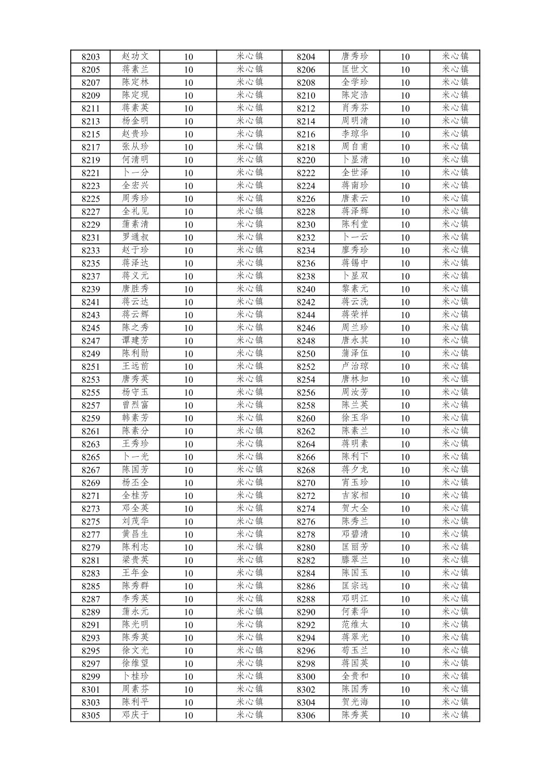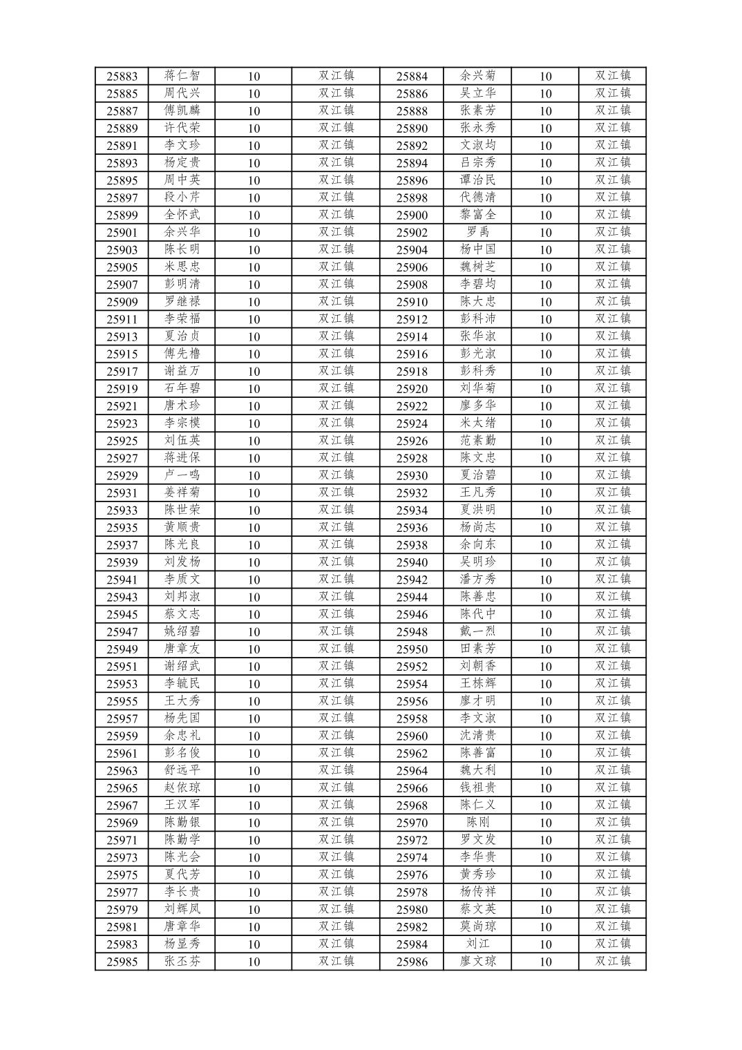 重庆市潼南区2025年8月80周岁及以上老人高龄津贴打卡公示