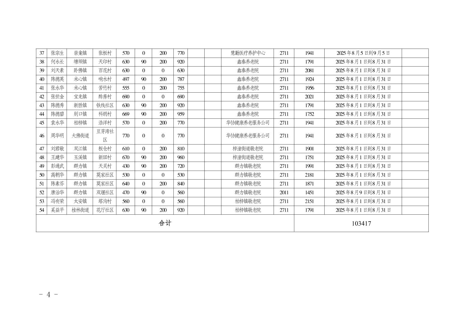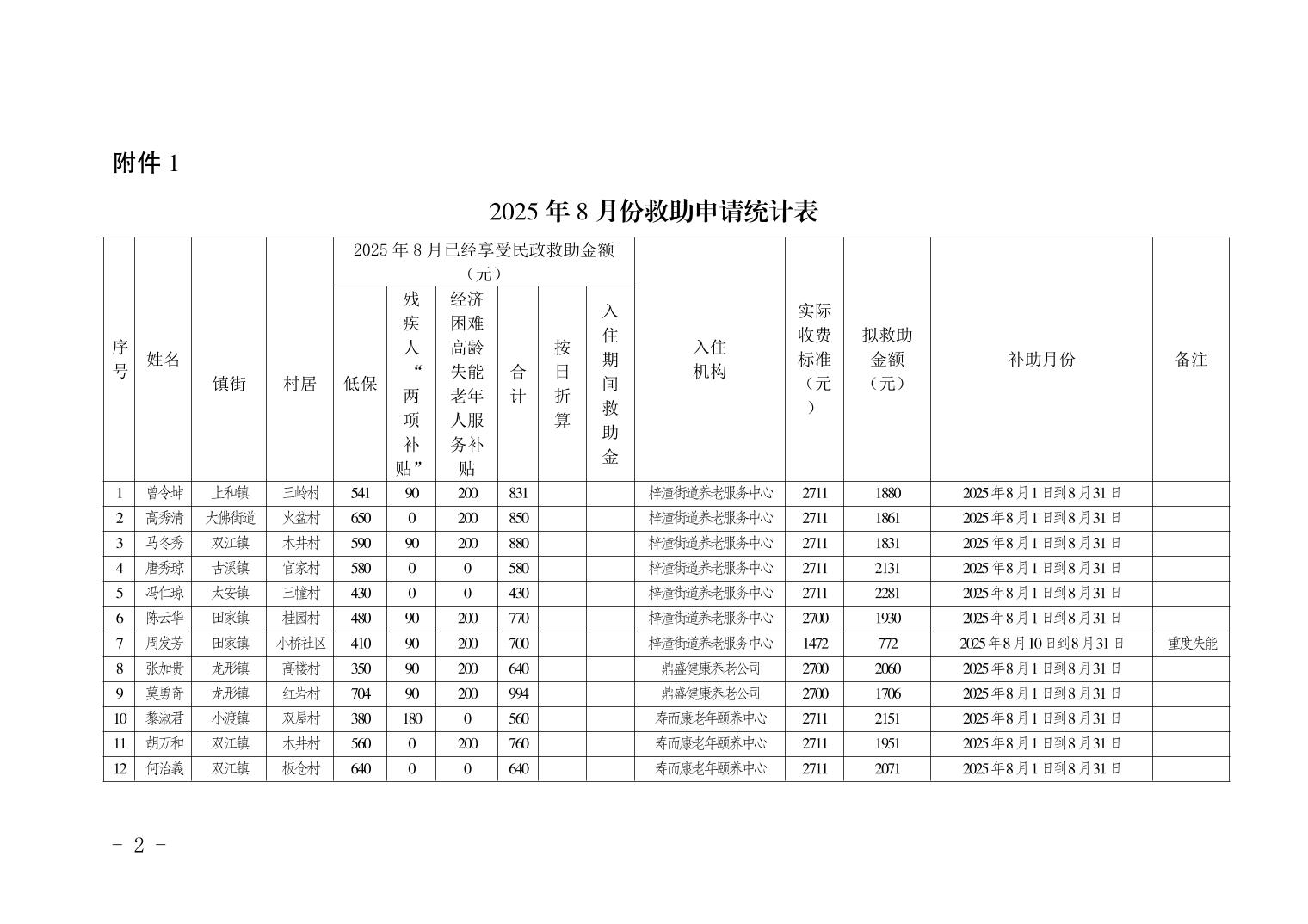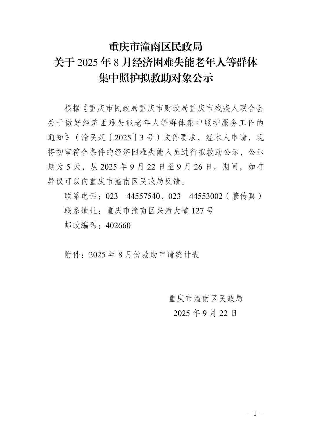 重庆市潼南区民政局关于2025年8月经济困难失能老年人等群体集中照护拟救助对象公示