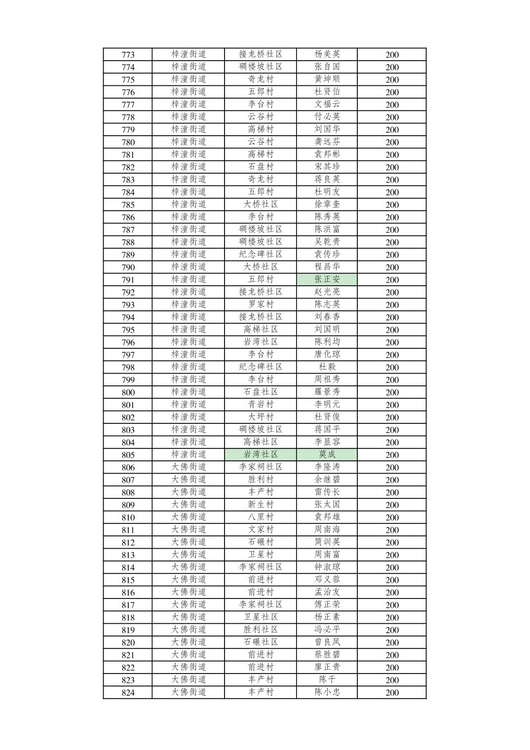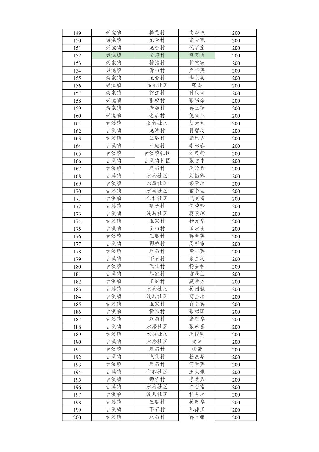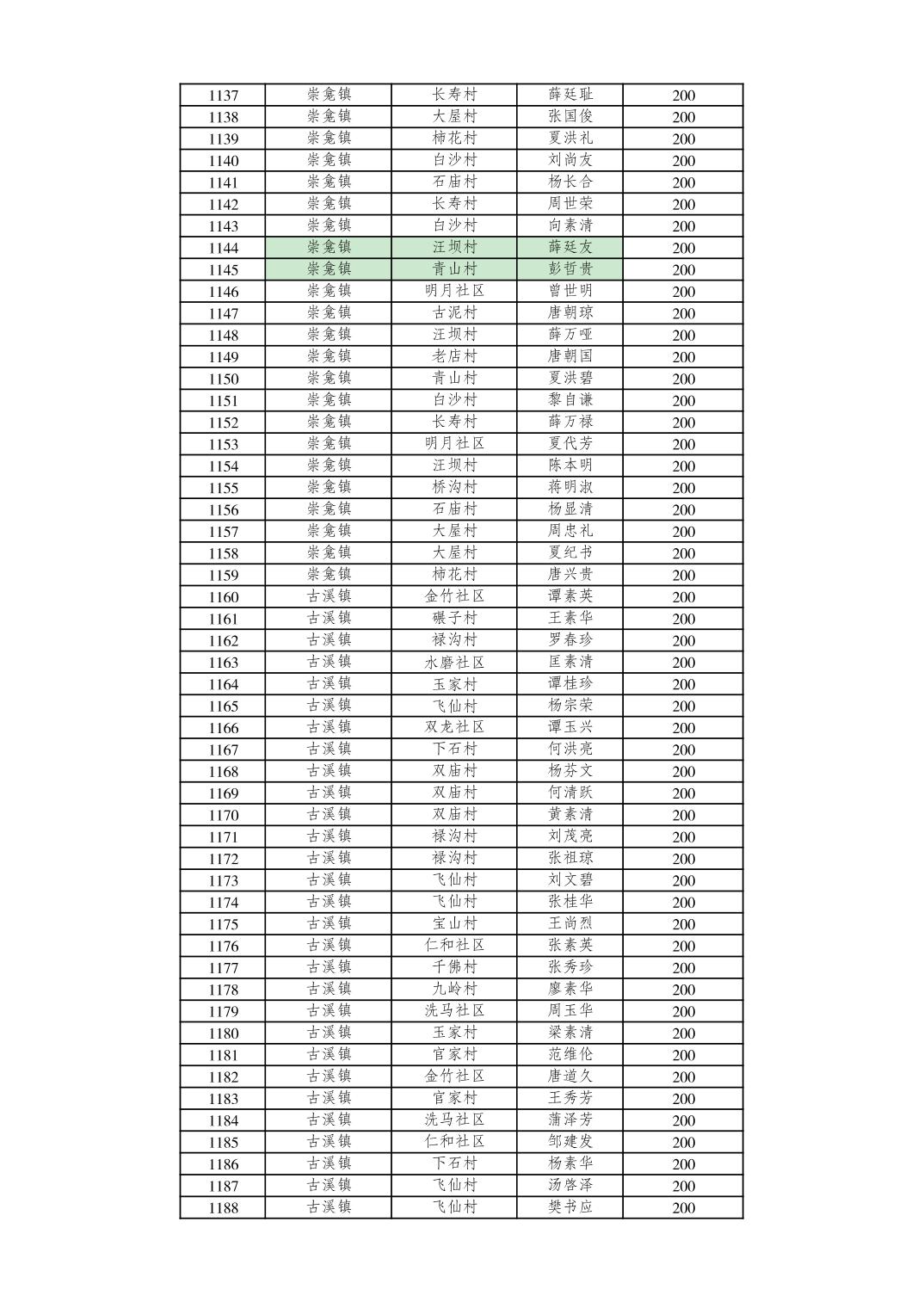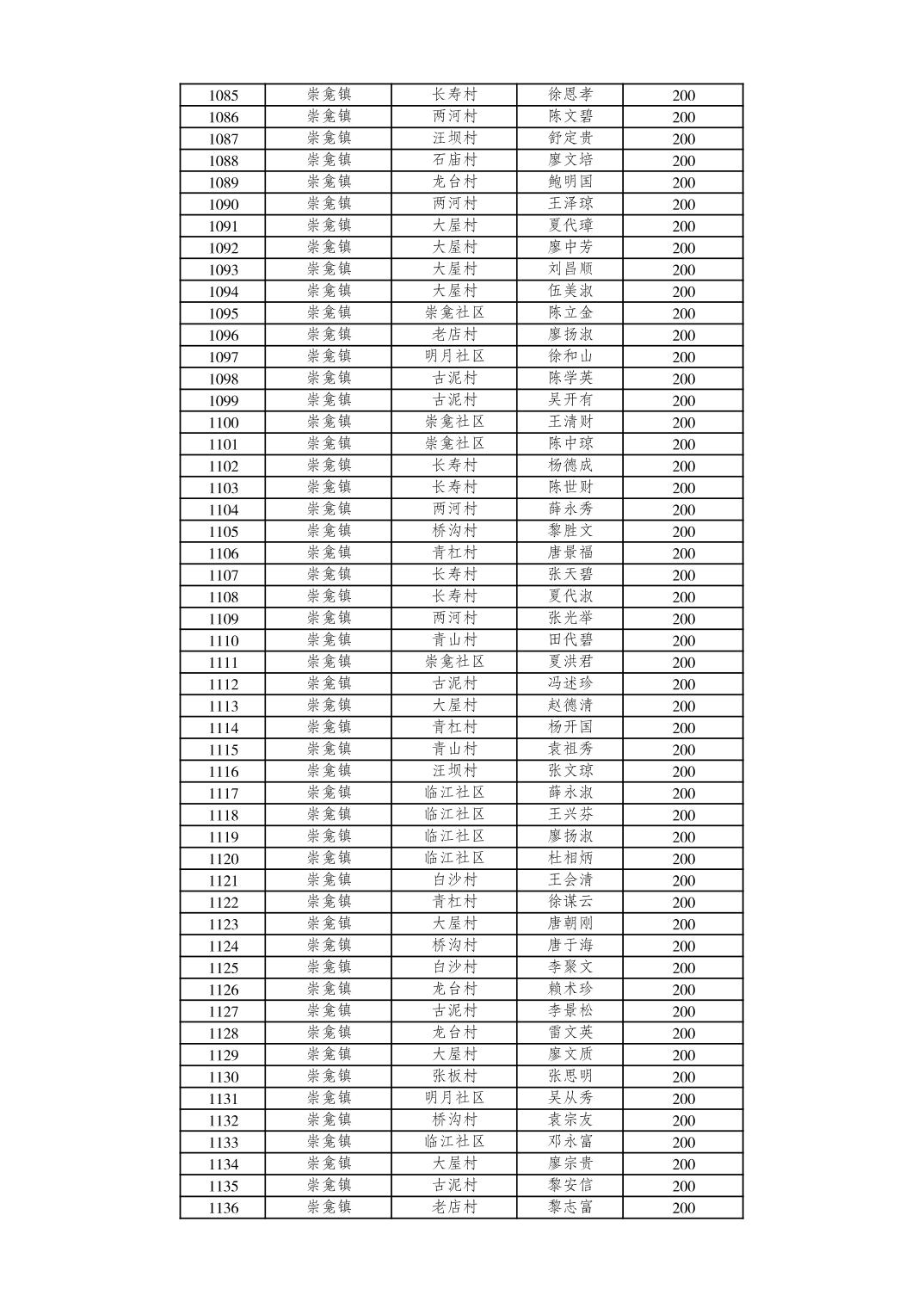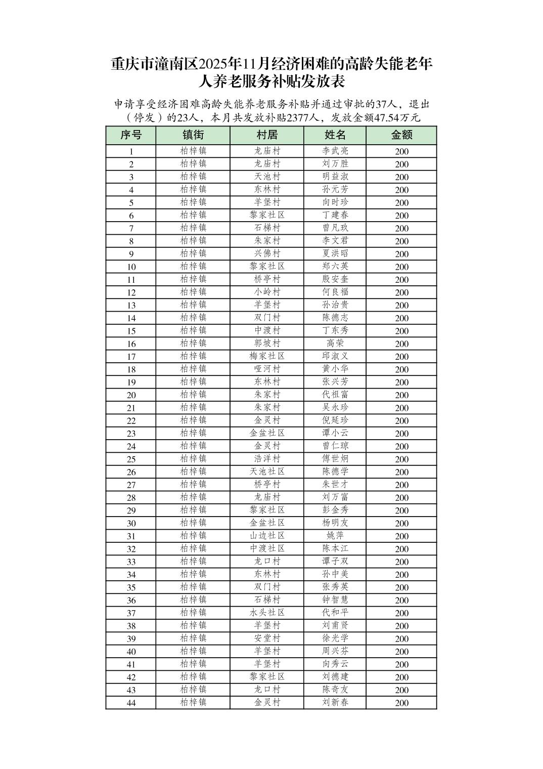 重庆市潼南区2025年11月经济困难的高龄失能老年人养老服务补贴发放表