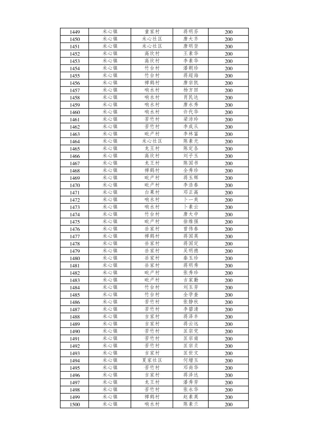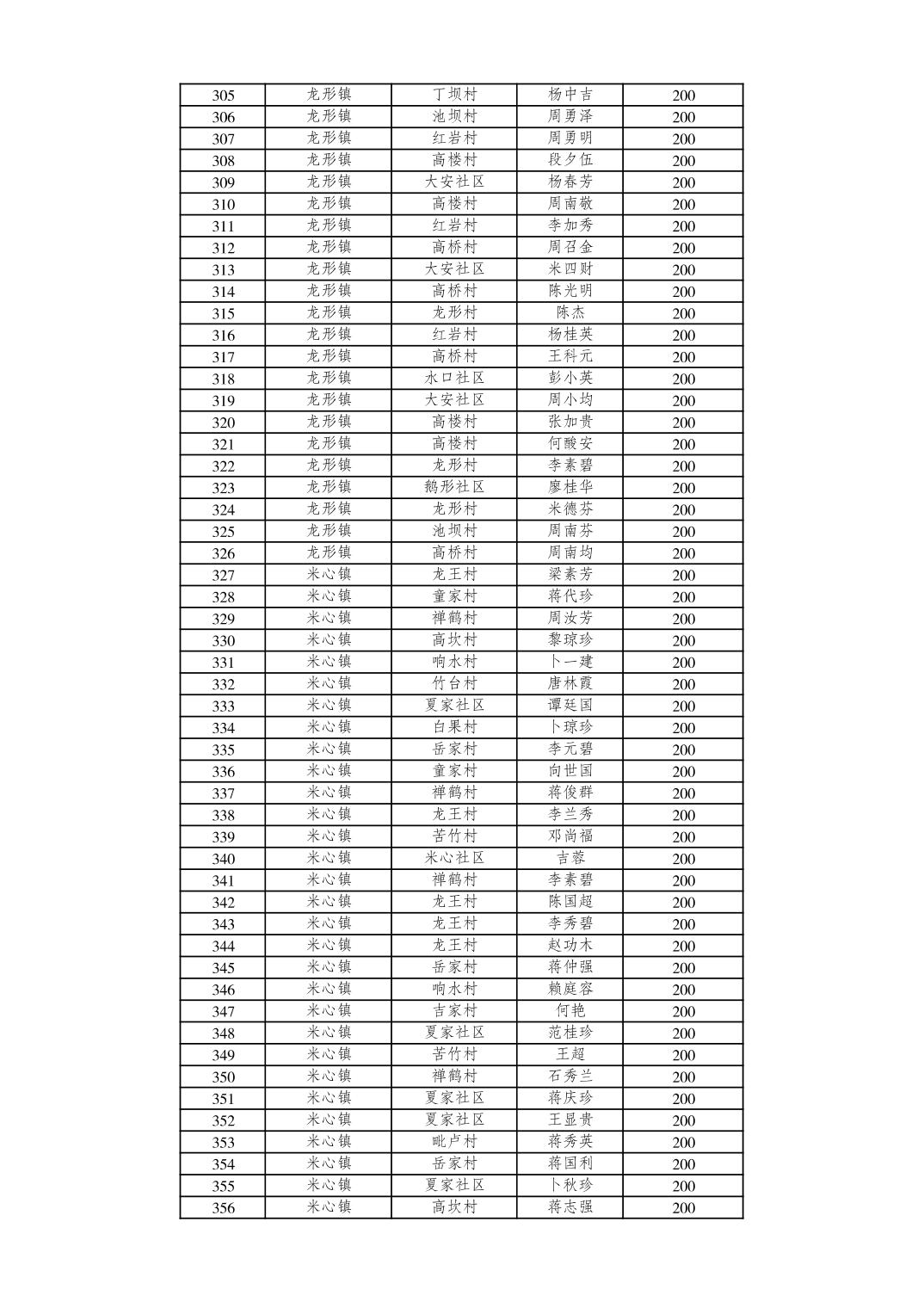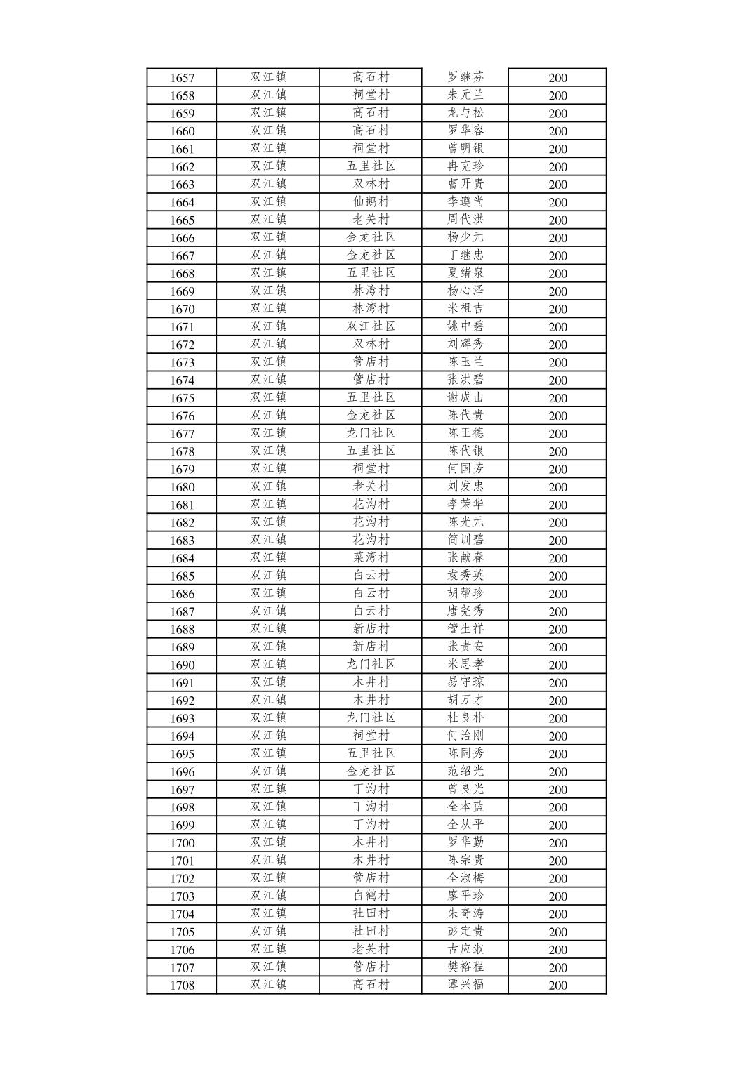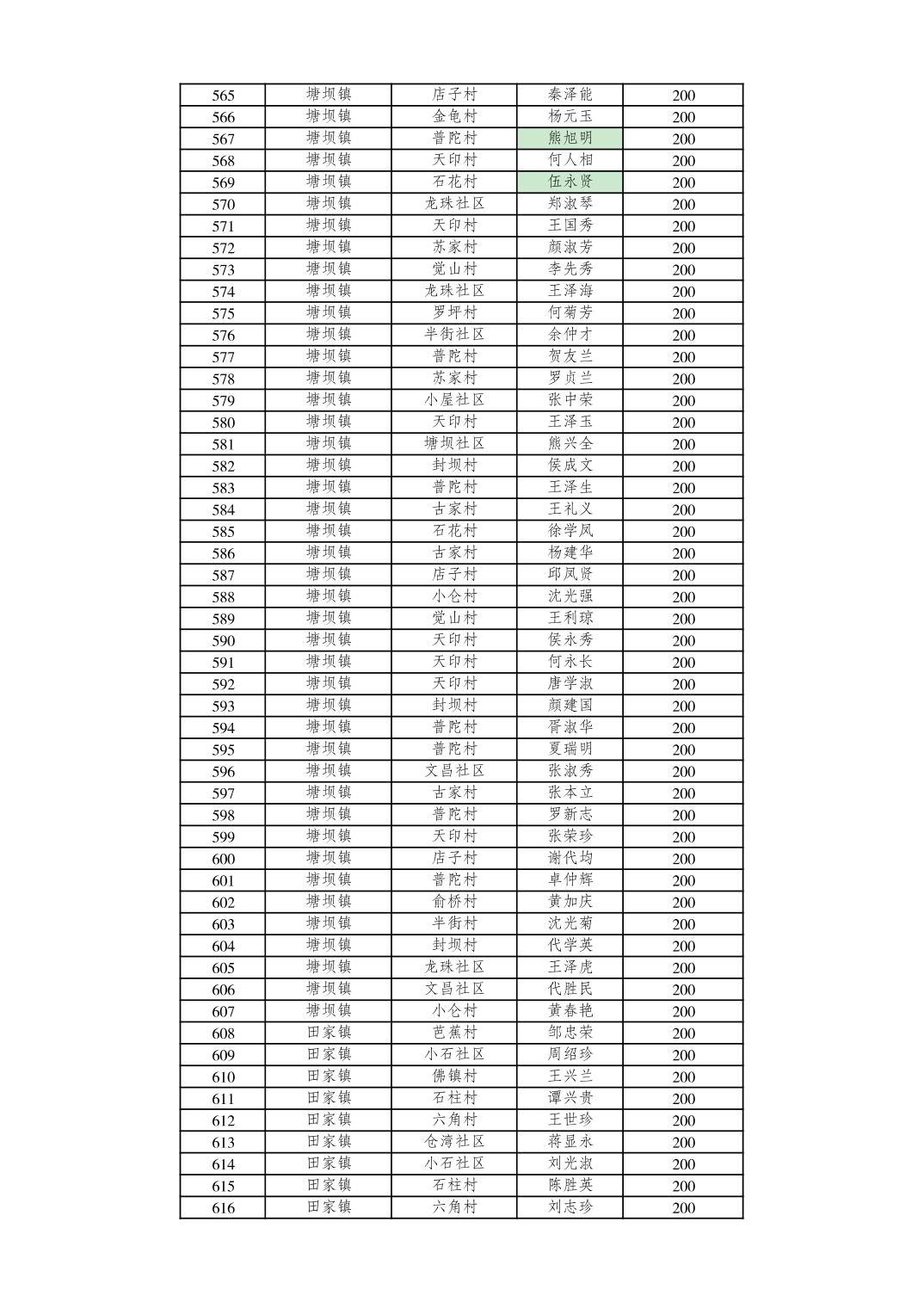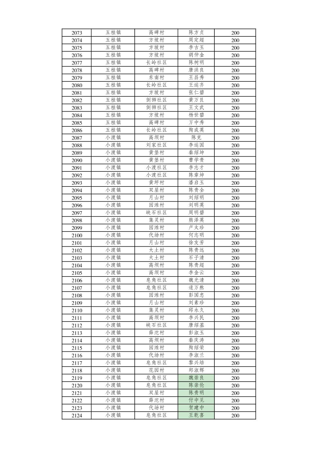 重庆市潼南区2025年11月经济困难的高龄失能老年人养老服务补贴发放表
