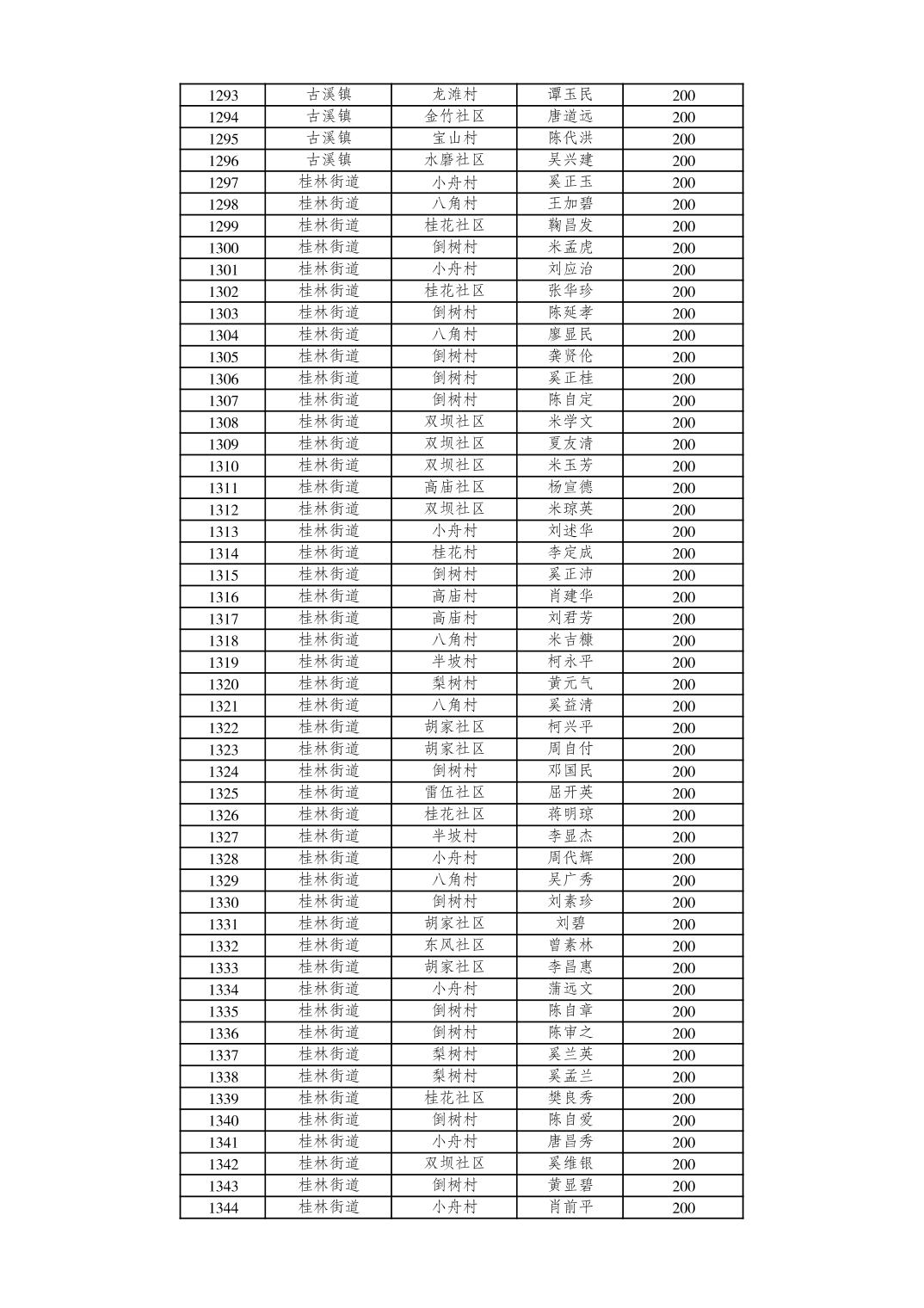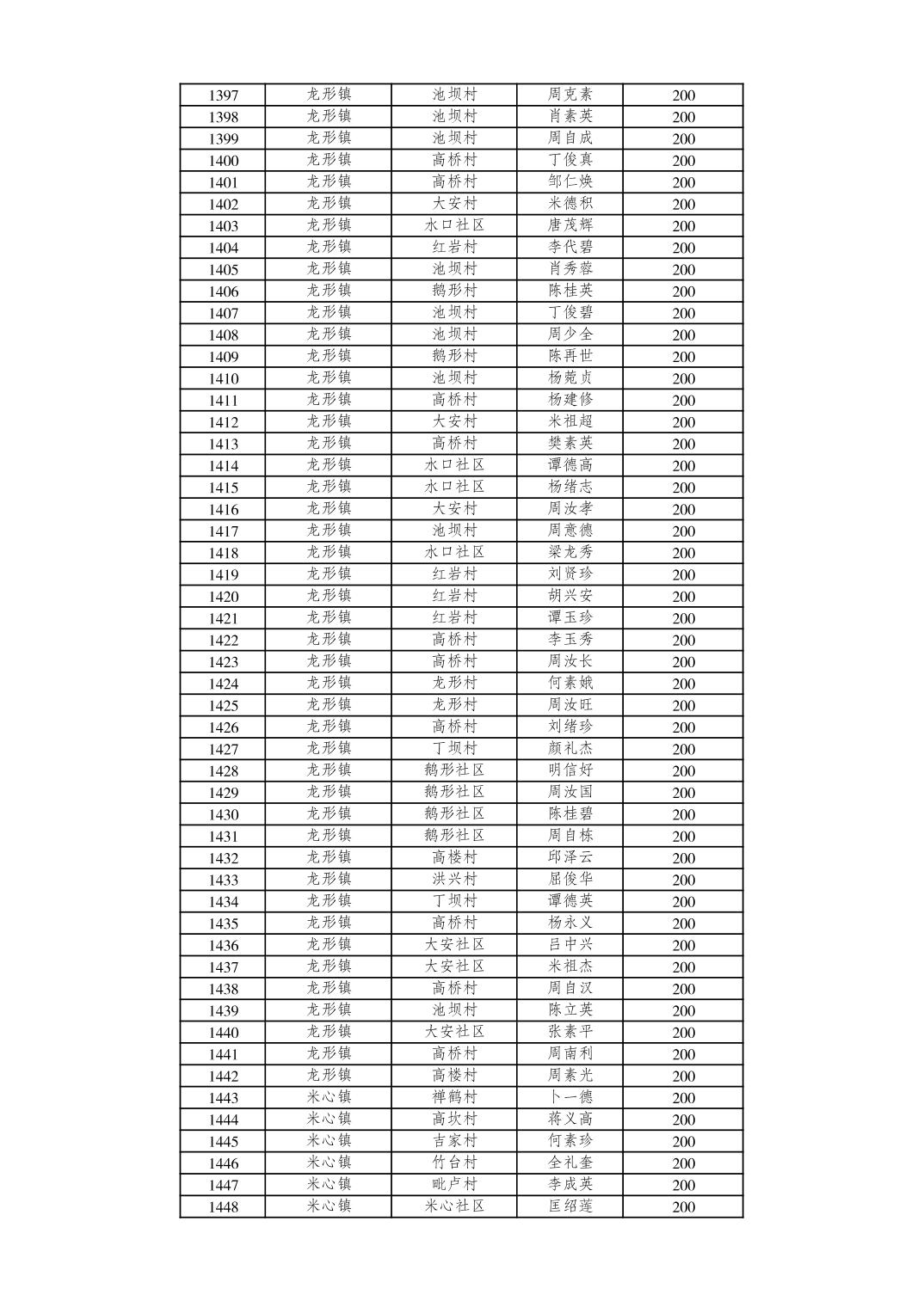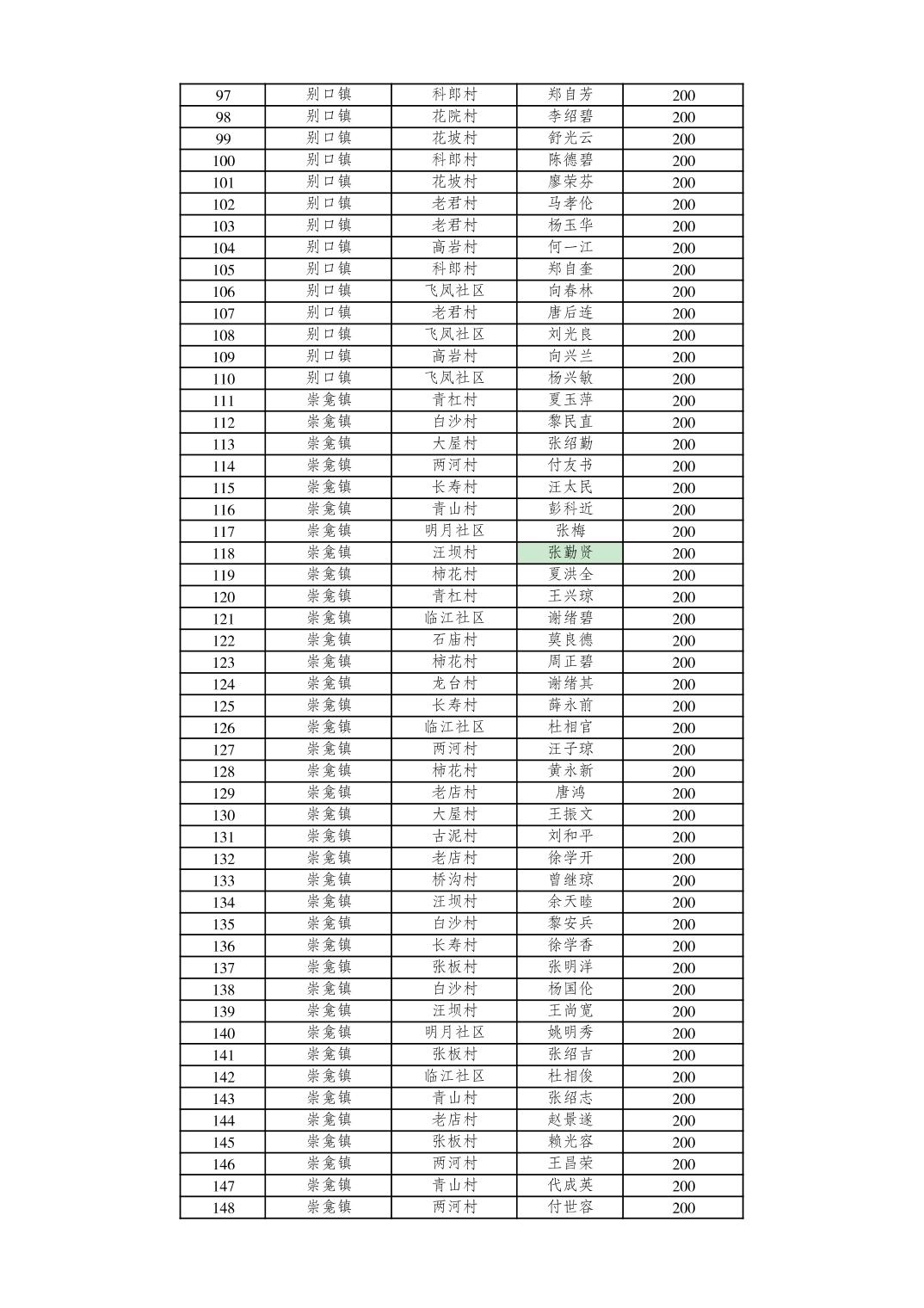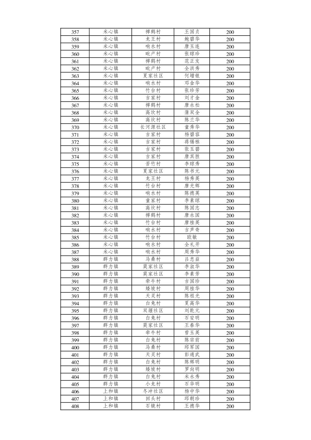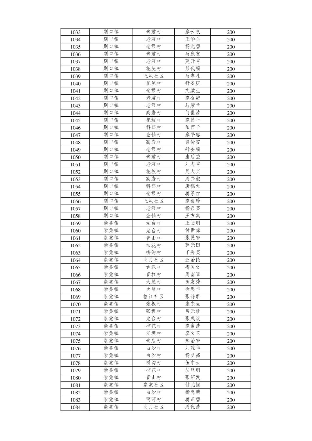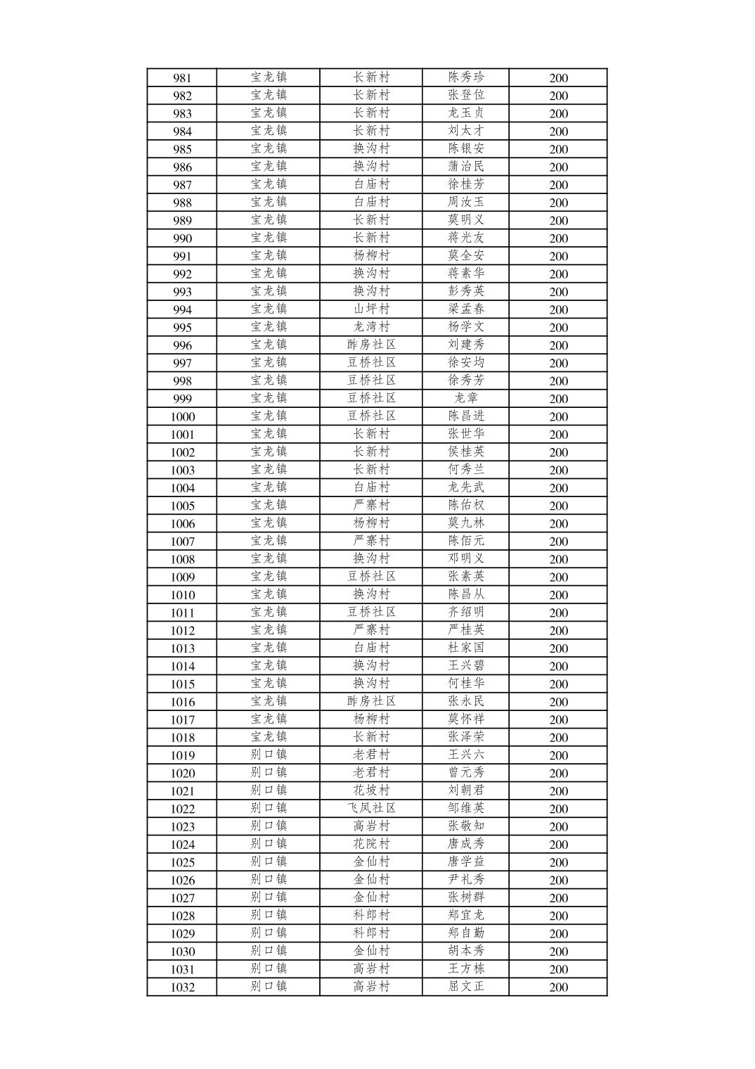 重庆市潼南区2025年11月经济困难的高龄失能老年人养老服务补贴发放表