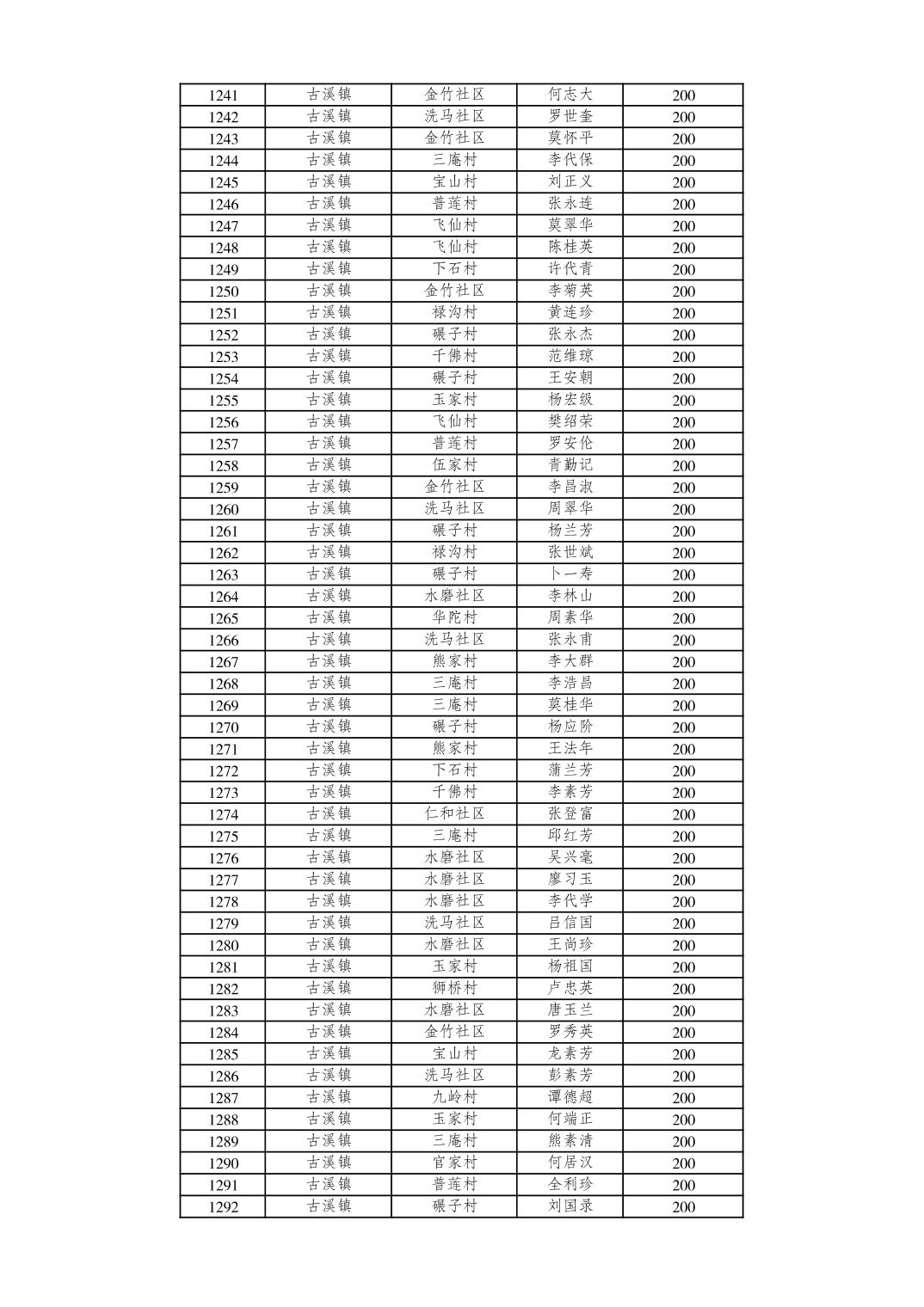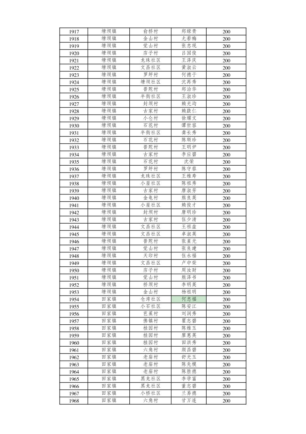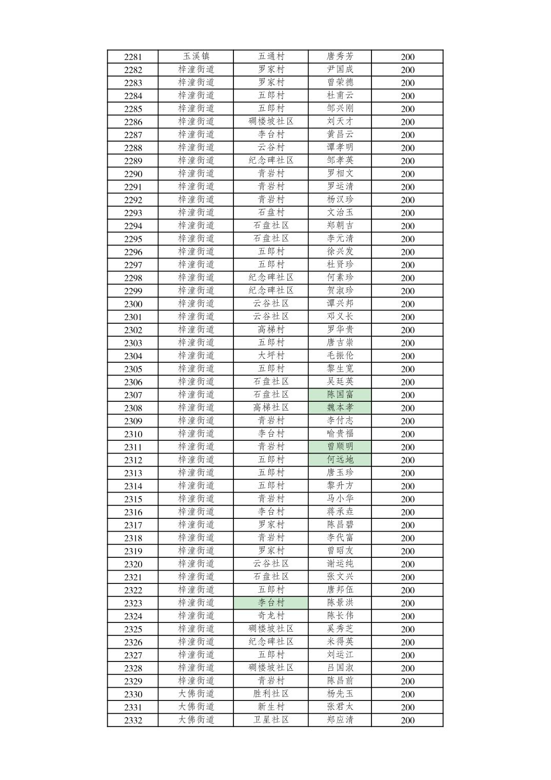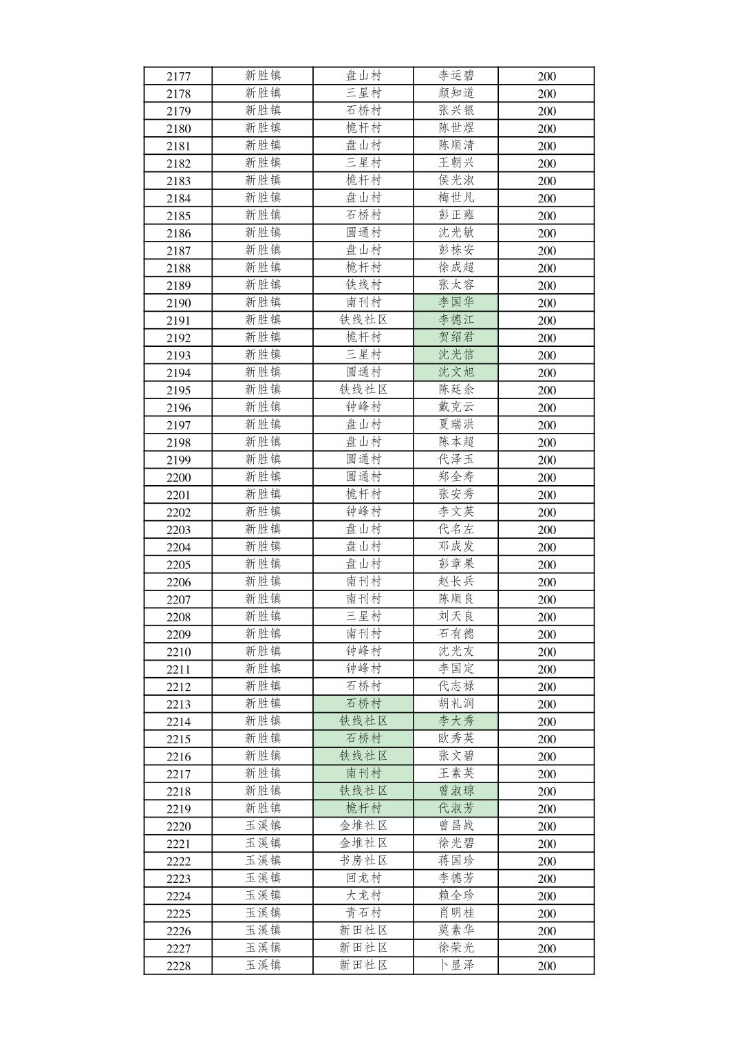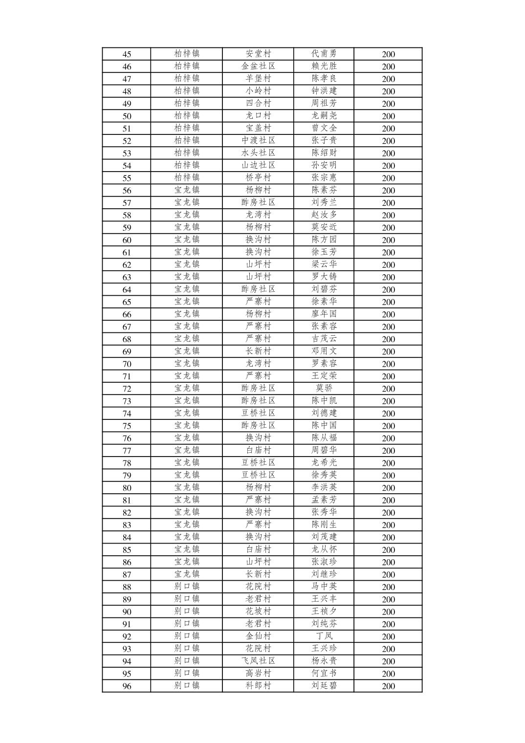 重庆市潼南区2025年11月经济困难的高龄失能老年人养老服务补贴发放表