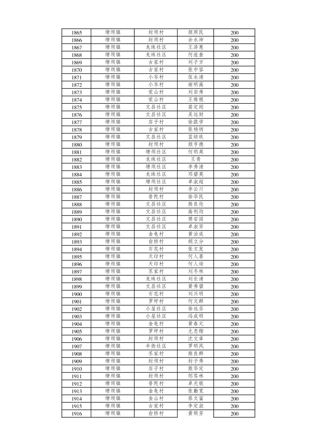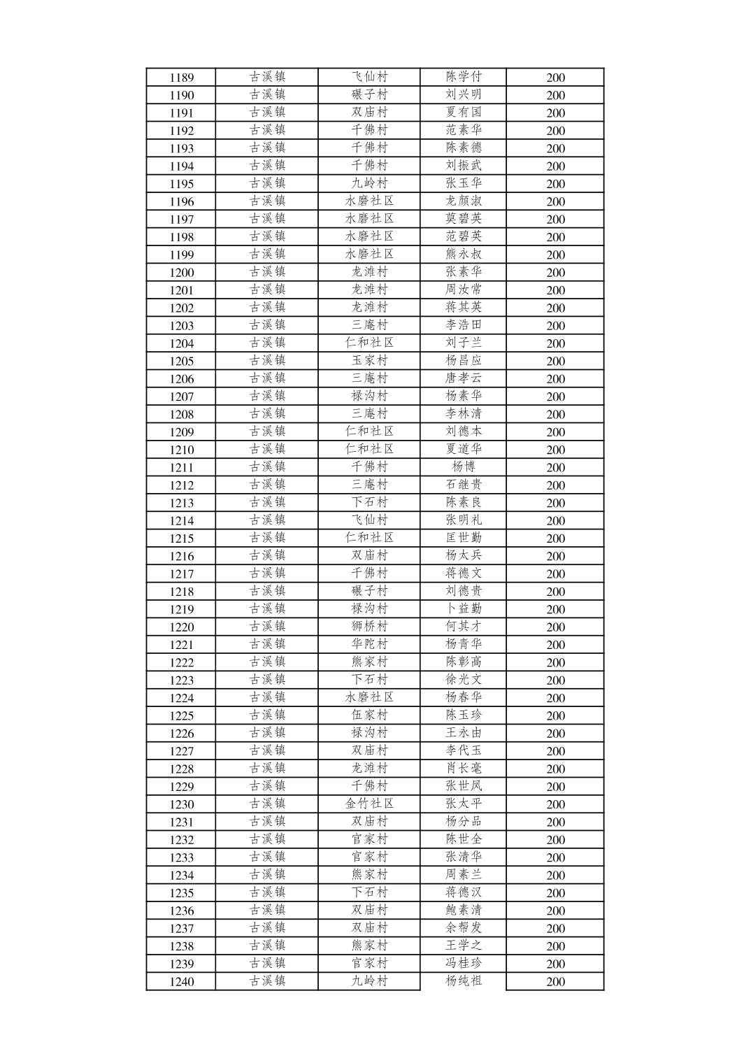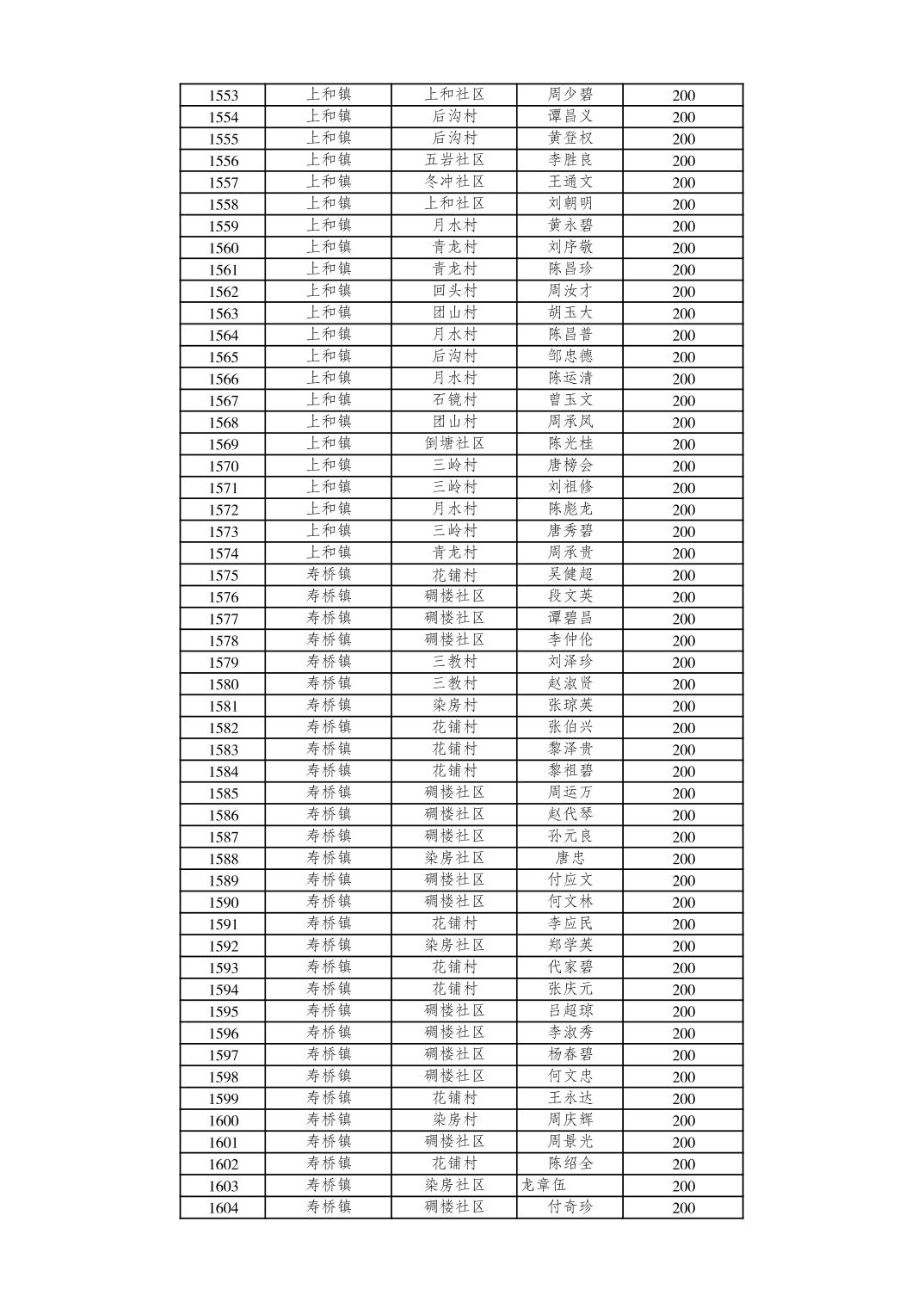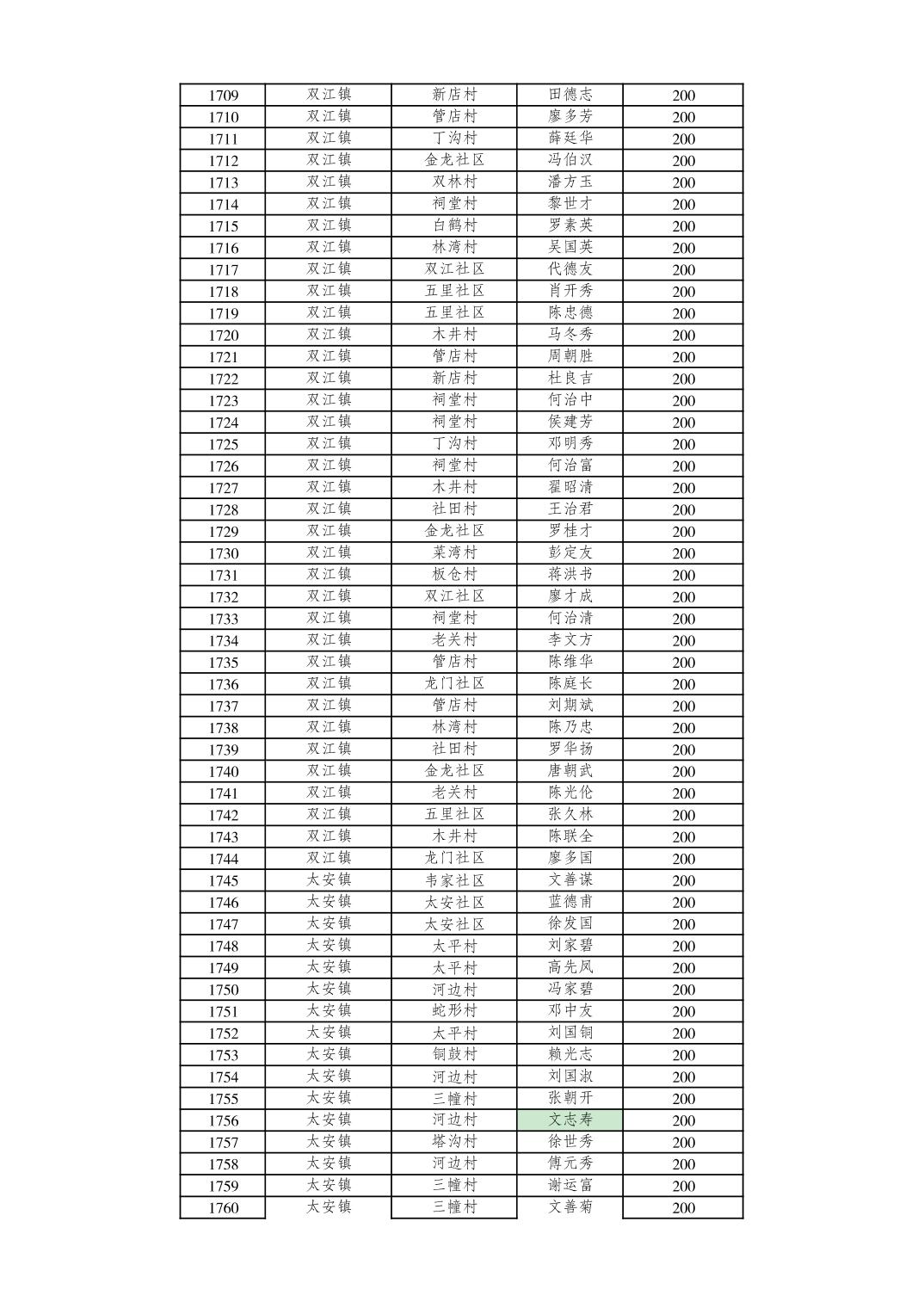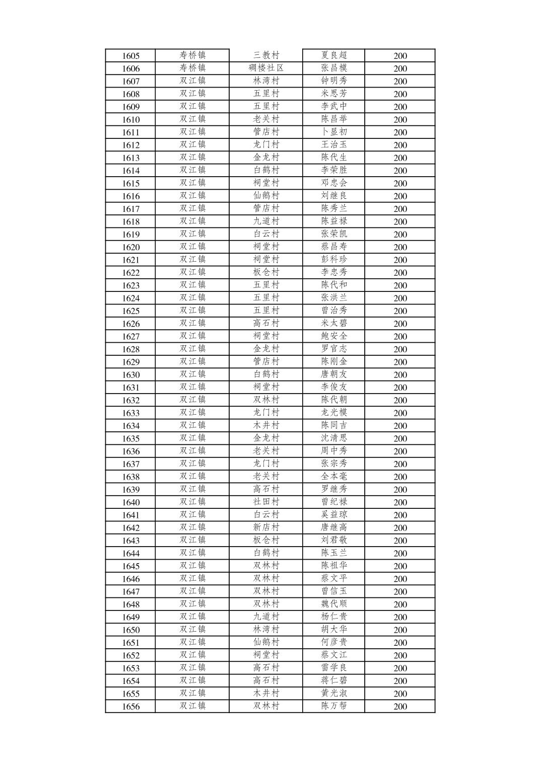 重庆市潼南区2025年11月经济困难的高龄失能老年人养老服务补贴发放表