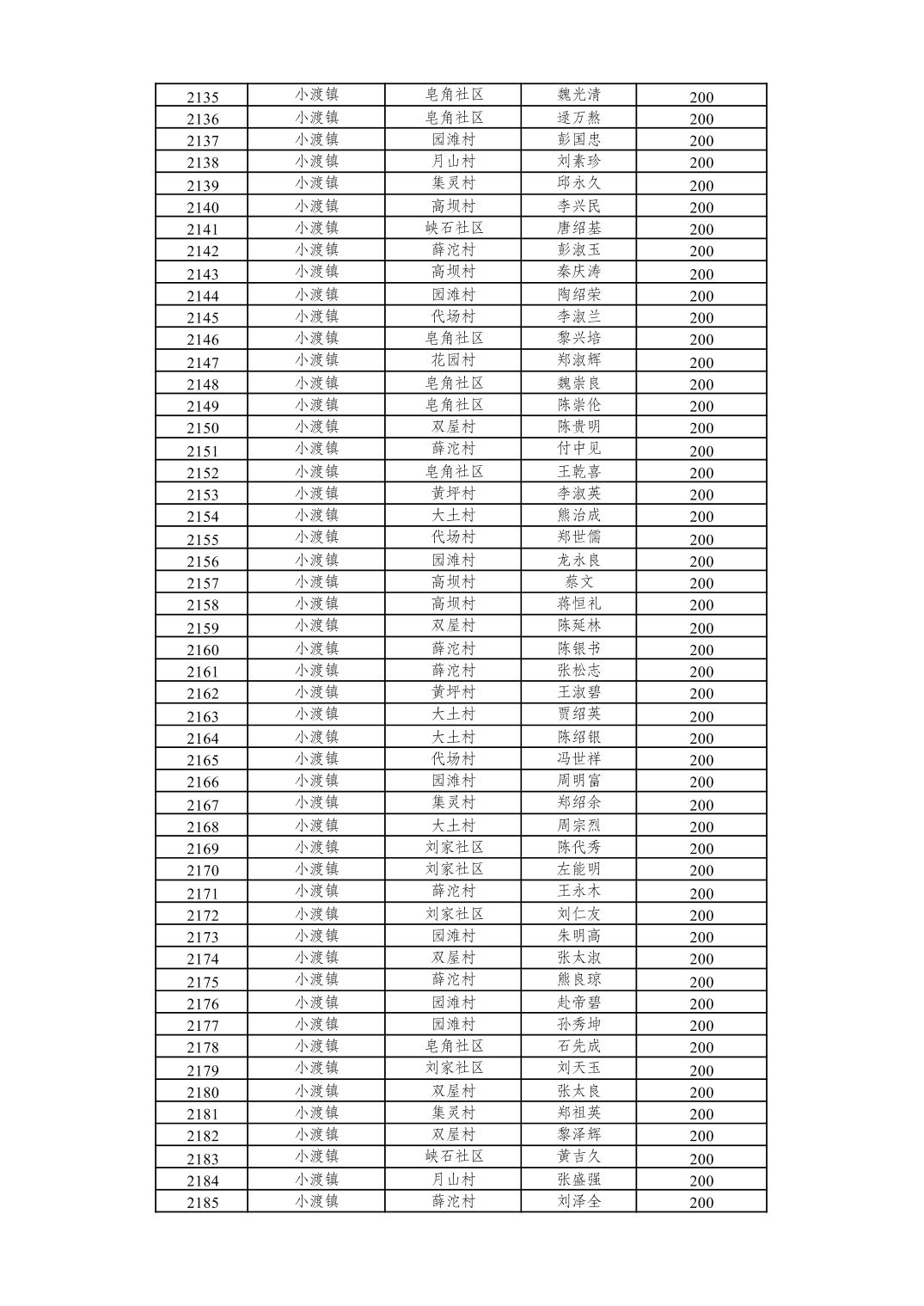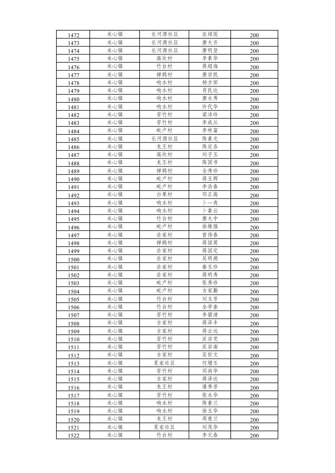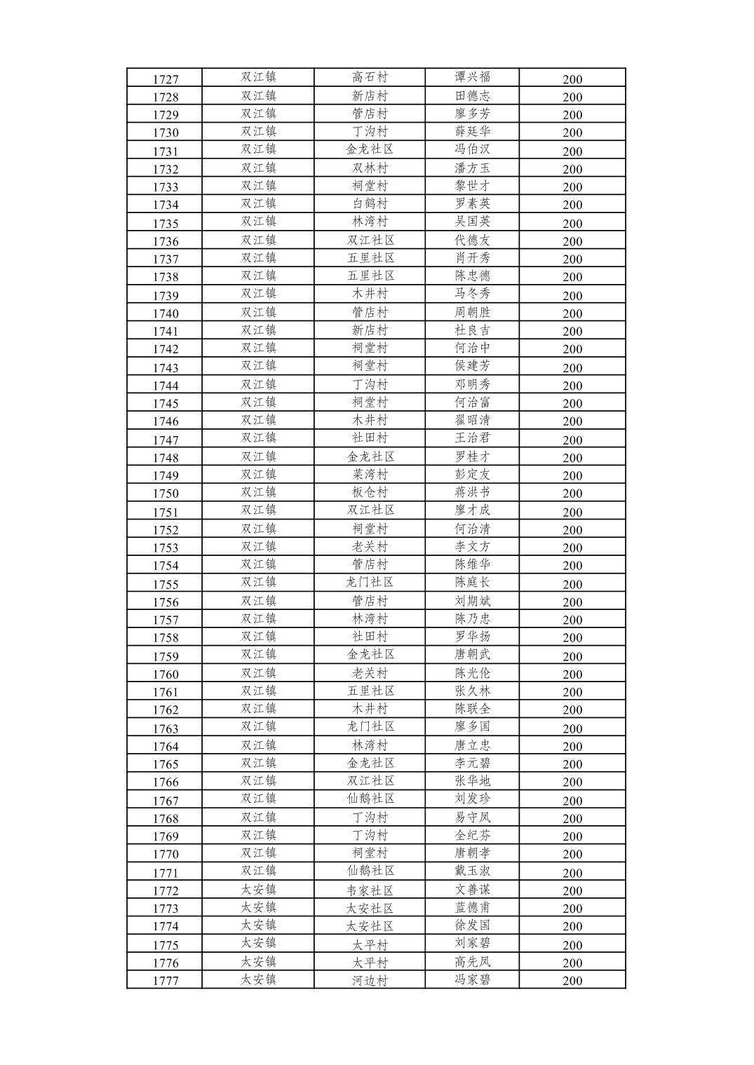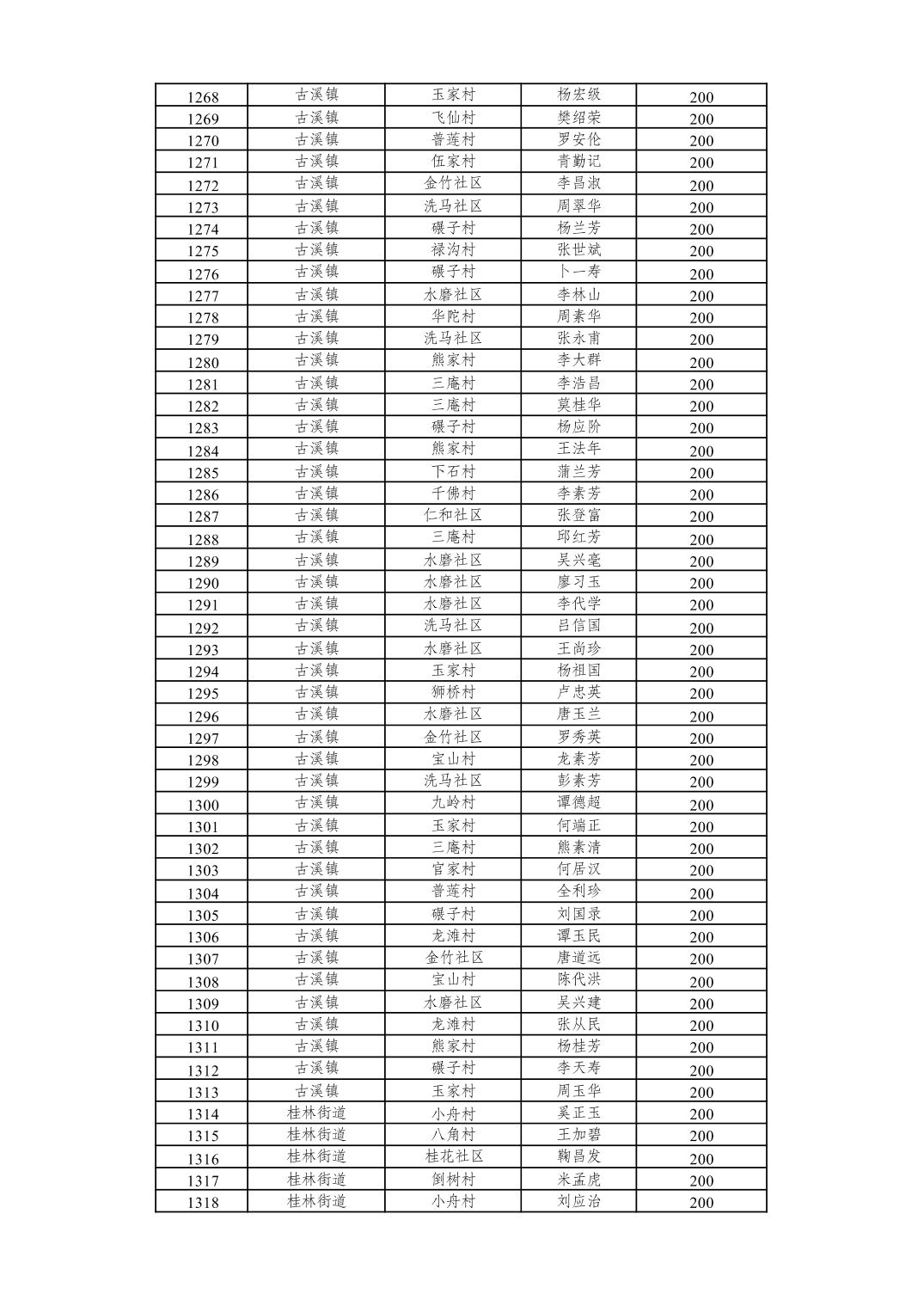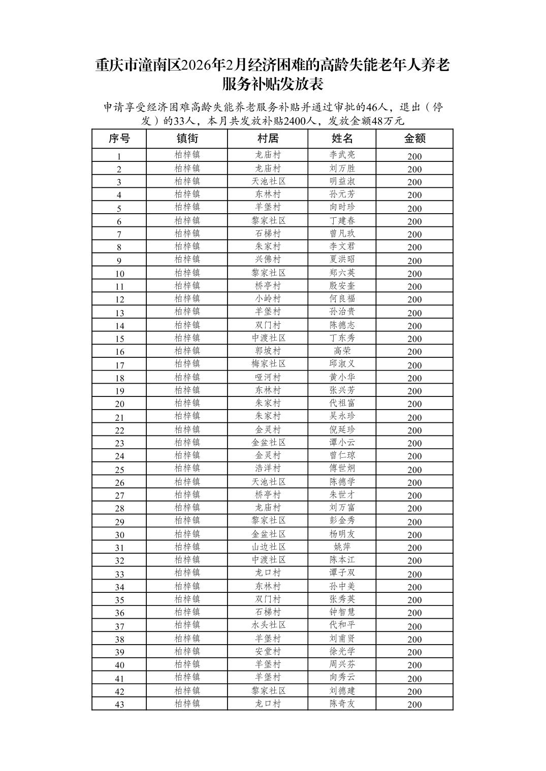 重庆市潼南区2026年2月经济困难的高龄失能老年人养老服务补贴发放表