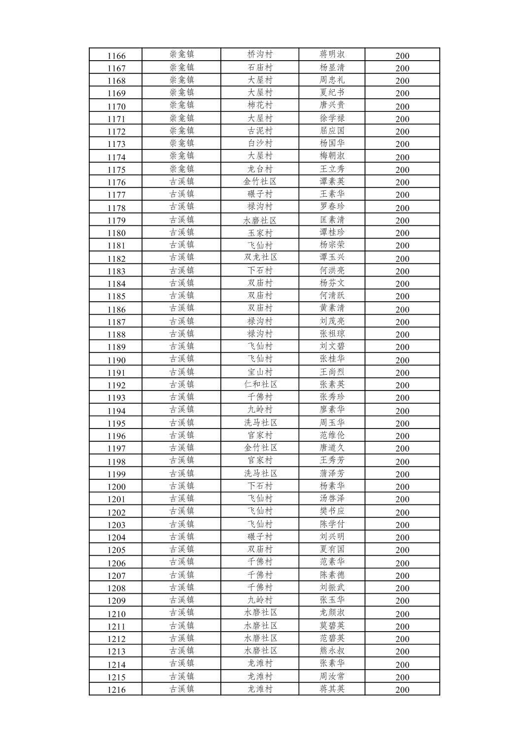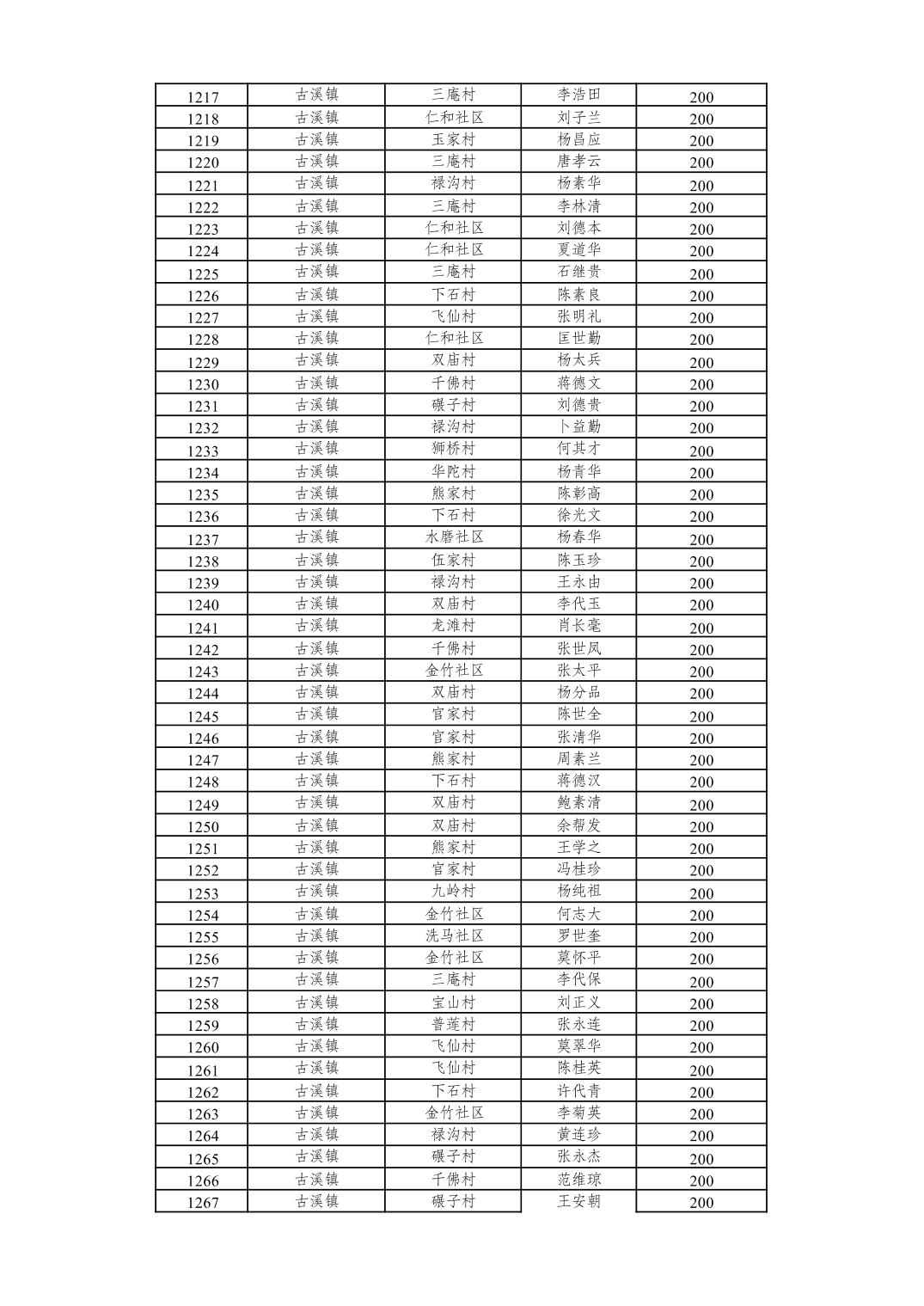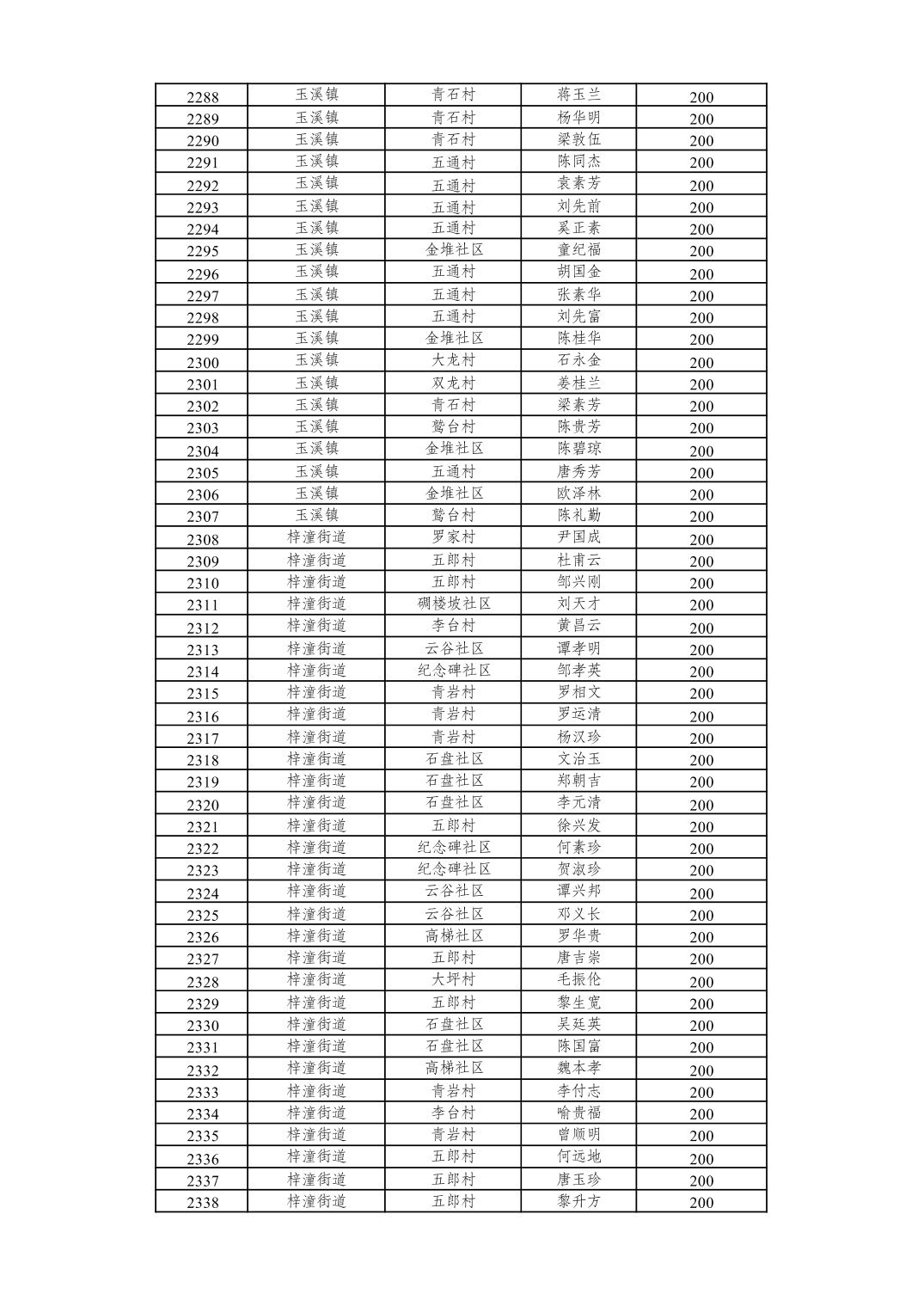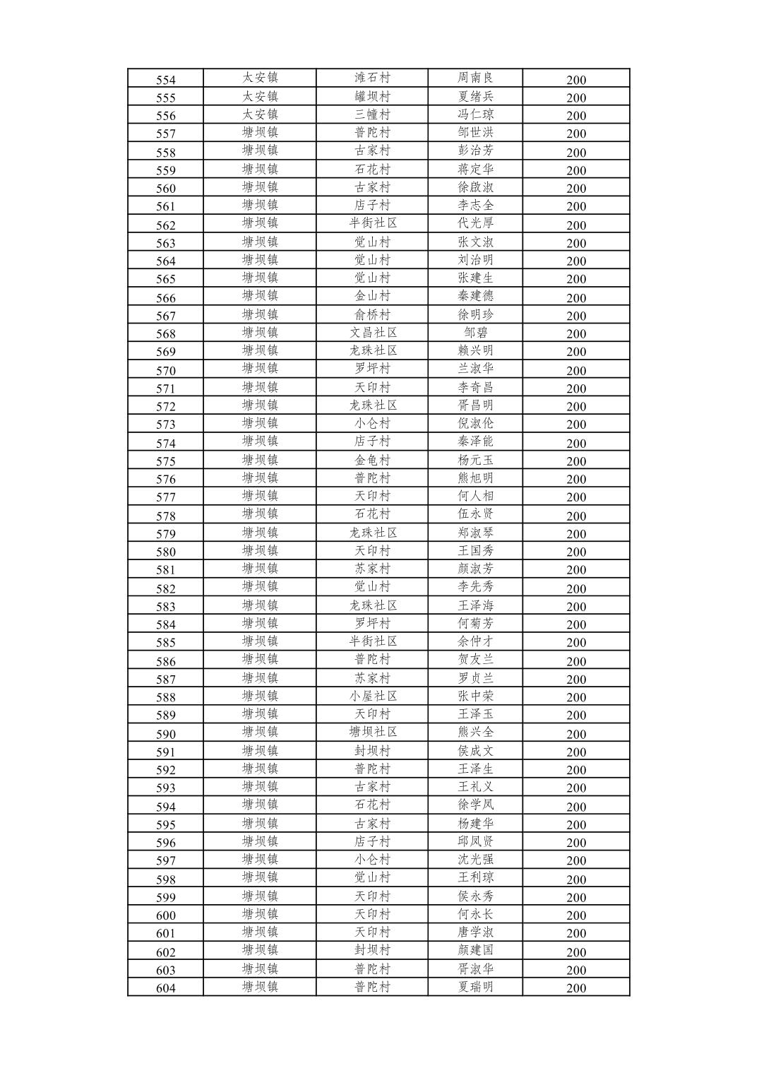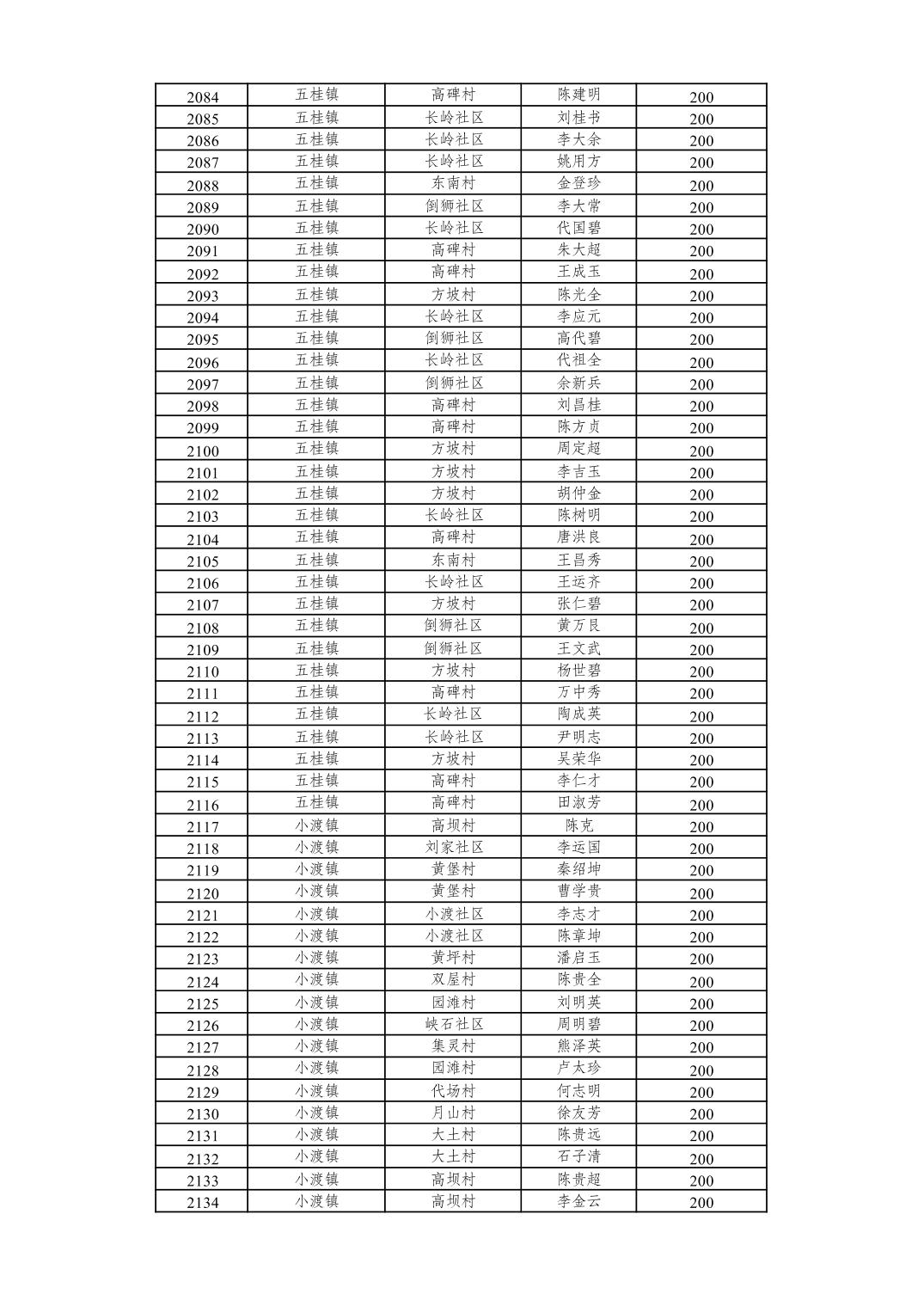 重庆市潼南区2026年2月经济困难的高龄失能老年人养老服务补贴发放表