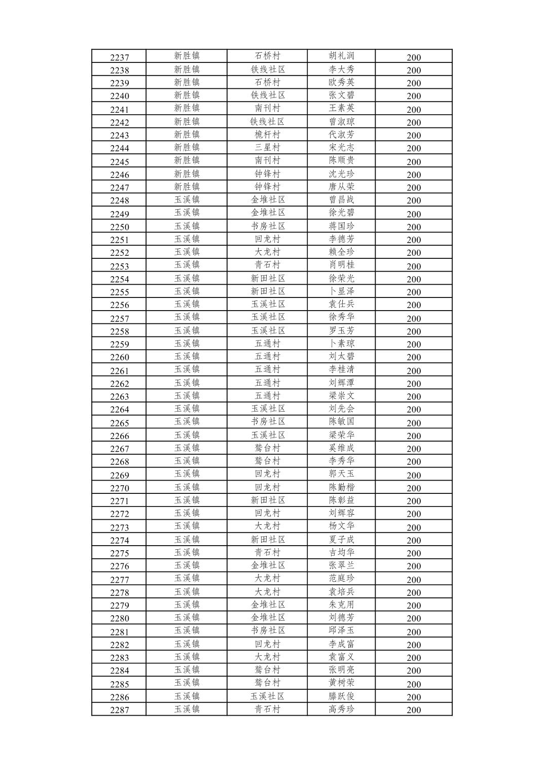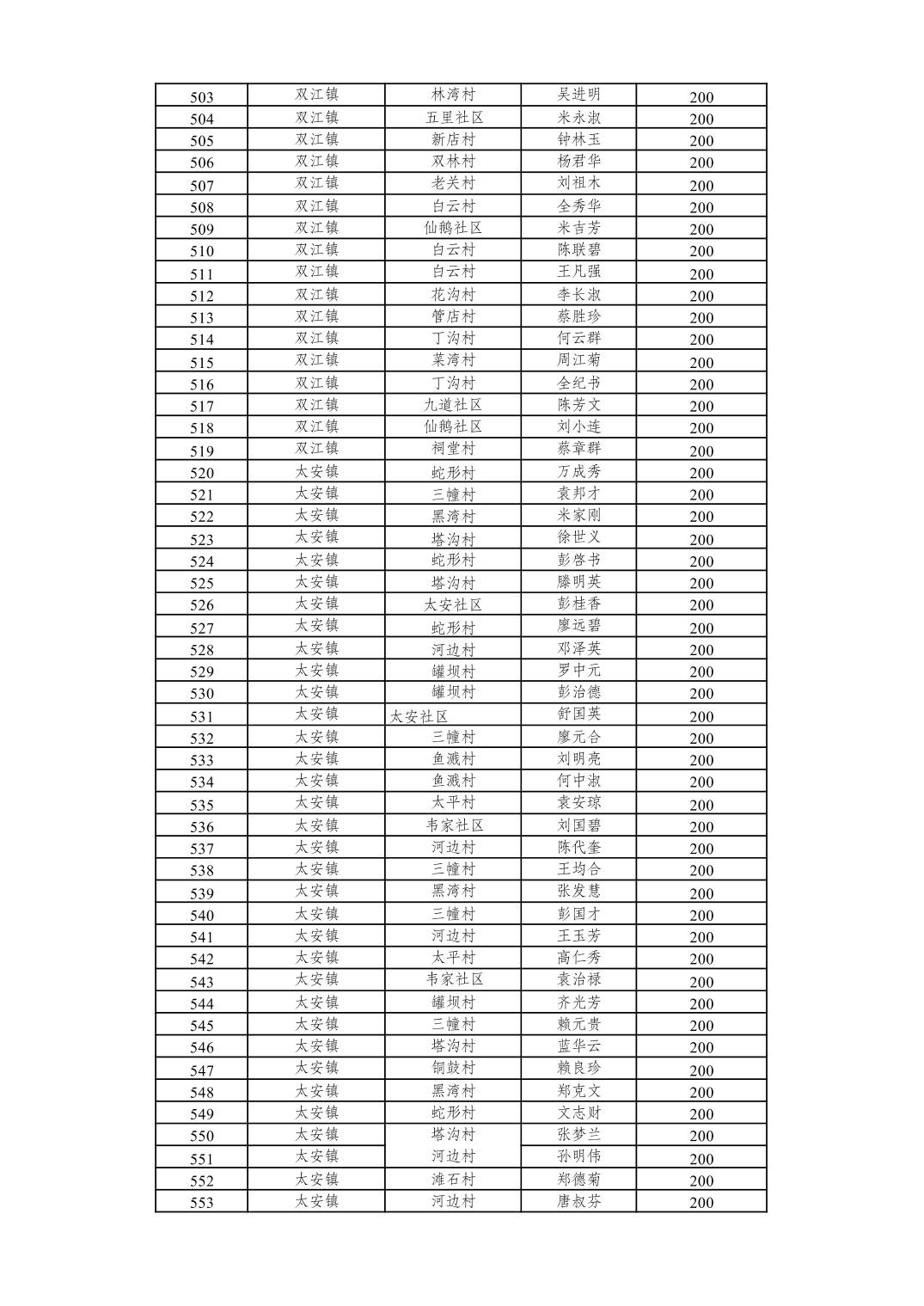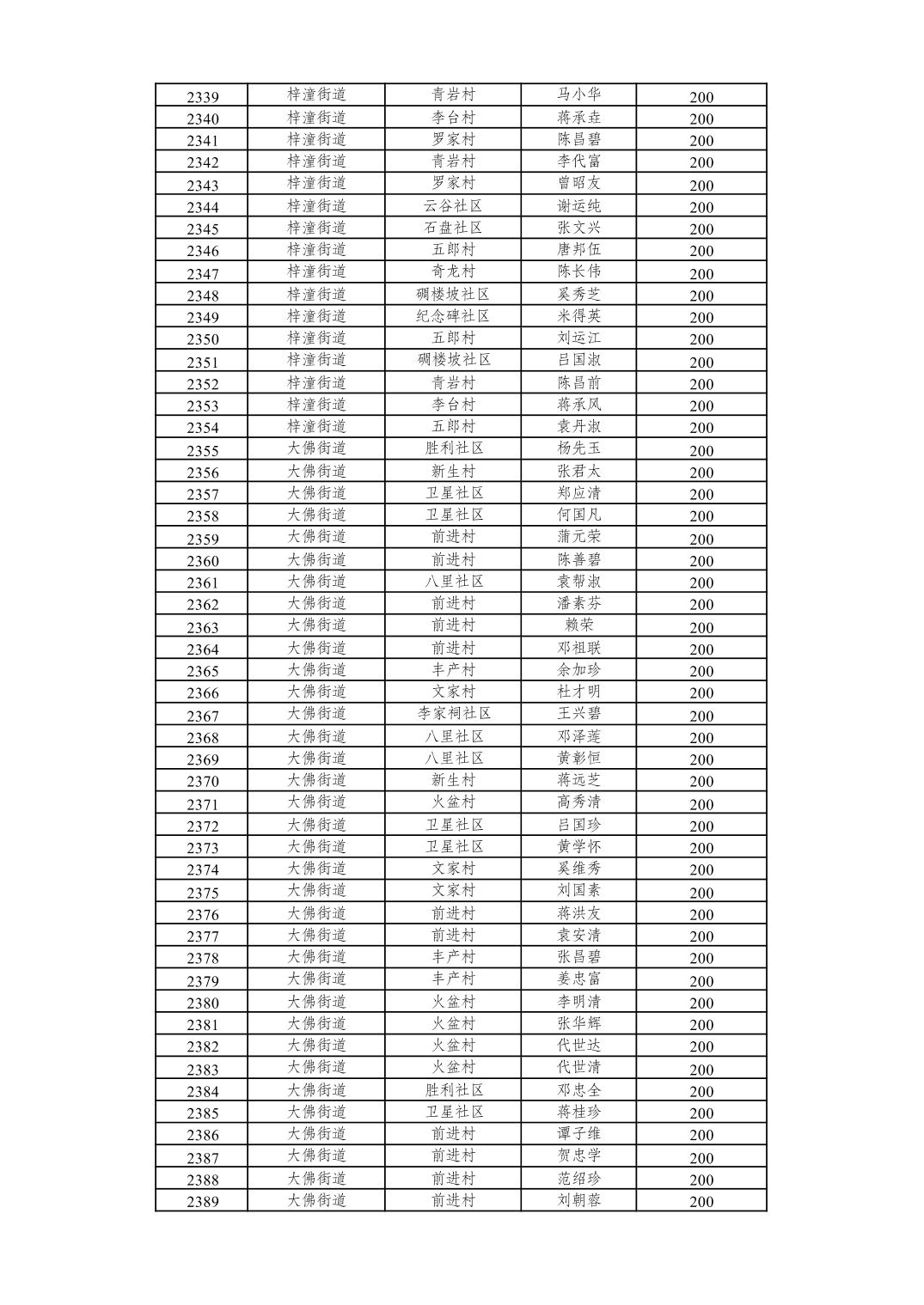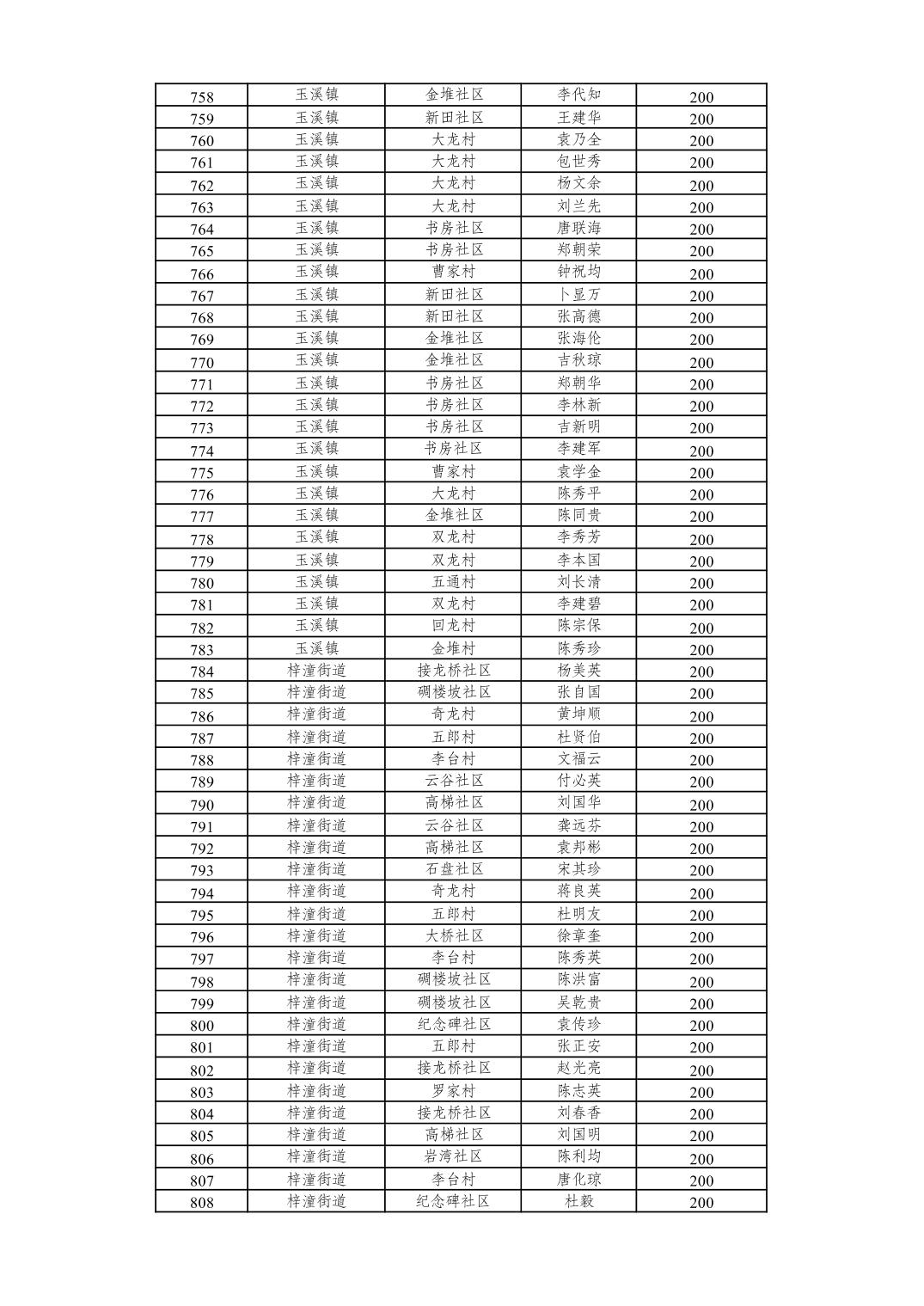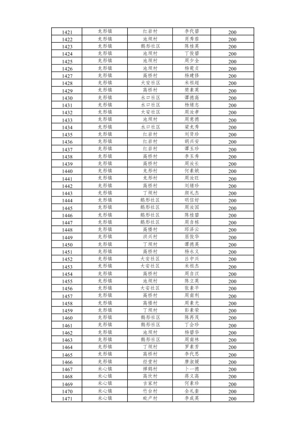 重庆市潼南区2026年2月经济困难的高龄失能老年人养老服务补贴发放表