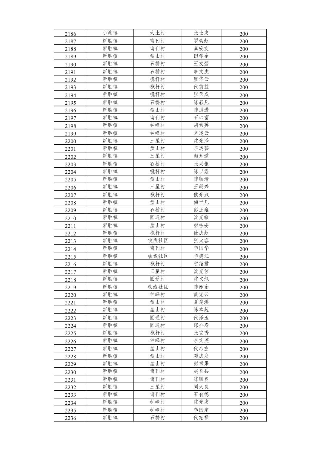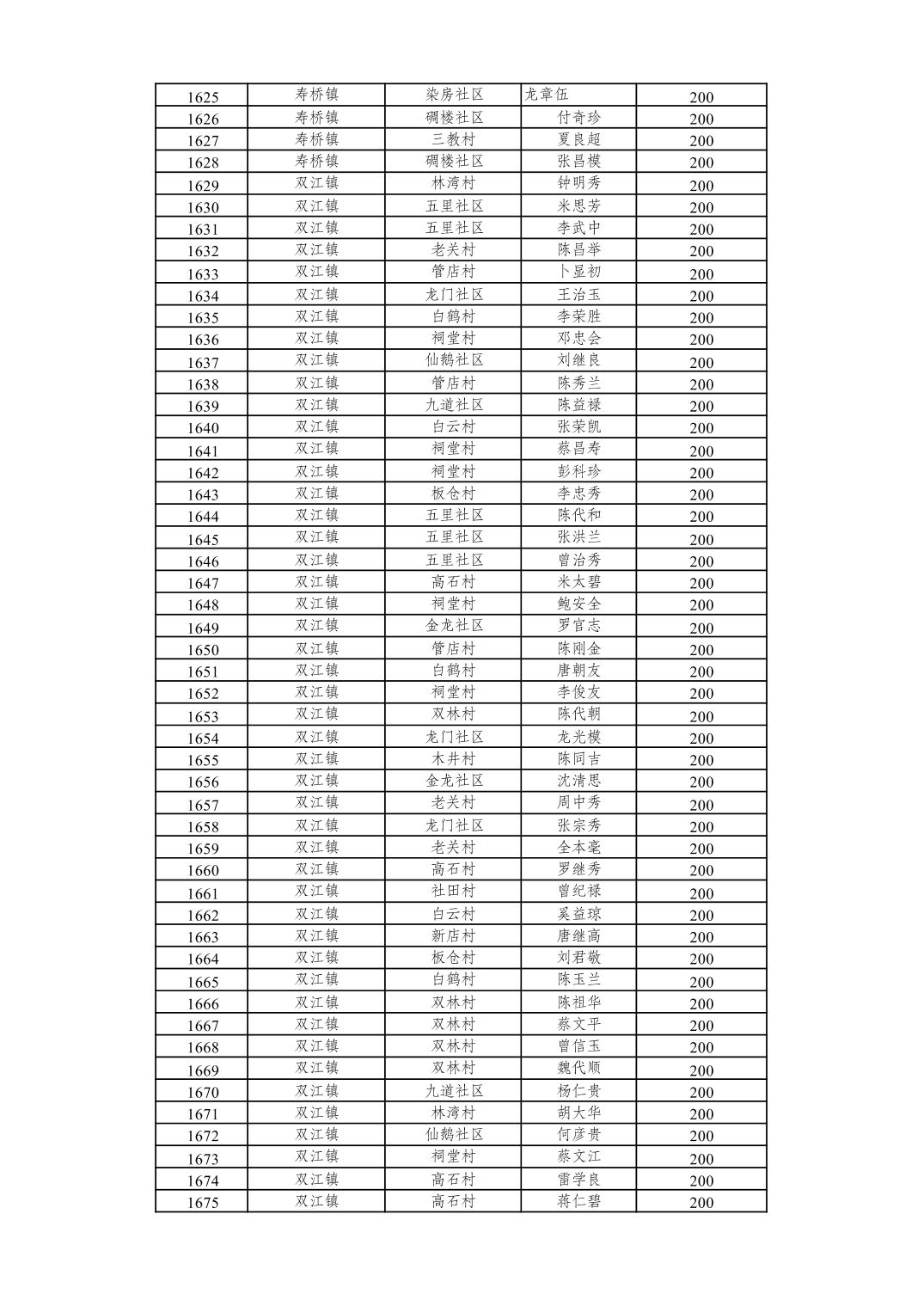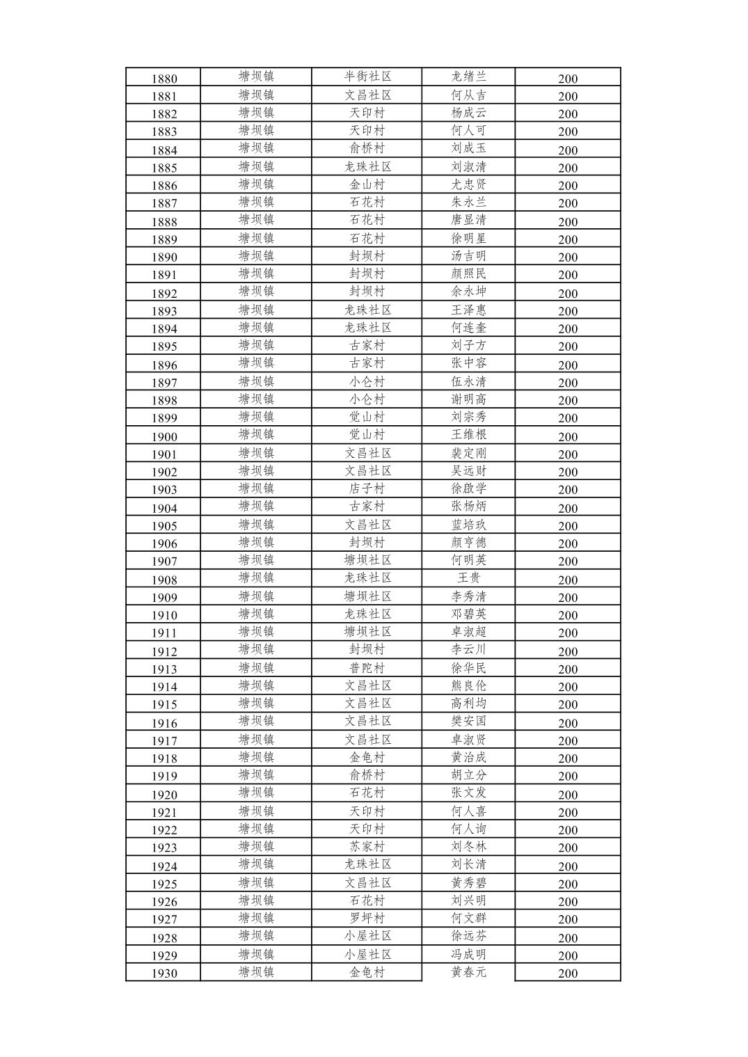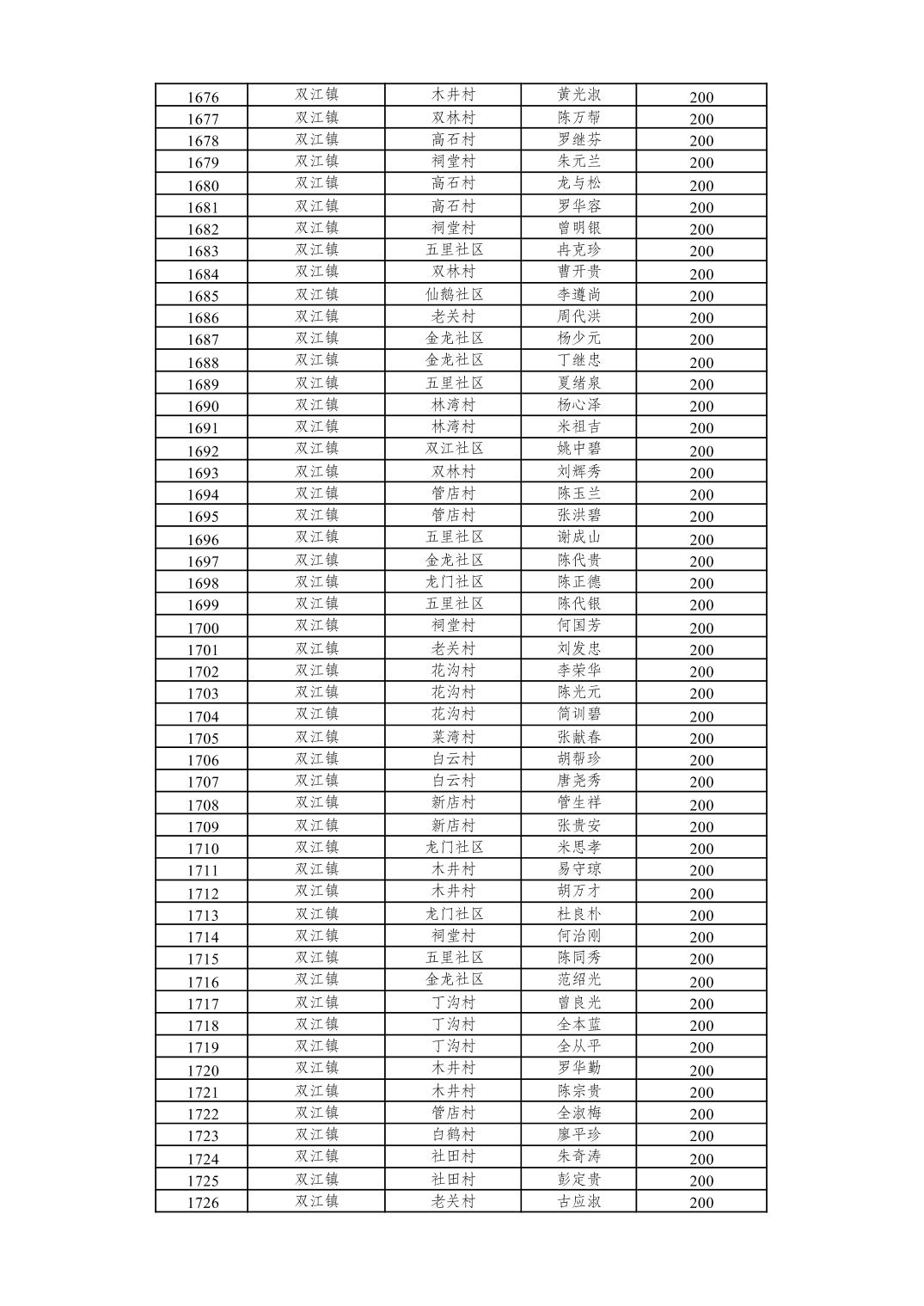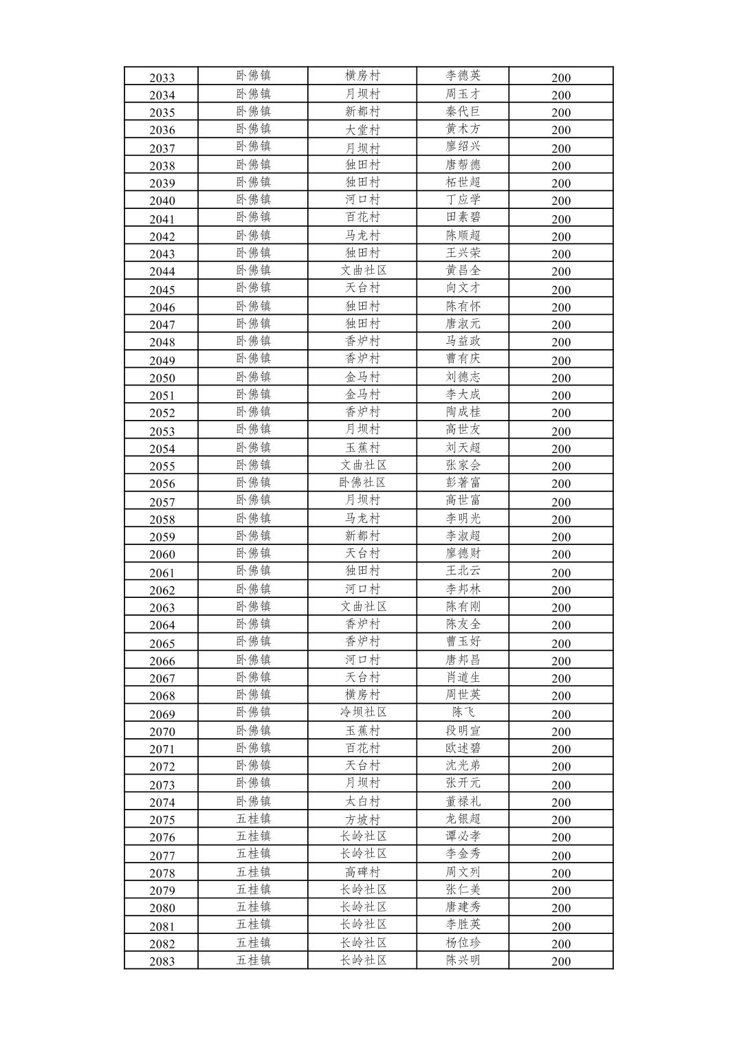 重庆市潼南区2026年2月经济困难的高龄失能老年人养老服务补贴发放表