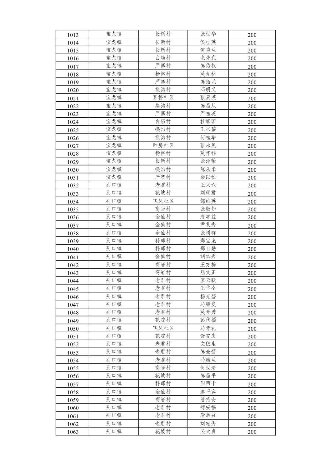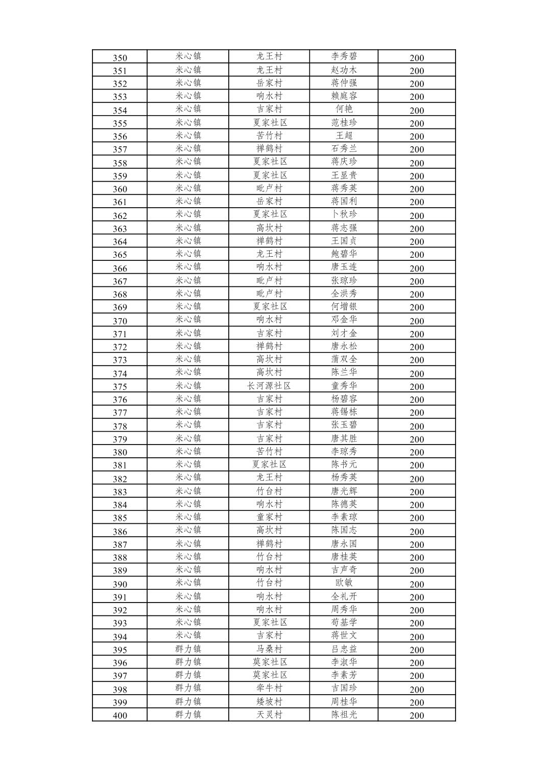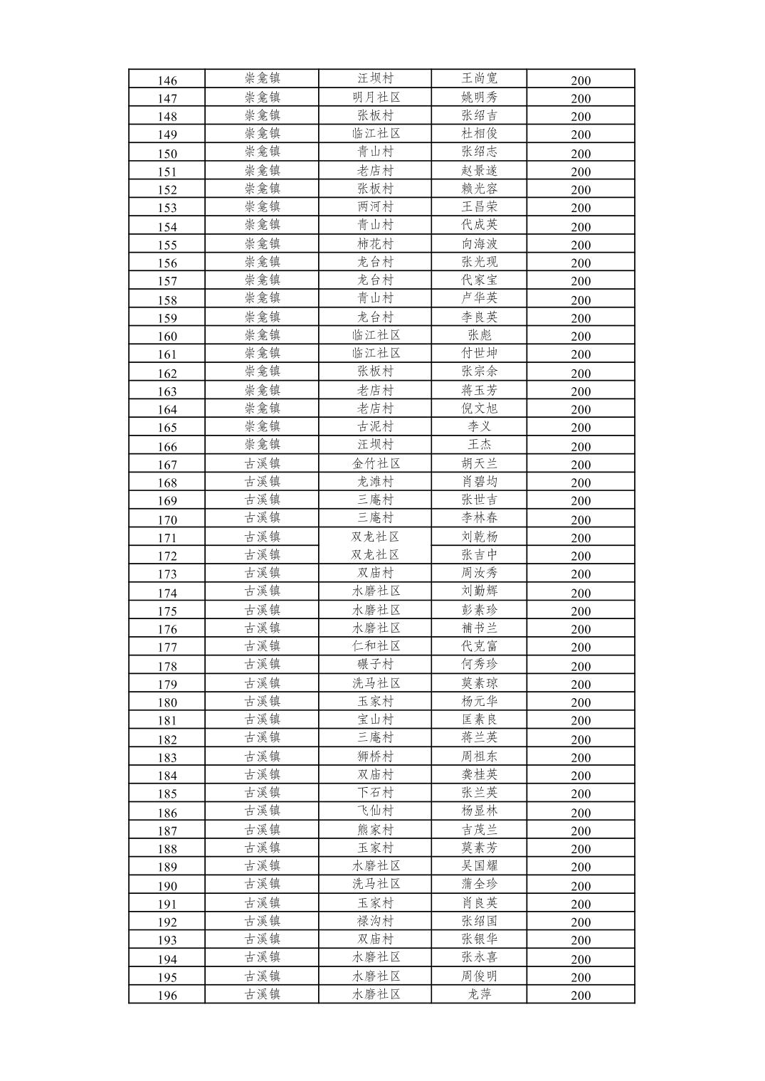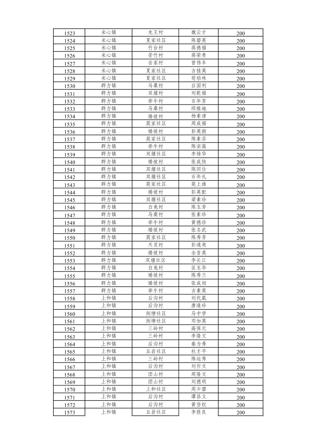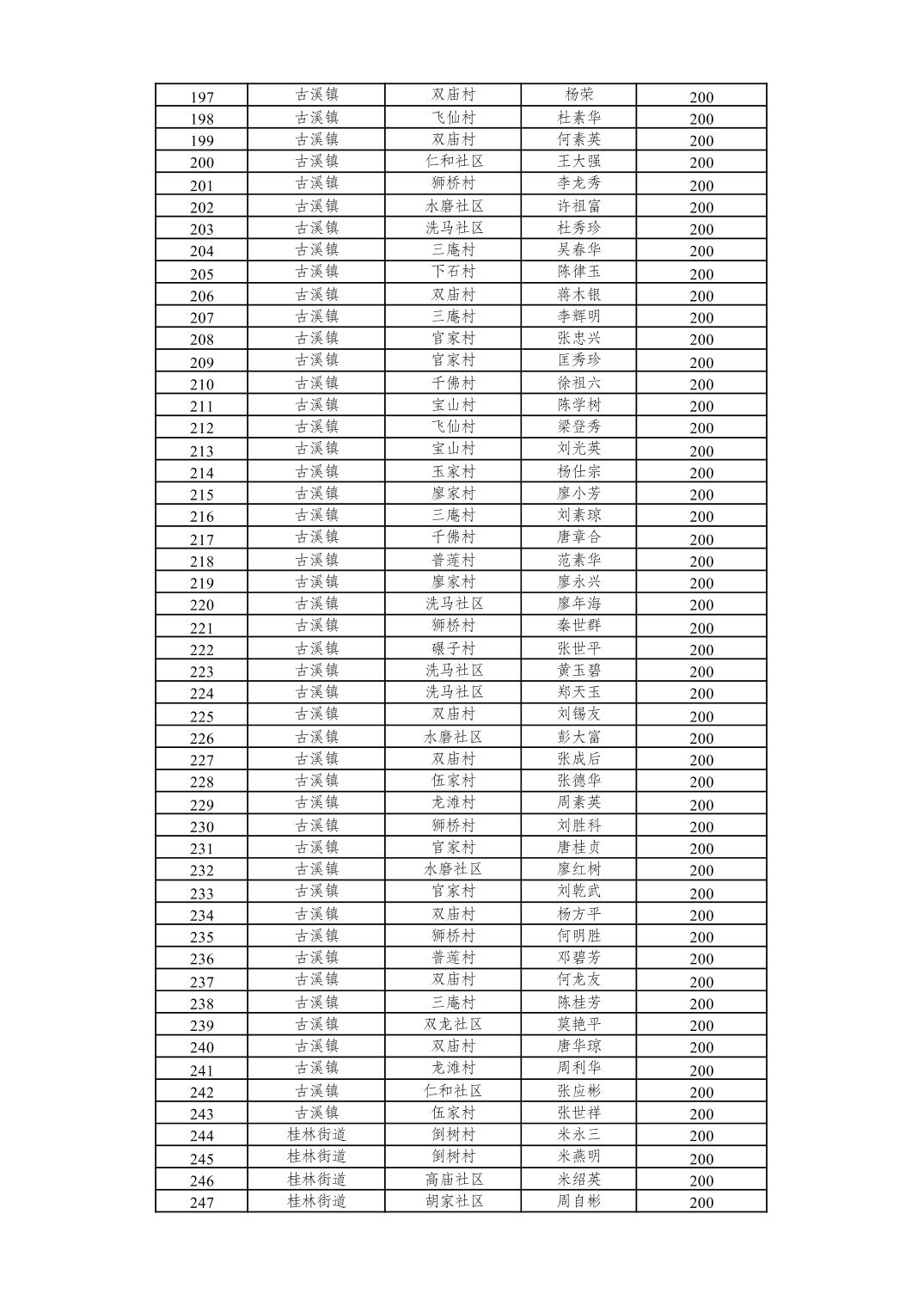重庆市潼南区2026年2月经济困难的高龄失能老年人养老服务补贴发放表