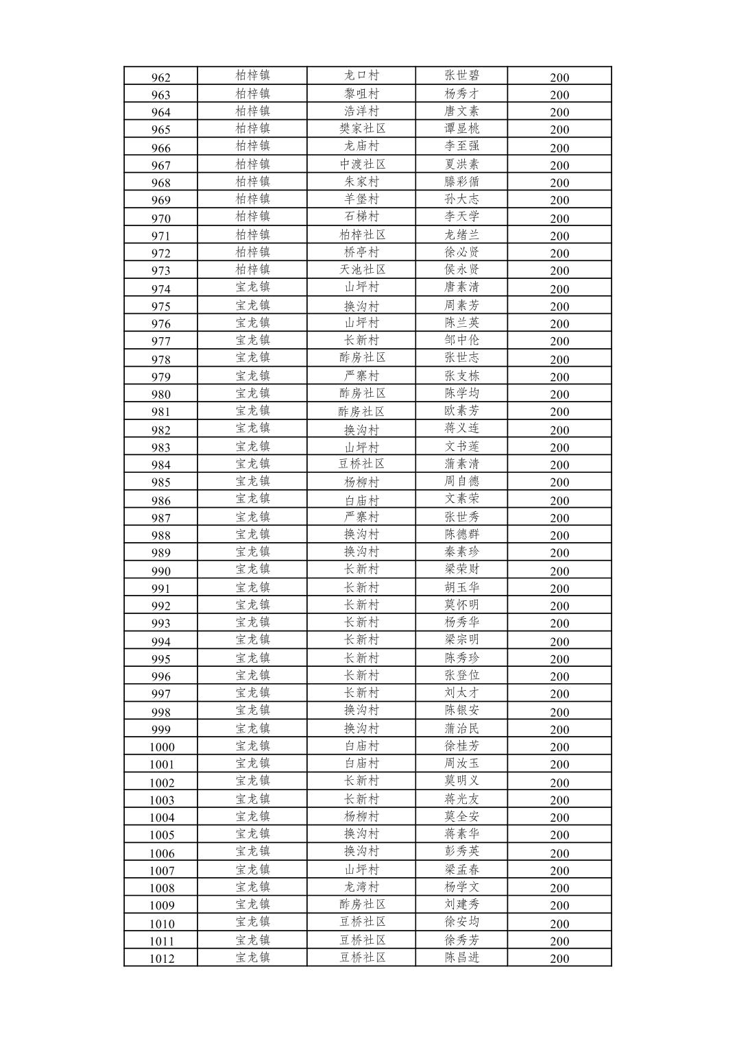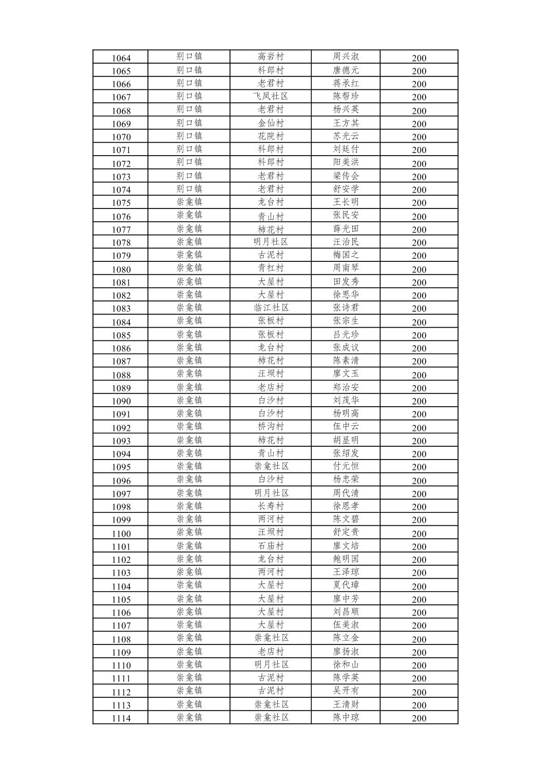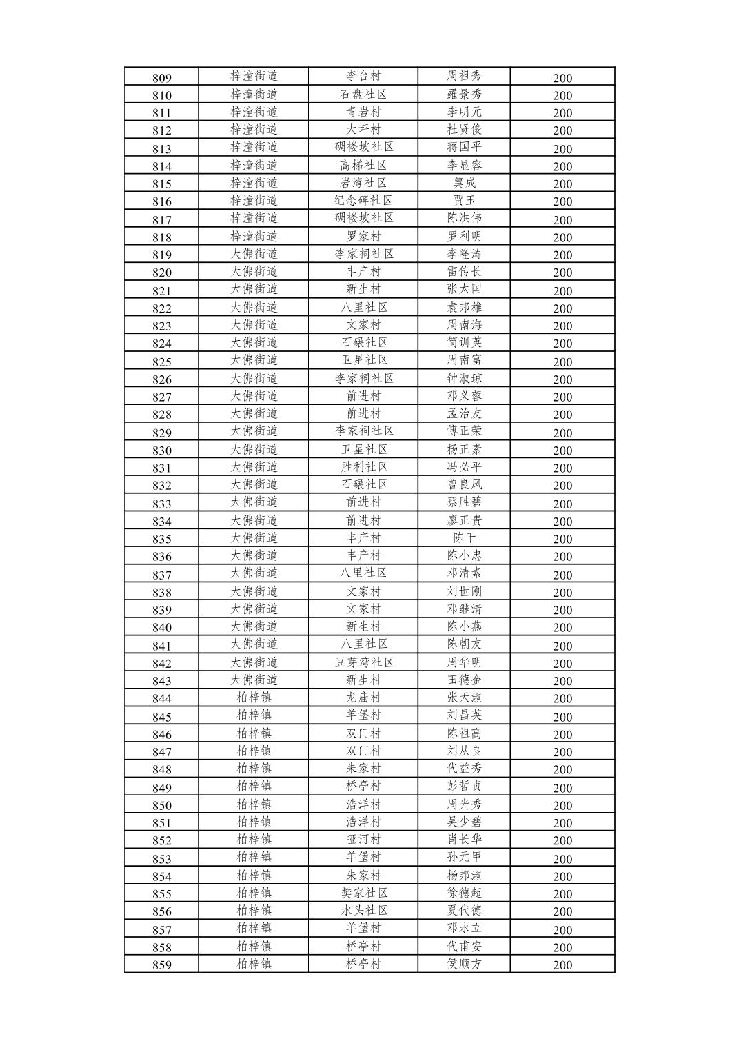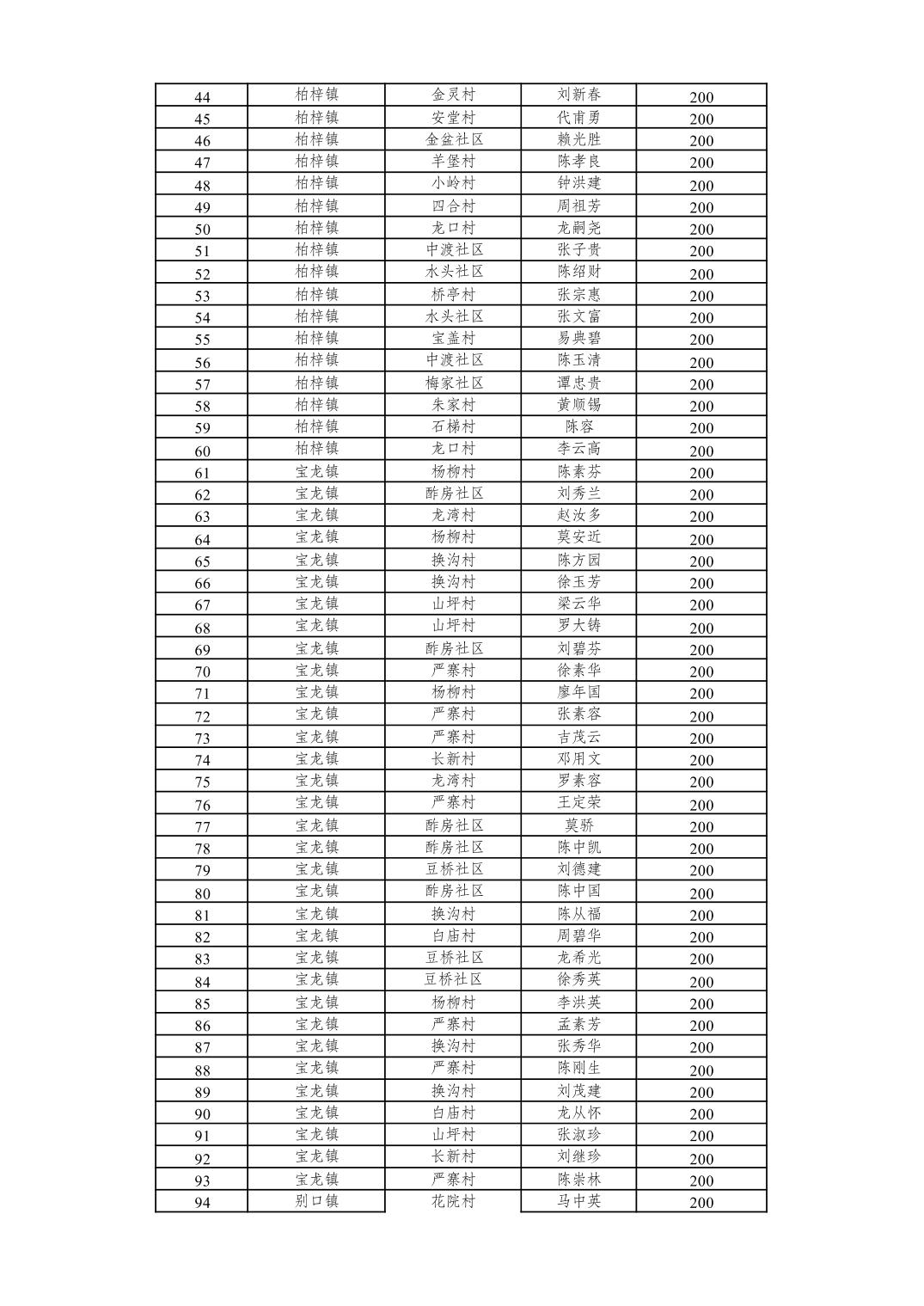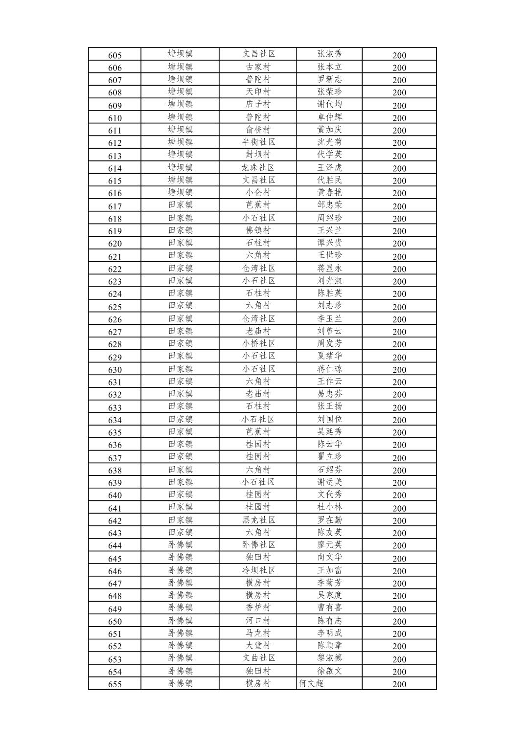 重庆市潼南区2026年2月经济困难的高龄失能老年人养老服务补贴发放表