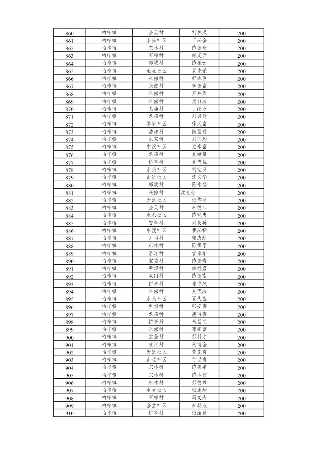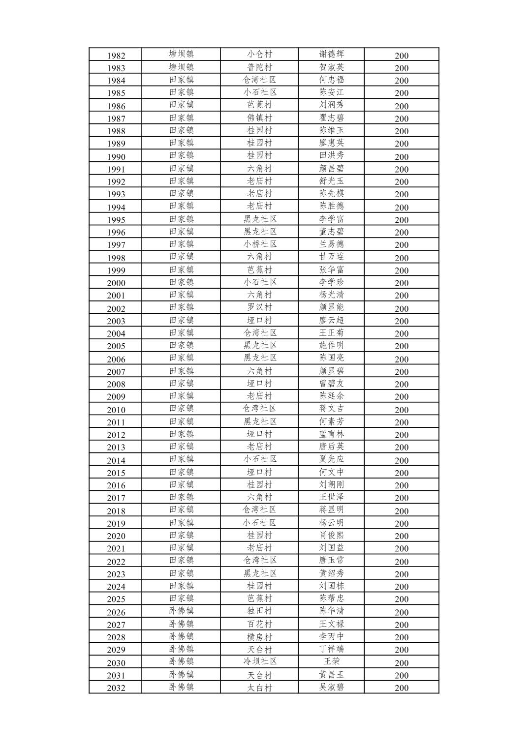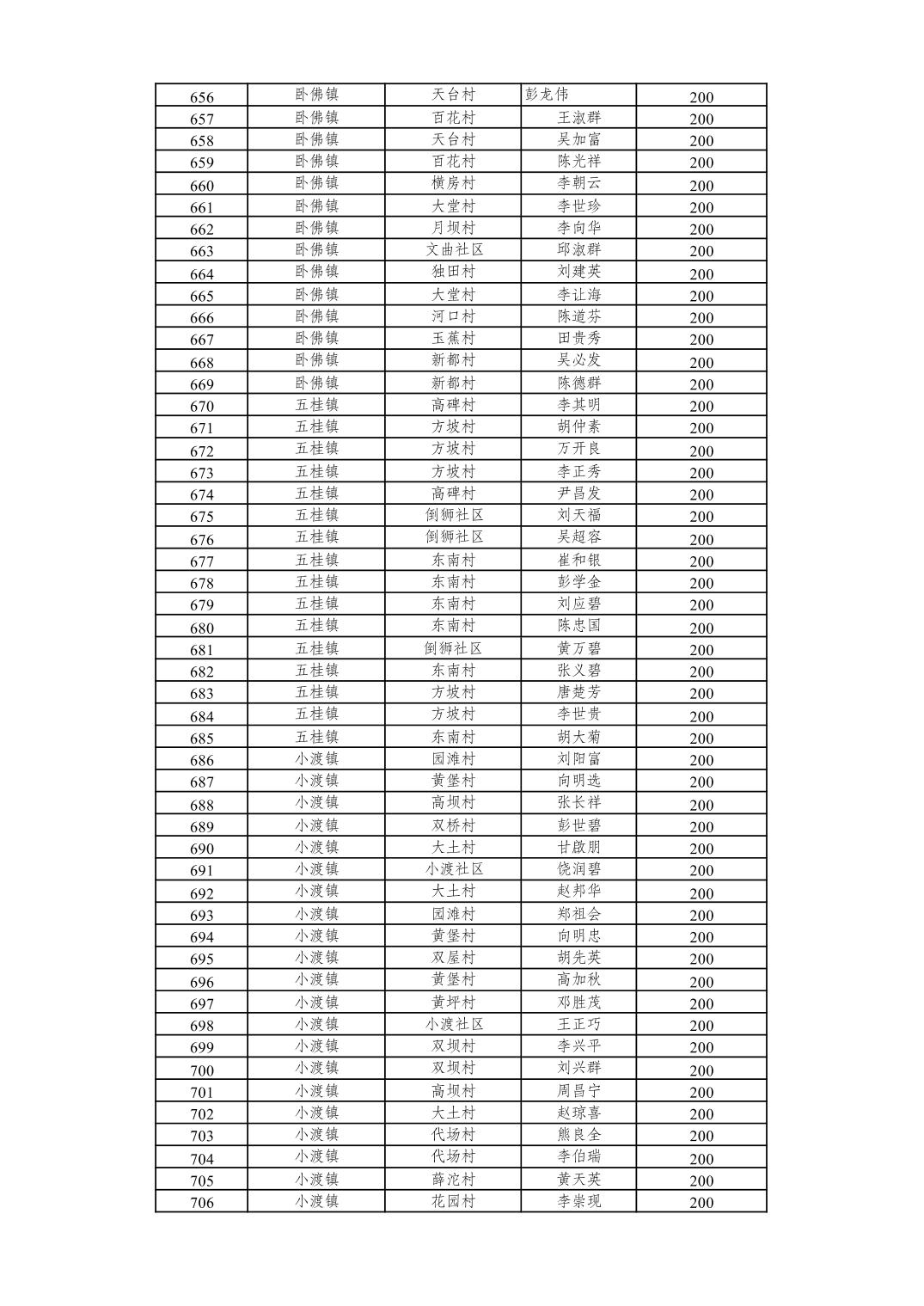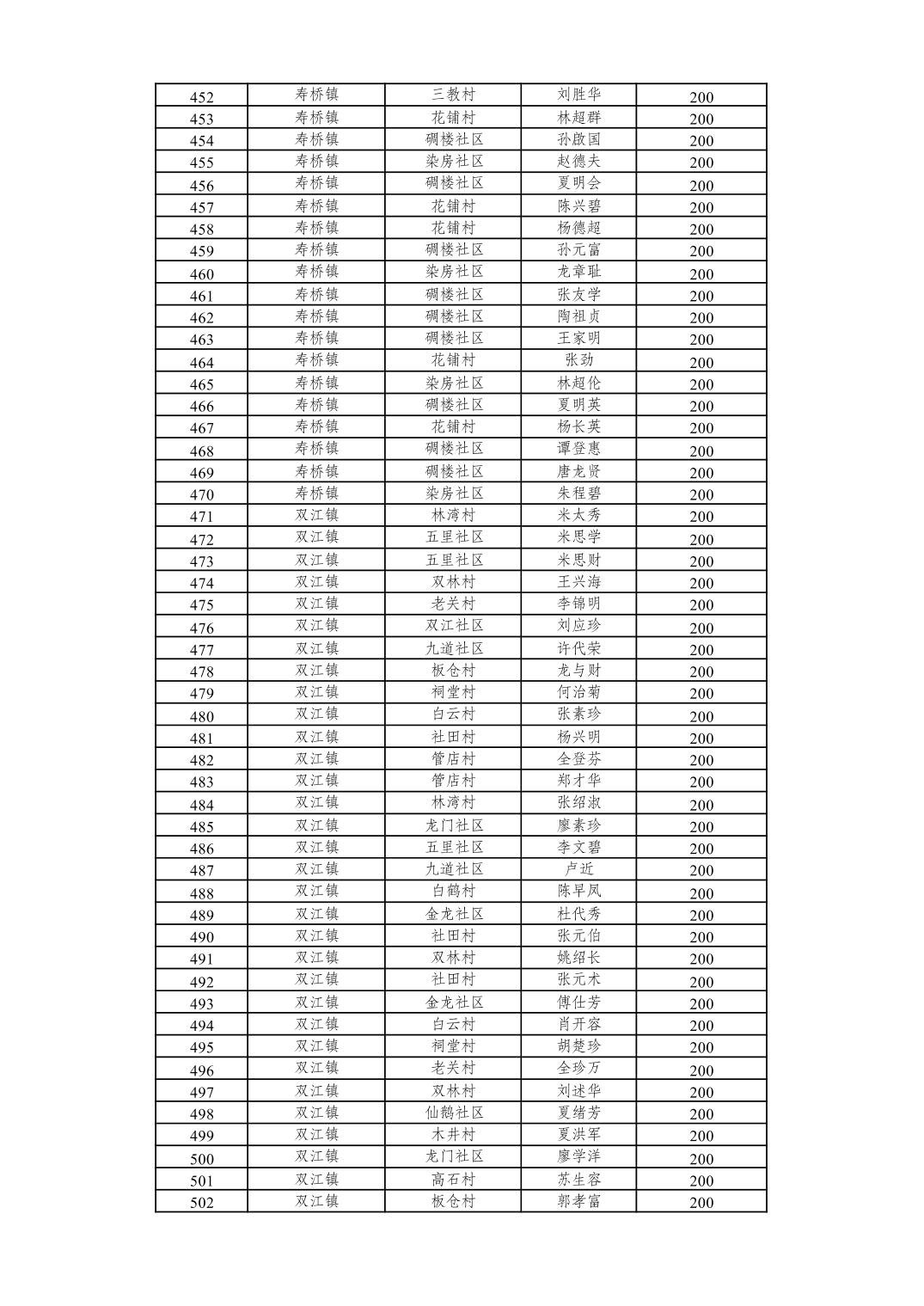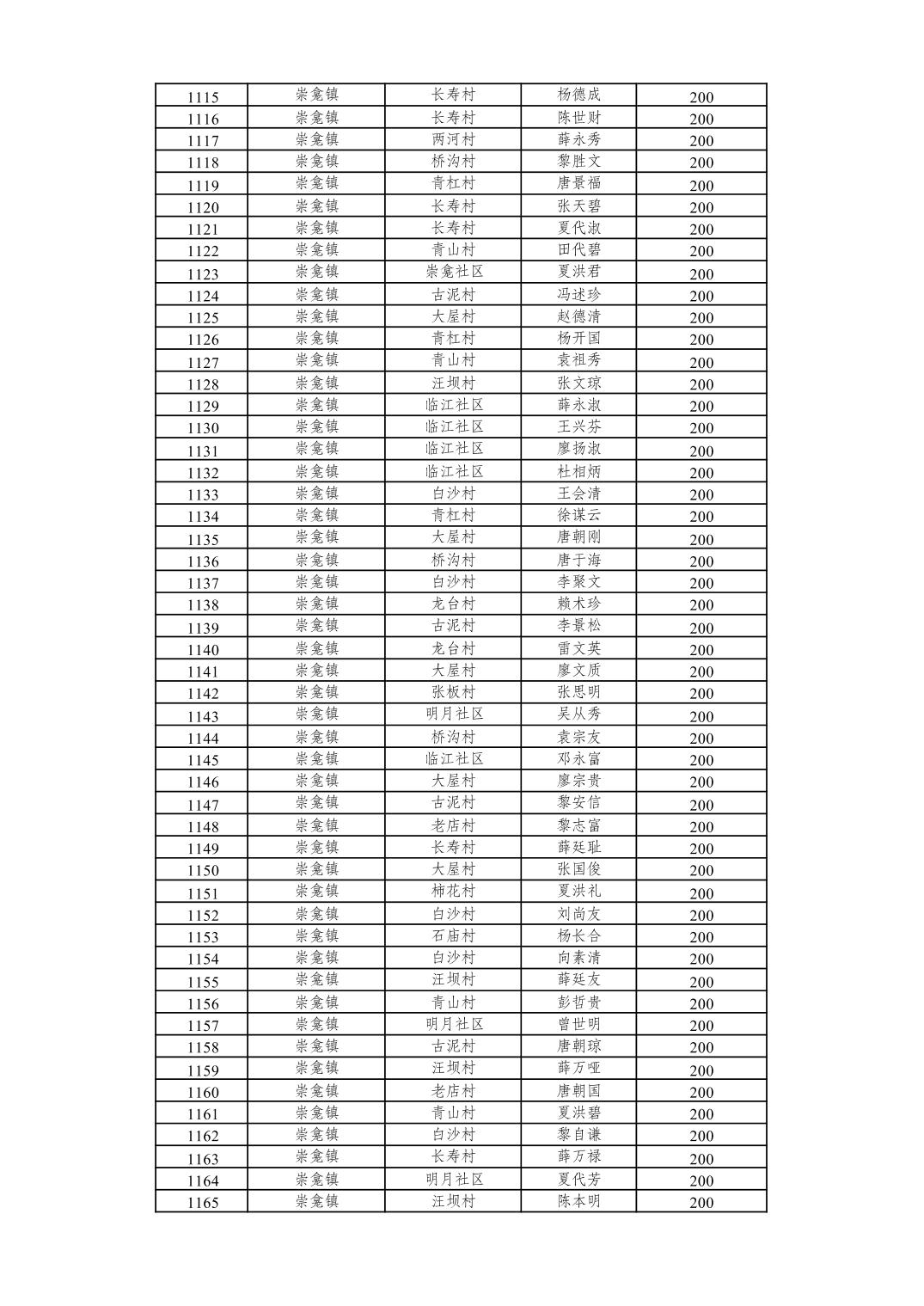 重庆市潼南区2026年2月经济困难的高龄失能老年人养老服务补贴发放表