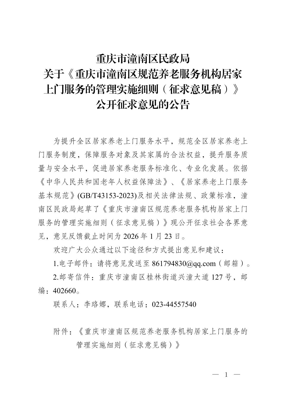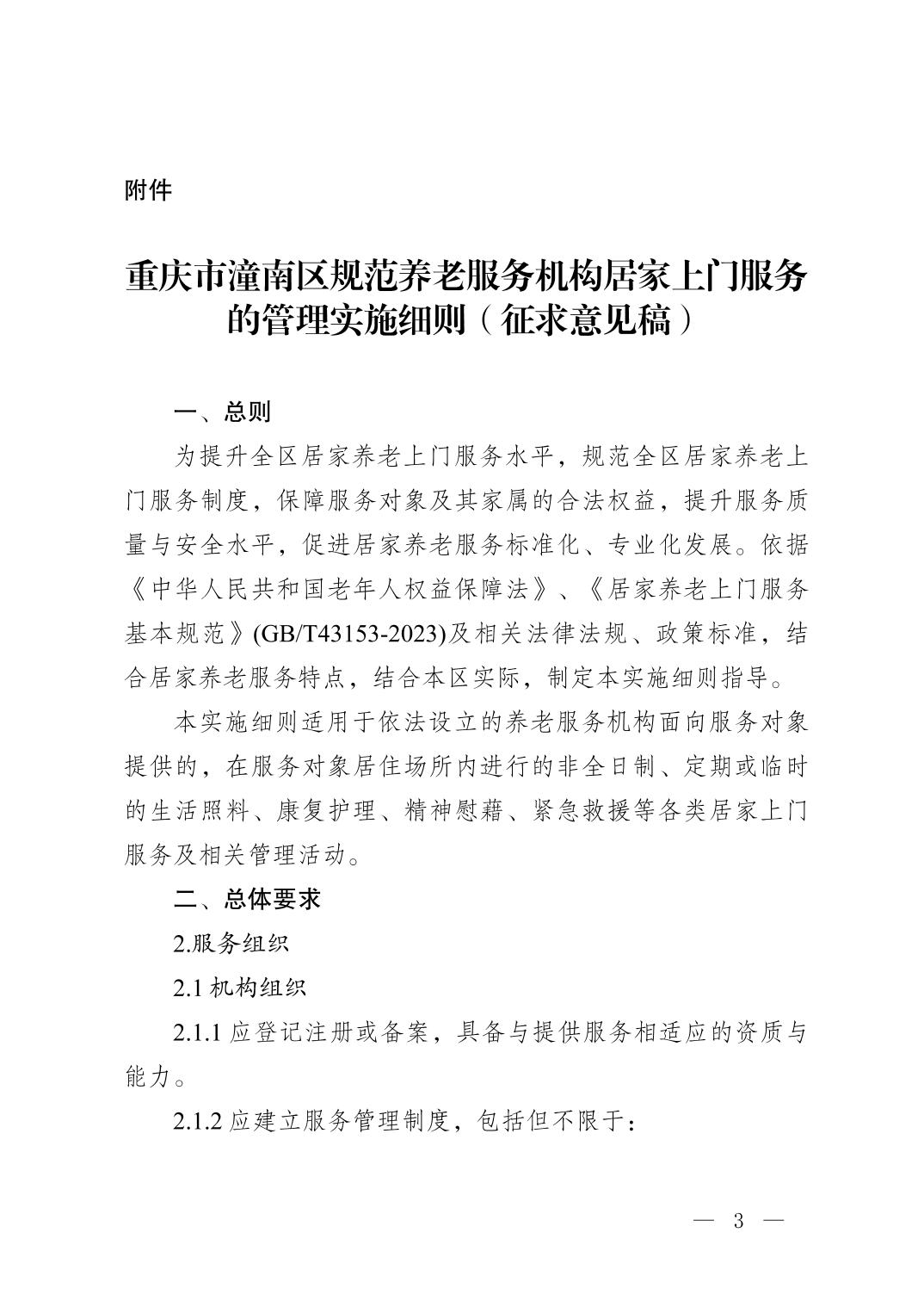 重庆市潼南区民政局关于《重庆市潼南区规范养老服务机构居家上门服务的管理实施细则(征求意见稿)》公开征求意见的公告