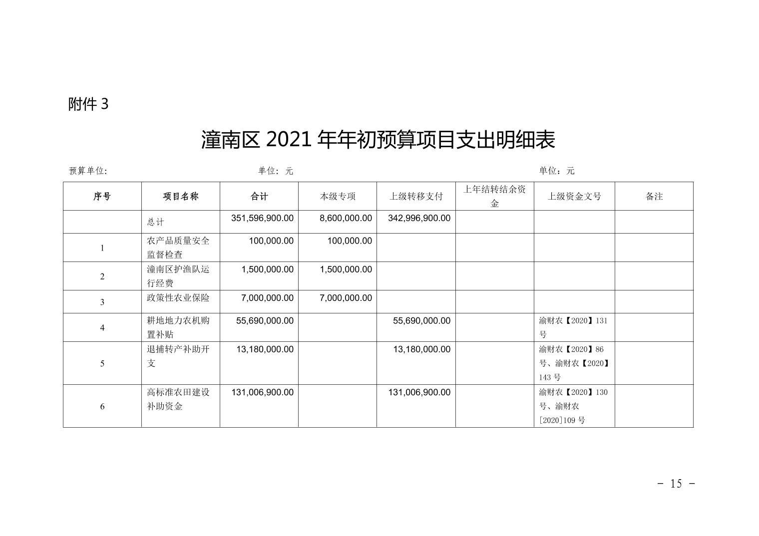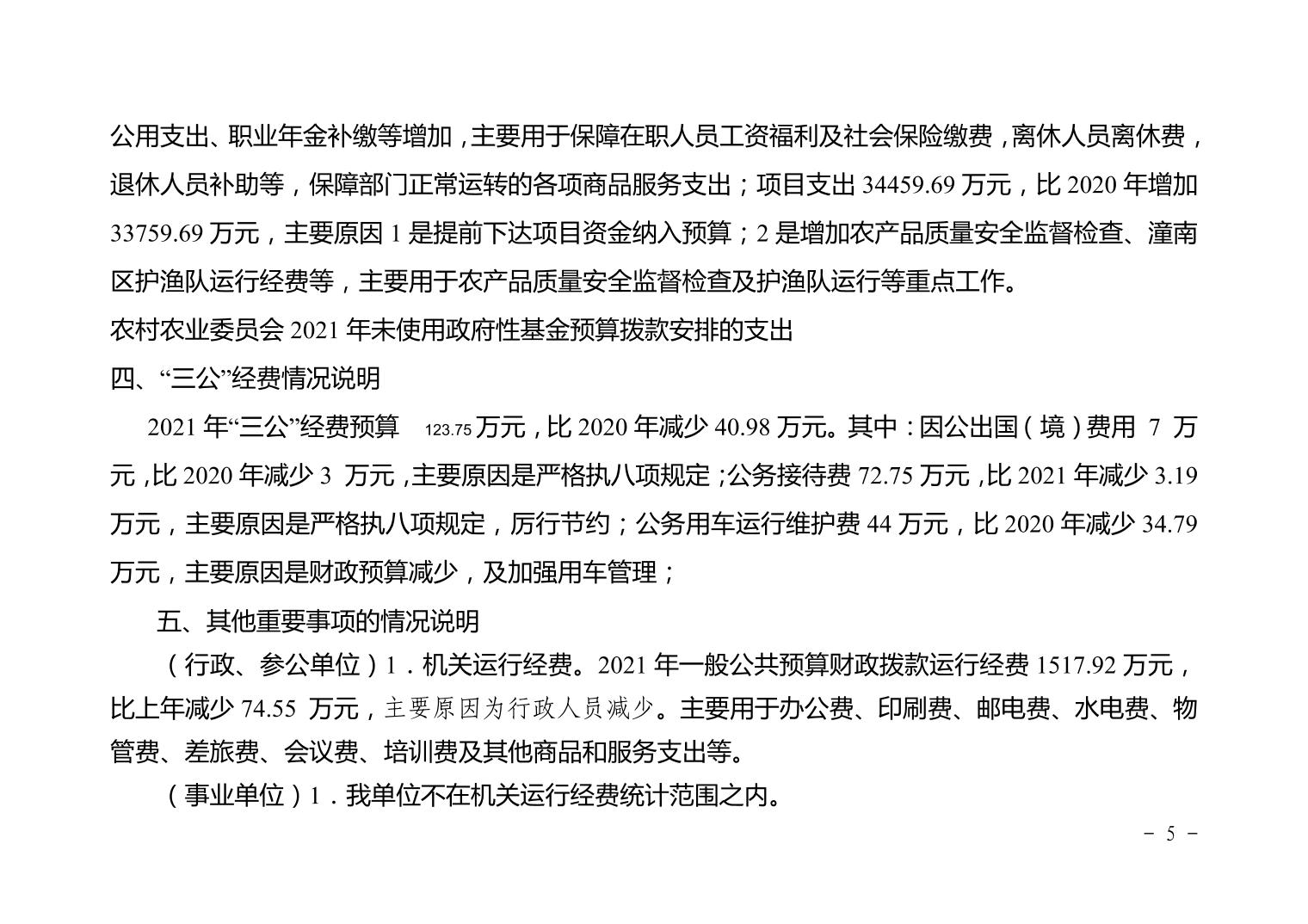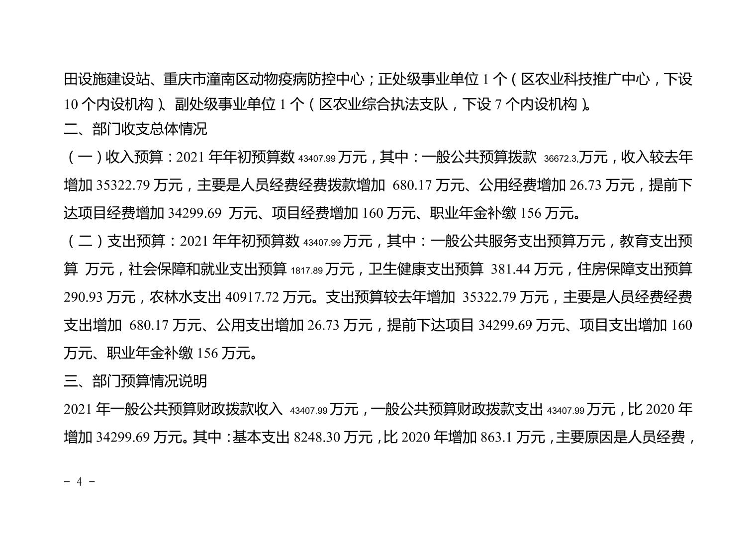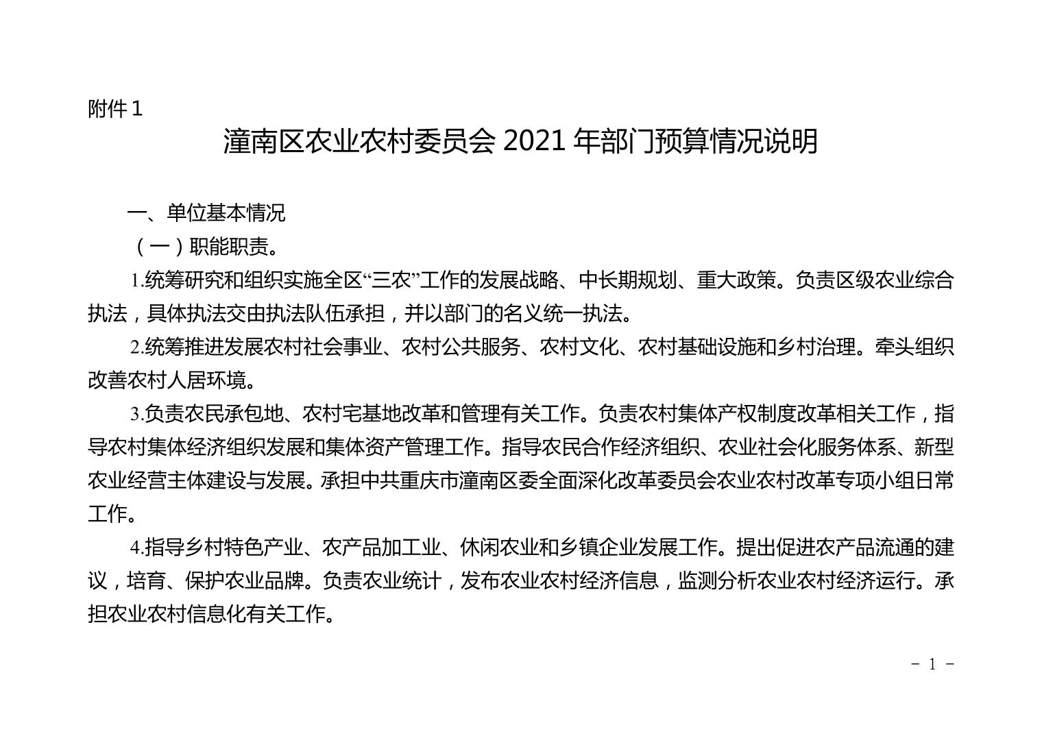 重庆市潼南区农业农村委员会2021年部门预算公开