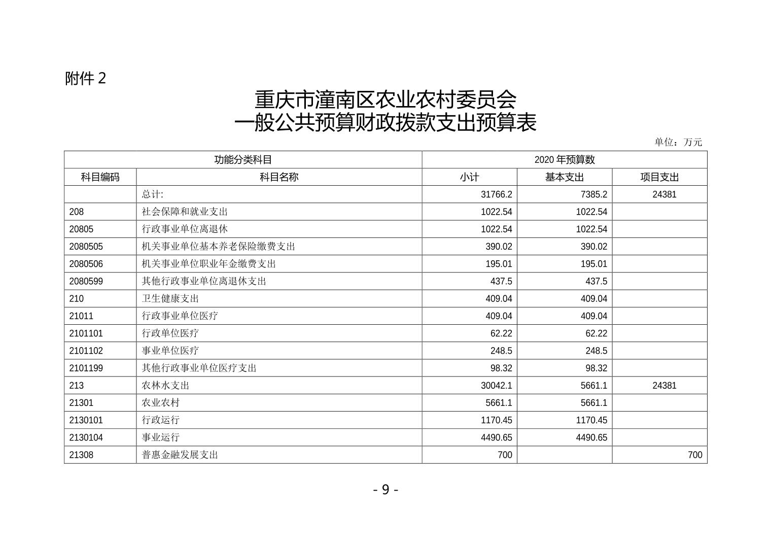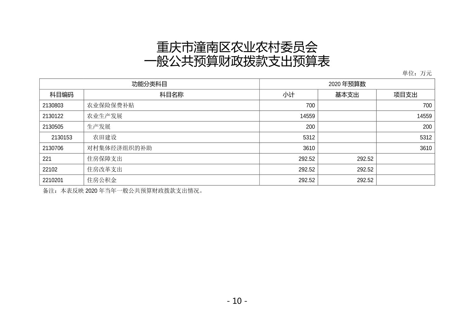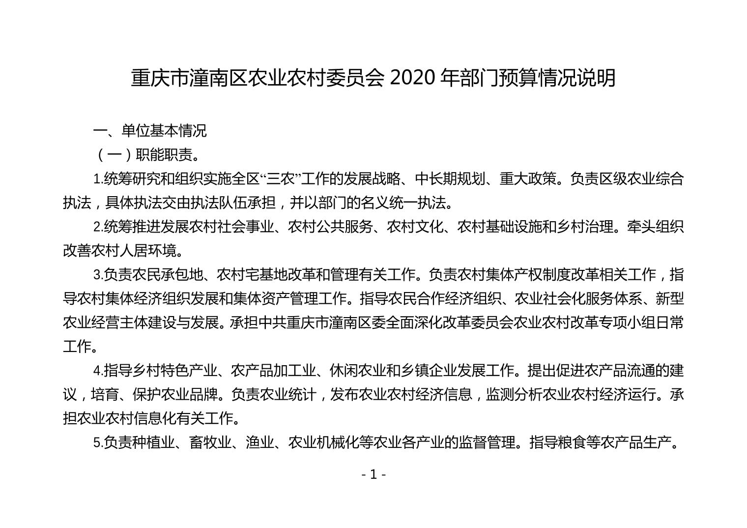重庆市潼南区农业农村委委员会2020年部门预算公开