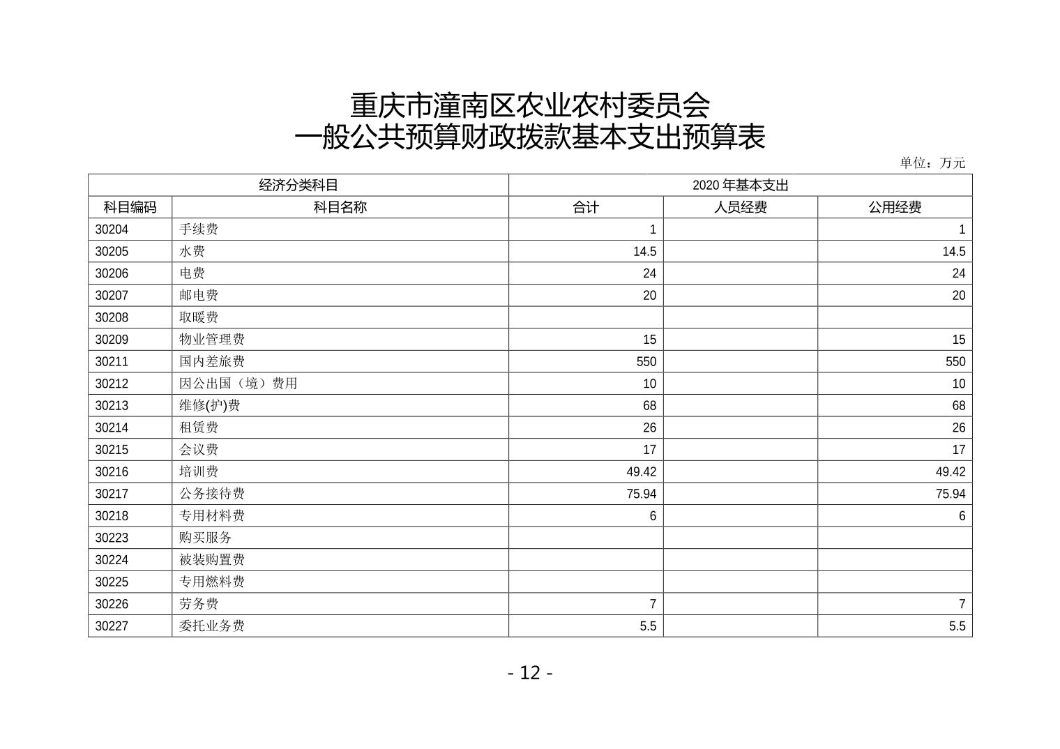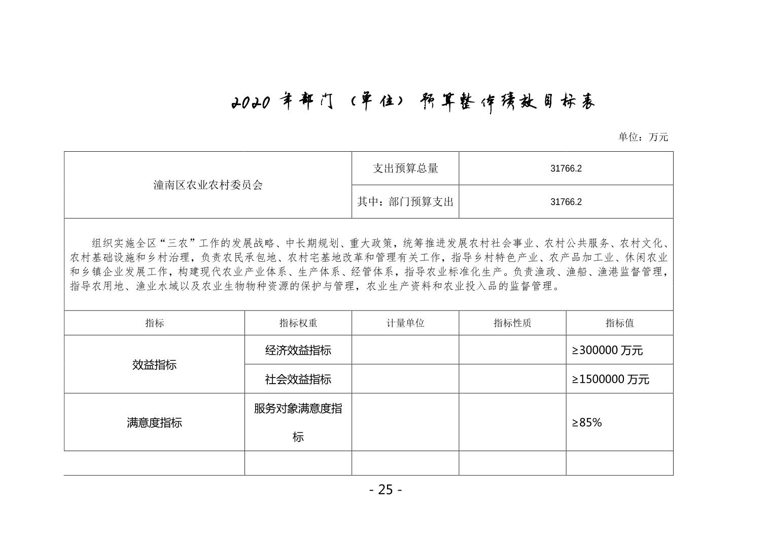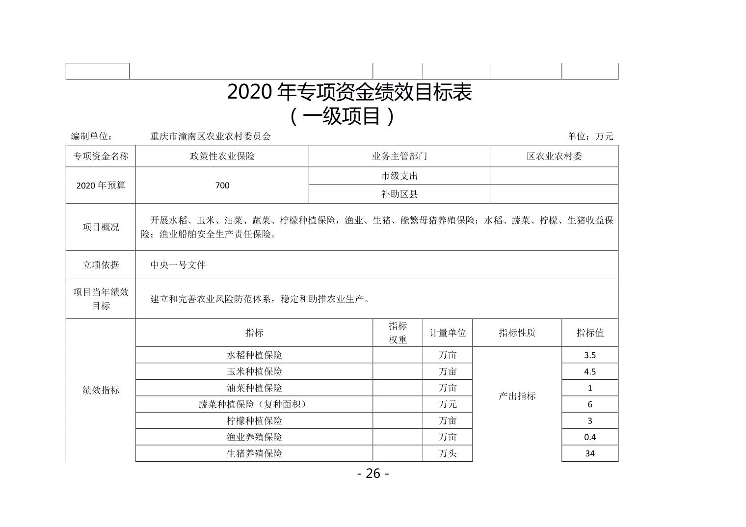 重庆市潼南区农业农村委委员会2020年部门预算公开