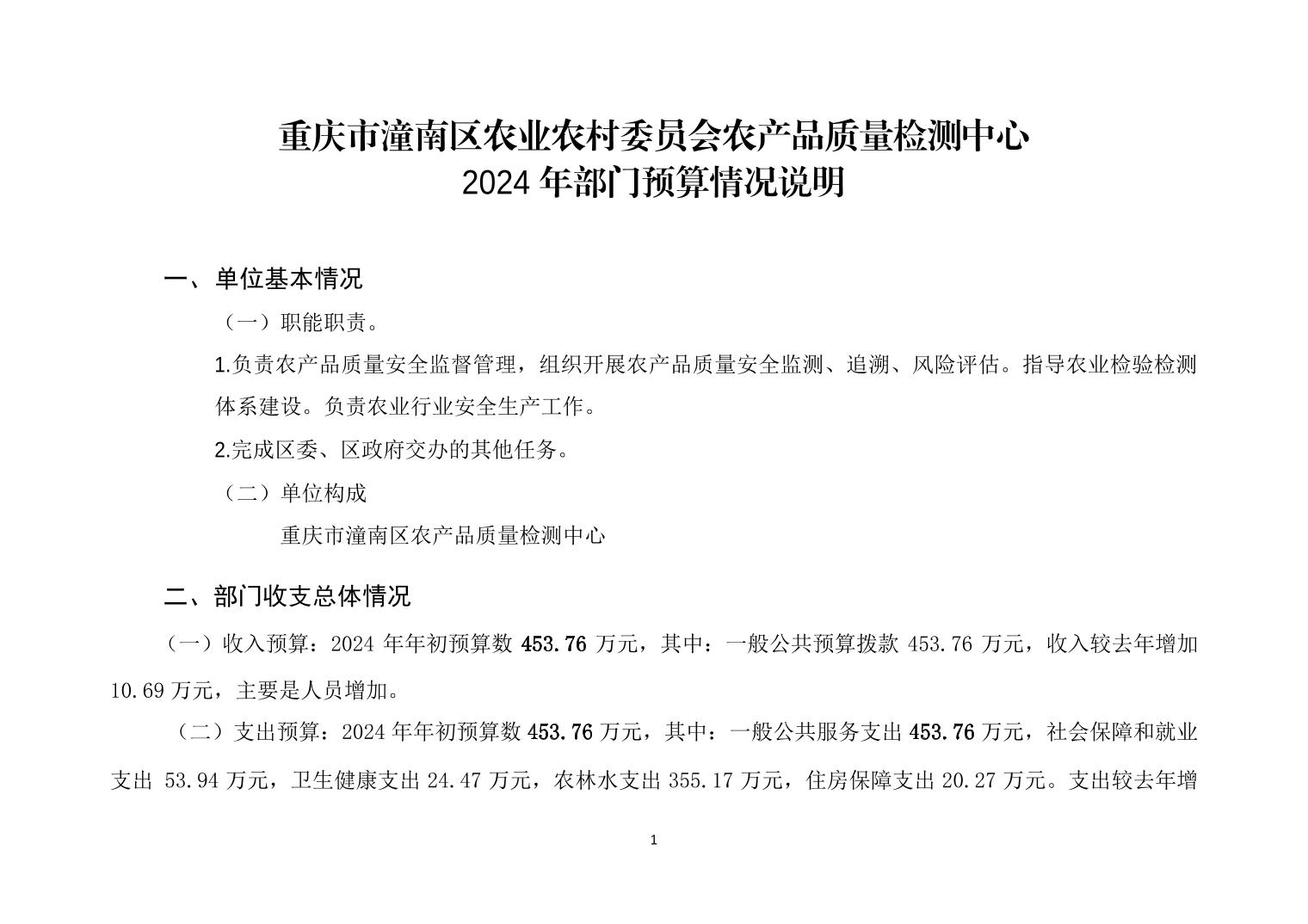 重庆市潼南区农业农村委员会农产品质量检测中心2024年部门预算情况说明