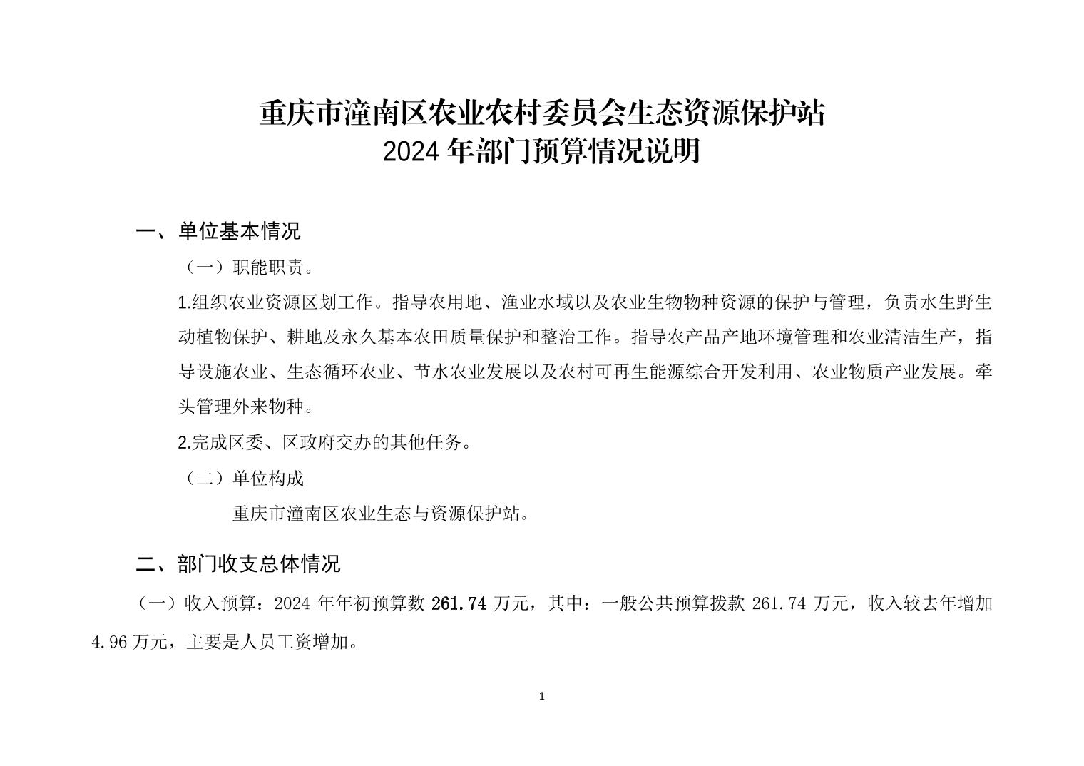 重庆市潼南区农业农村委员会生态资源保护站2024年部门预算情况说明