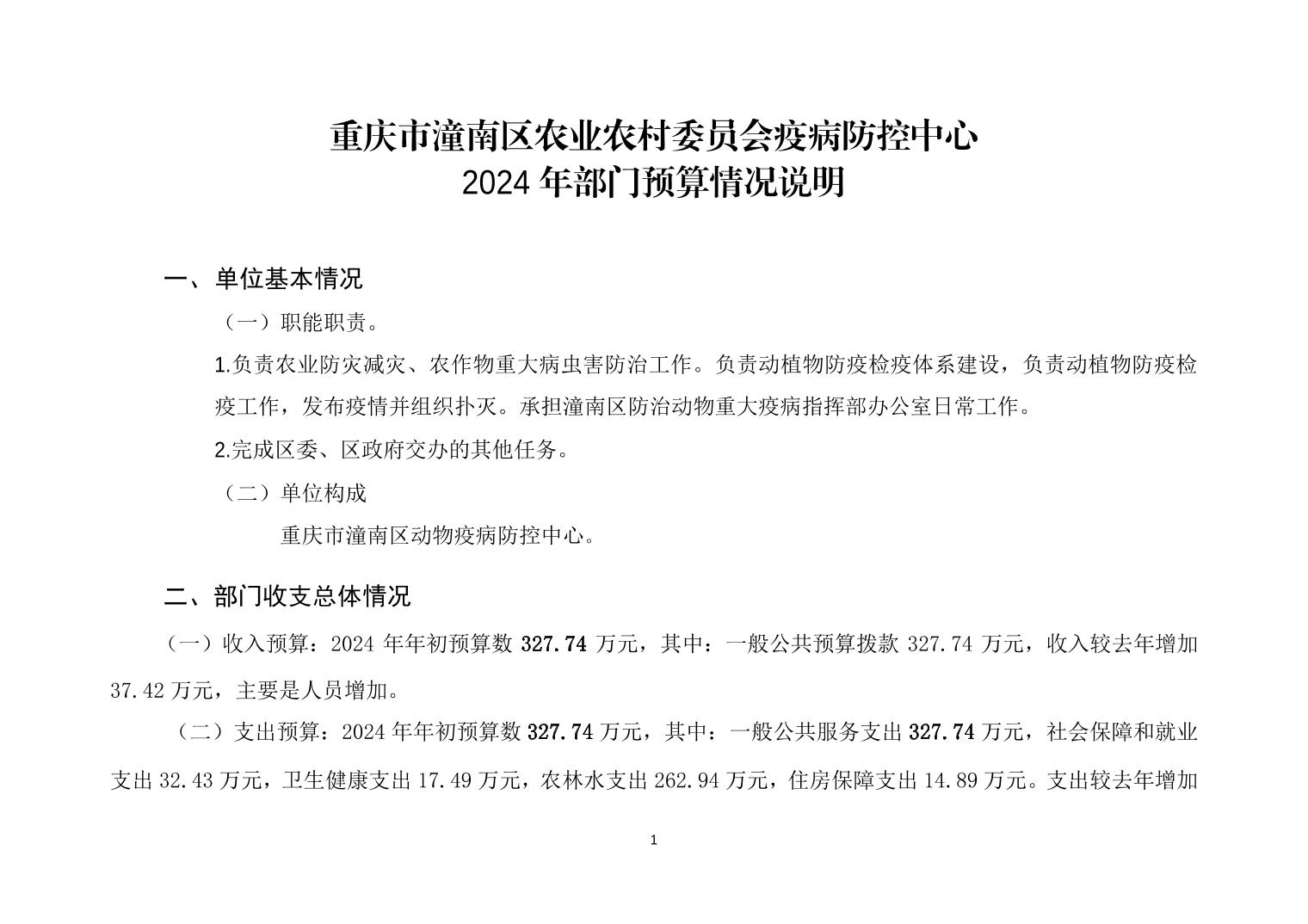 重庆市潼南区农业农村委员会疫病防控中心2024年部门预算情况说明
