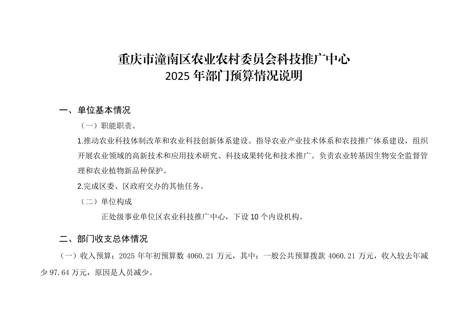 重庆市潼南区农业农村委员会科技推广中心2025年部门预算情况说明